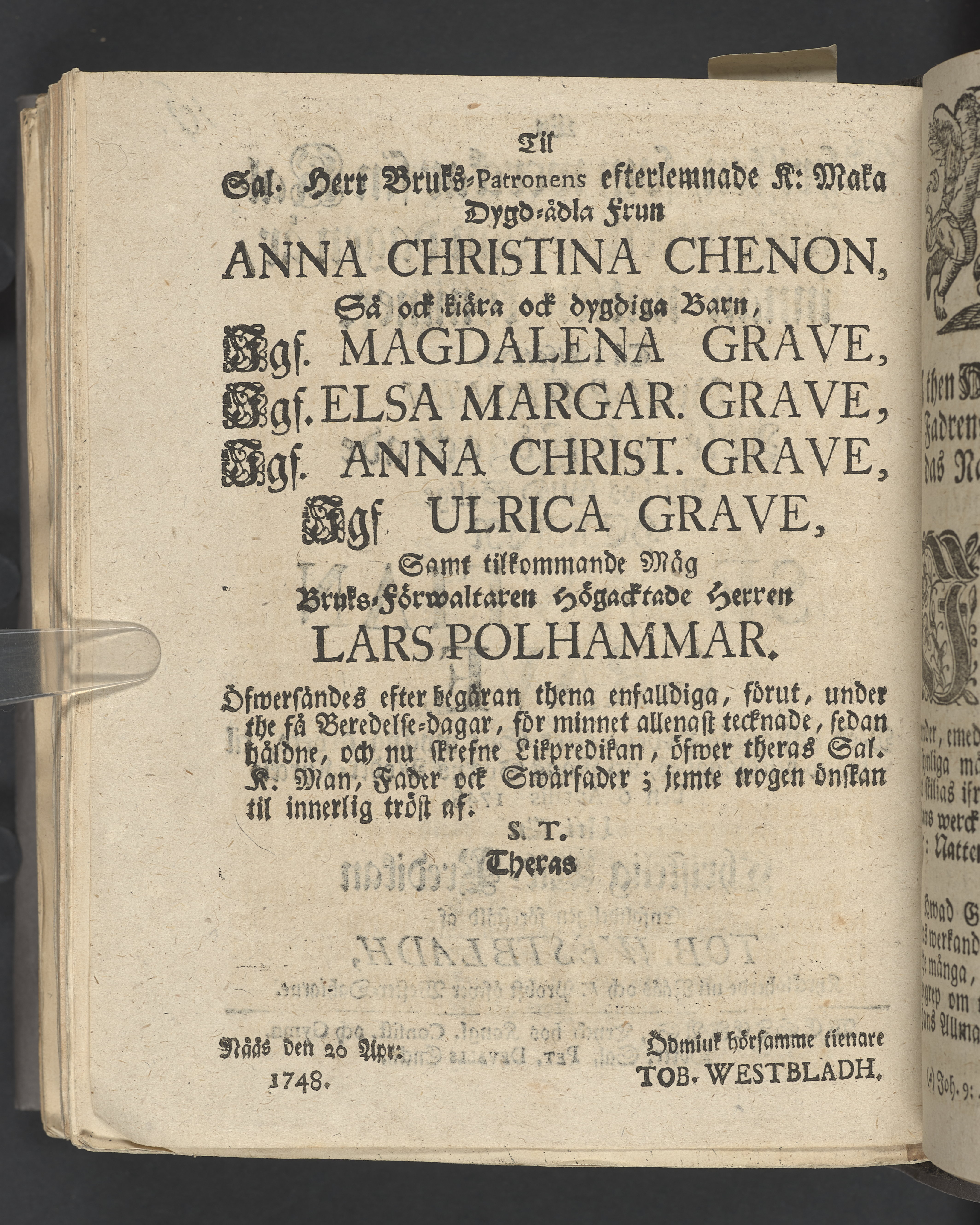 Upphov: Westbladh, Tobias. Media: Hanson, Rosemary. Skoklosters slott/SHM, (PDM) Upphovsrätten till detta verk har gått ut och är därmed fritt att använda på alla sätt. Ange gärna upphovsperson om denne är känd.