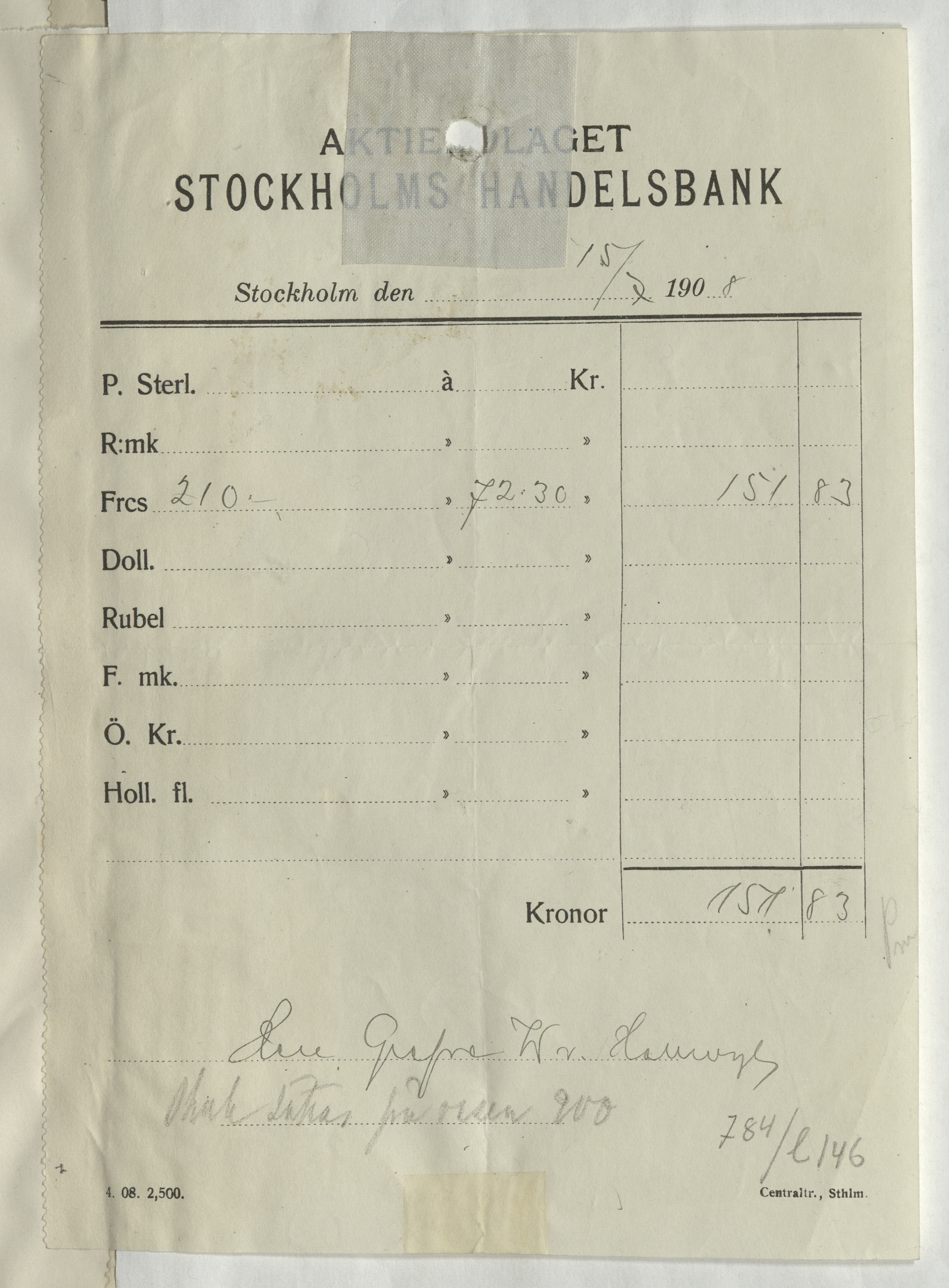 Upphov: Stockholms Handelsbank AB. Media: Statens historiska museer. Hallwylska museet/SHM, (PDM) Upphovsrätten till detta verk har gått ut och är därmed fritt att använda på alla sätt. Ange gärna upphovsperson om denne är känd.