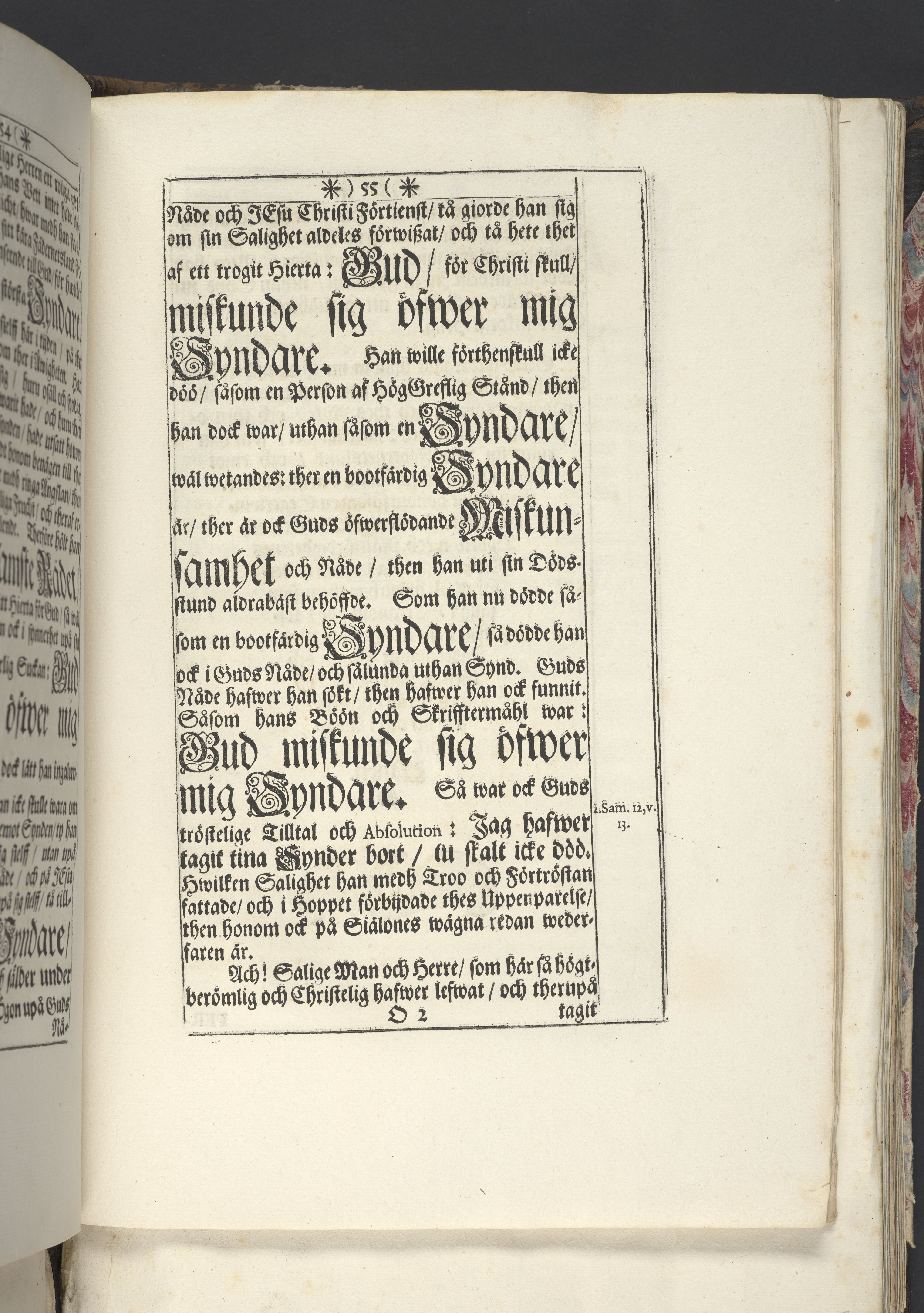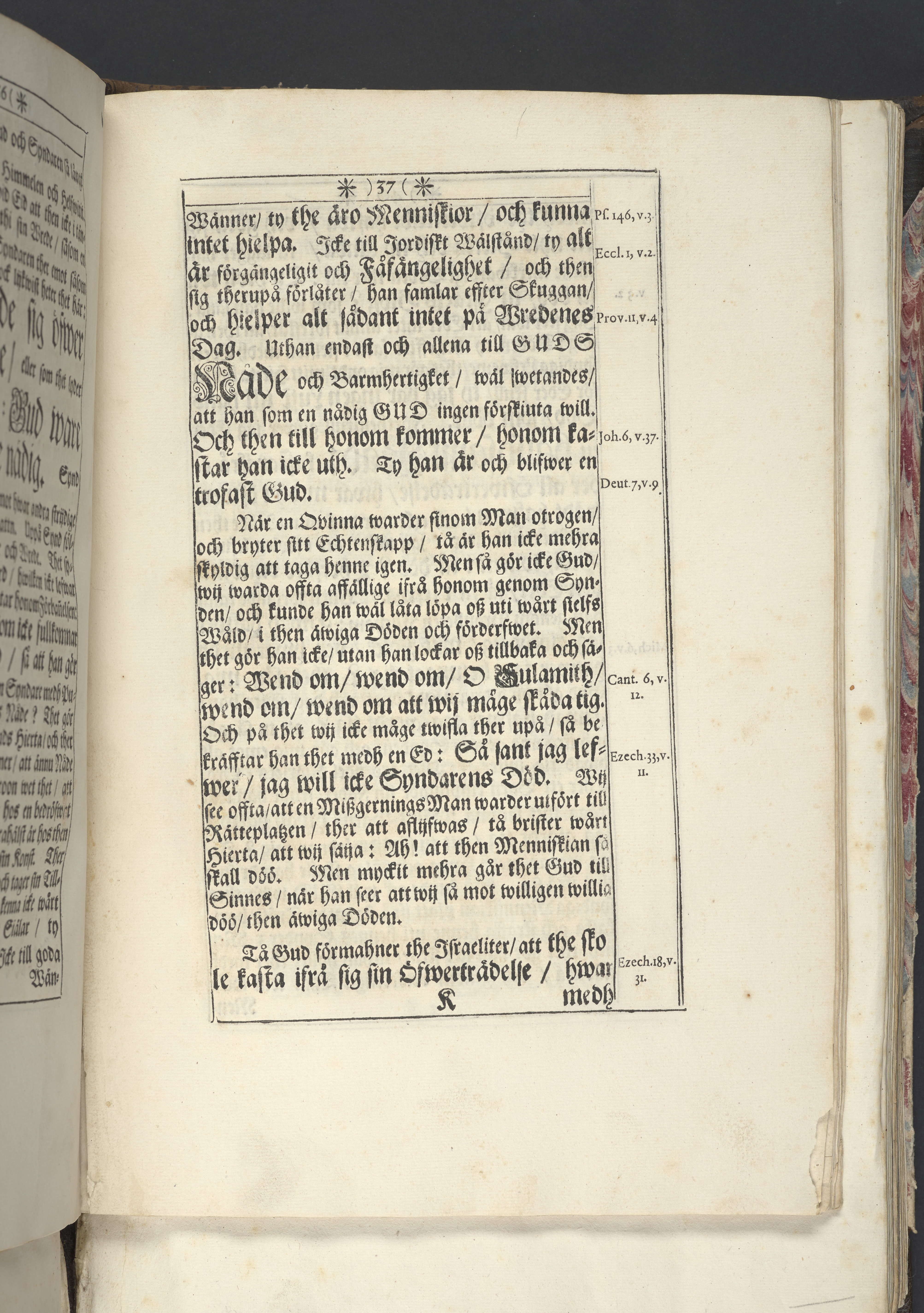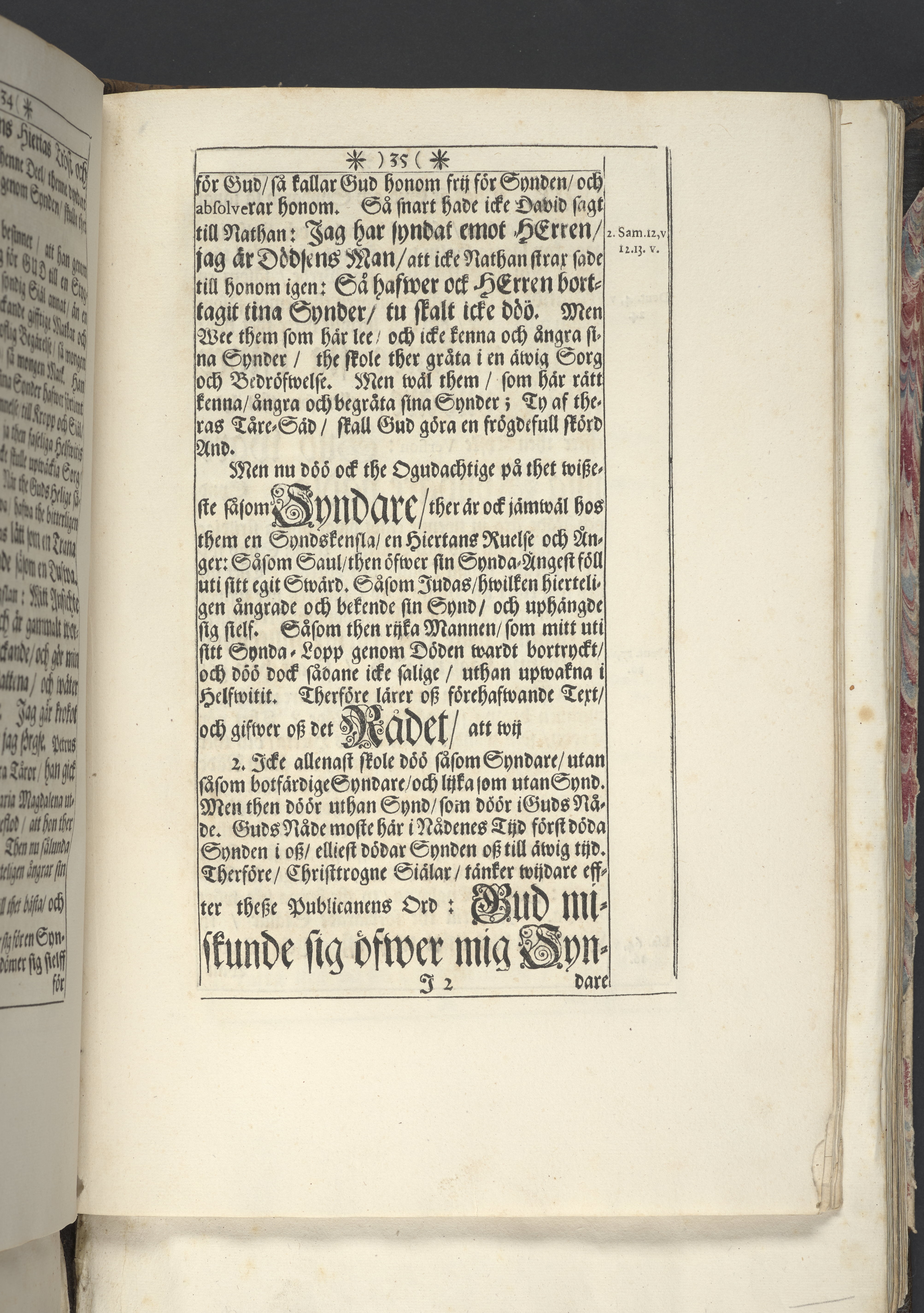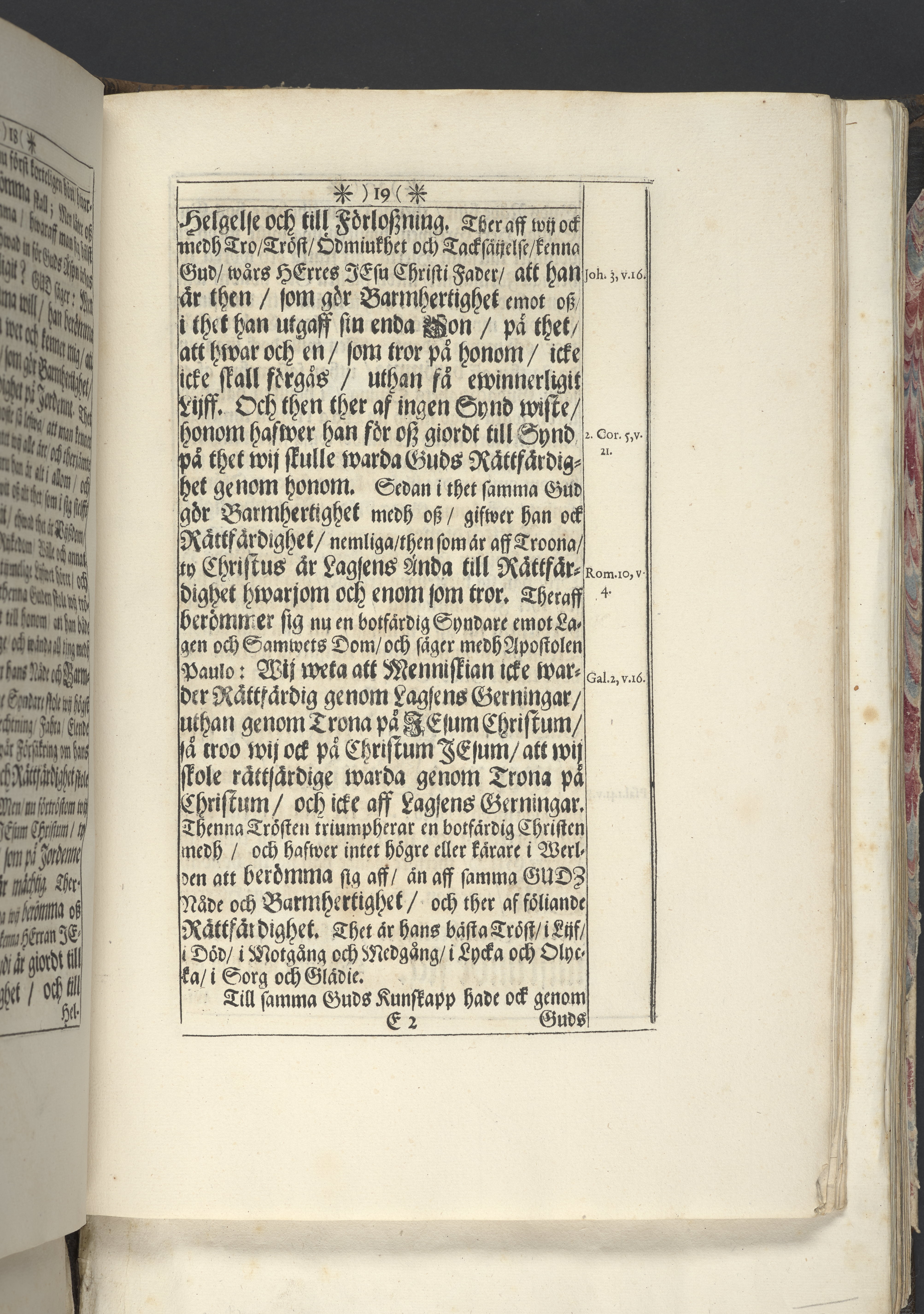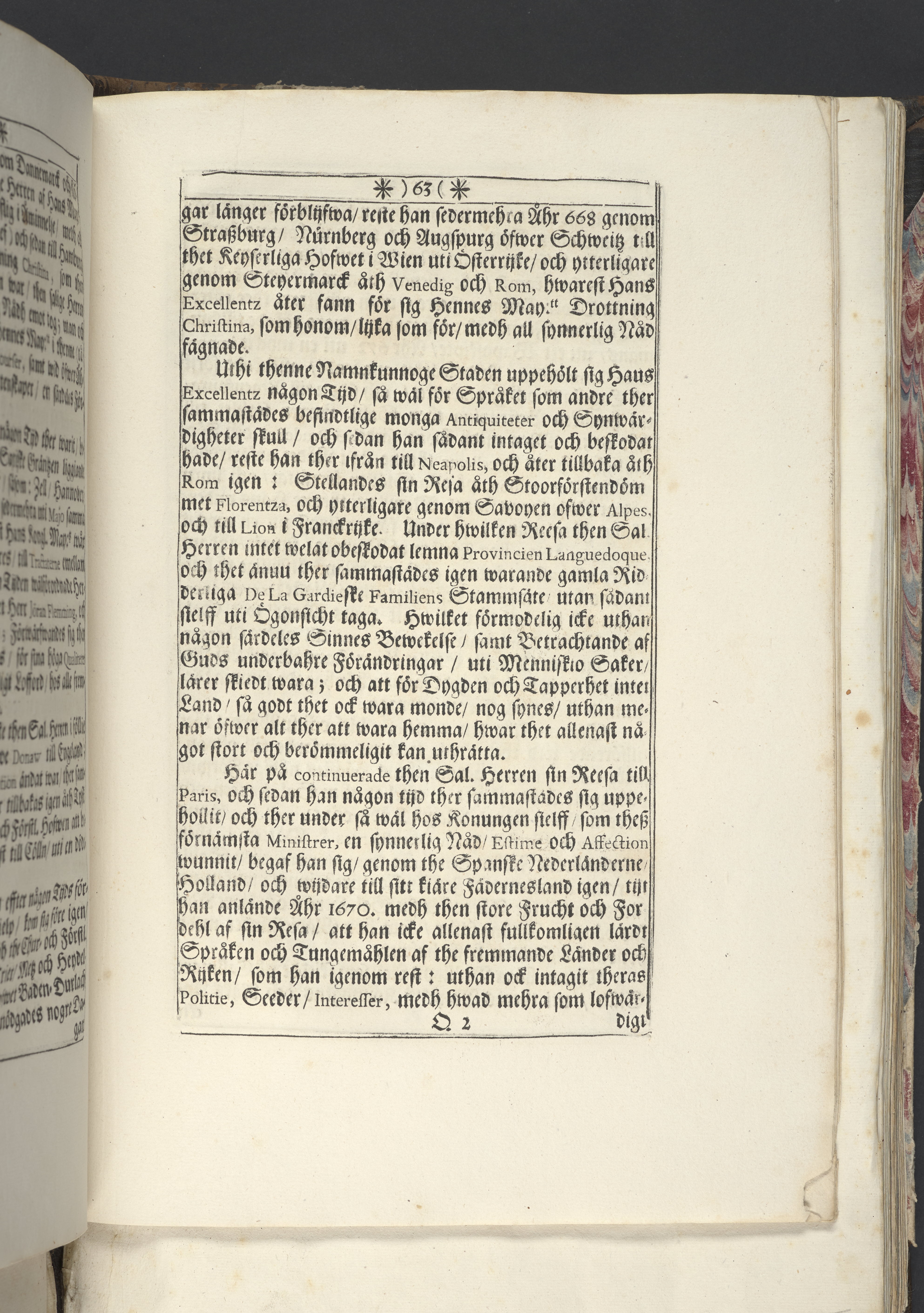 Band m. pärmar av marmorerat papper, rygg och hörn av pergament. Pärmfyllnad: trä.