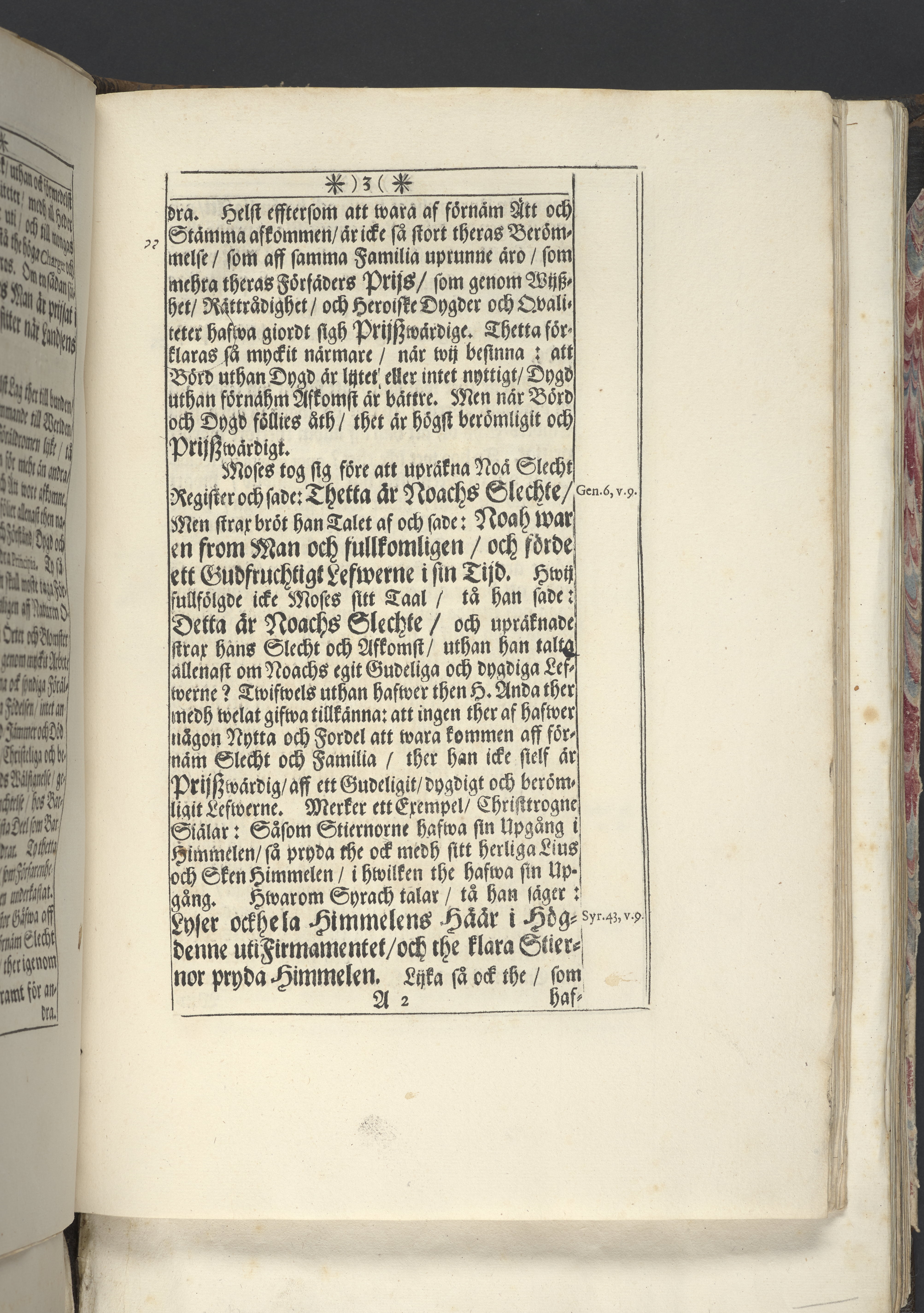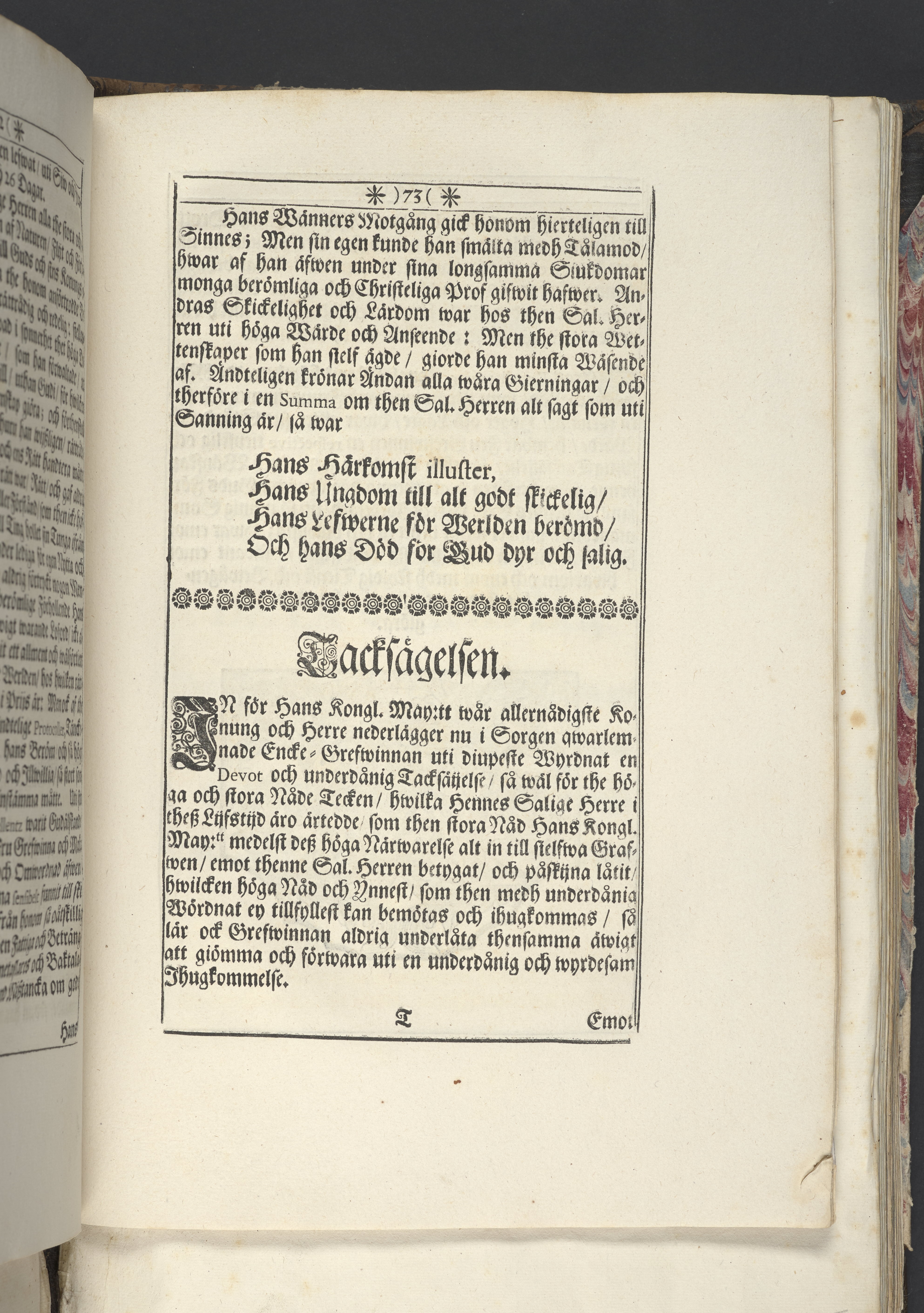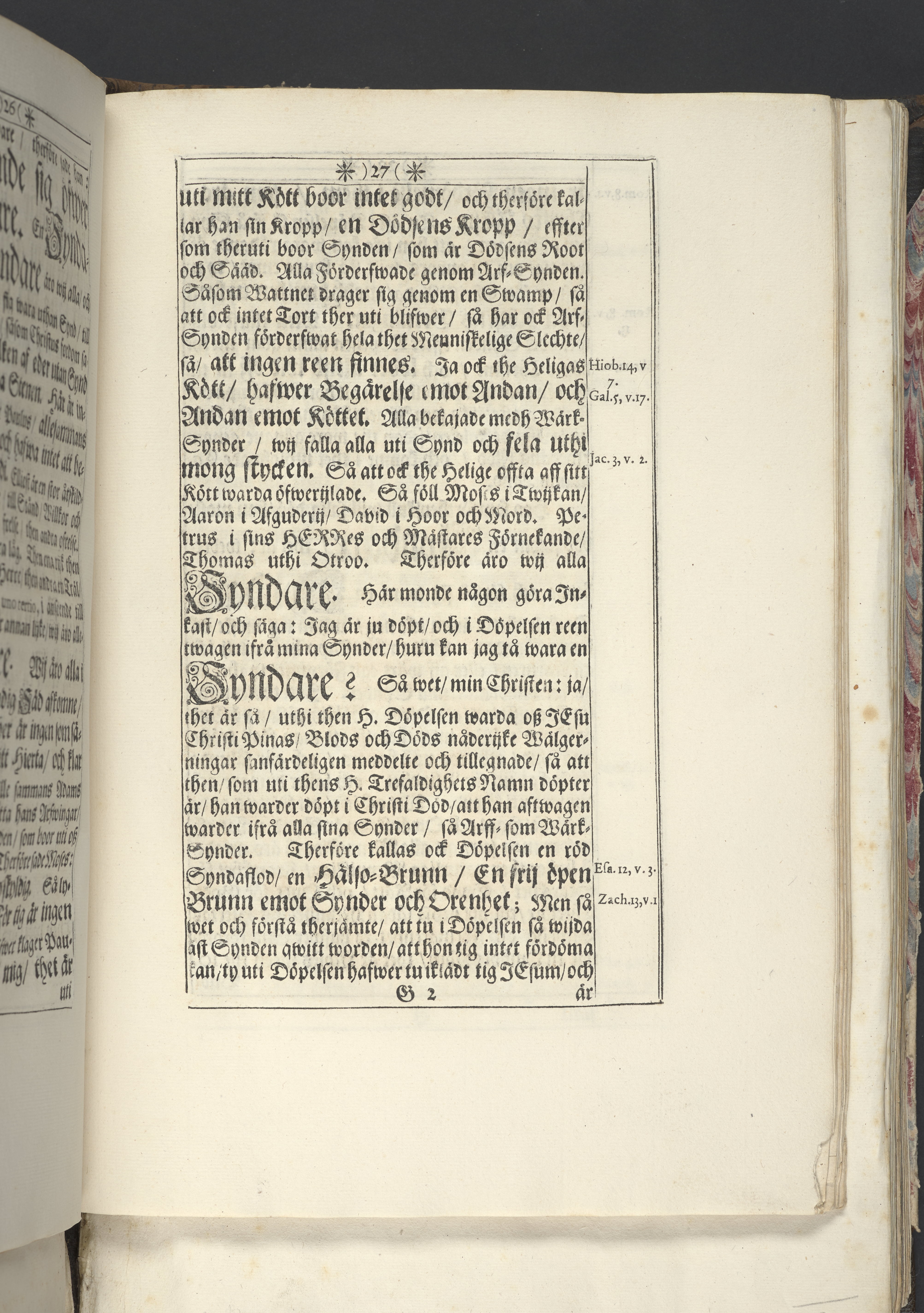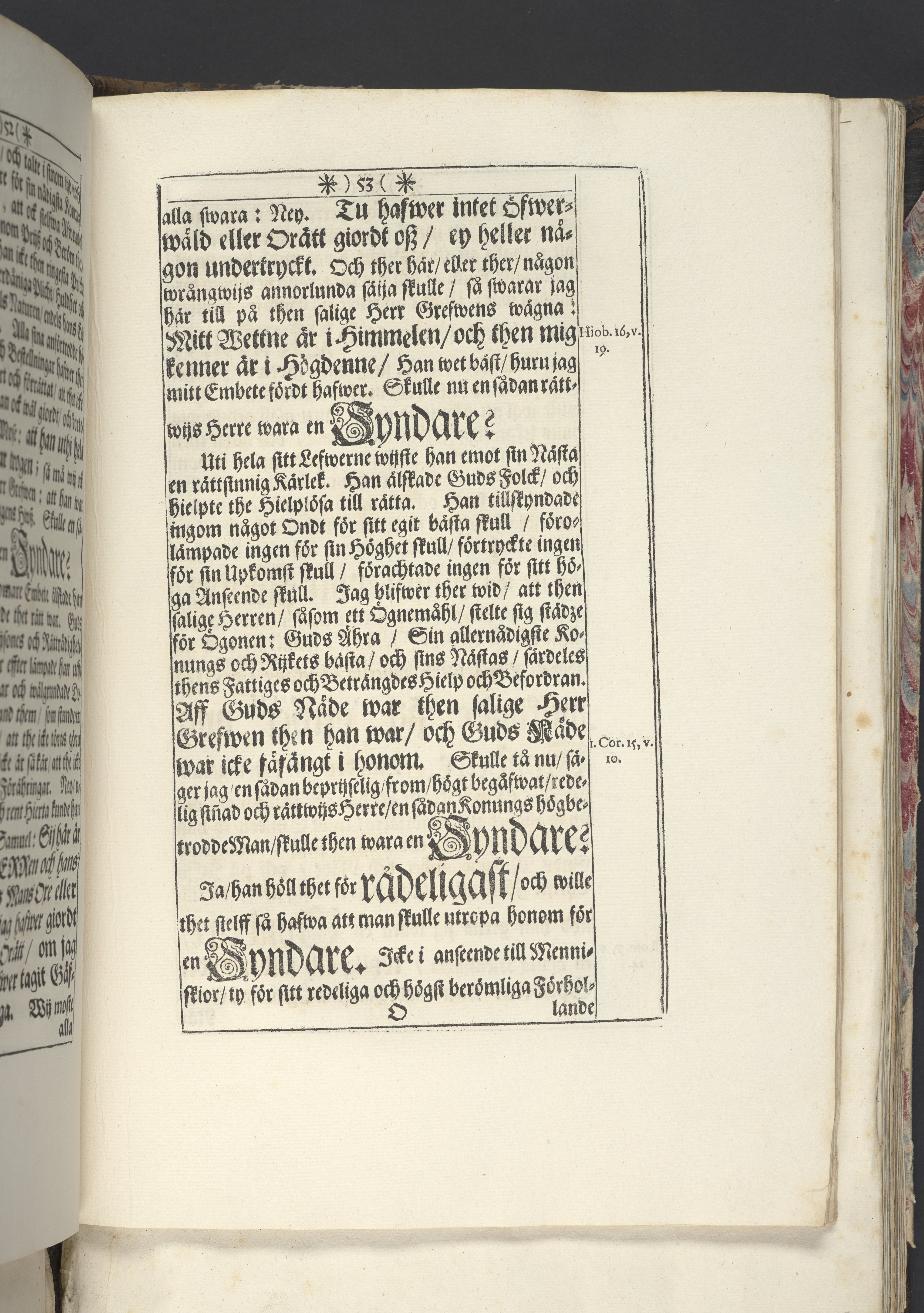 Band m. pärmar av marmorerat papper, rygg och hörn av pergament. Pärmfyllnad: trä.