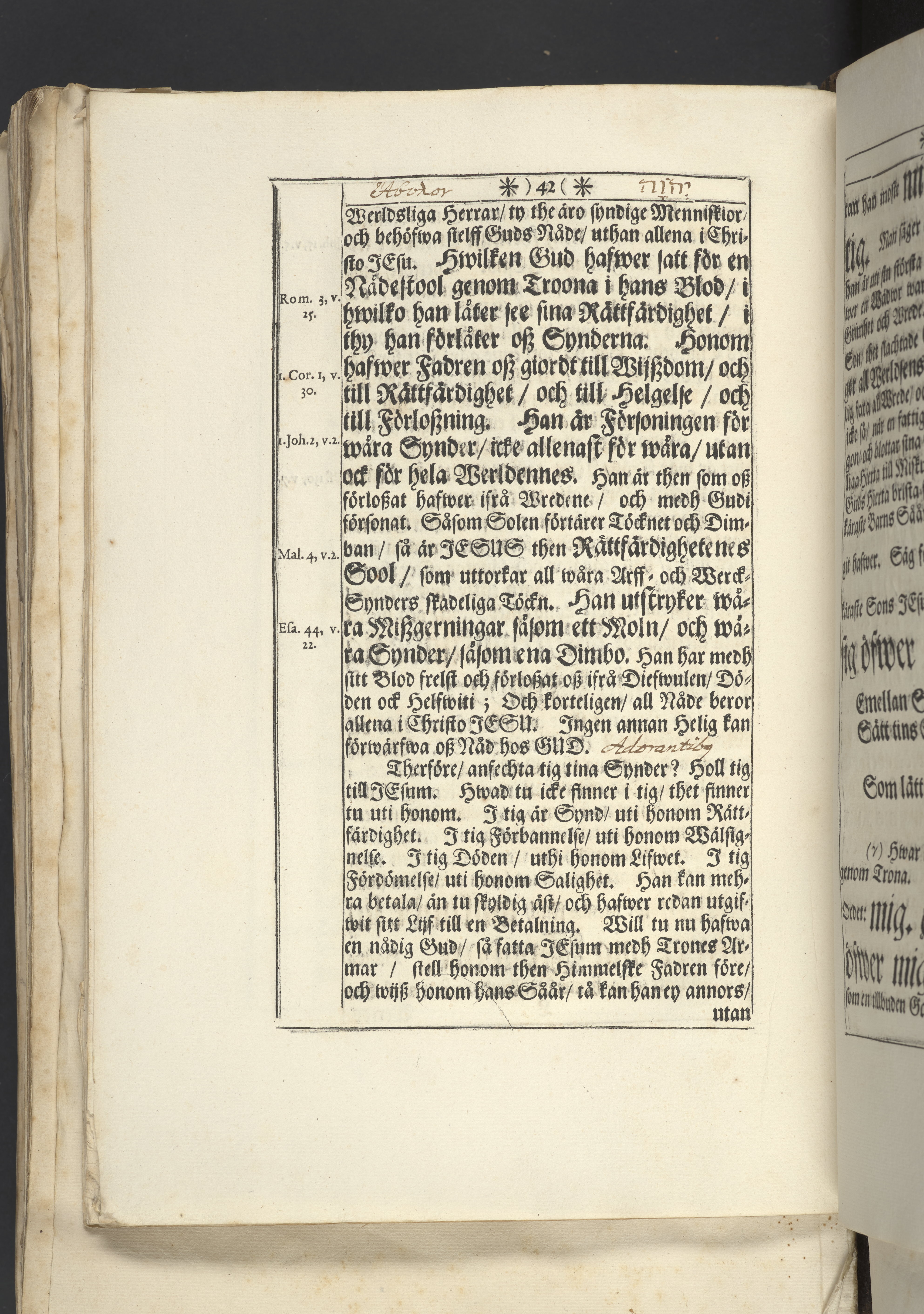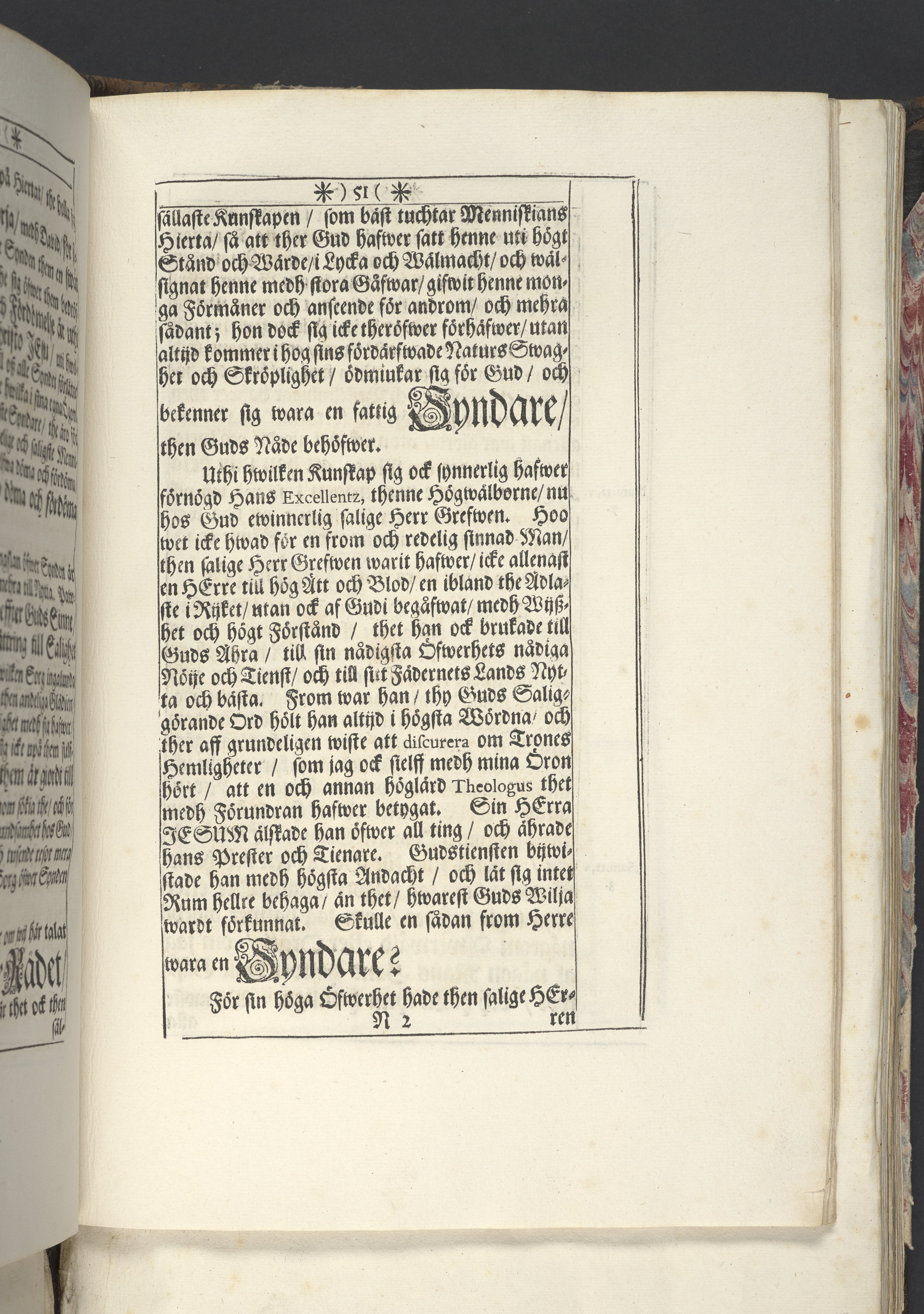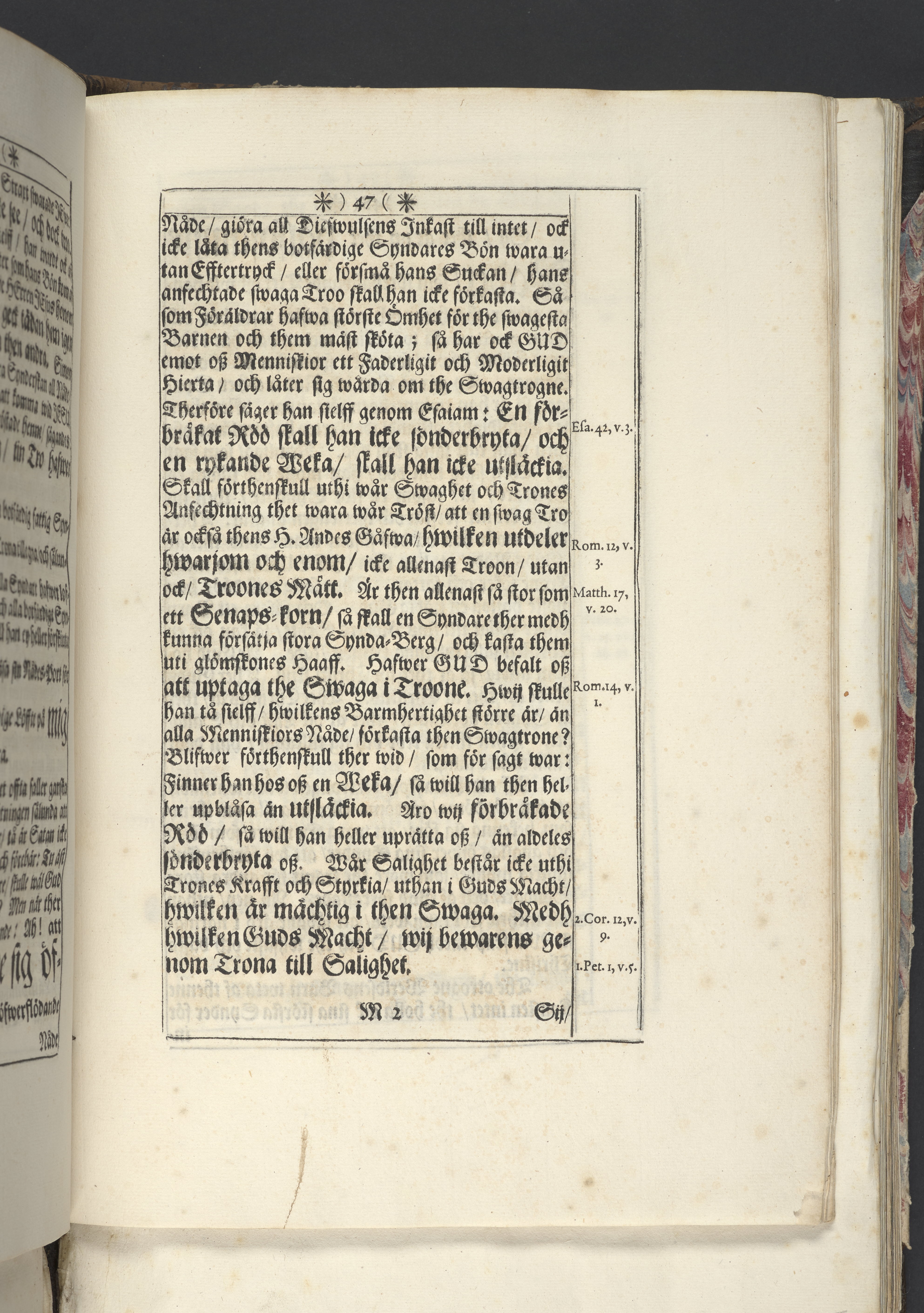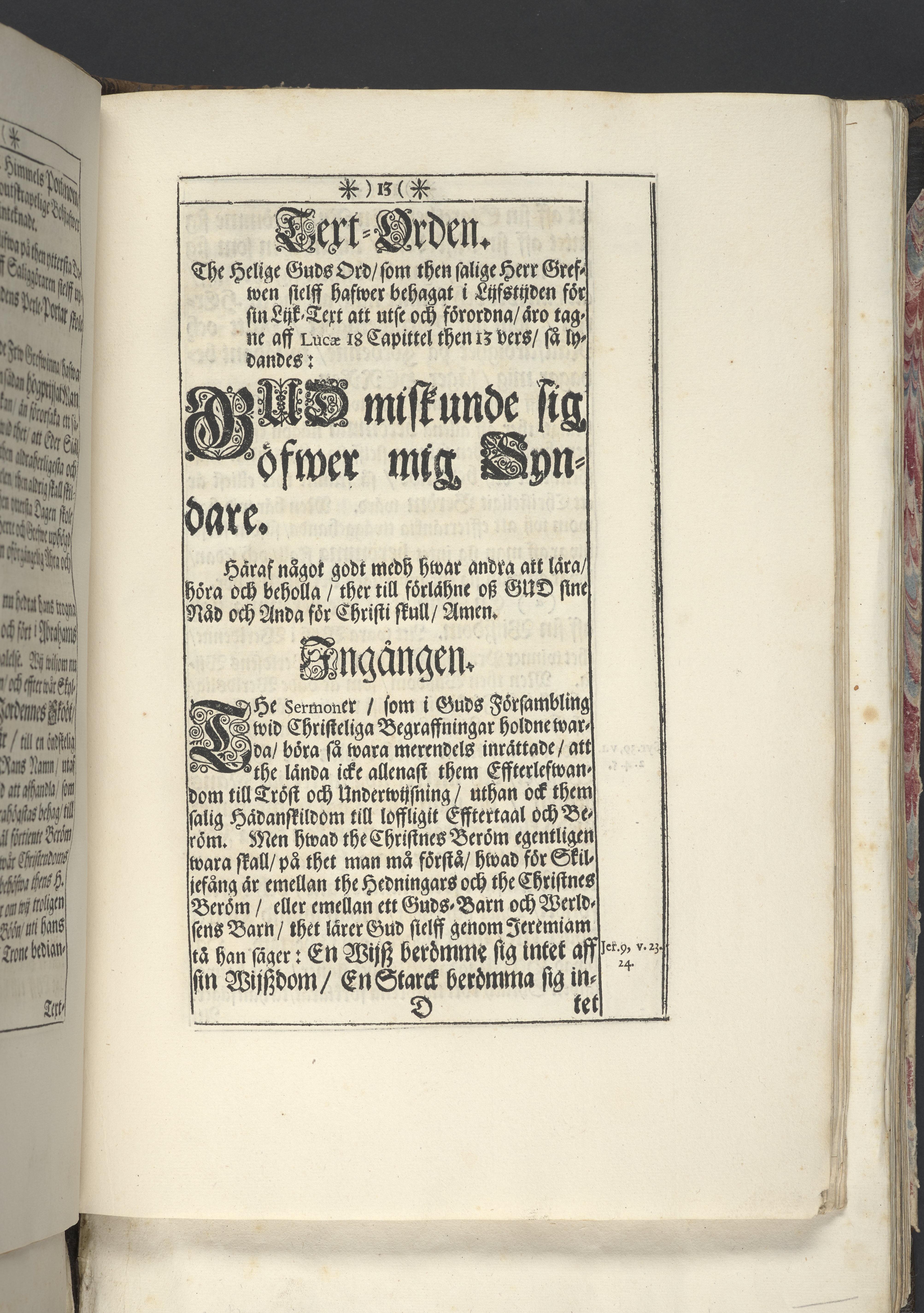 Band m. pärmar av marmorerat papper, rygg och hörn av pergament. Pärmfyllnad: trä.