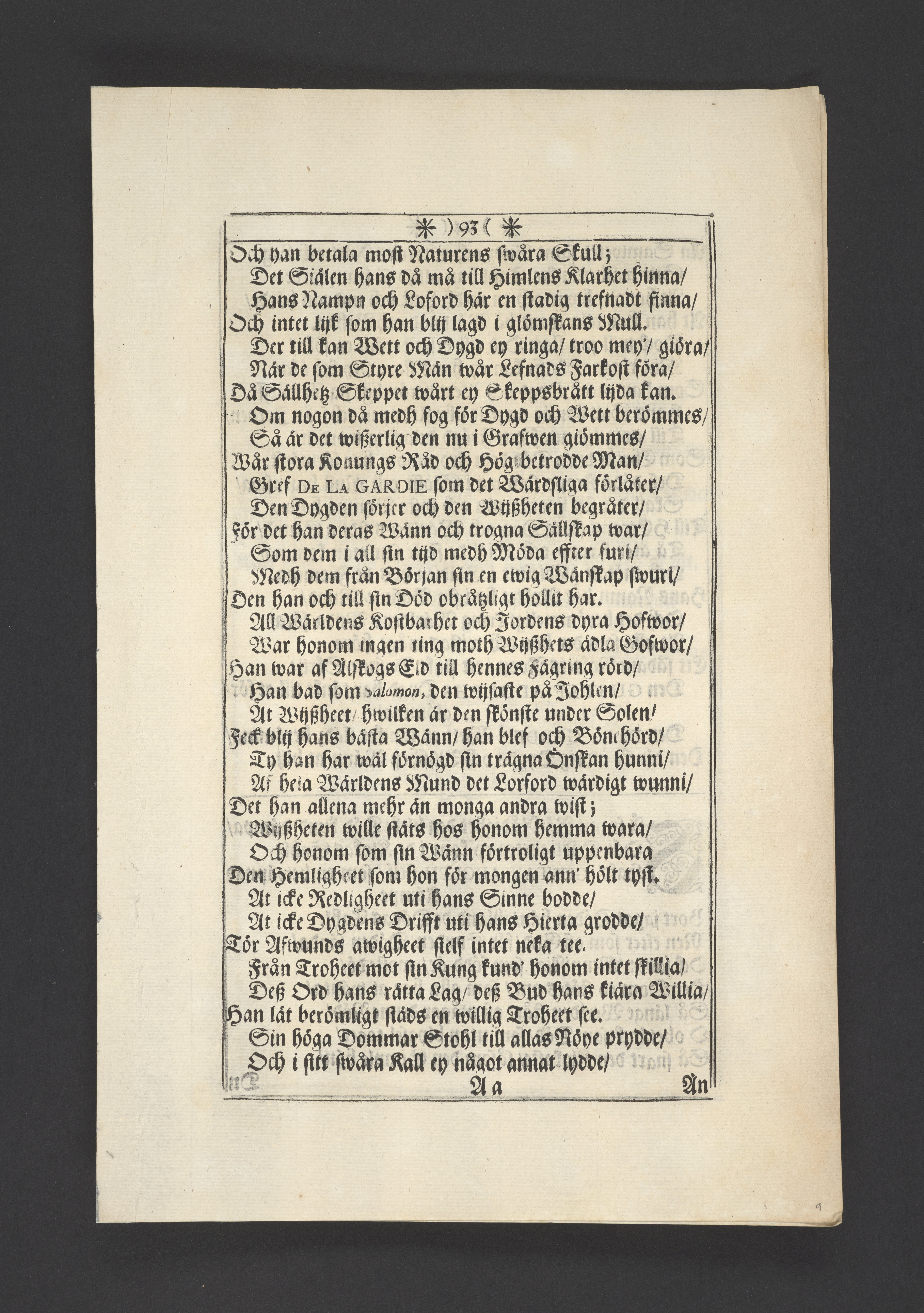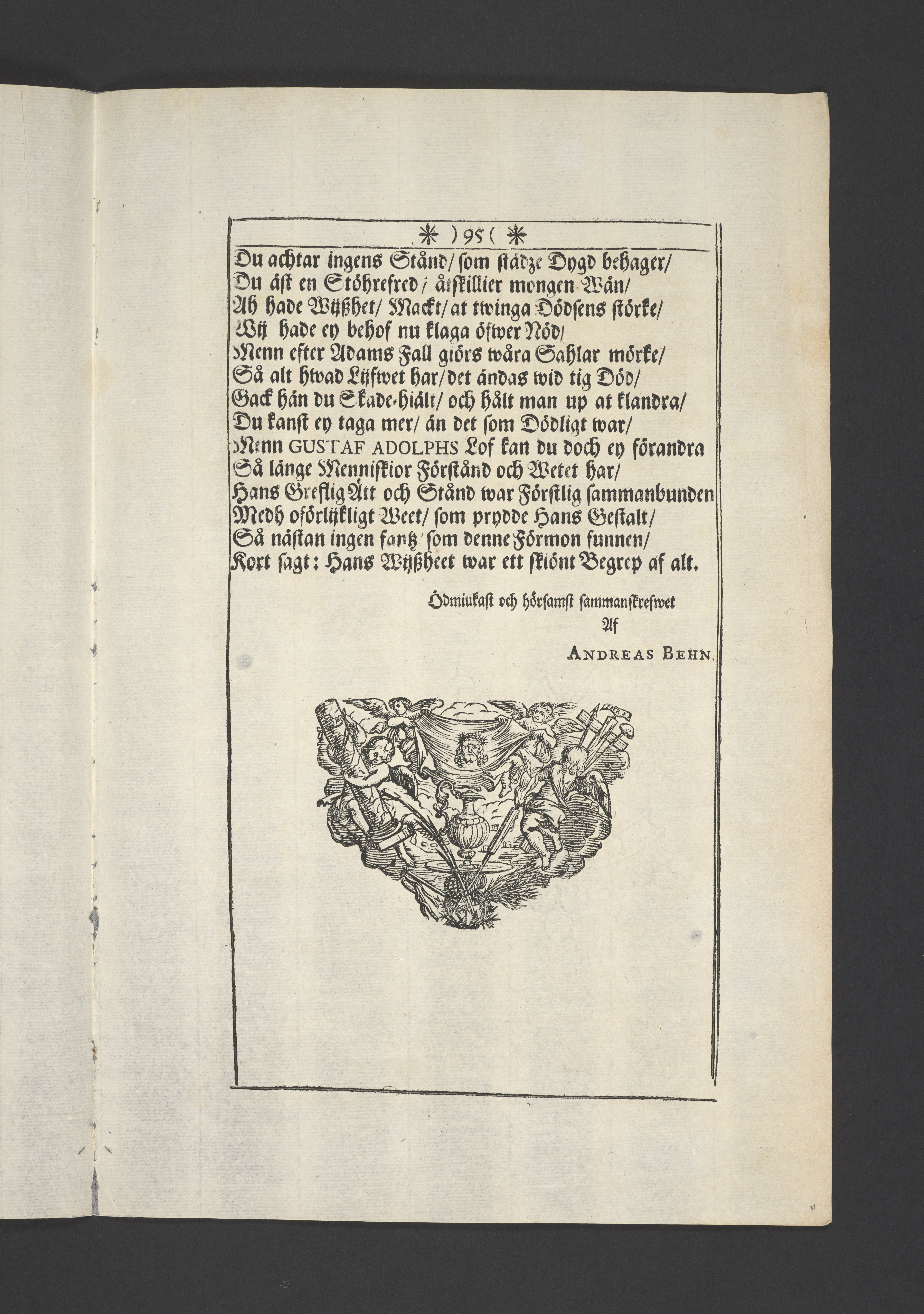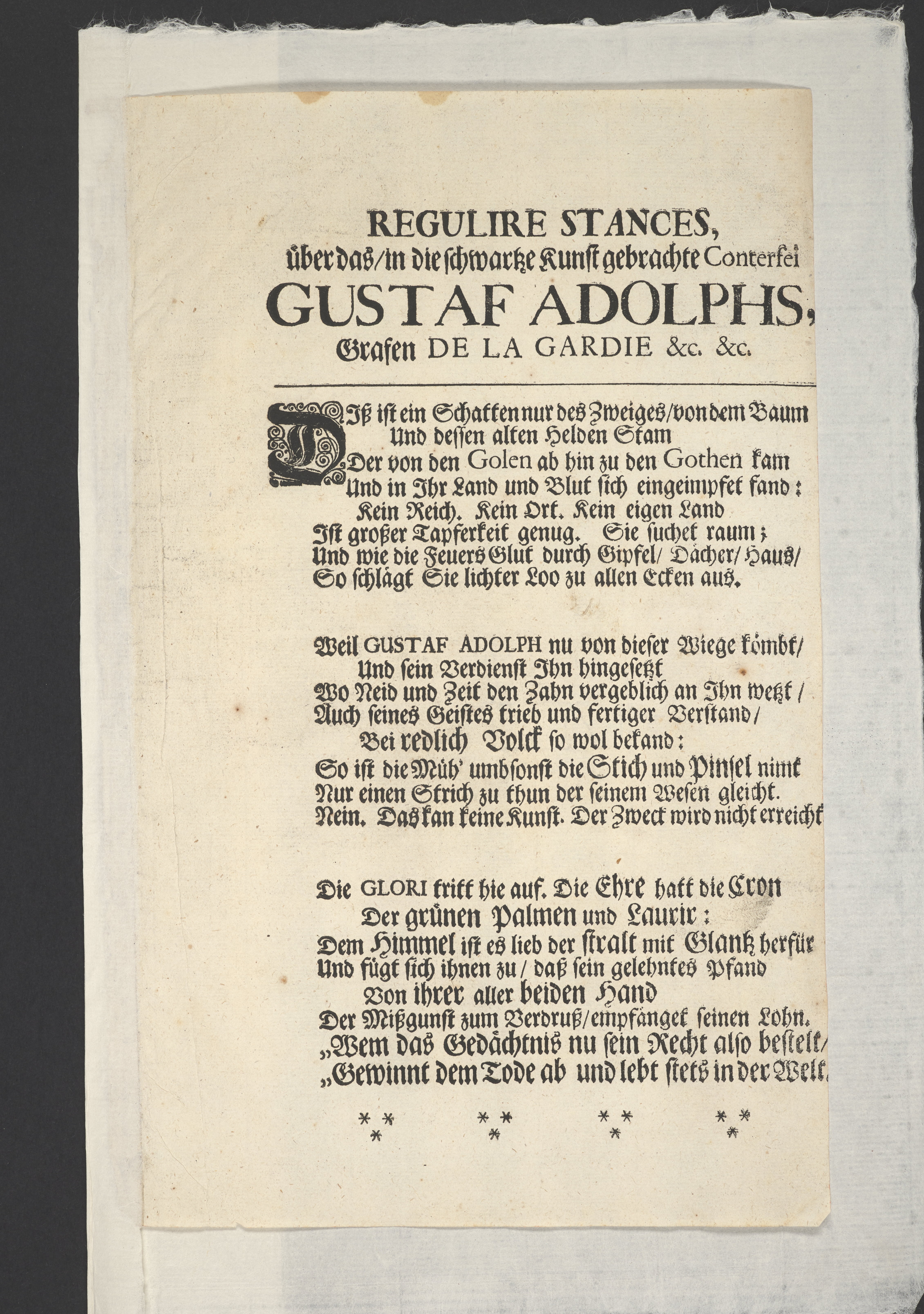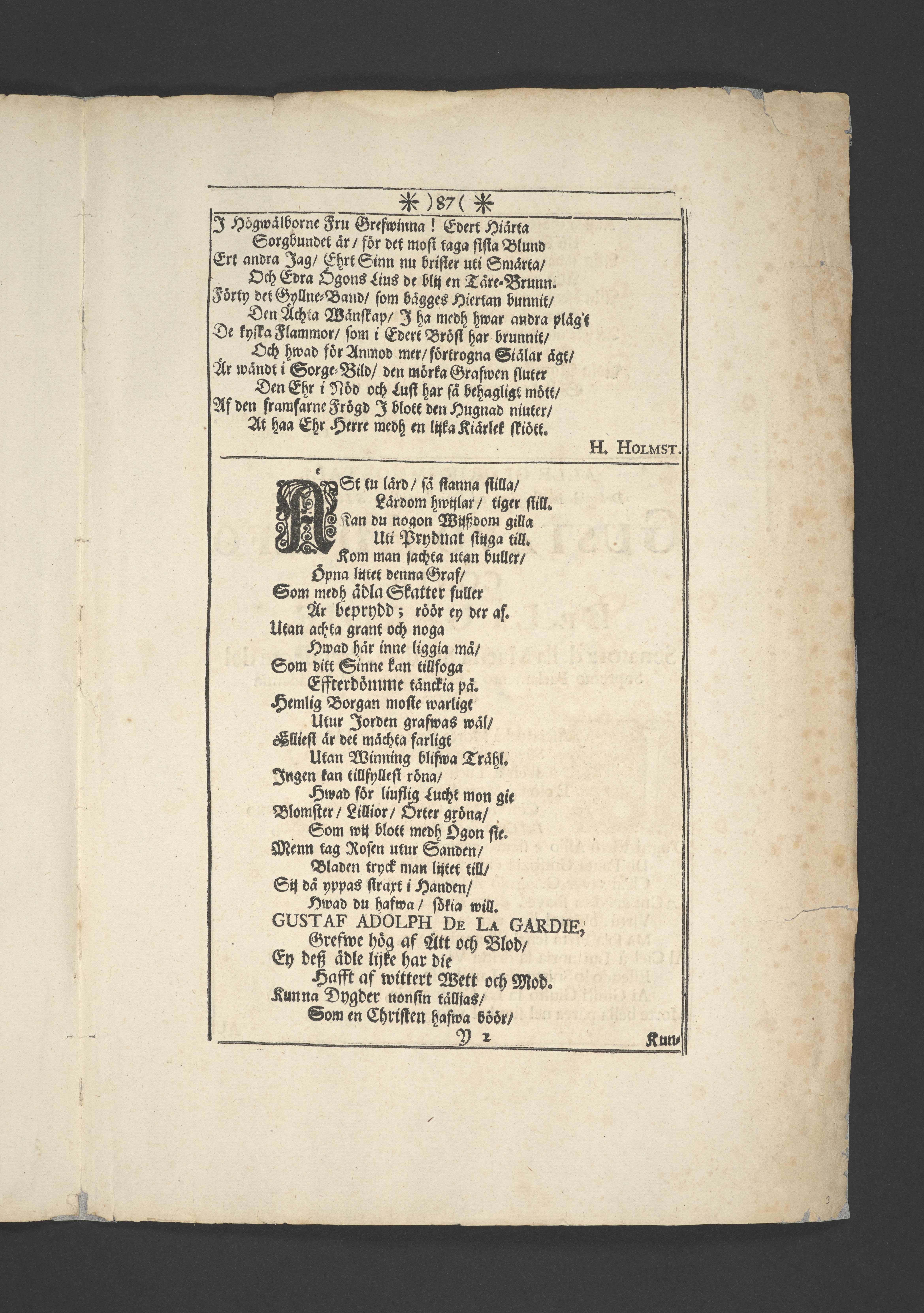 Thet hälsosamste rådet i lijfstijden christeligen fattat, på döds-sängen saligen practicerat ... aff then hög-wälbohrne grefven ... Gustav Adolph De la Gardie ... Anno 1695 den 20 october uti Kongl. Riddareholms. kyrkia... förmedelst en christelig lijk-sermon ... förklarat aff M. Johanne Vultejo, Stockholm, tryckt uti kongl. booktryckeriet, hoos sal. Wankijfs änckia.