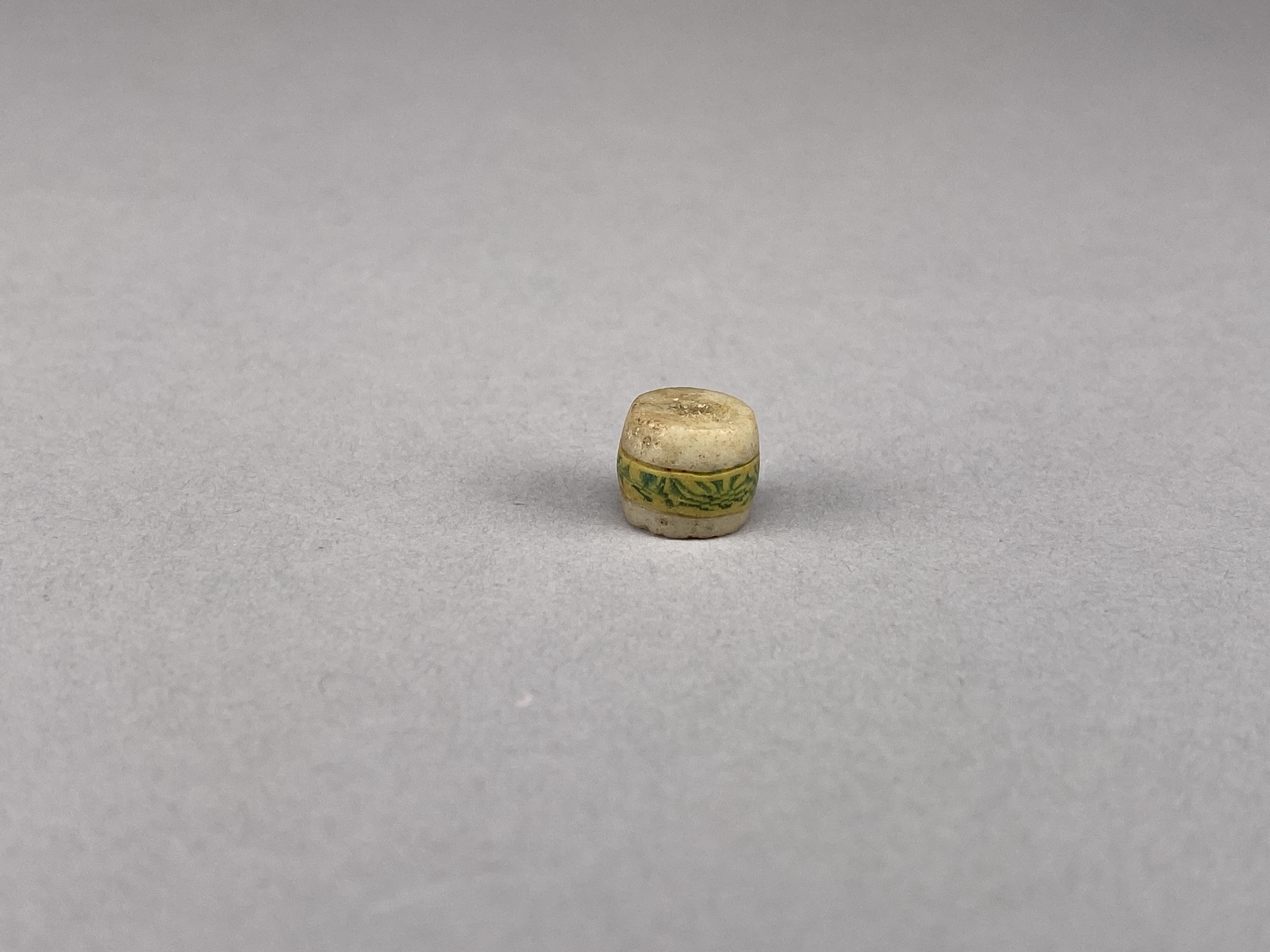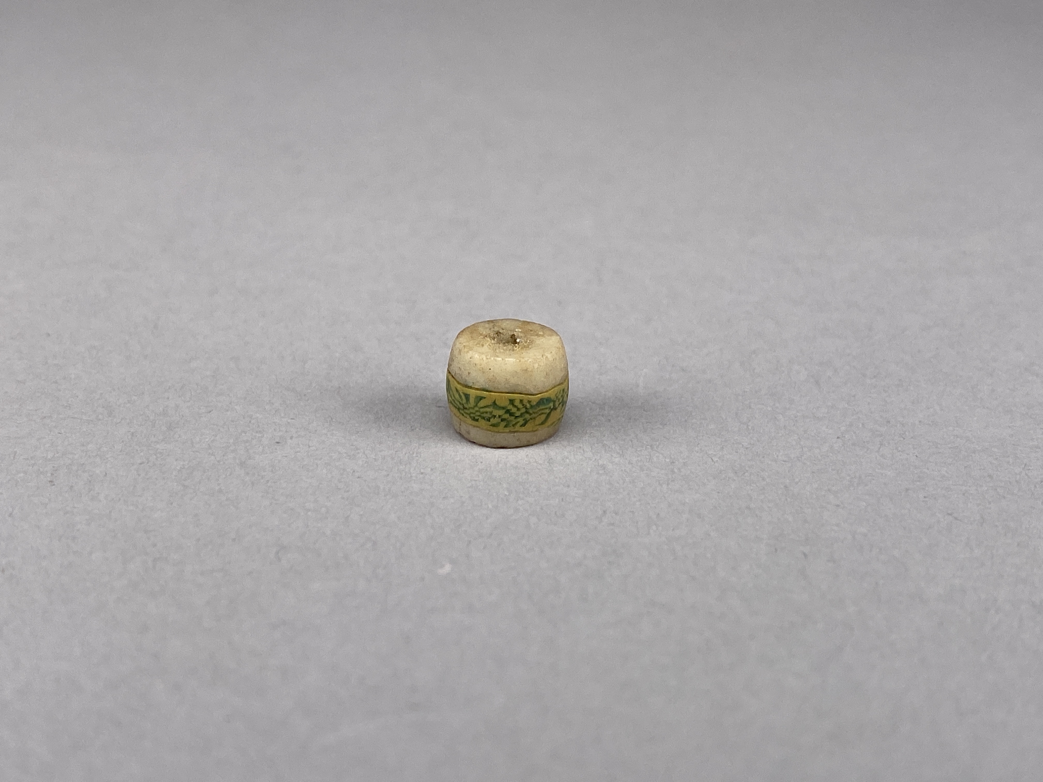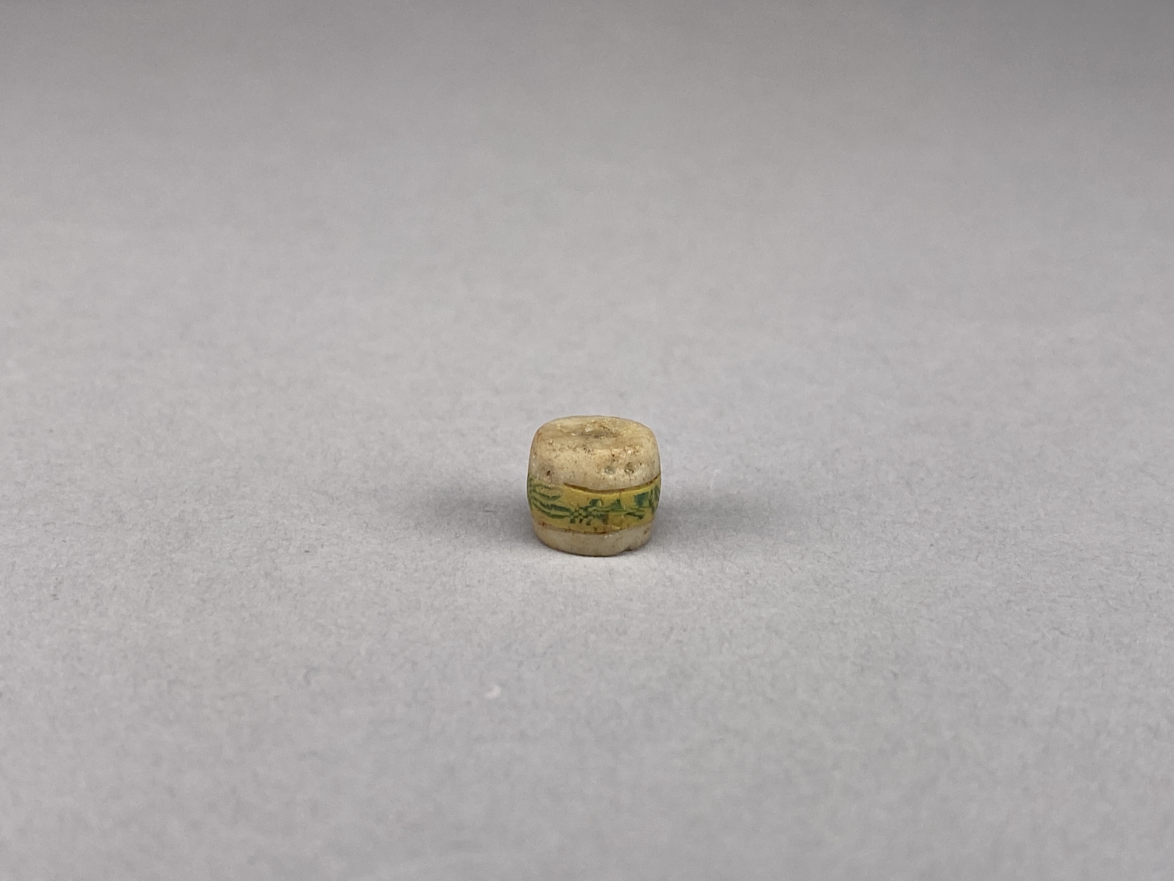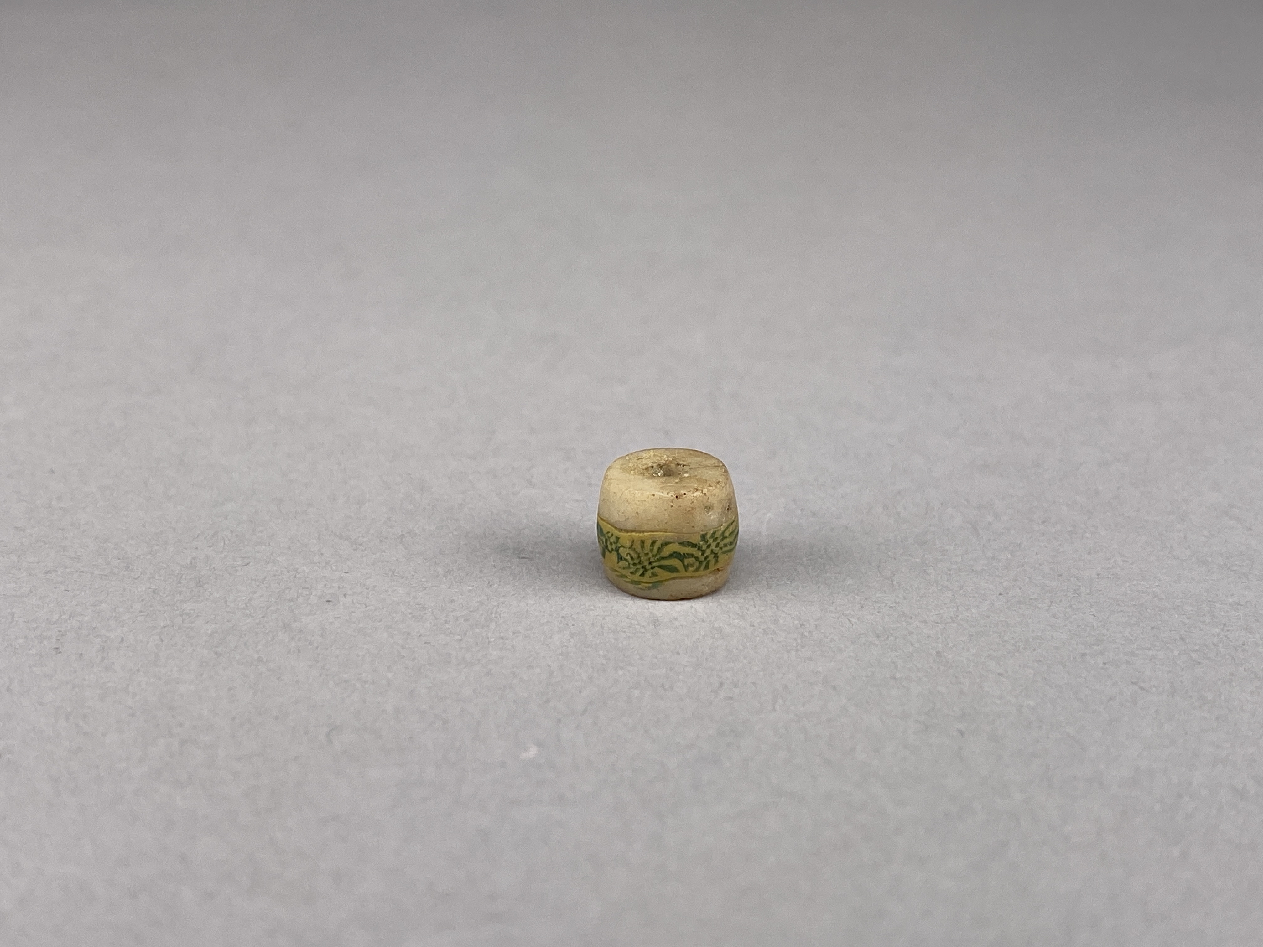 Vit glaspärla med polykroma inläggningar