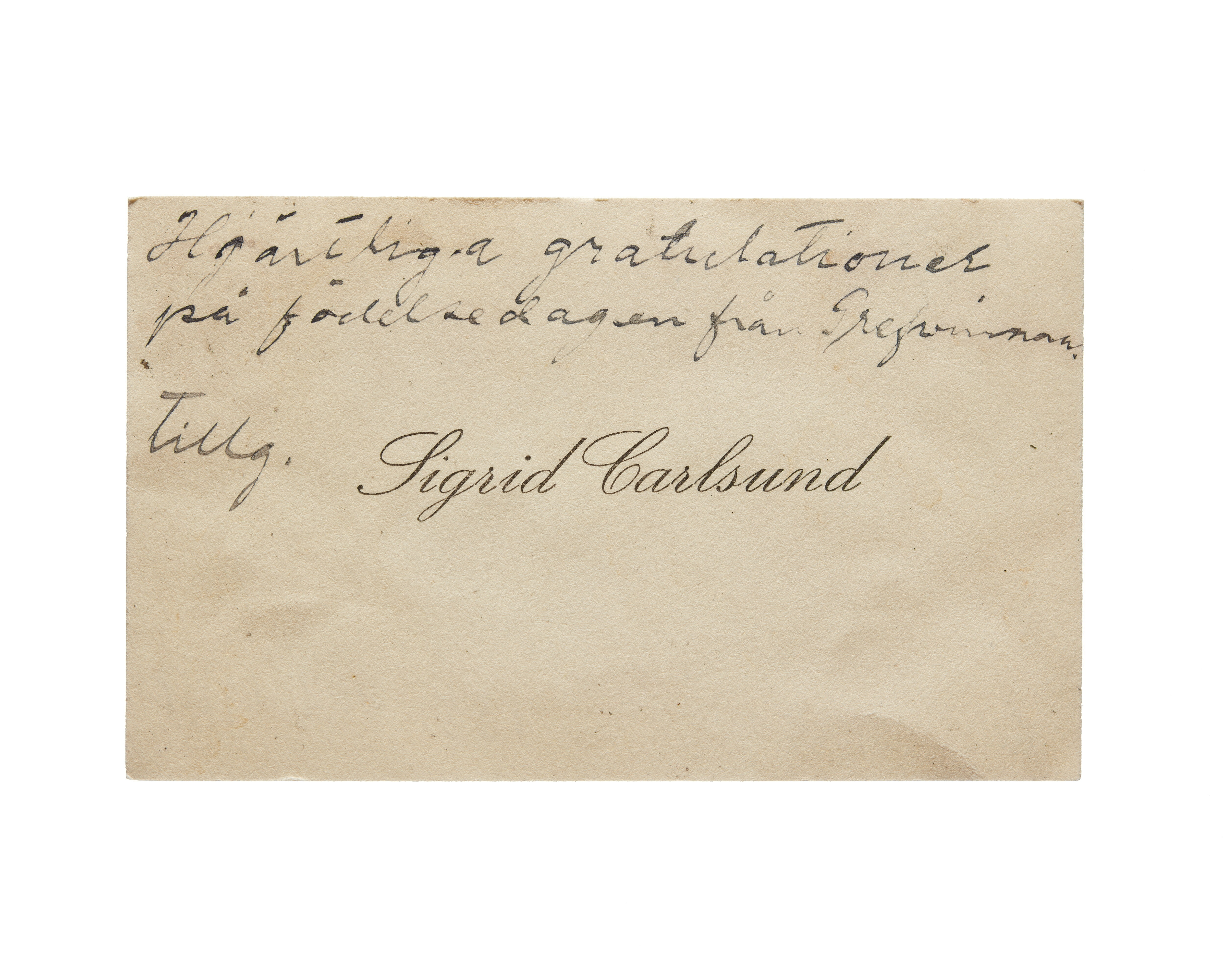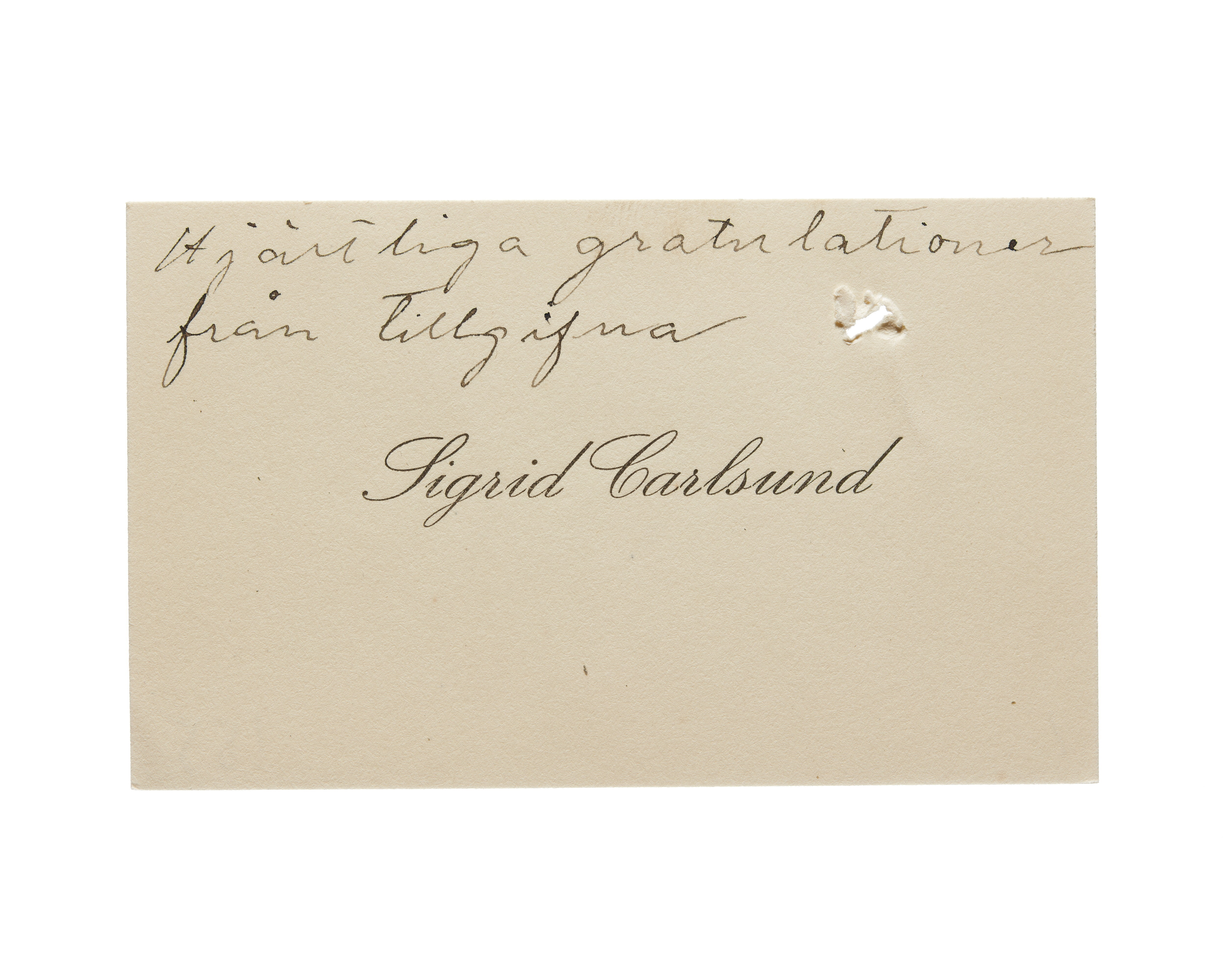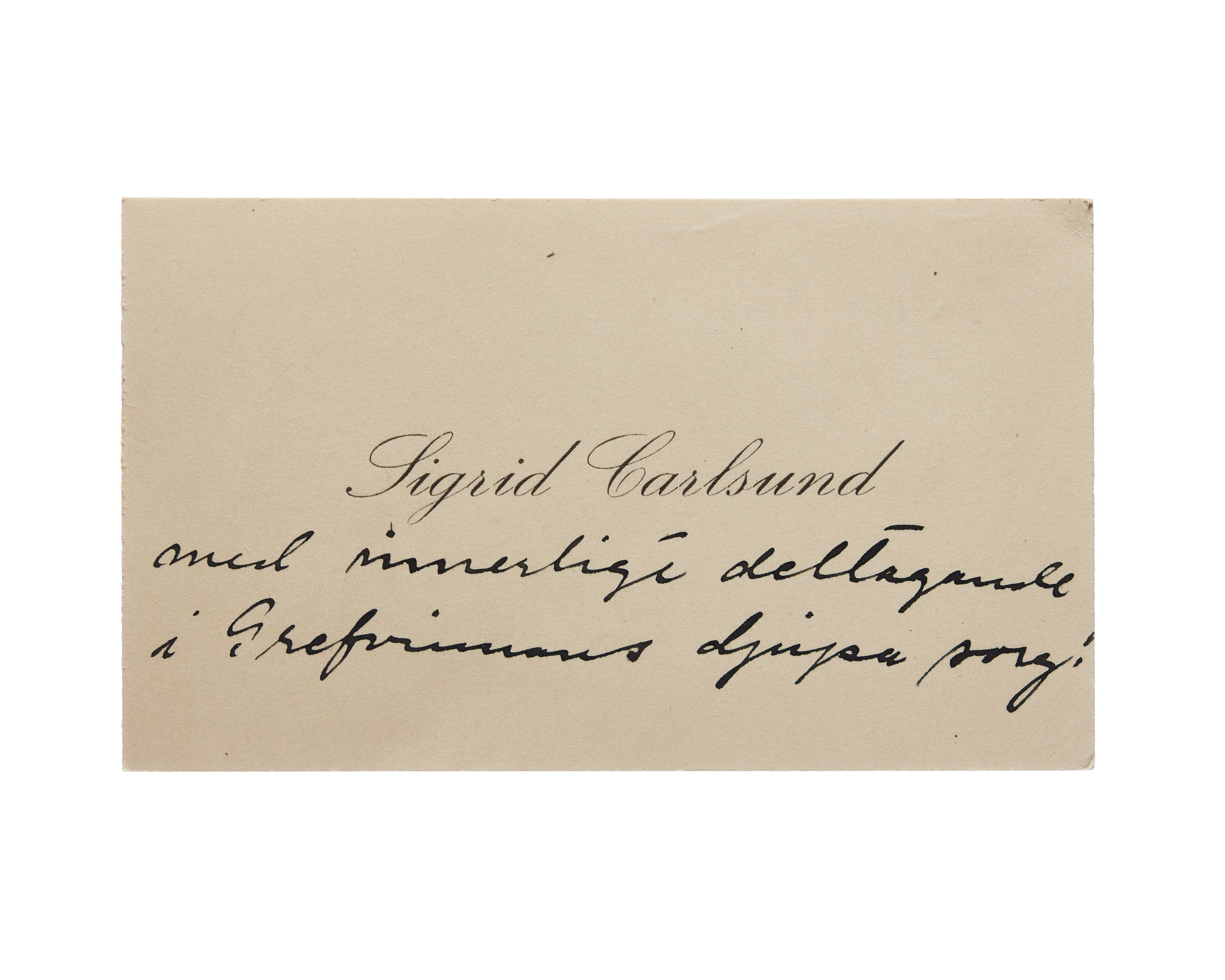 Visitkort från Sigrid Carlsund f. Lindquist.