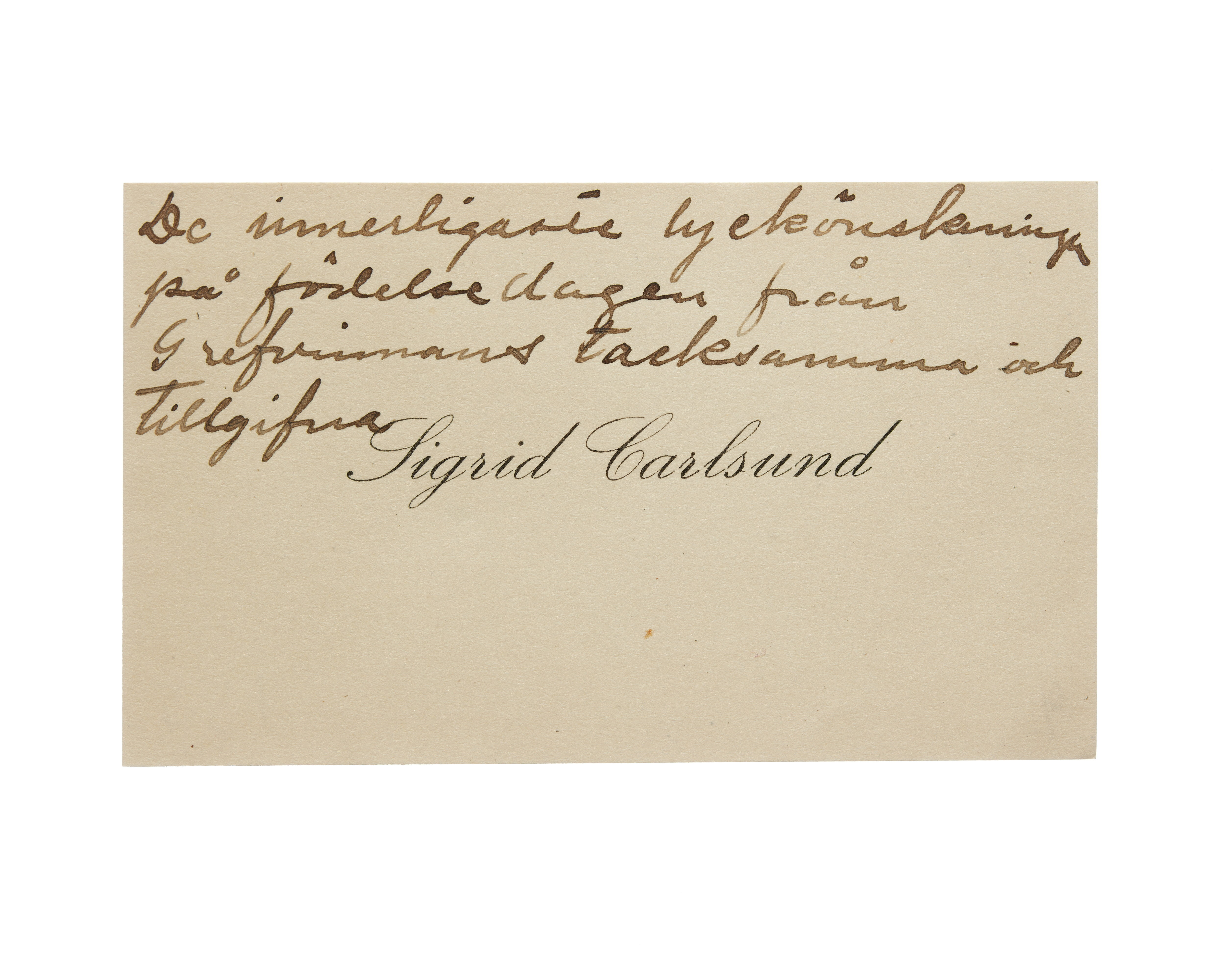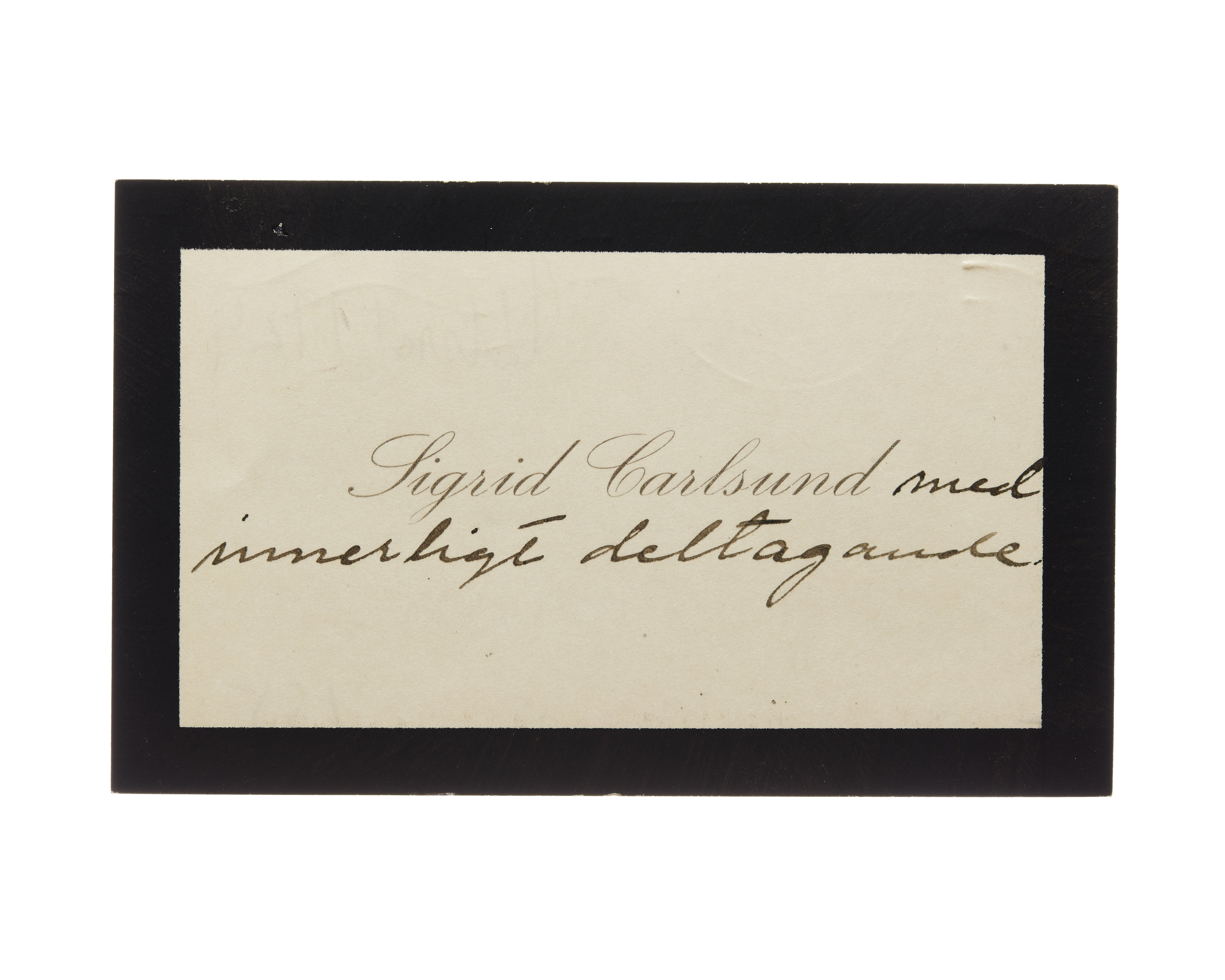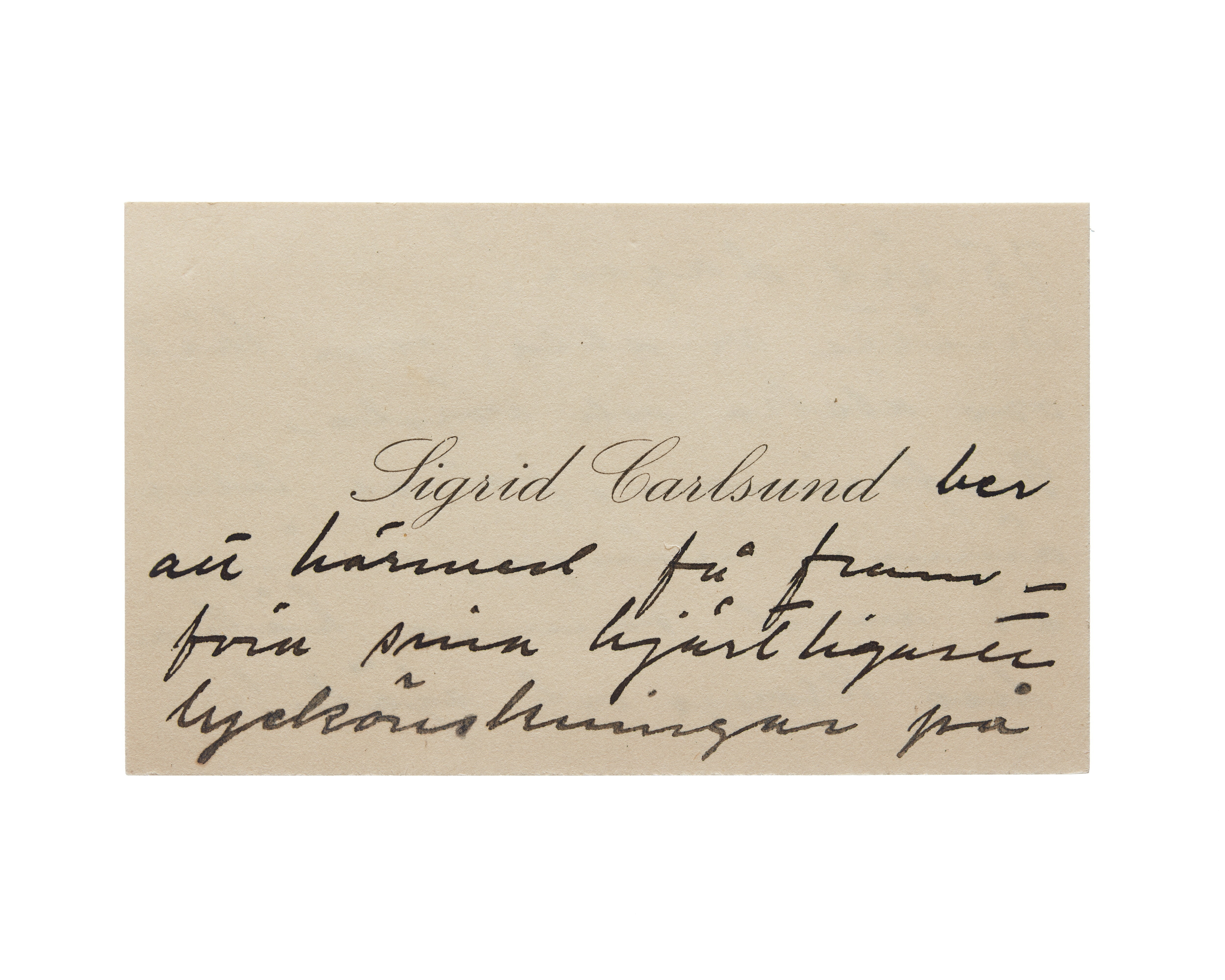 Visitkort från Sigrid Carlsund f. Lindquist.
