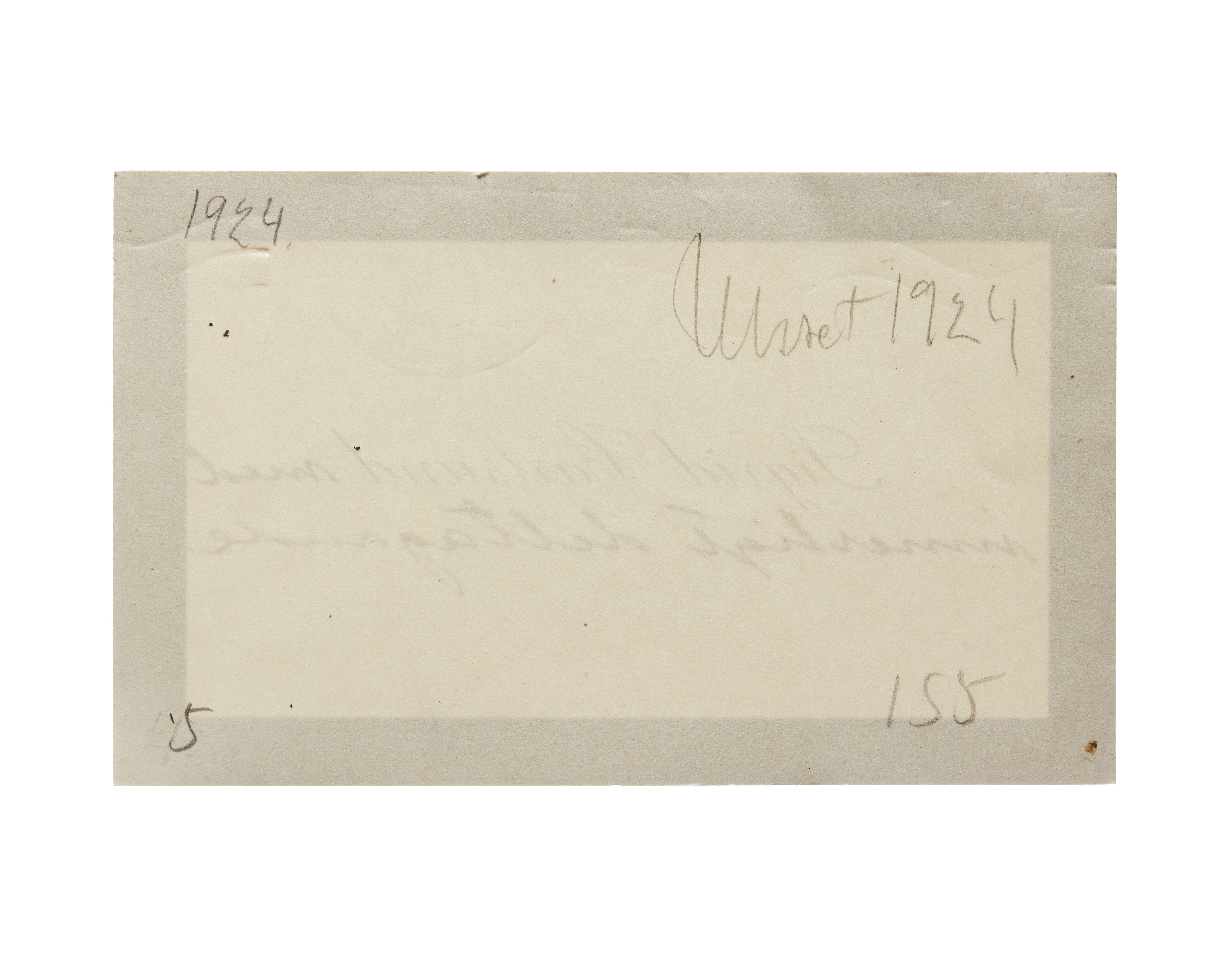 Sex visitkort från Sigrid Carlsund f. Lindquist. Första kortet är utan datum, handskrift (ovanför namnet) "Hjärtliga gratulationer från Lindguist". Andra kortet daterat 01.10.1919, handskrift "......". Tredje kortet daterat 1921, handskrift "....". Fjärde kortet daterat 1922, handskrift (ovanför namnet) "....". Femte kortet daterat 1921 samt sorgkant, handskrift (nedanför namnet) "....". Sjätte kortet daterat okt.1927, handskrift (ovanför namnet) " Hjärtliga gratulationer på födelse dagen från ....".