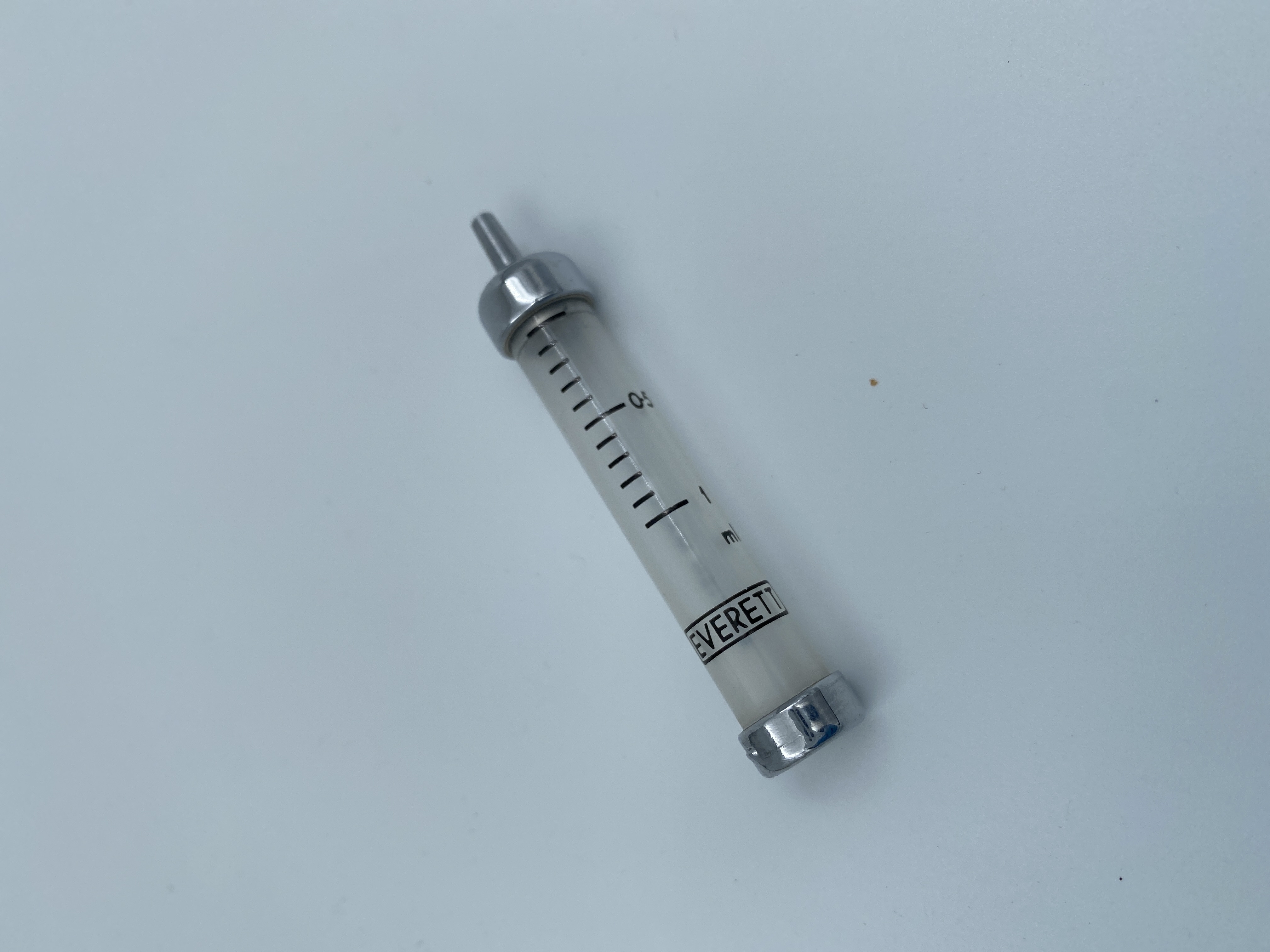 Spruta i Pyrex med tillhörande kanyl mm.