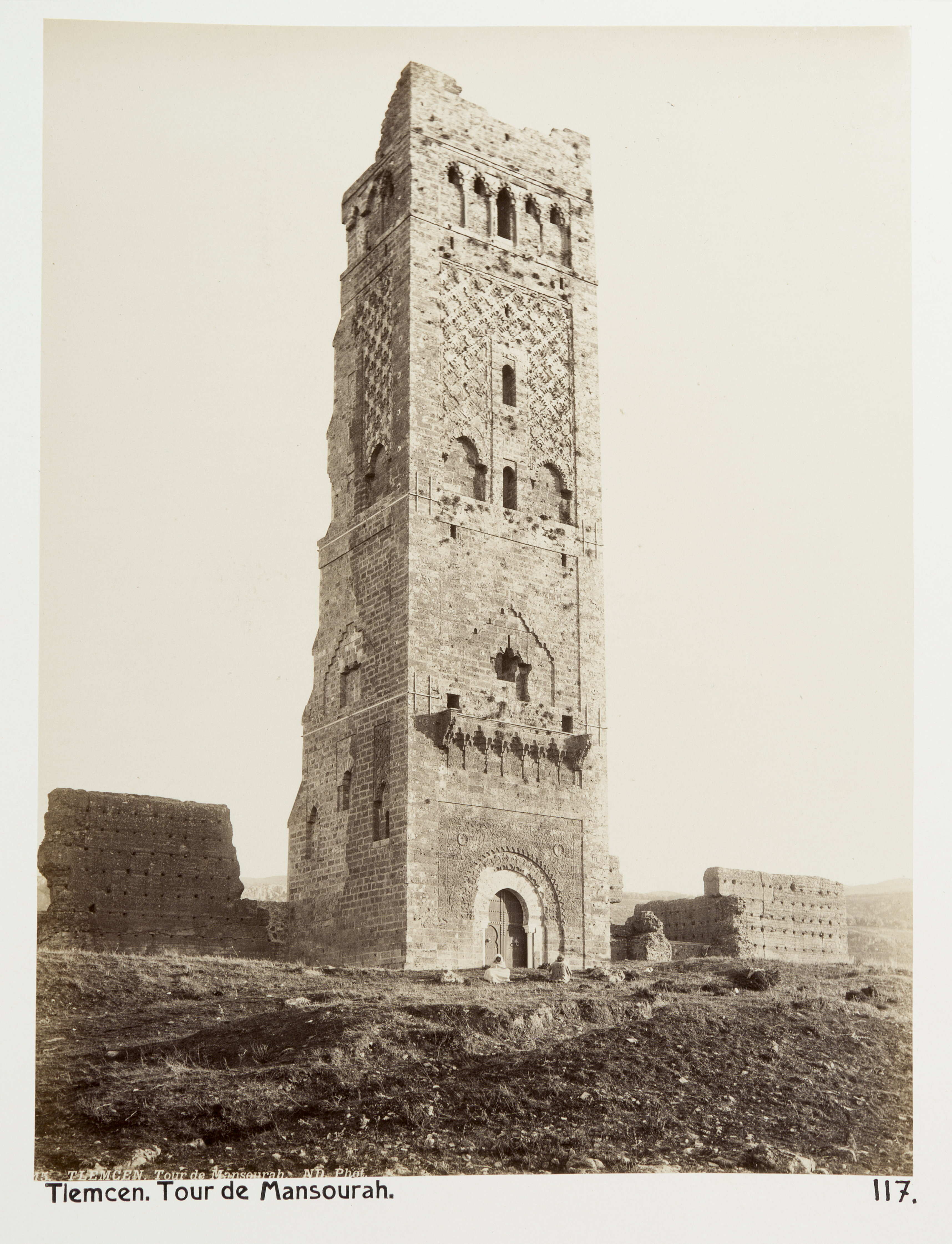 Tlemcen. Mansourah-tornet. Bilden är en dubblett till LXVI:F.122. Bilderna med inventarienummer LXVI:K.H.01.-137. är inköpta av Johanna Kempe, f. Wallis, i Alger, Biskra, Tunis, Constantine, Oran och Blidah vid hennes vistelse i nämnda städer tillsammans med sin dotter och svärson, Wilhelmina och Walther von Hallwyl, dotterdottern Irma samt fröknarna Caroline Pflaum och Ida Uhse under deras resa genom Algeriet och Tunisien samt åter över Schweiz 11 februari - 19 maj 1889. Förestående uppgifter lämnade med ledning av fröken Ida Uhses Reseanteckningar. Vissa av bilderna är dubbletter till bilder i inventarienummerserien LXVI:F.01.-138. som köptes in av Wilhelmina von Hallwyl under samma resa.