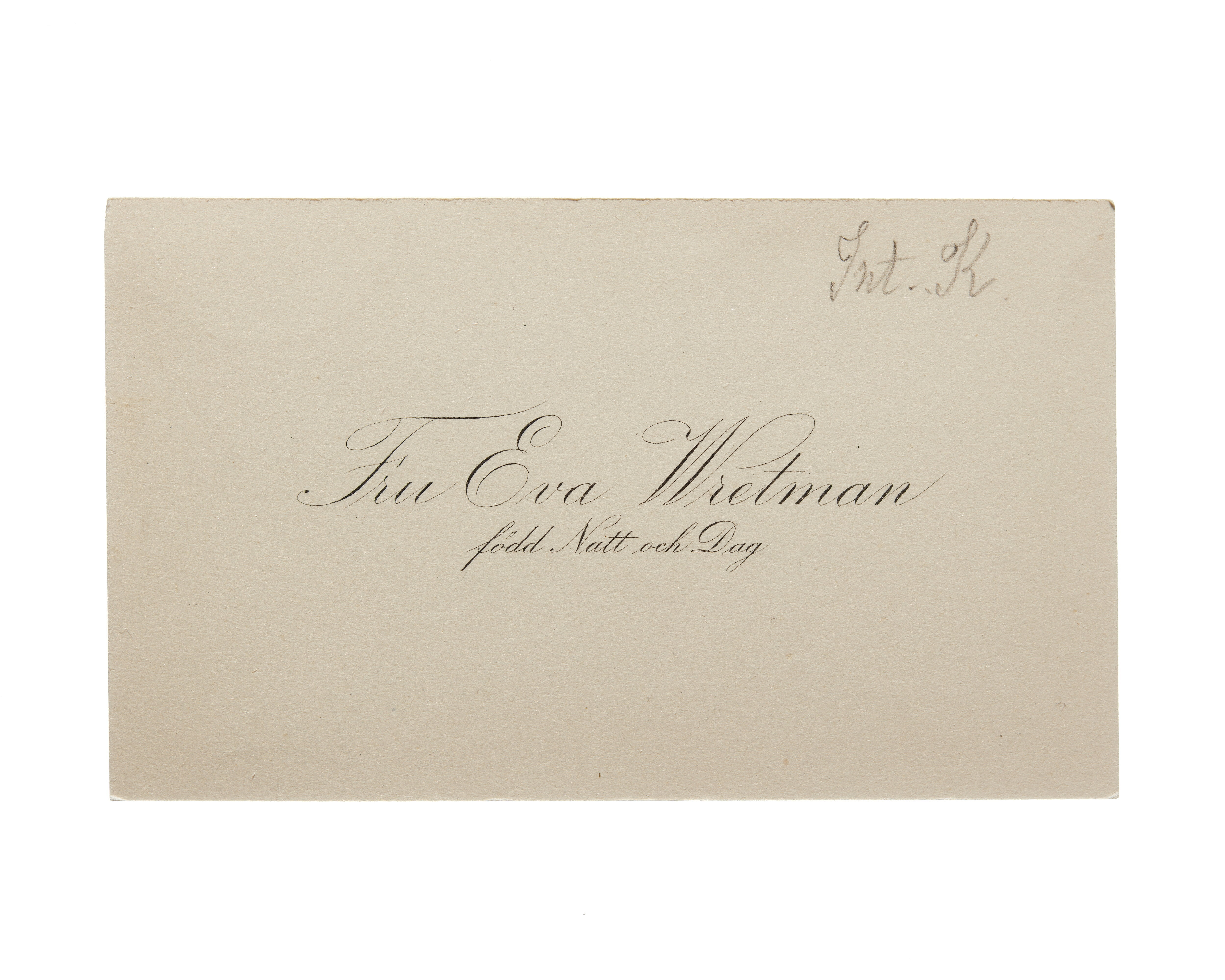 Visitkort från Fru Eva Wretman, f. Natt och Dag