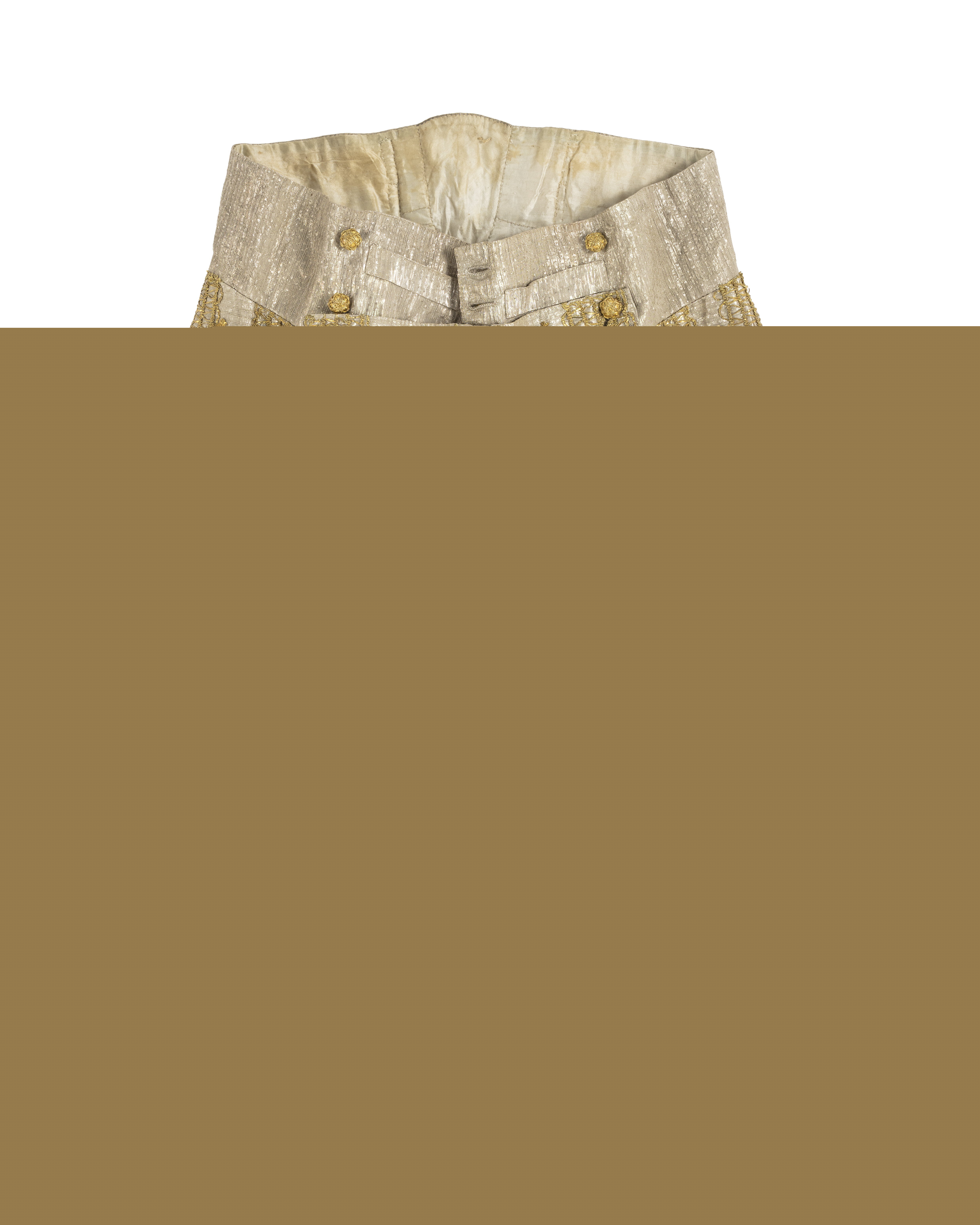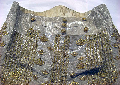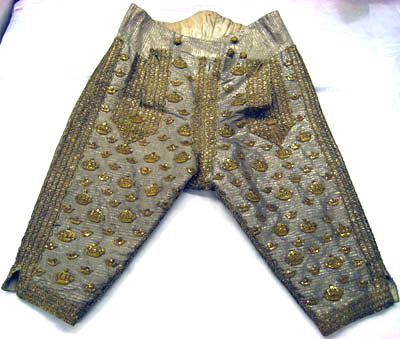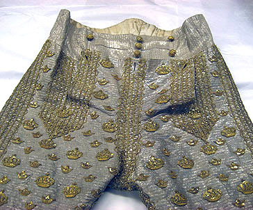 Byxor till Karl XIII:s kröningsdräkt, buren vid kröningen i Storkyrkan den 29 juni 1809.