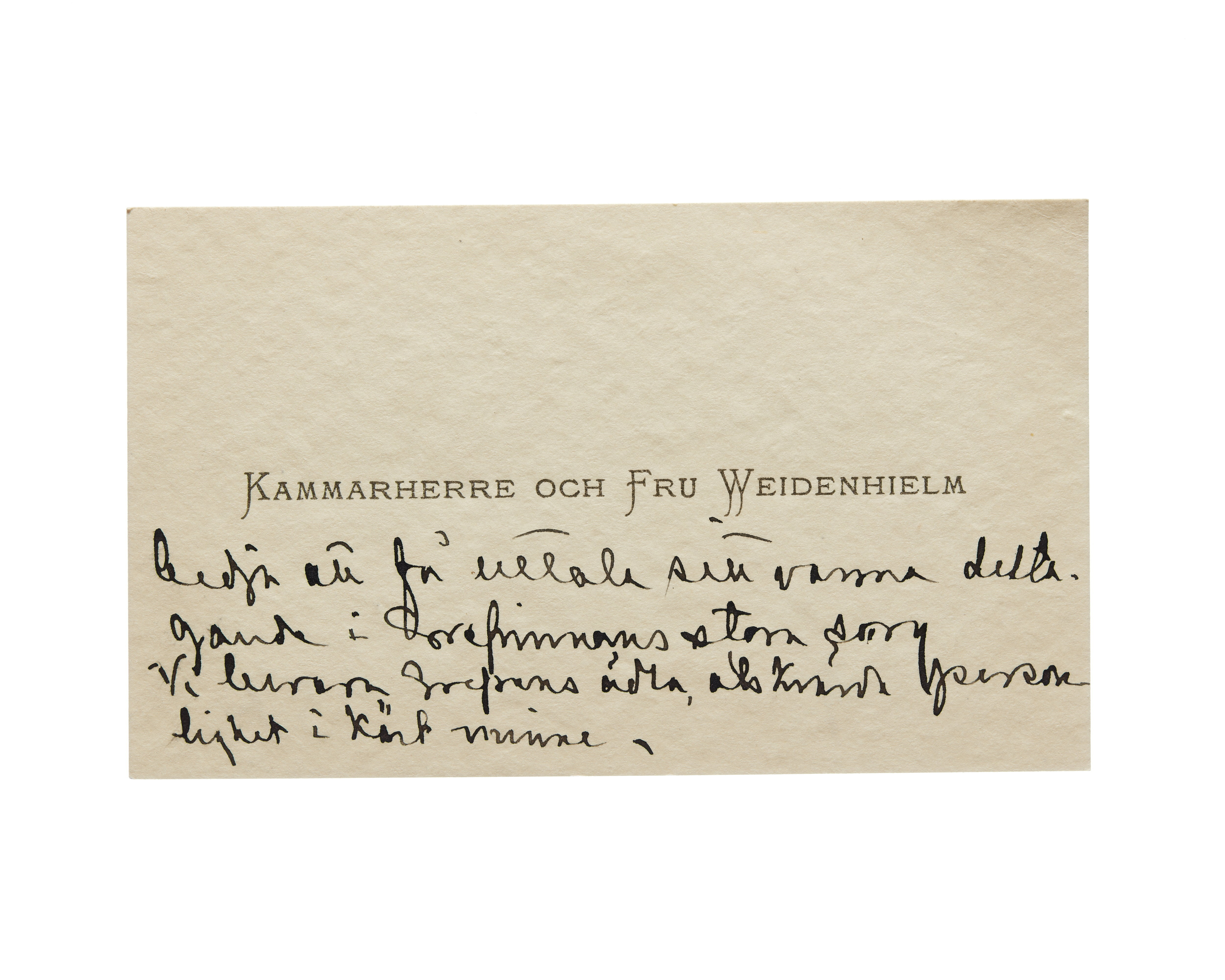 Visitkort från kammarherre och fru Weidenhielm.