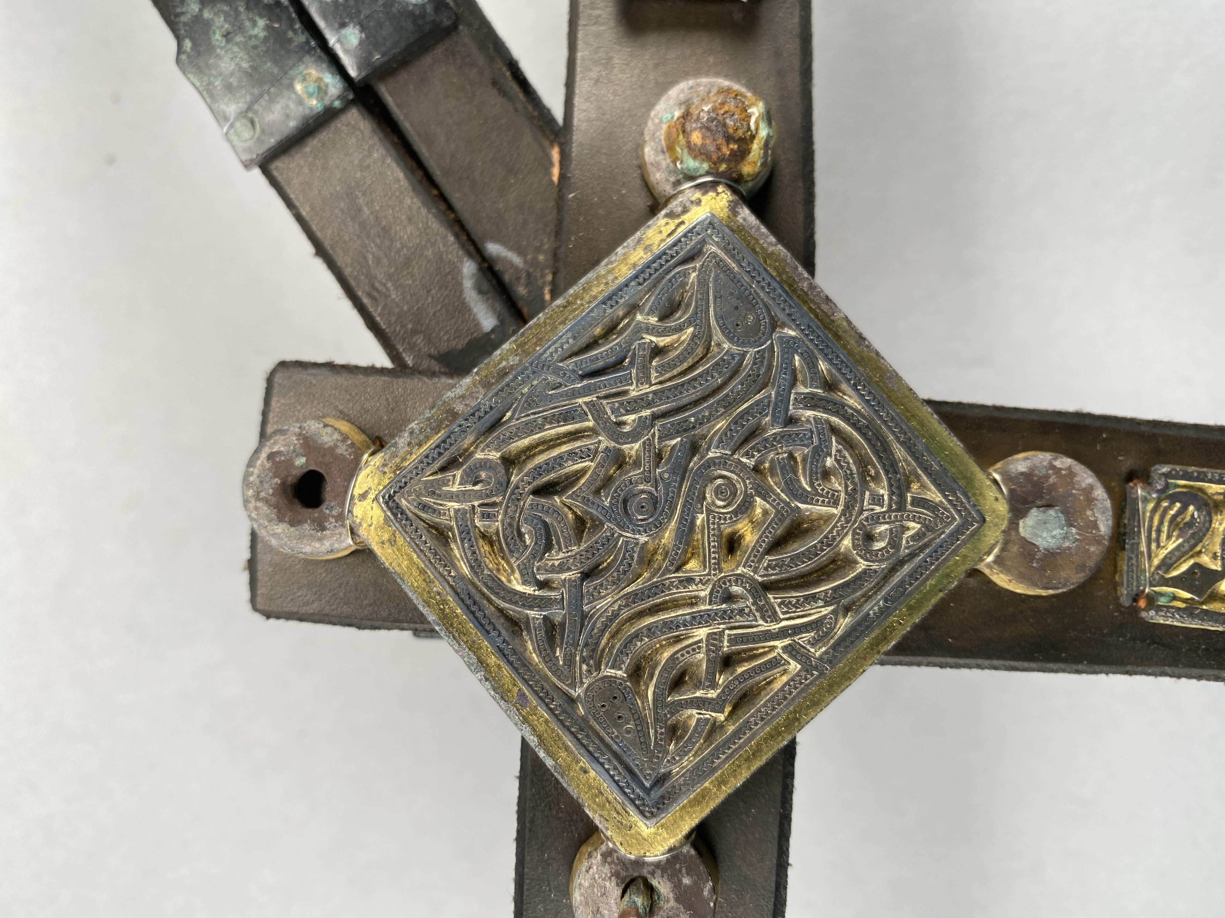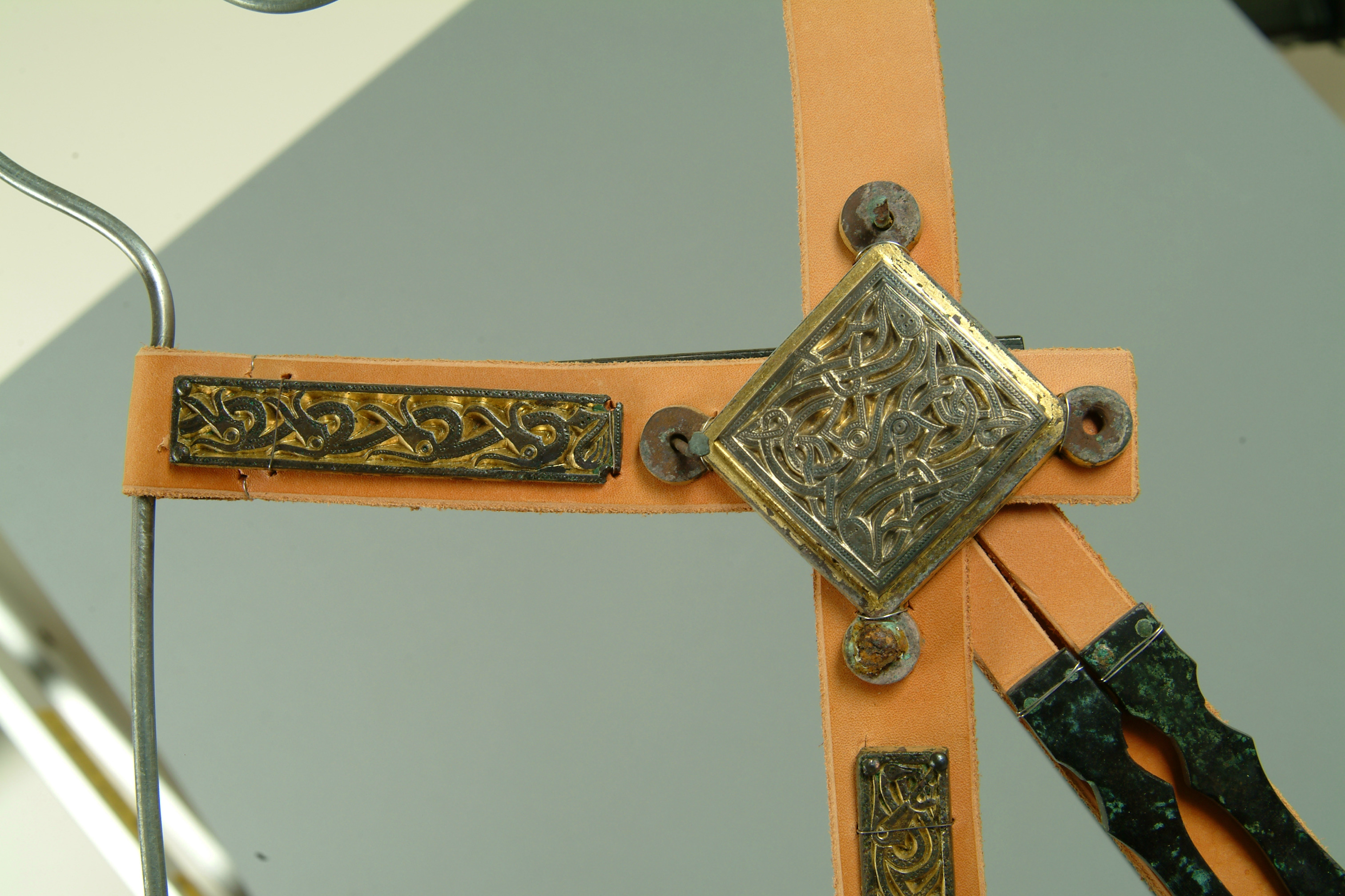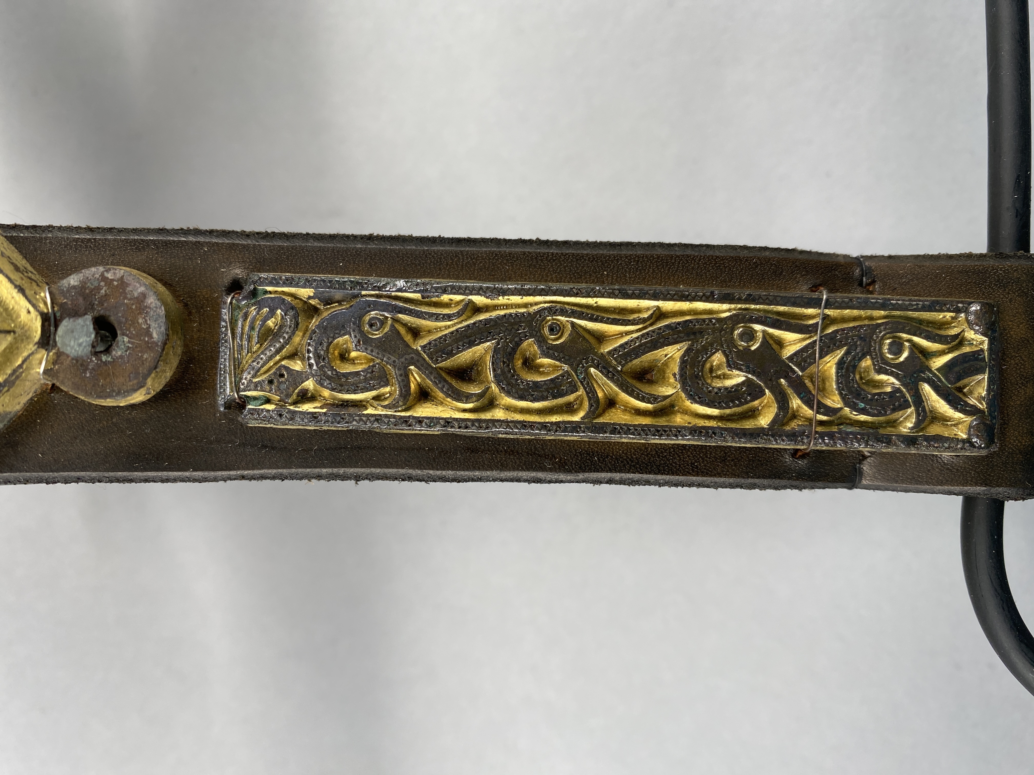 Fullständig uppsättning av förgyllda bronsbeslag till ett rikt beslaget hästbetsel.