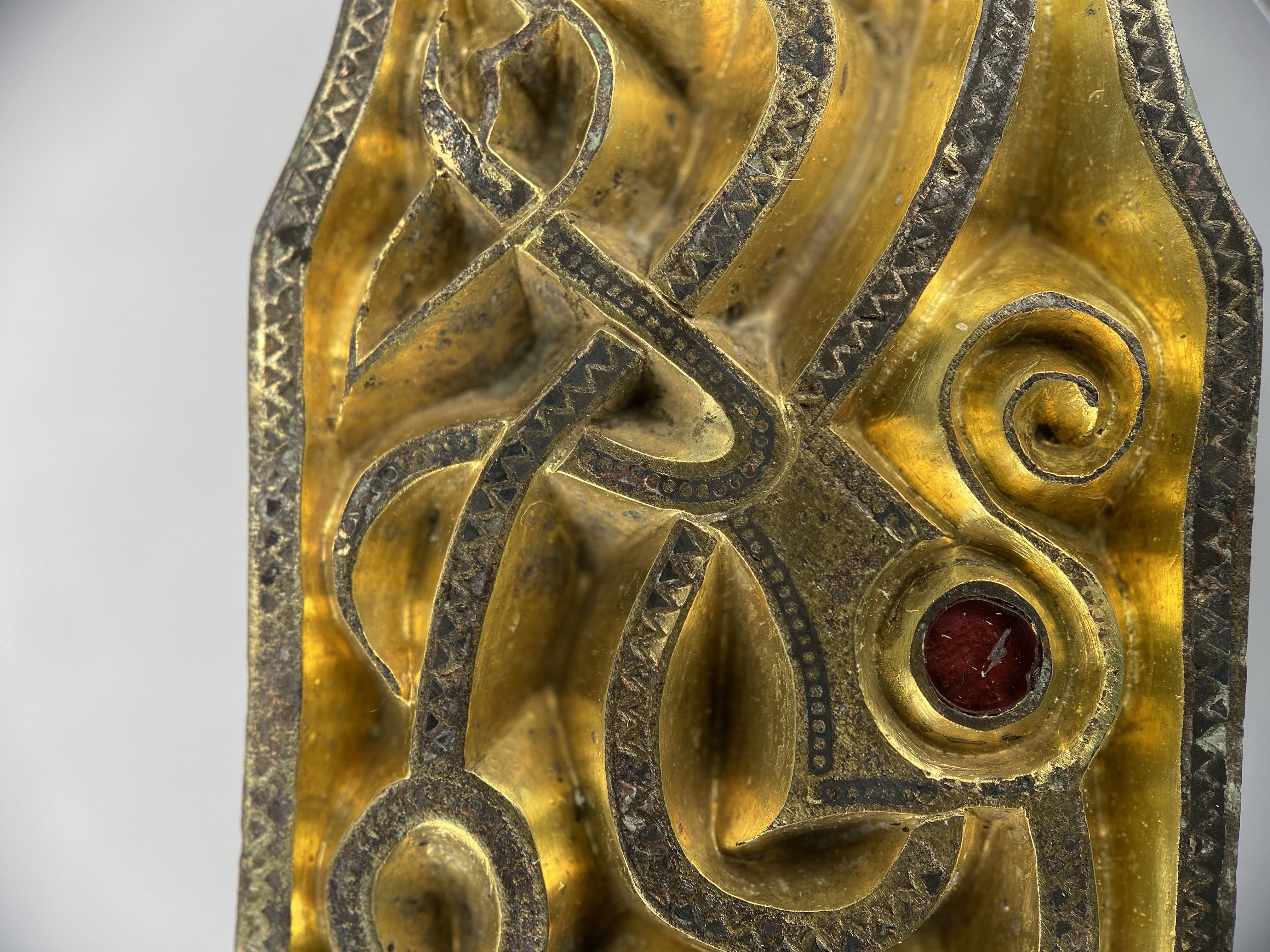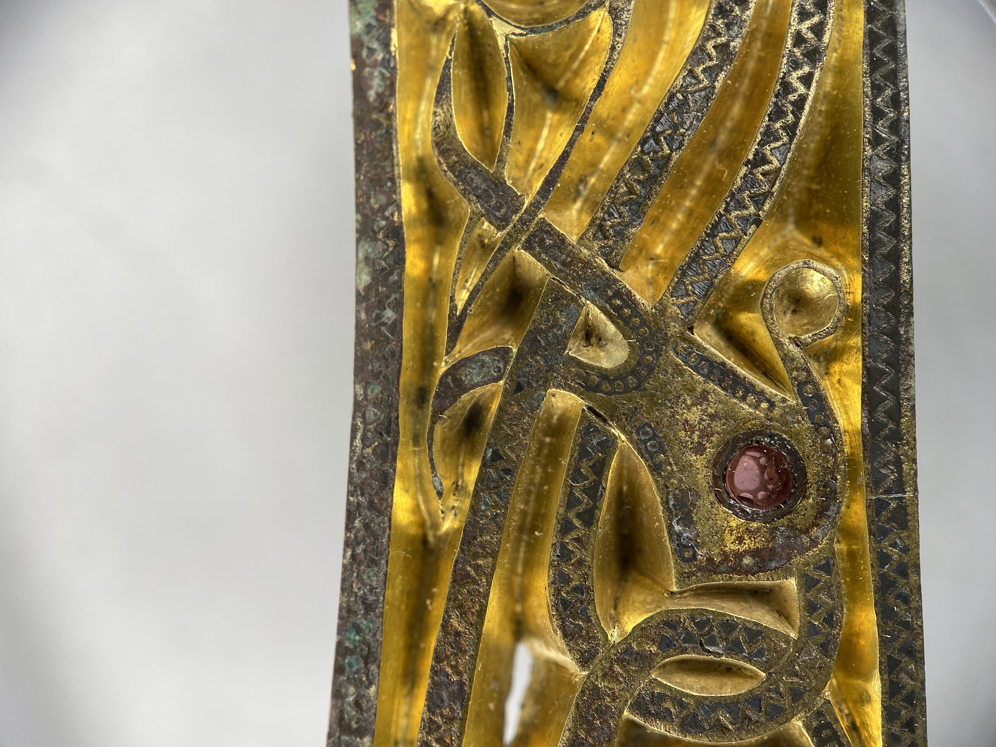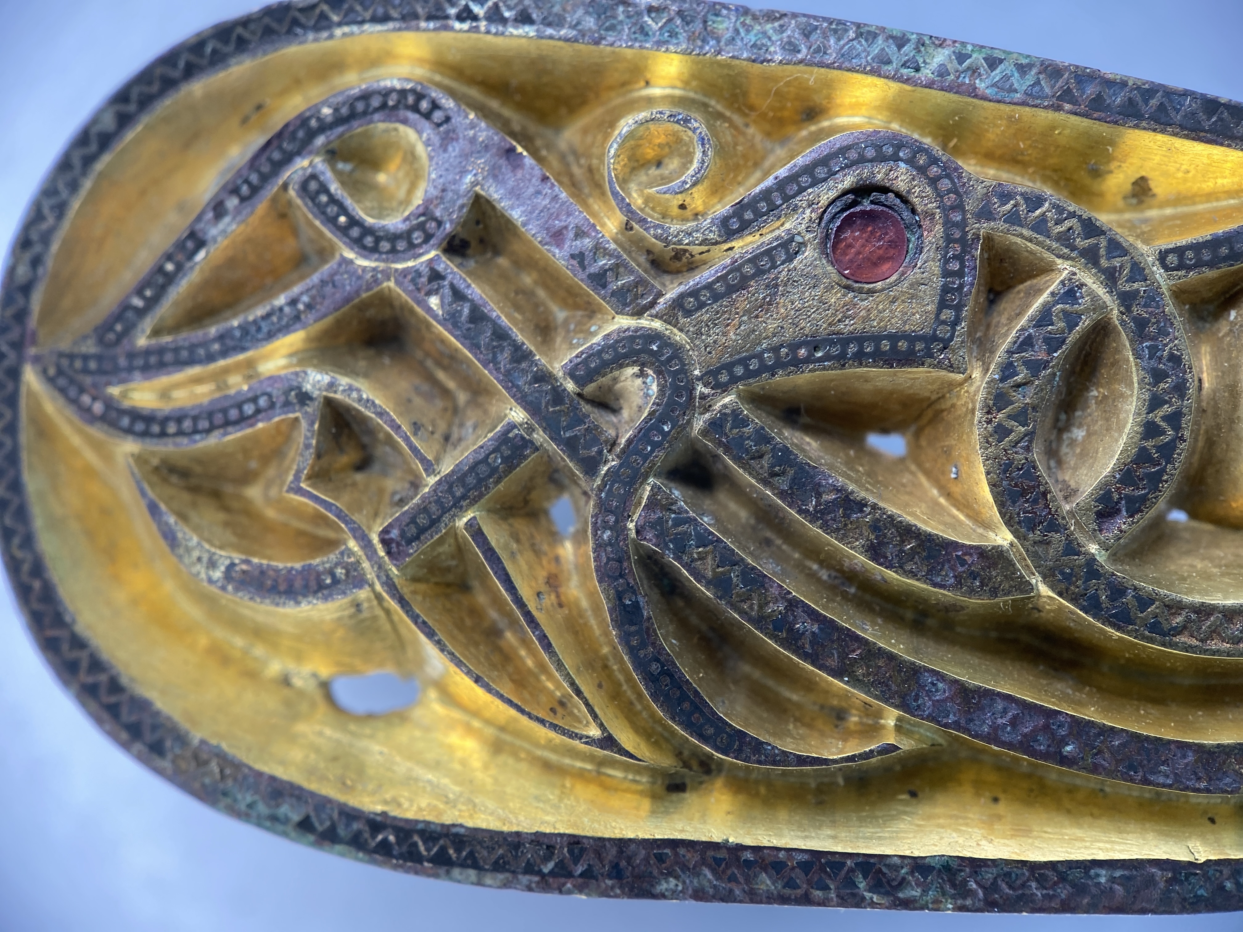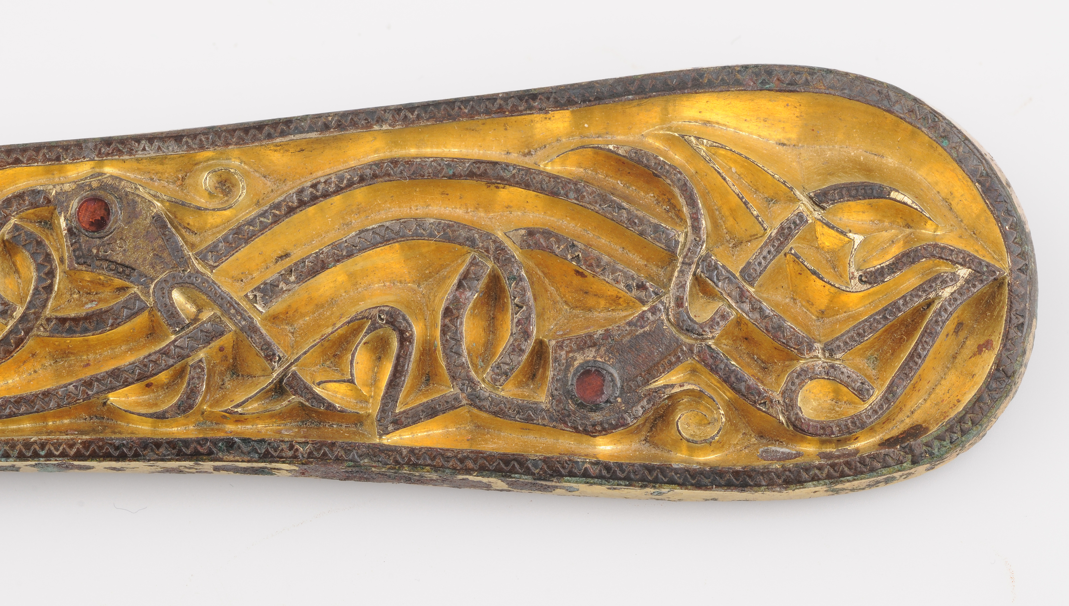 Fullständig uppsättning av förgyllda bronsbeslag till ett rikt beslaget hästbetsel.