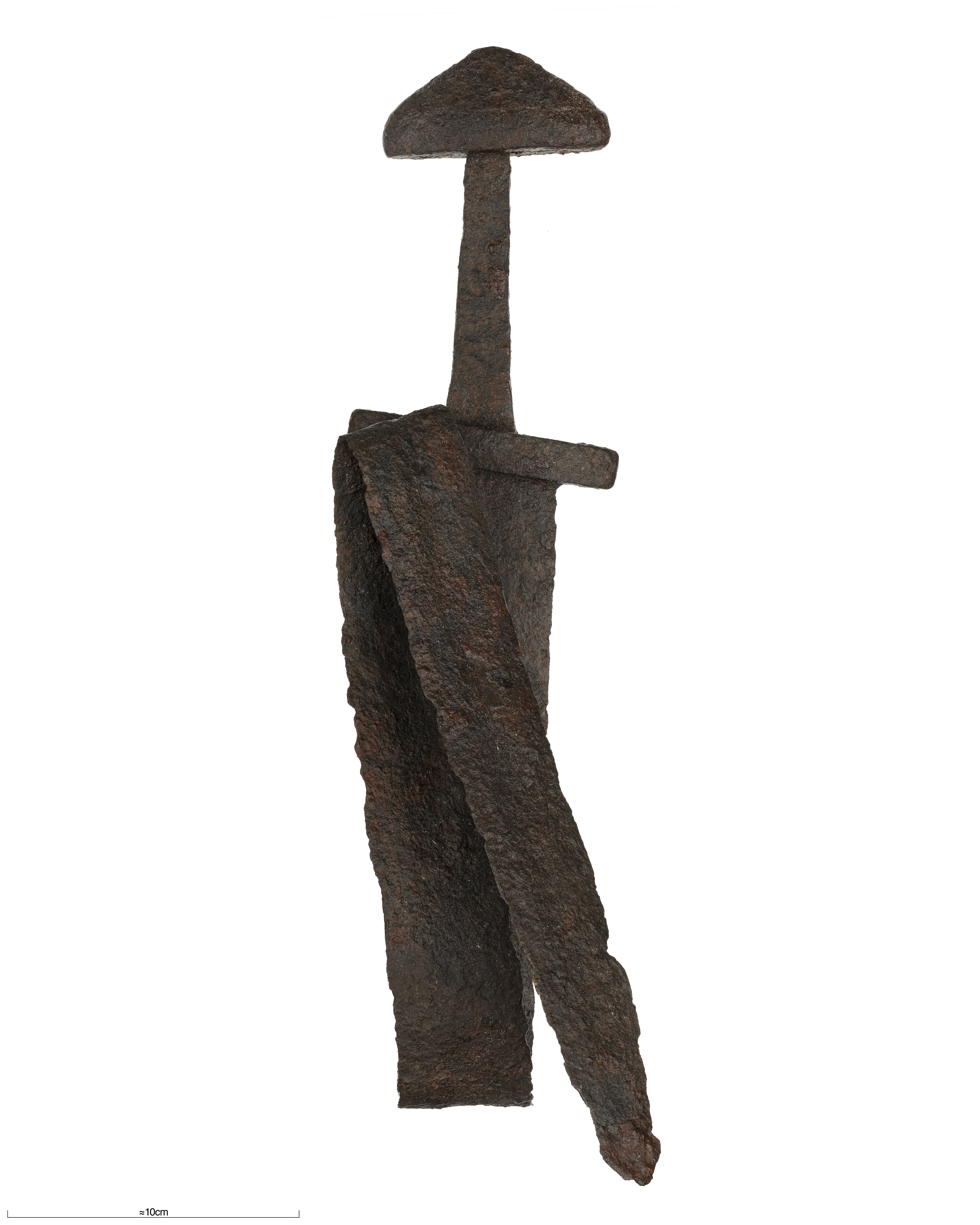 Tveeggat svärd, klingan som har mittränna är hopböjd.