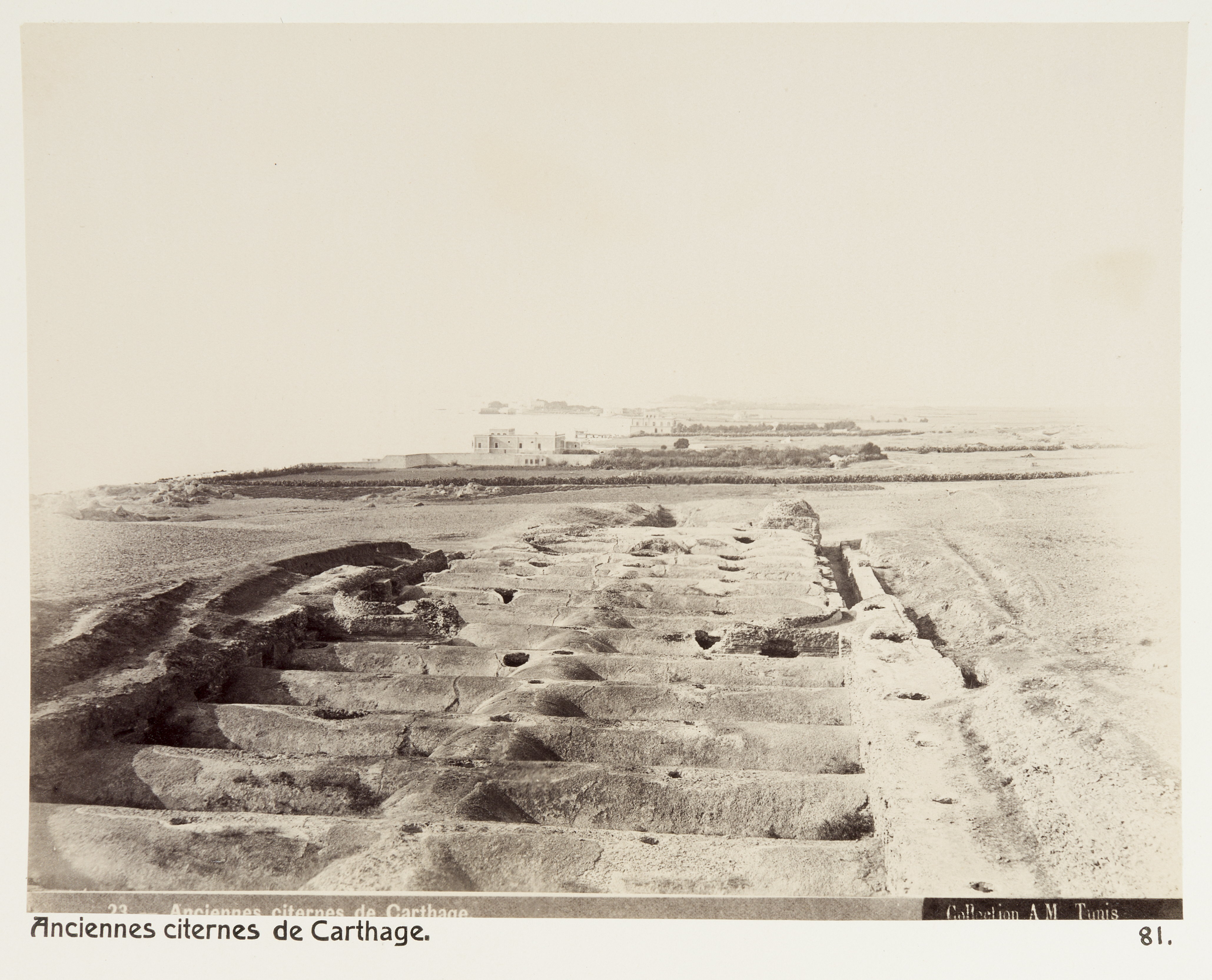 De gamla cisternerna i Karthago, Tunisien. Bilden är en dubblett till LXVI:F.72. Bilderna med inventarienummer LXVI:K.H.01.-137. är inköpta av Johanna Kempe, f. Wallis, i Alger, Biskra, Tunis, Constantine, Oran och Blidah vid hennes vistelse i nämnda städer tillsammans med sin dotter och svärson, Wilhelmina och Walther von Hallwyl, dotterdottern Irma samt fröknarna Caroline Pflaum och Ida Uhse under deras resa genom Algeriet och Tunisien samt åter över Schweiz 11 februari - 19 maj 1889. Förestående uppgifter lämnade med ledning av fröken Ida Uhses Reseanteckningar. Vissa av bilderna är dubbletter till bilder i inventarienummerserien LXVI:F.01.-138. som köptes in av Wilhelmina von Hallwyl under samma resa.