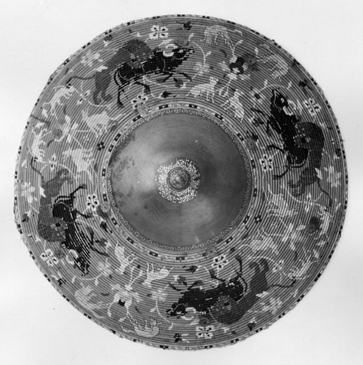 Persisk sköld, kalkan, 1500-talets slut. Förmodat krigsbyte från Prag 1648.
