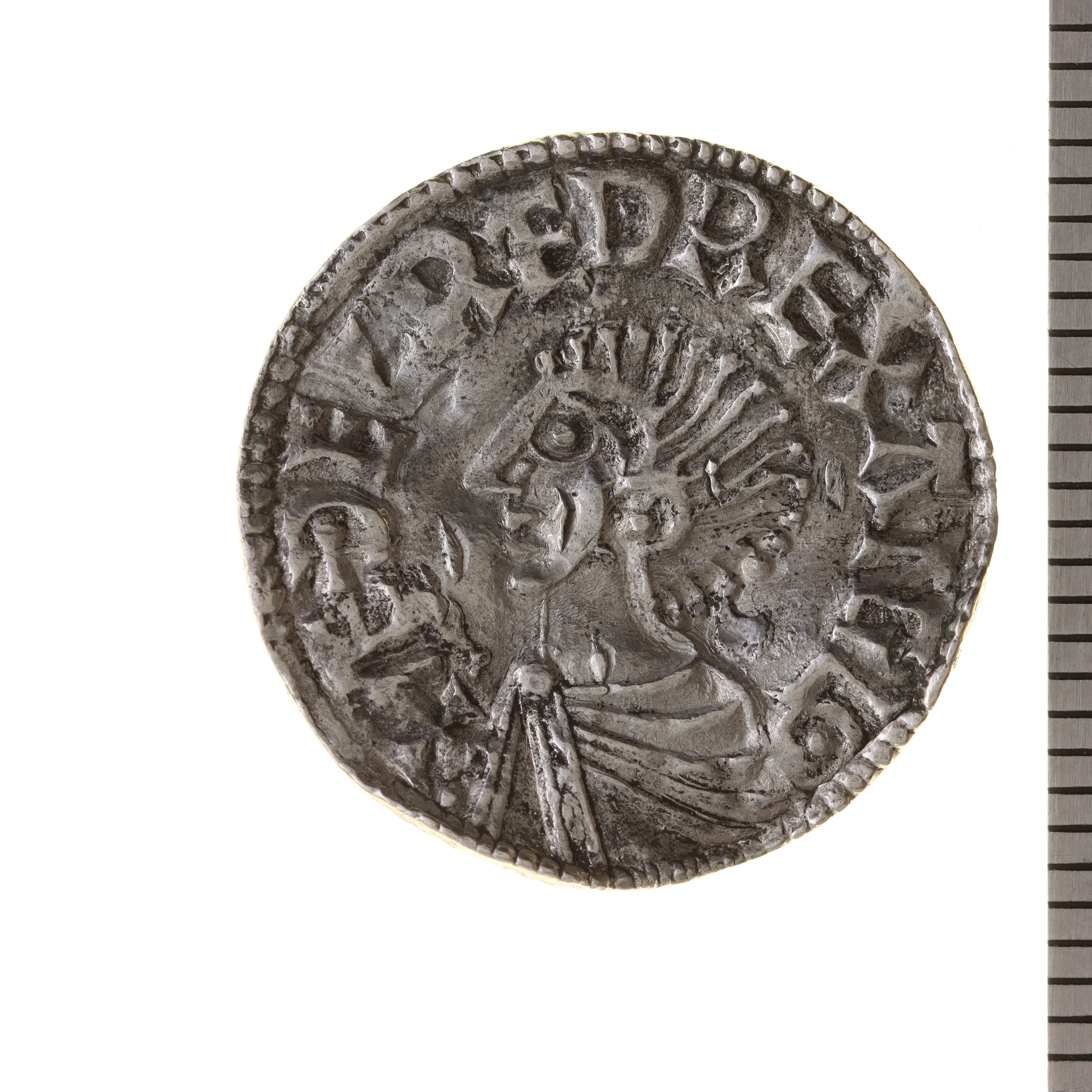 Upphov: Ethelred II. Media: Jonsson, Eeva. Ekonomiska museet - Kungliga myntkabinettet/SHM, (CC BY 4.0) Du får bearbeta och dela verket för alla ändamål, även kommersiella, så länge du anger upphovsperson och licensgivare.