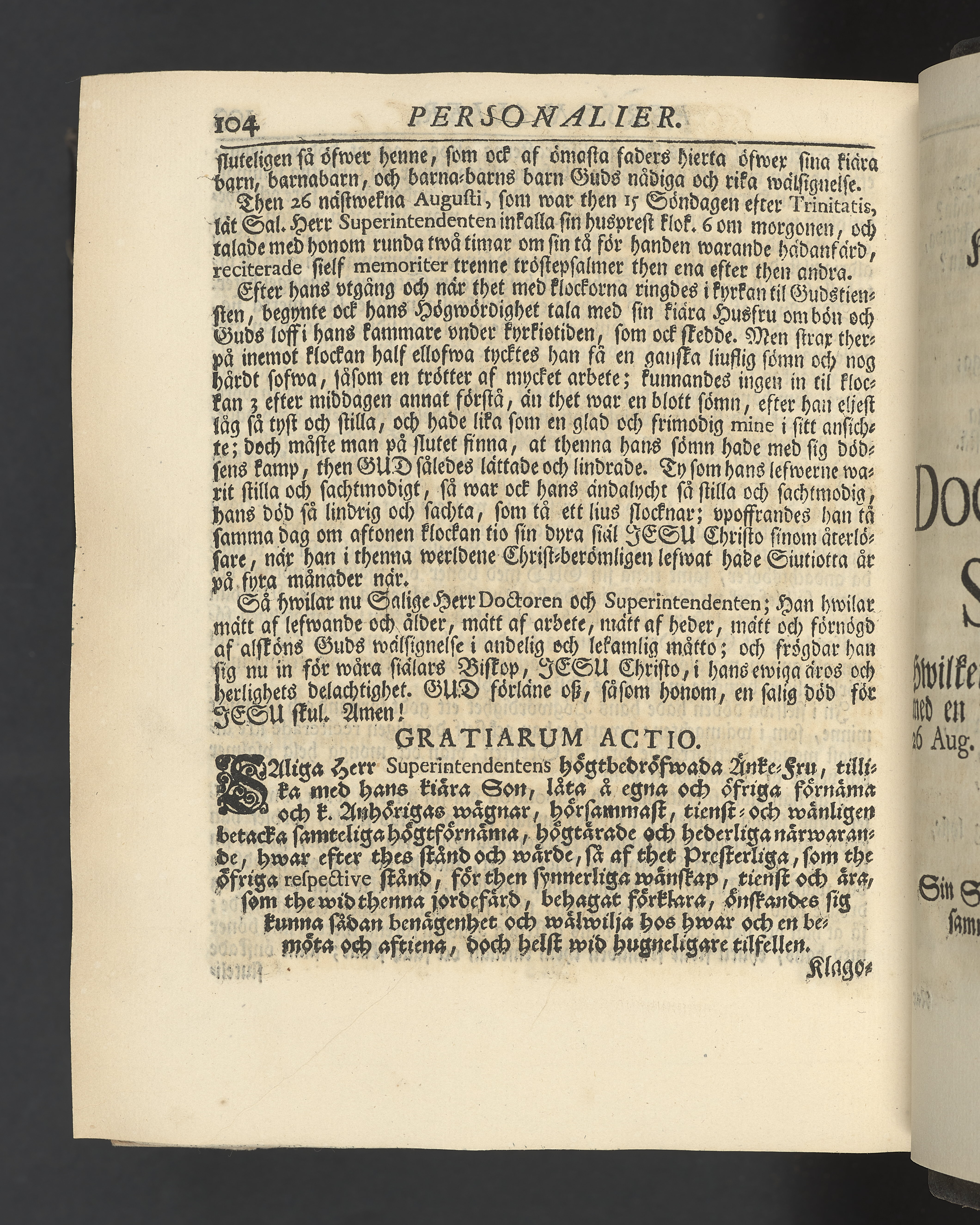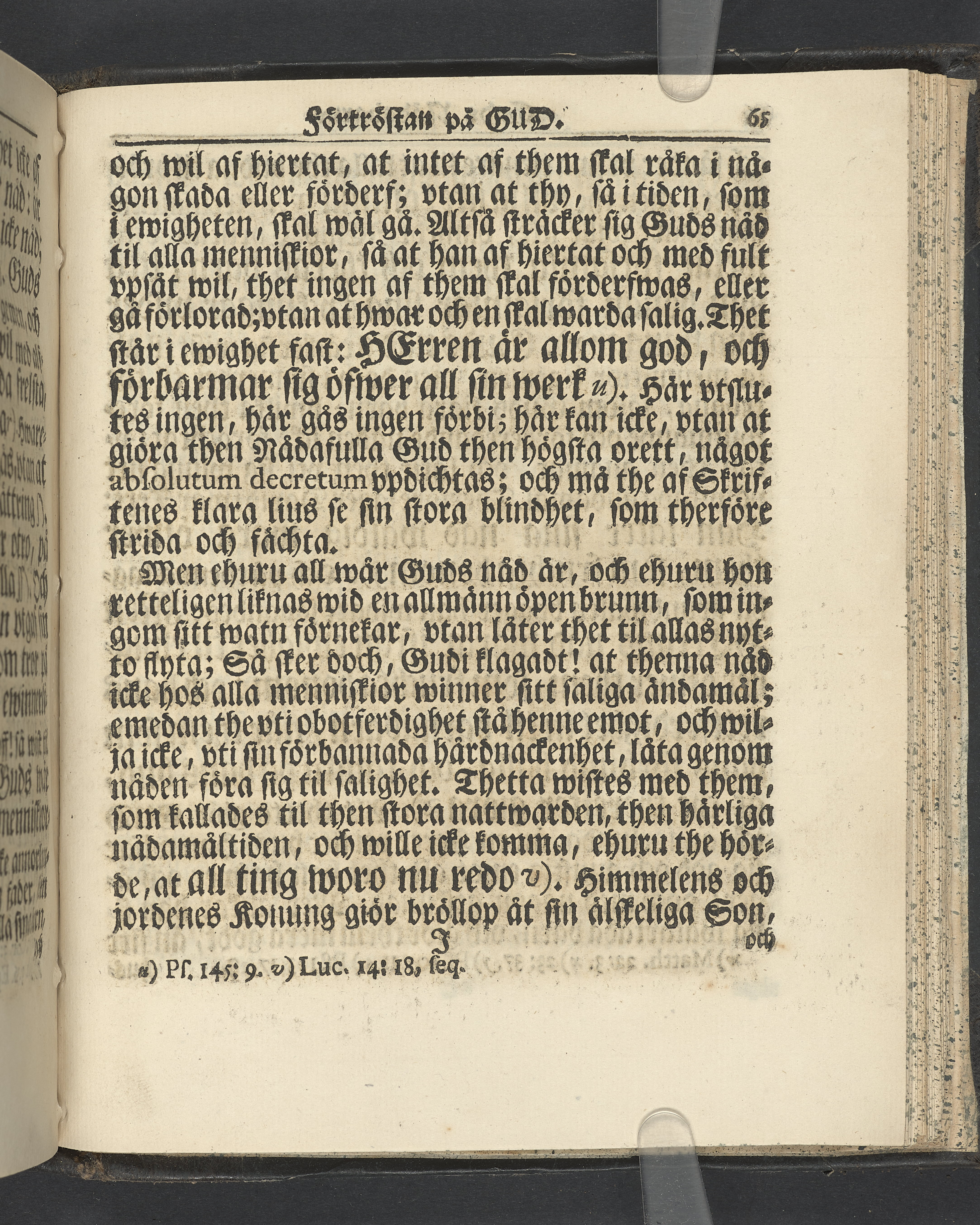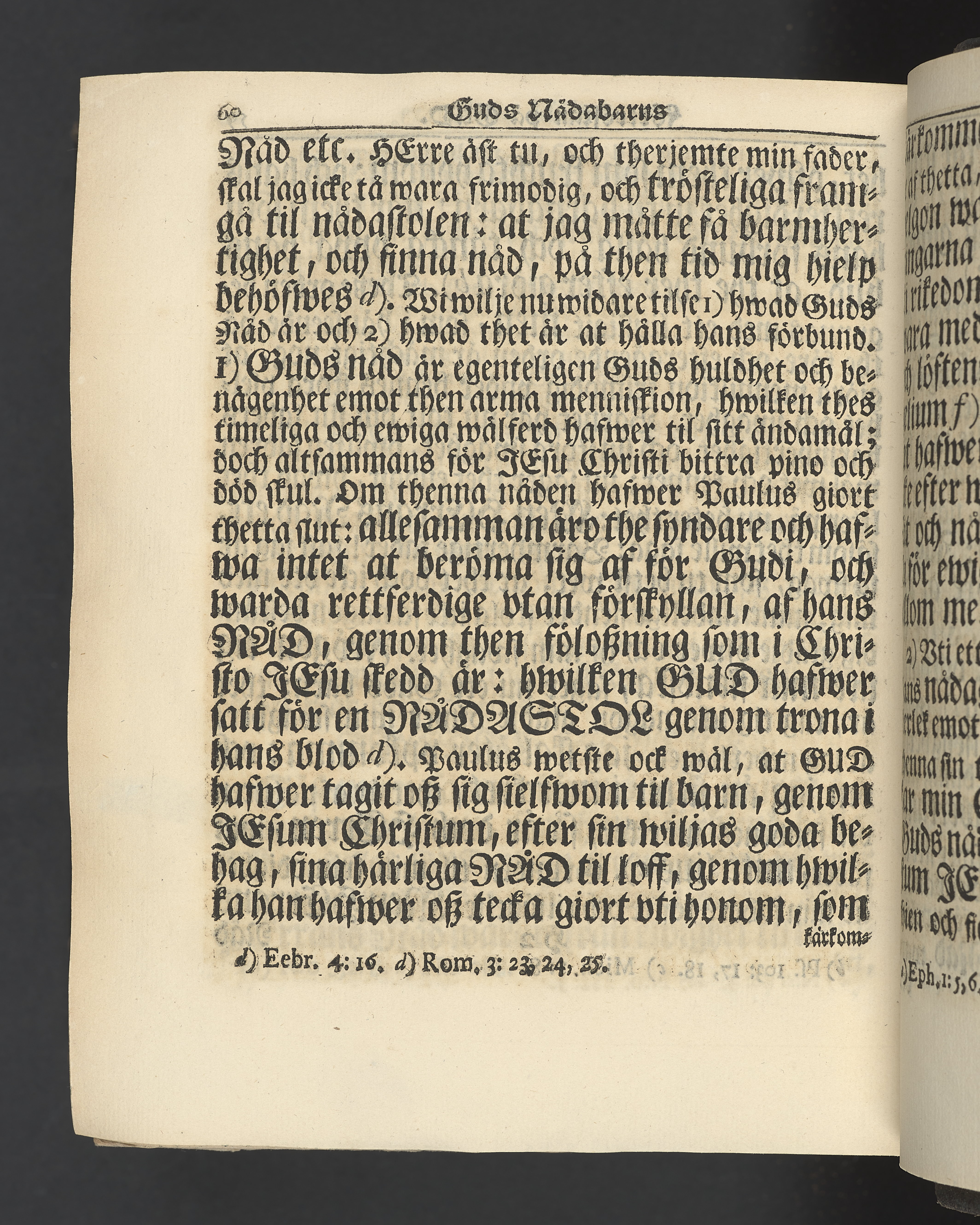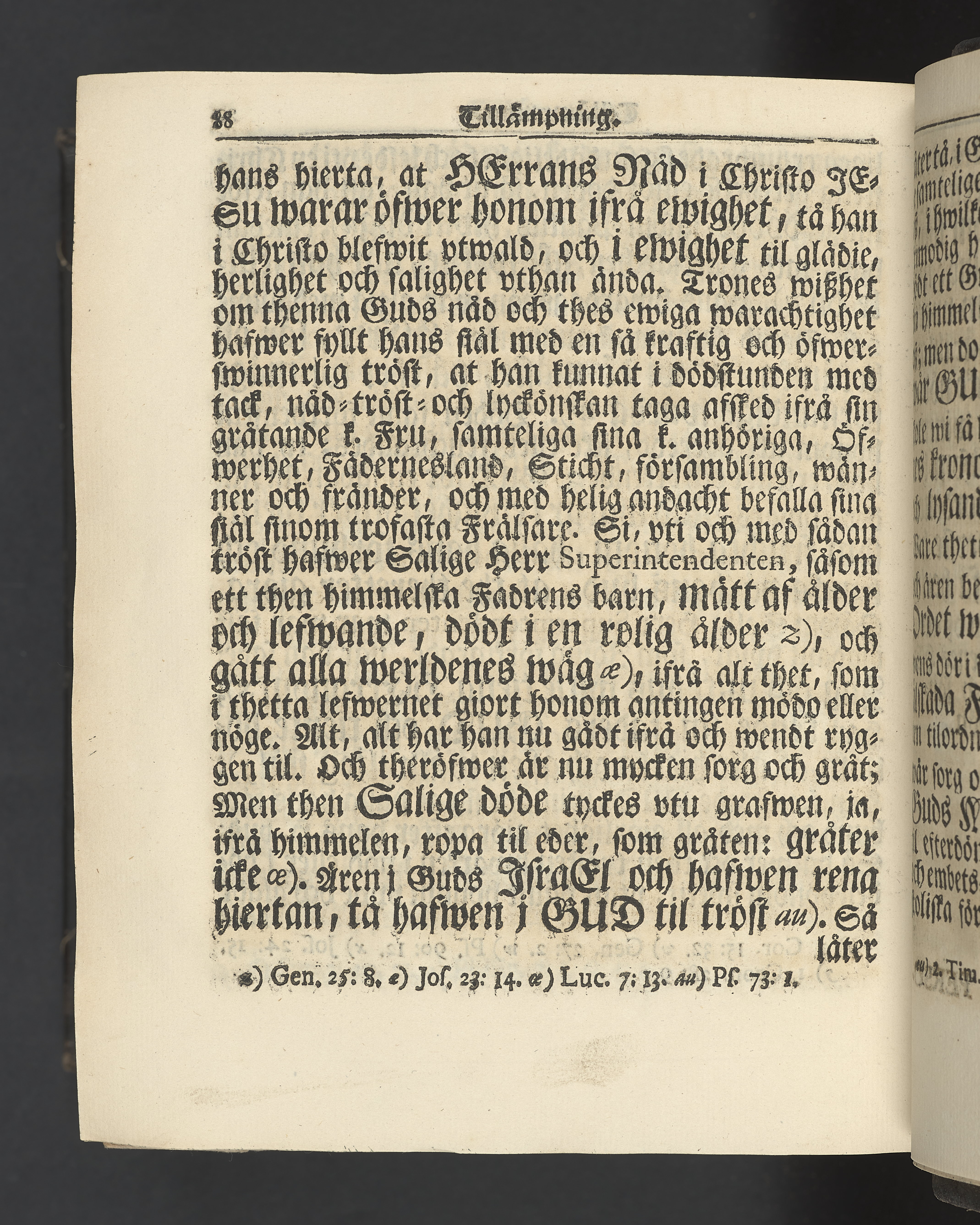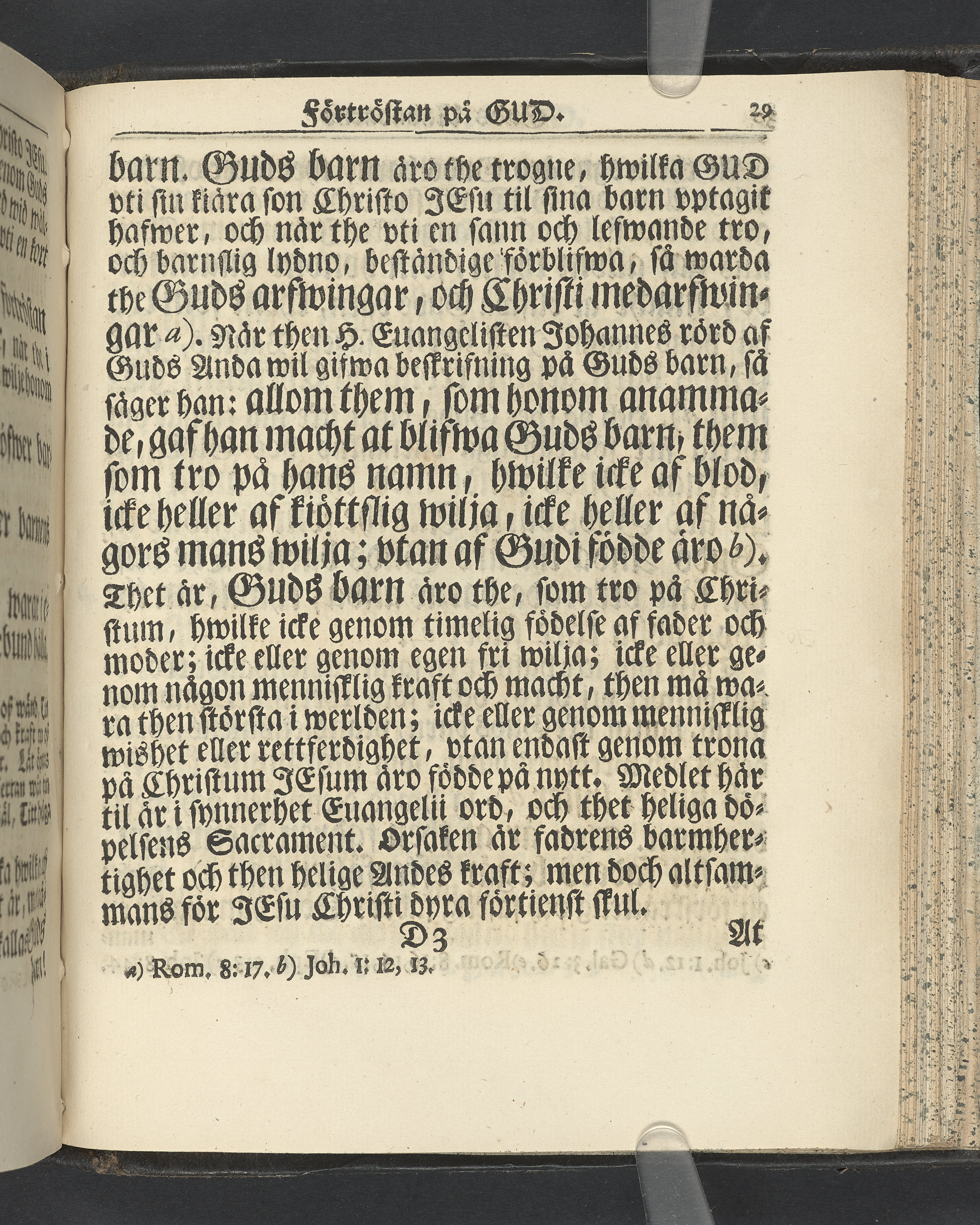 Graverat porträtt innan titelbladet, med bilden på verso. På recto ägaranteckning i svart bläck "Johan Petter Strandberg 1748", i överkant till vänster (delvis avskuret) "155", samt i högra hörnet "22". Nedanför ägaranteckningen en anteckning av Carl Gustaf Bielke med uppgift om inköp på auktion. Snitt stänkta i rött och blått.