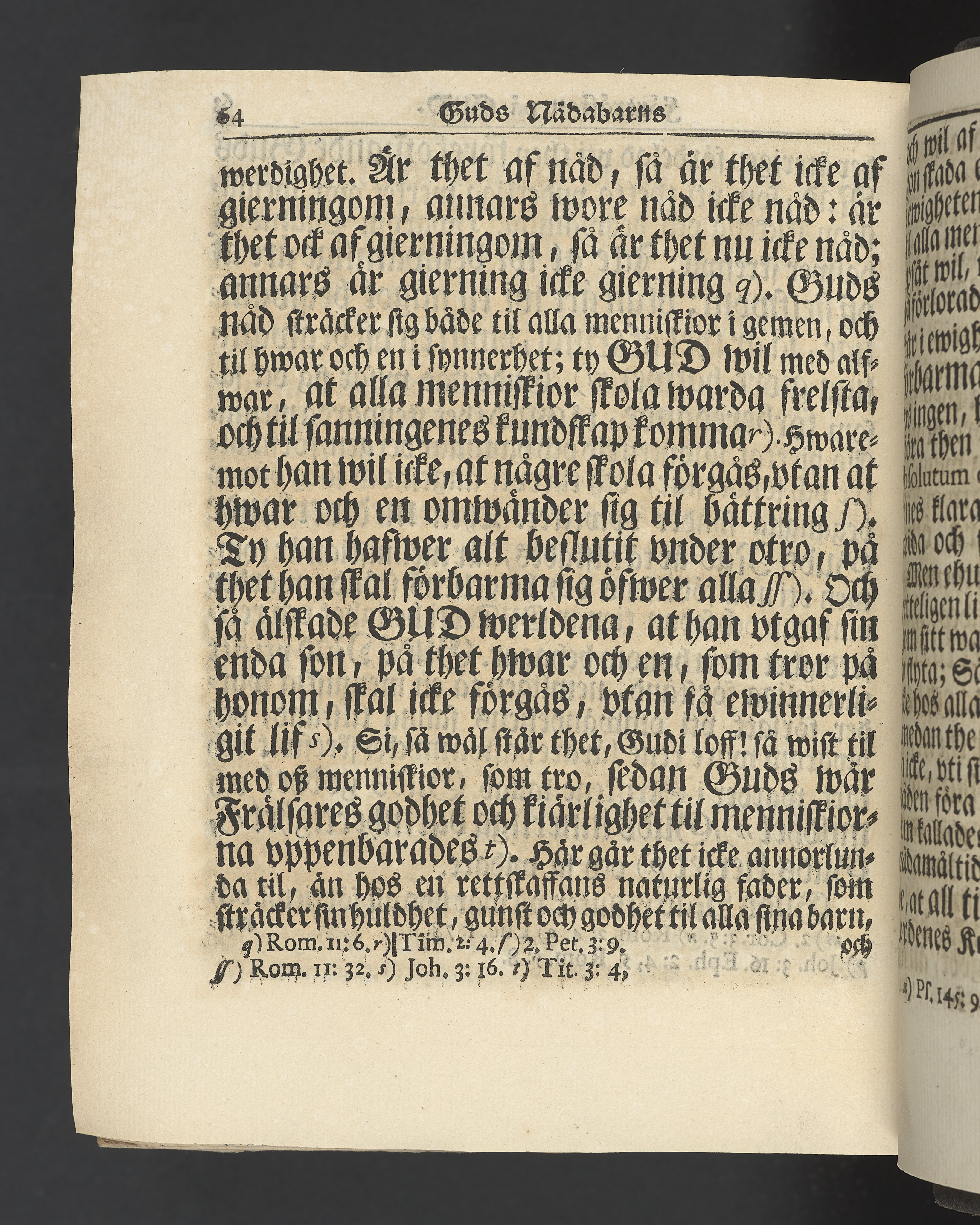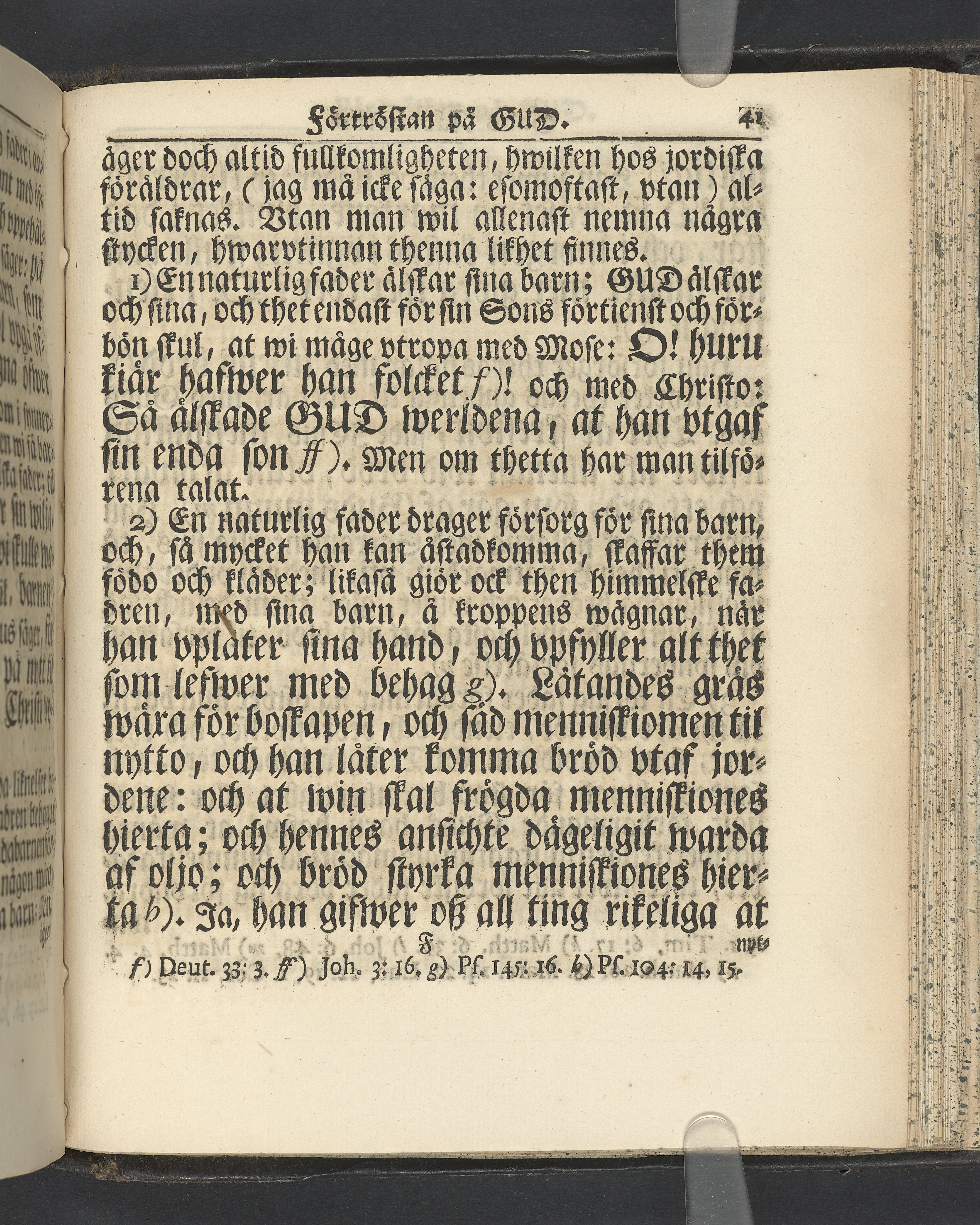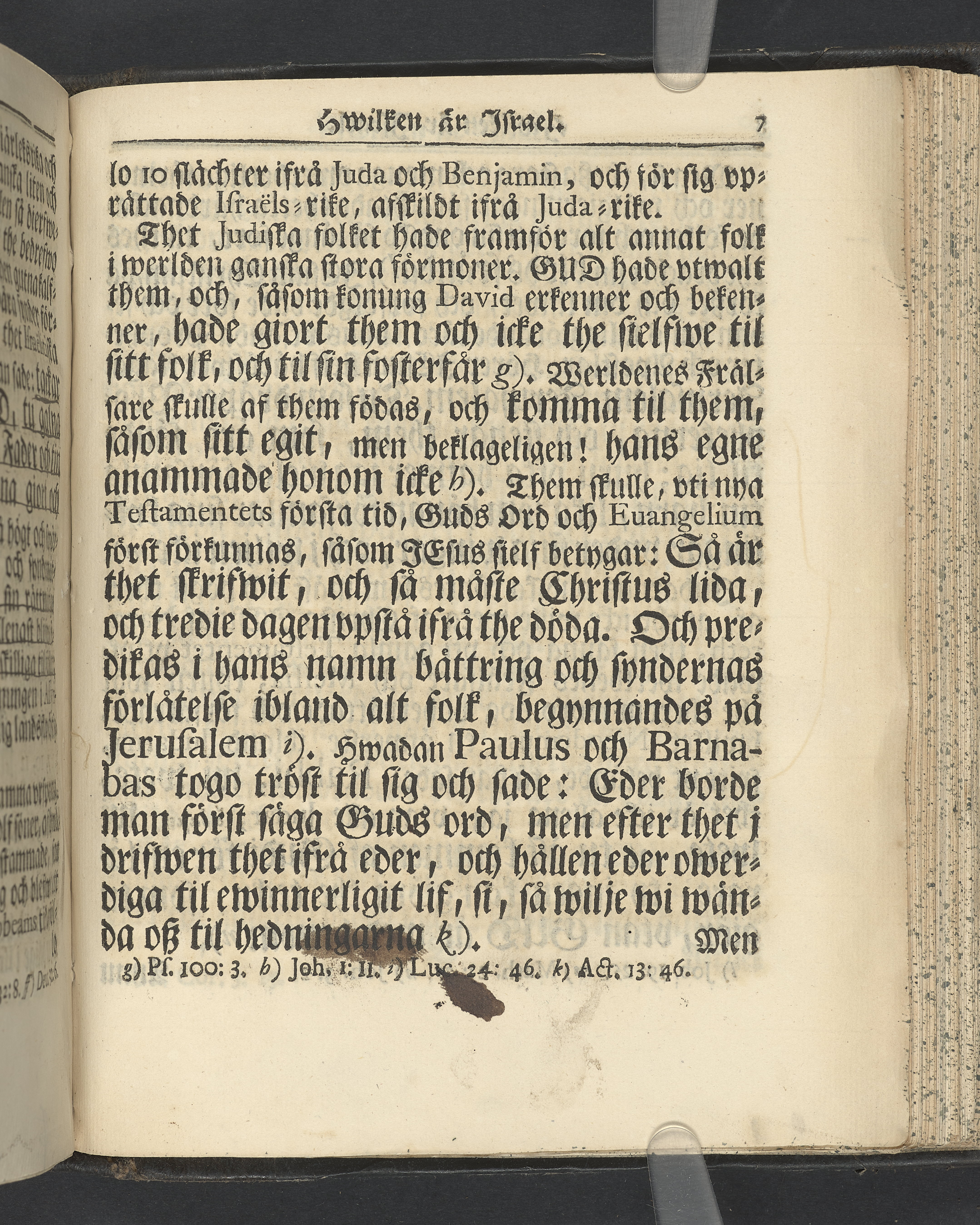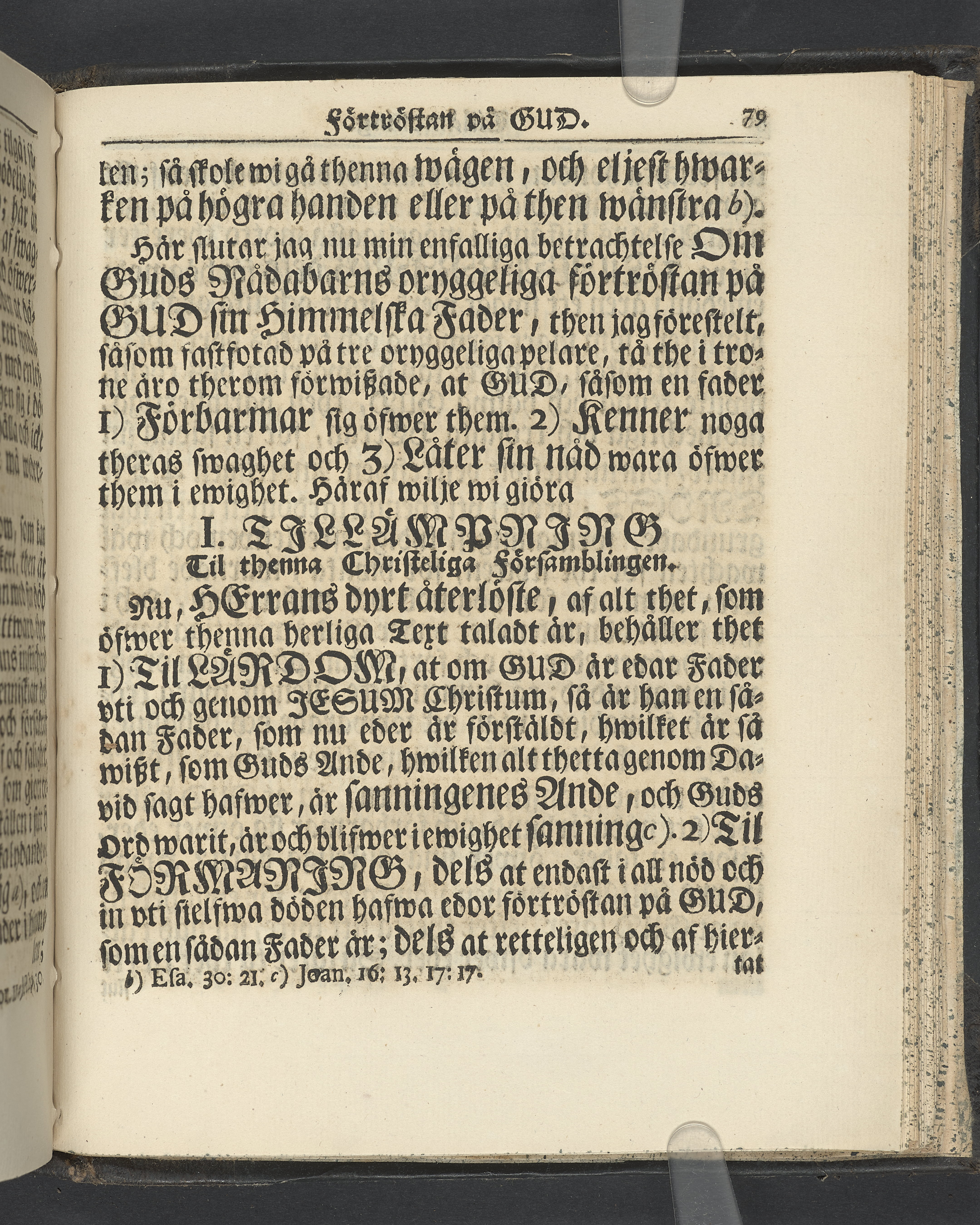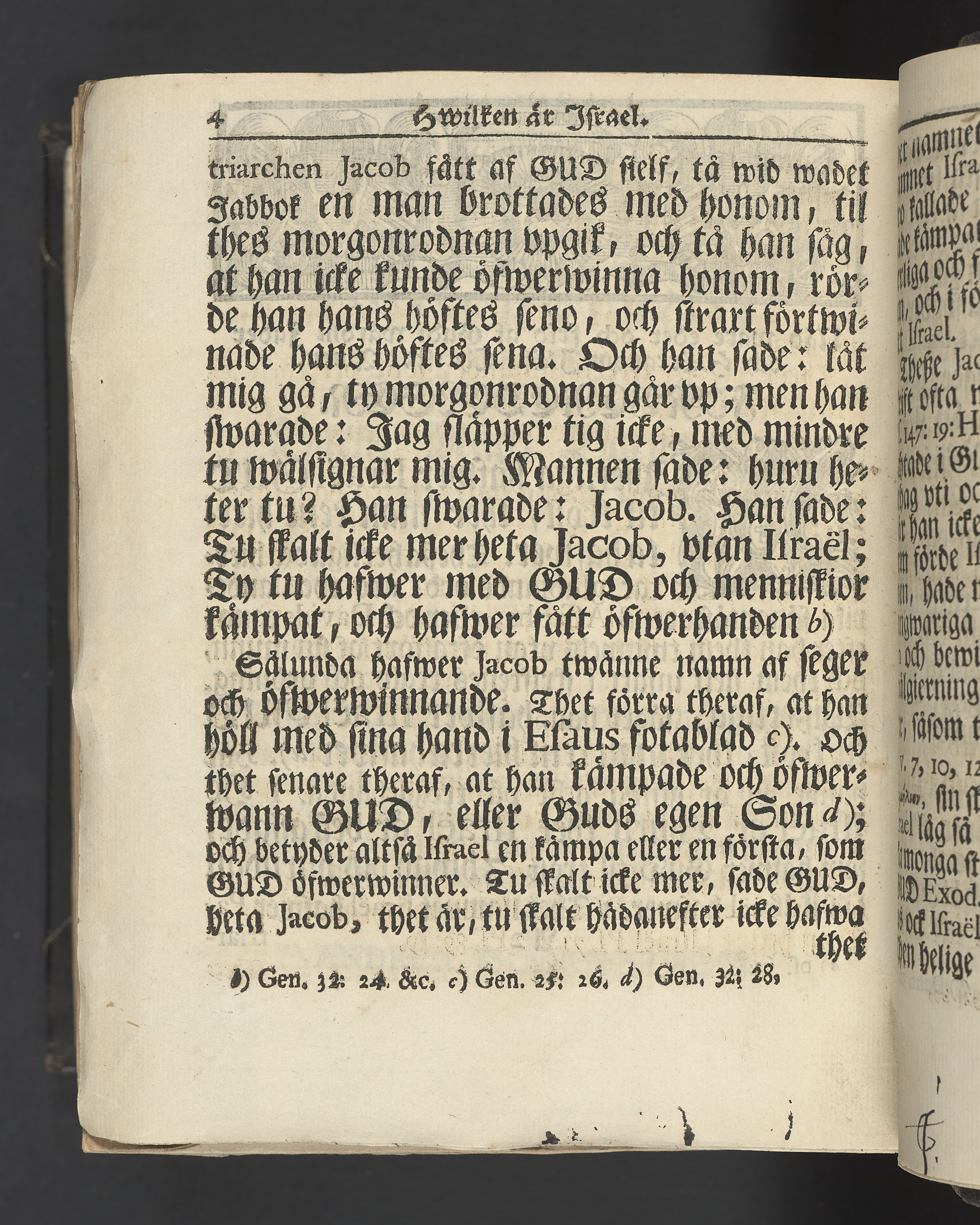 Graverat porträtt innan titelbladet, med bilden på verso. På recto ägaranteckning i svart bläck "Johan Petter Strandberg 1748", i överkant till vänster (delvis avskuret) "155", samt i högra hörnet "22". Nedanför ägaranteckningen en anteckning av Carl Gustaf Bielke med uppgift om inköp på auktion. Snitt stänkta i rött och blått.