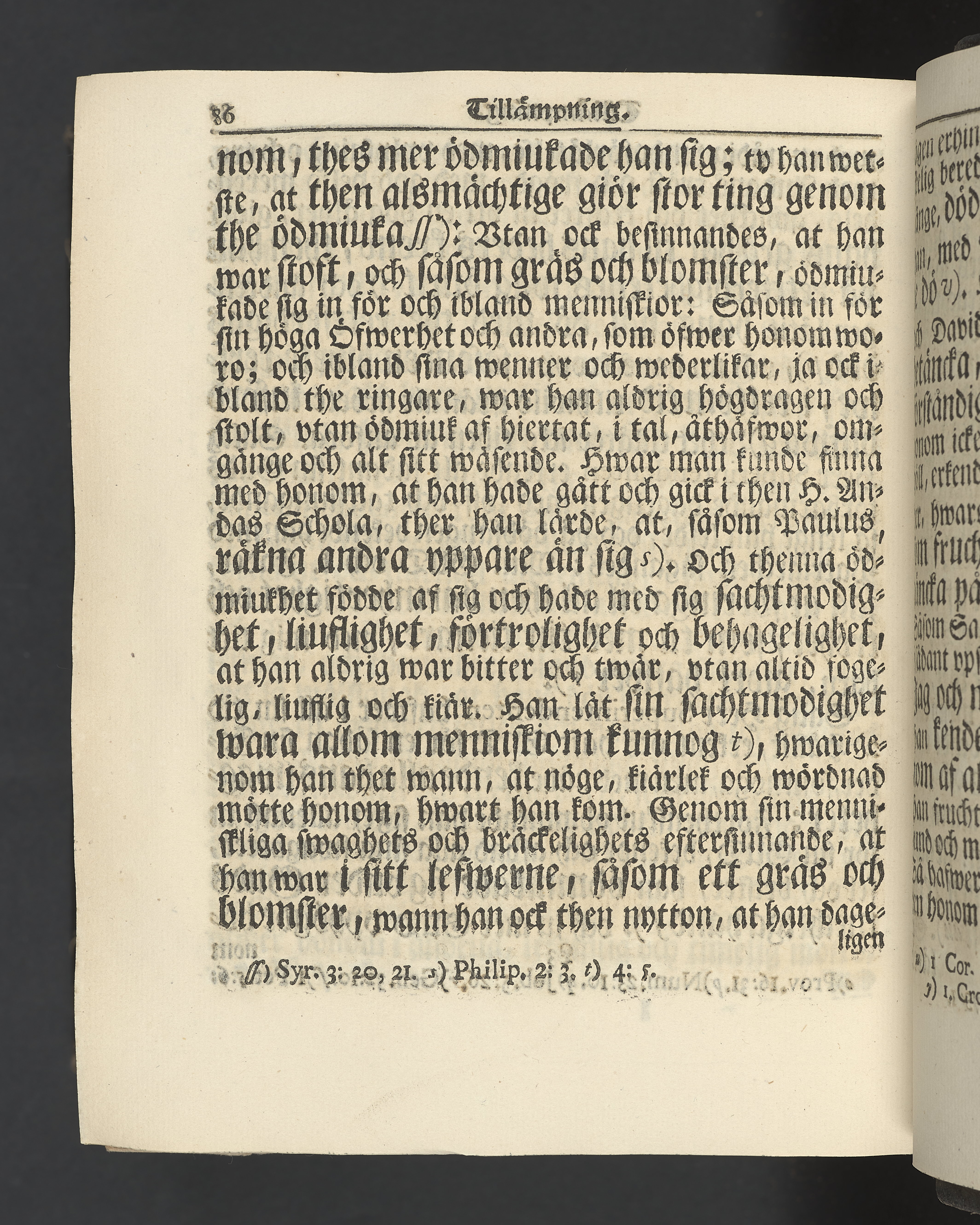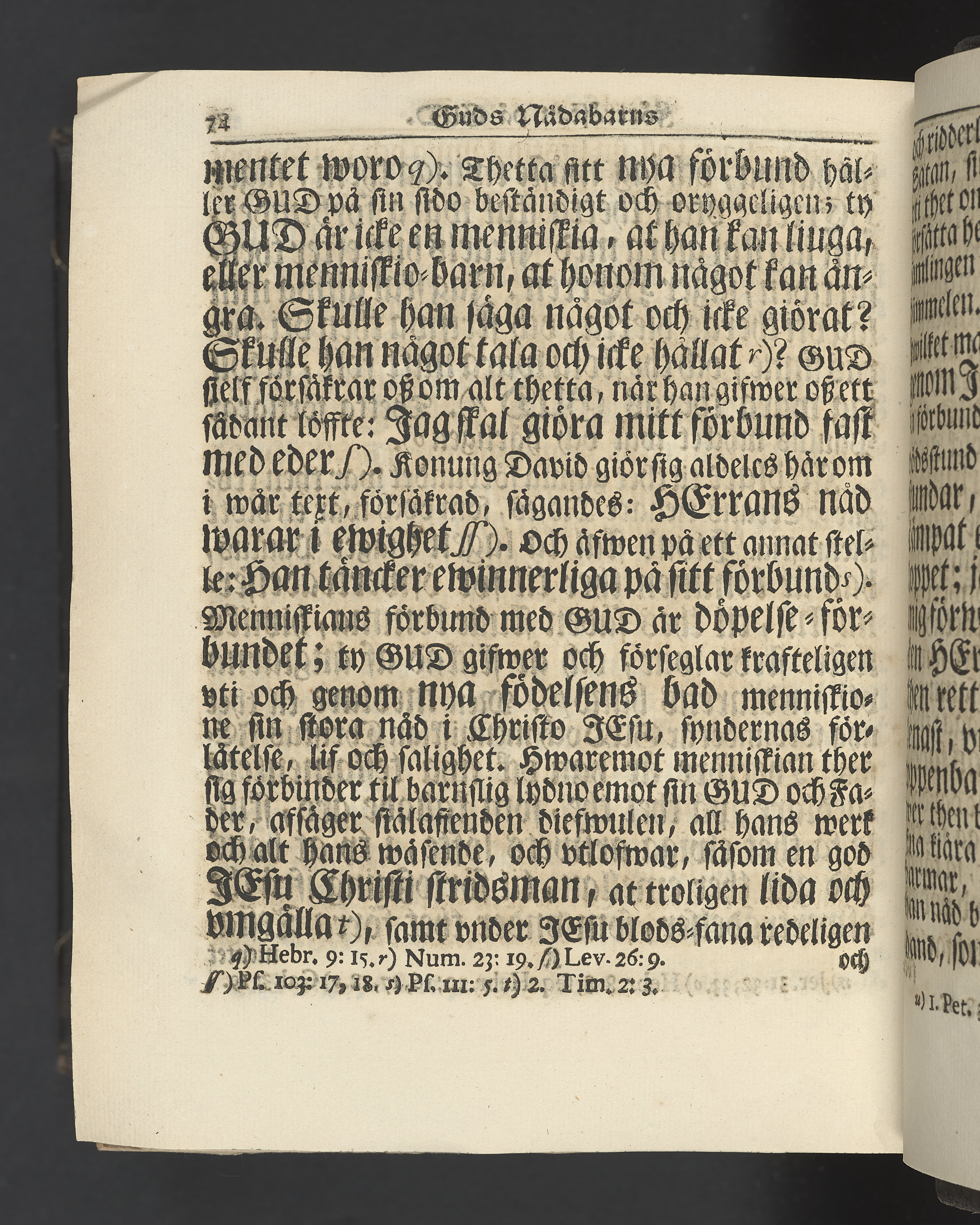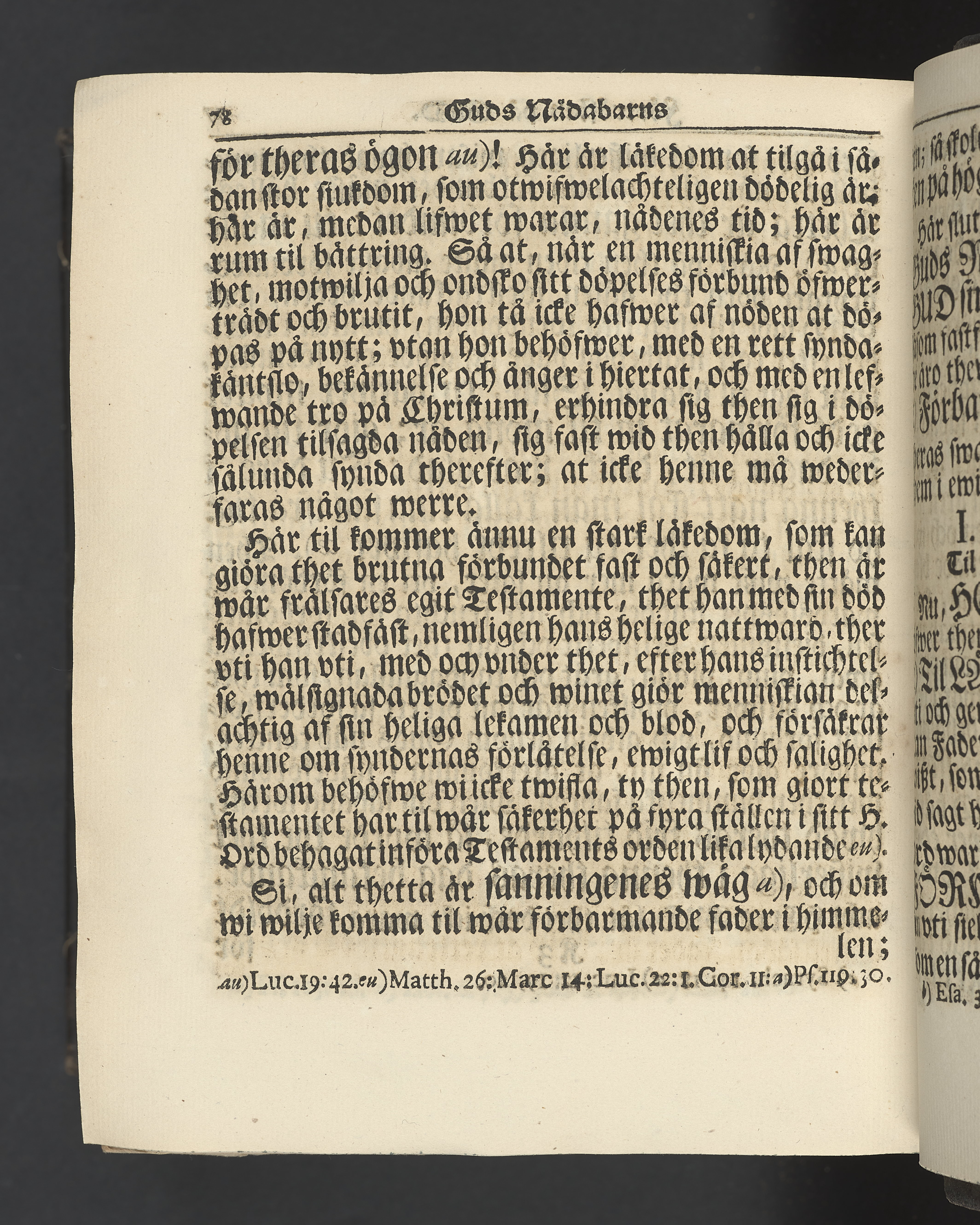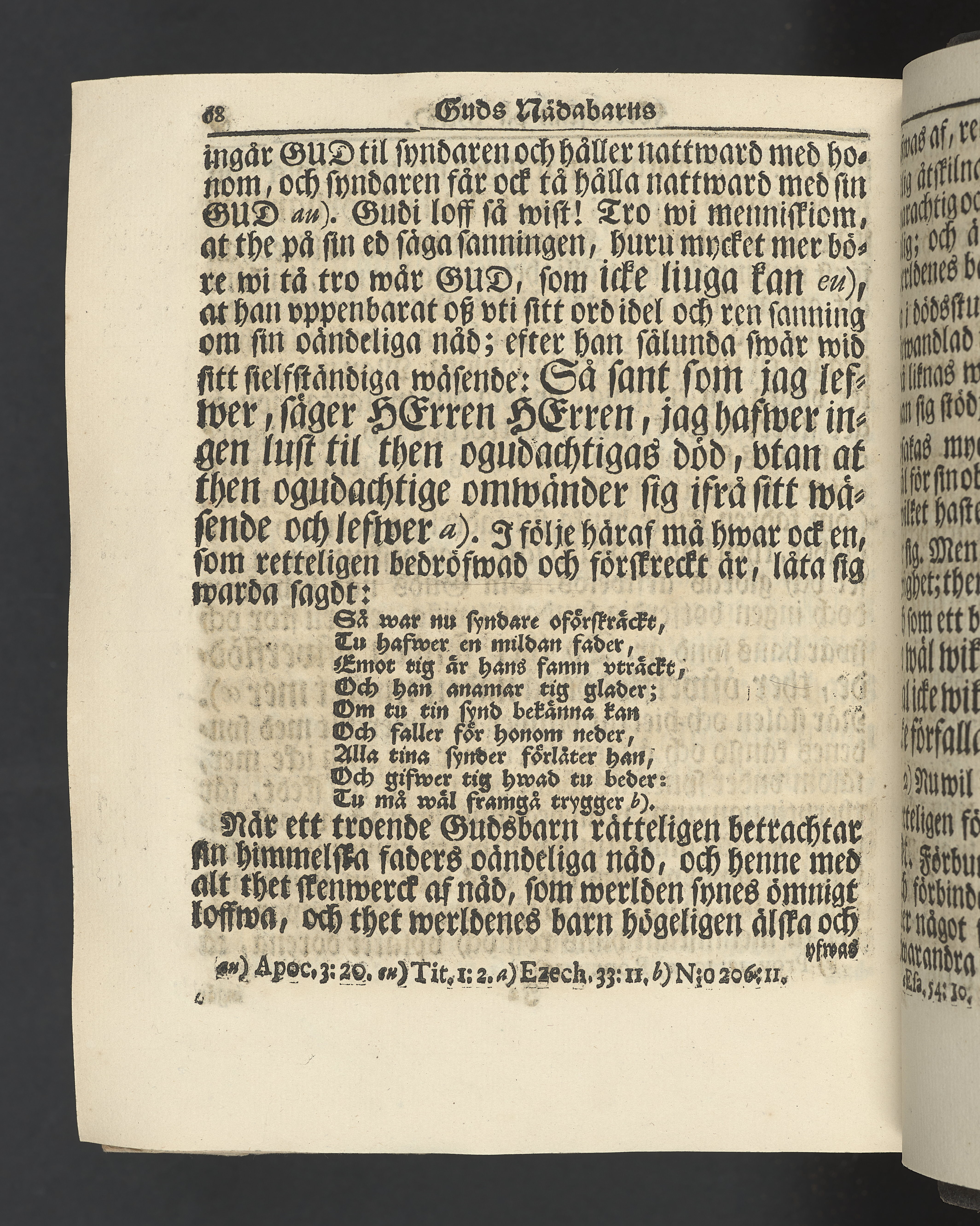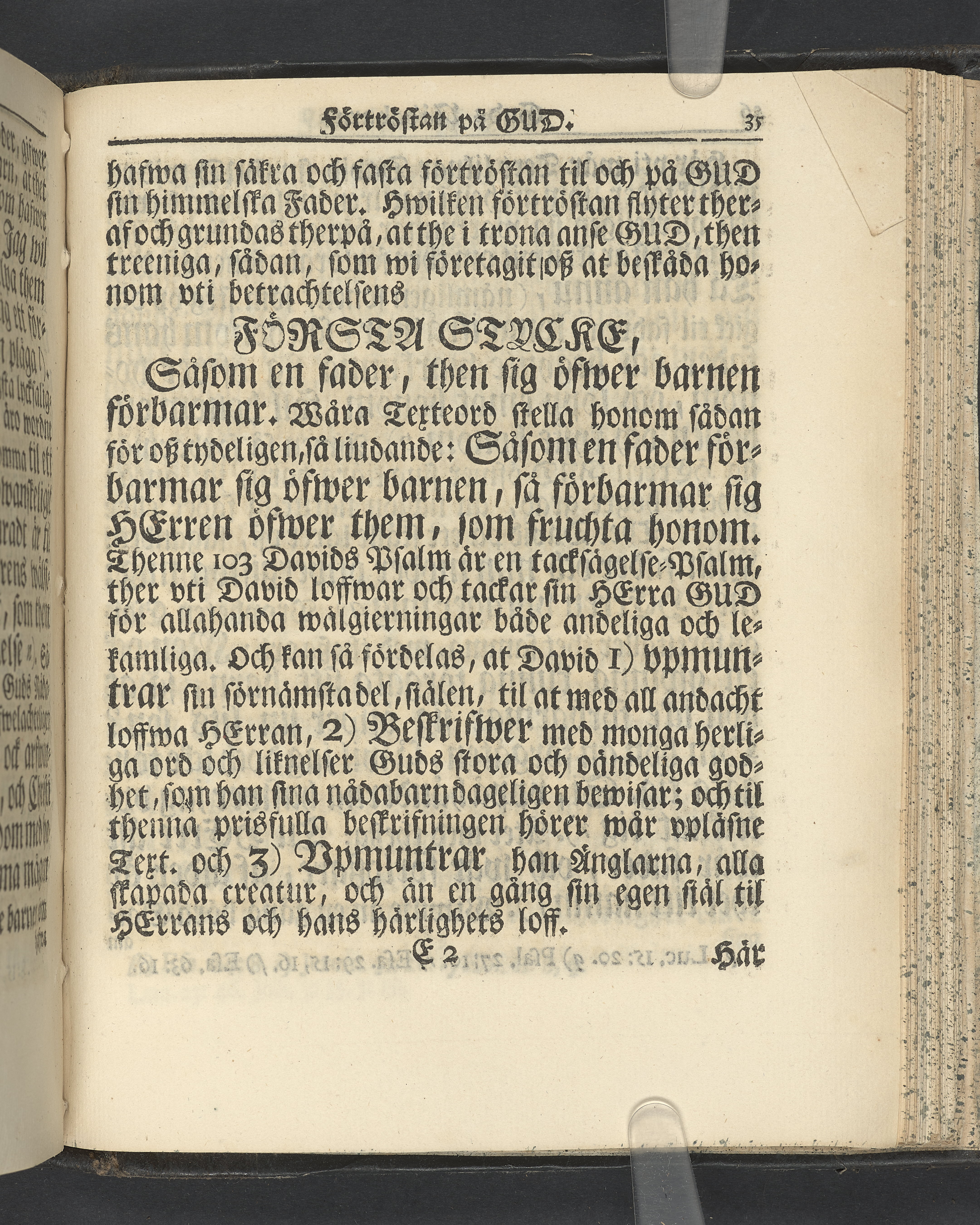 Graverat porträtt innan titelbladet, med bilden på verso. På recto ägaranteckning i svart bläck "Johan Petter Strandberg 1748", i överkant till vänster (delvis avskuret) "155", samt i högra hörnet "22". Nedanför ägaranteckningen en anteckning av Carl Gustaf Bielke med uppgift om inköp på auktion. Snitt stänkta i rött och blått.