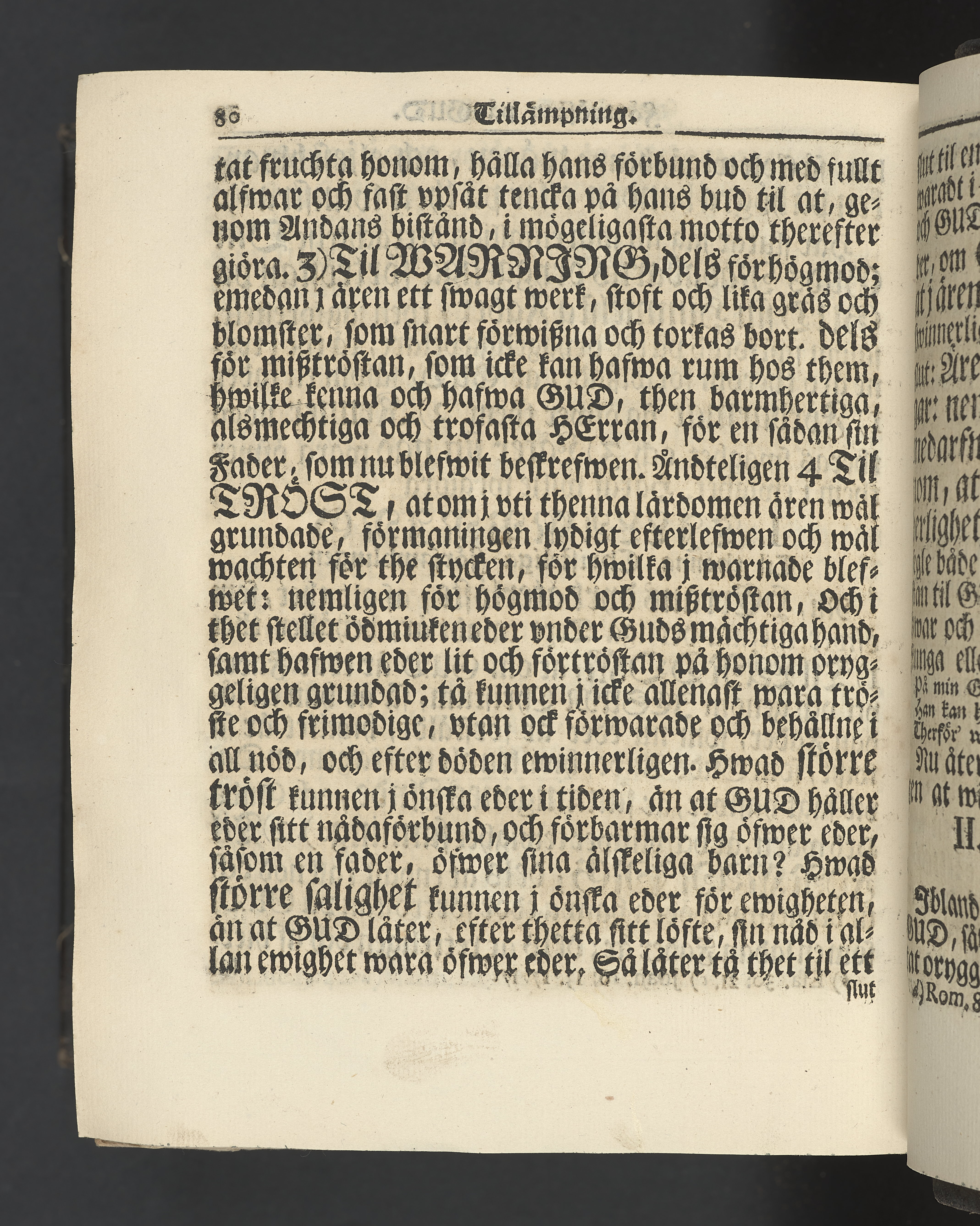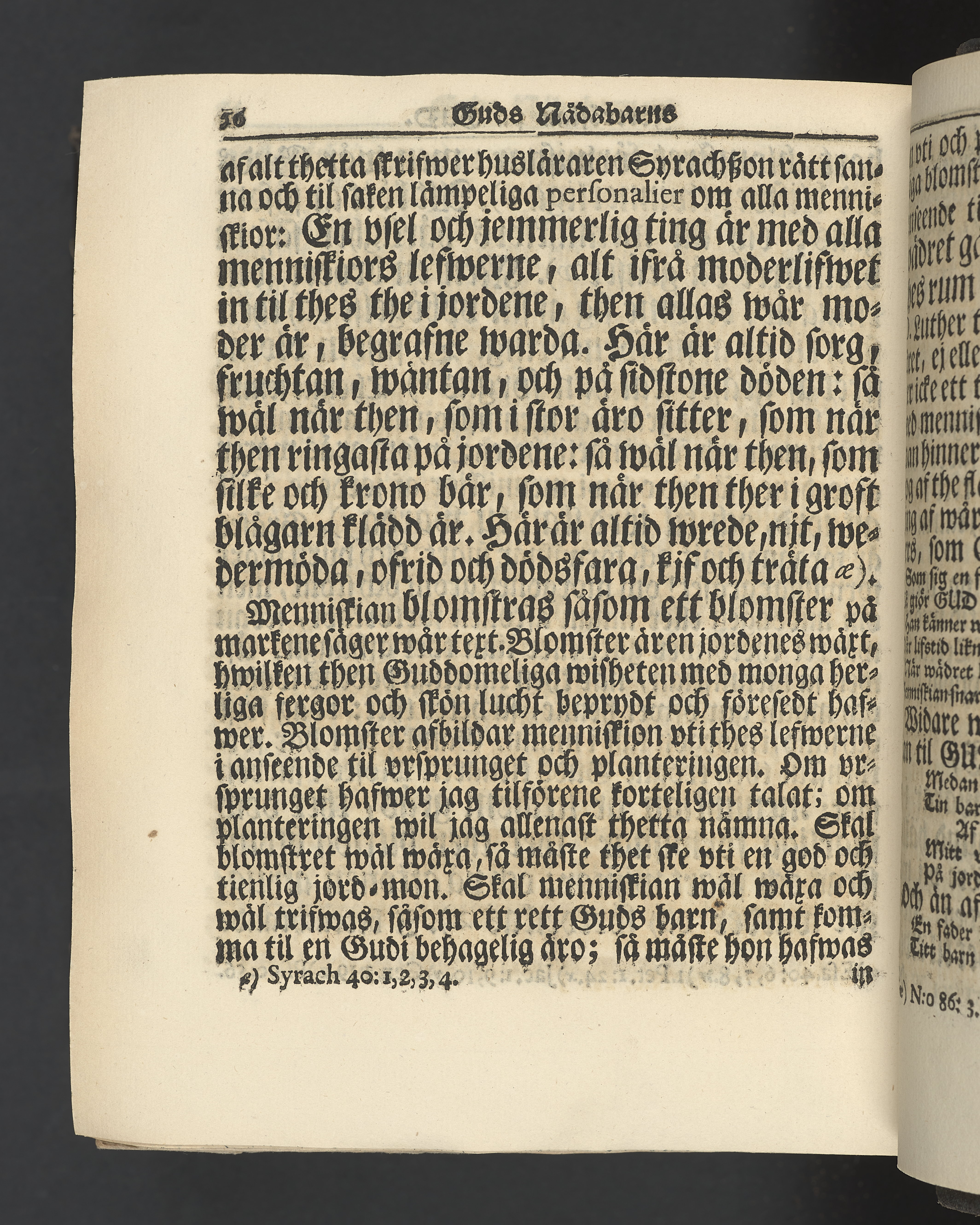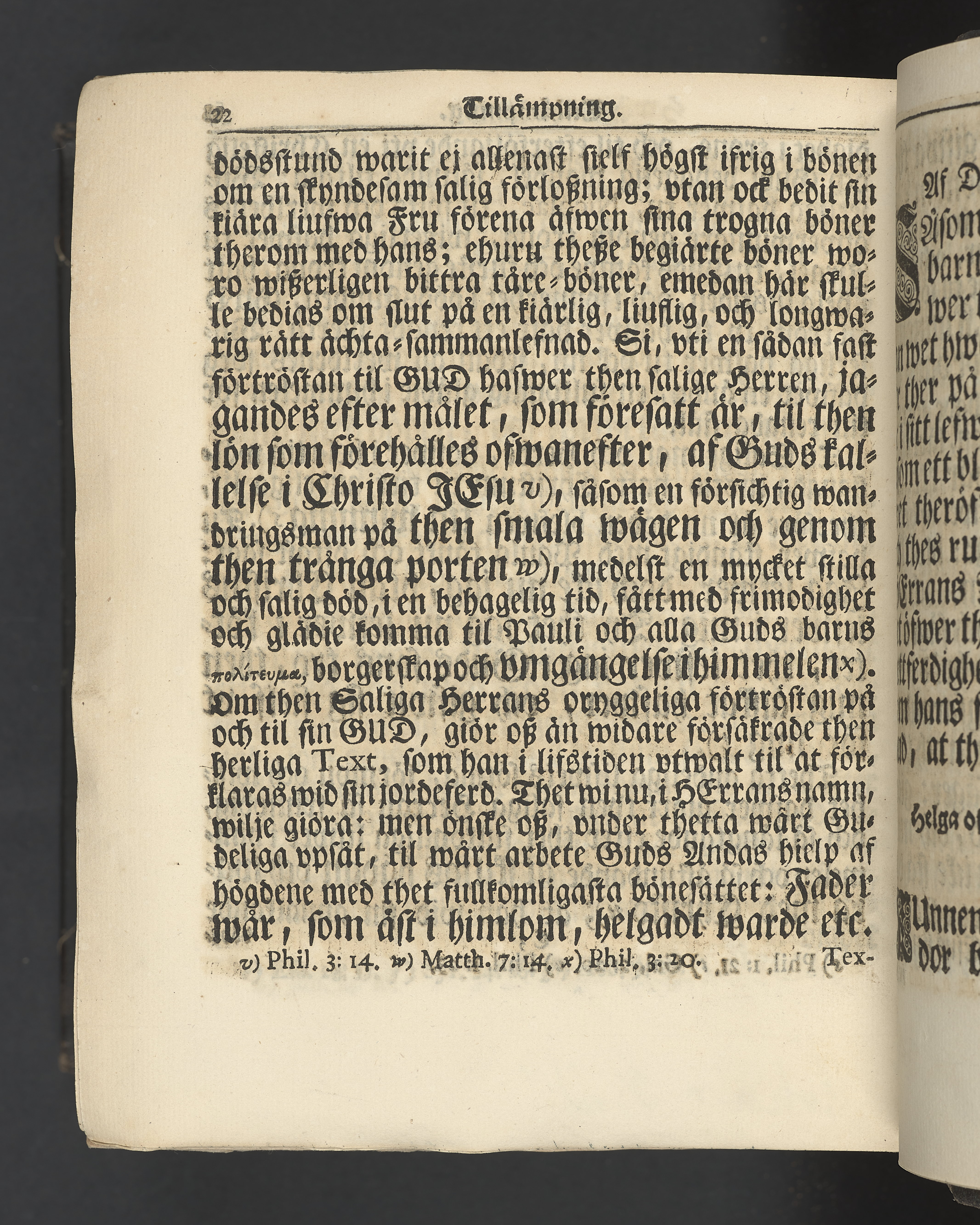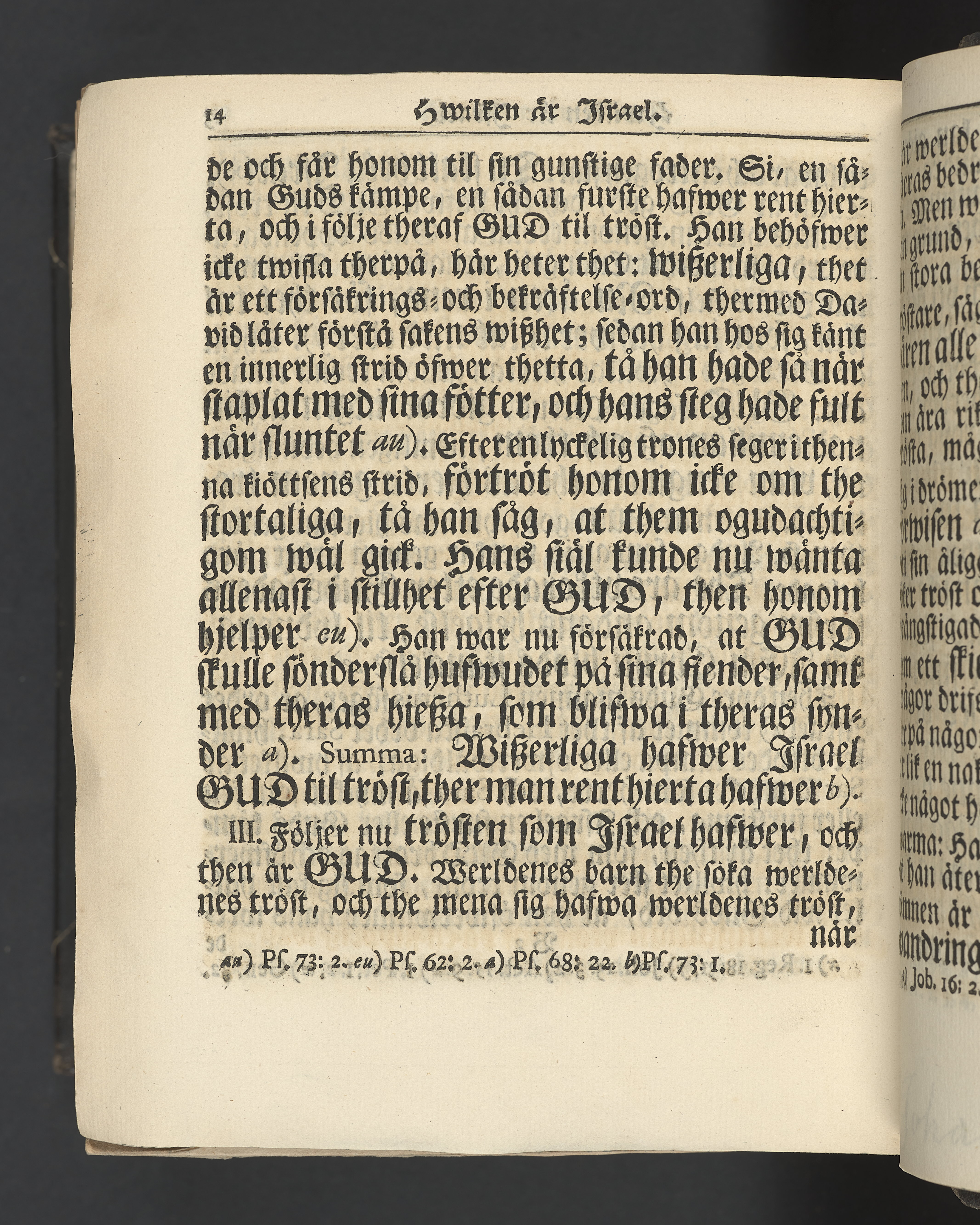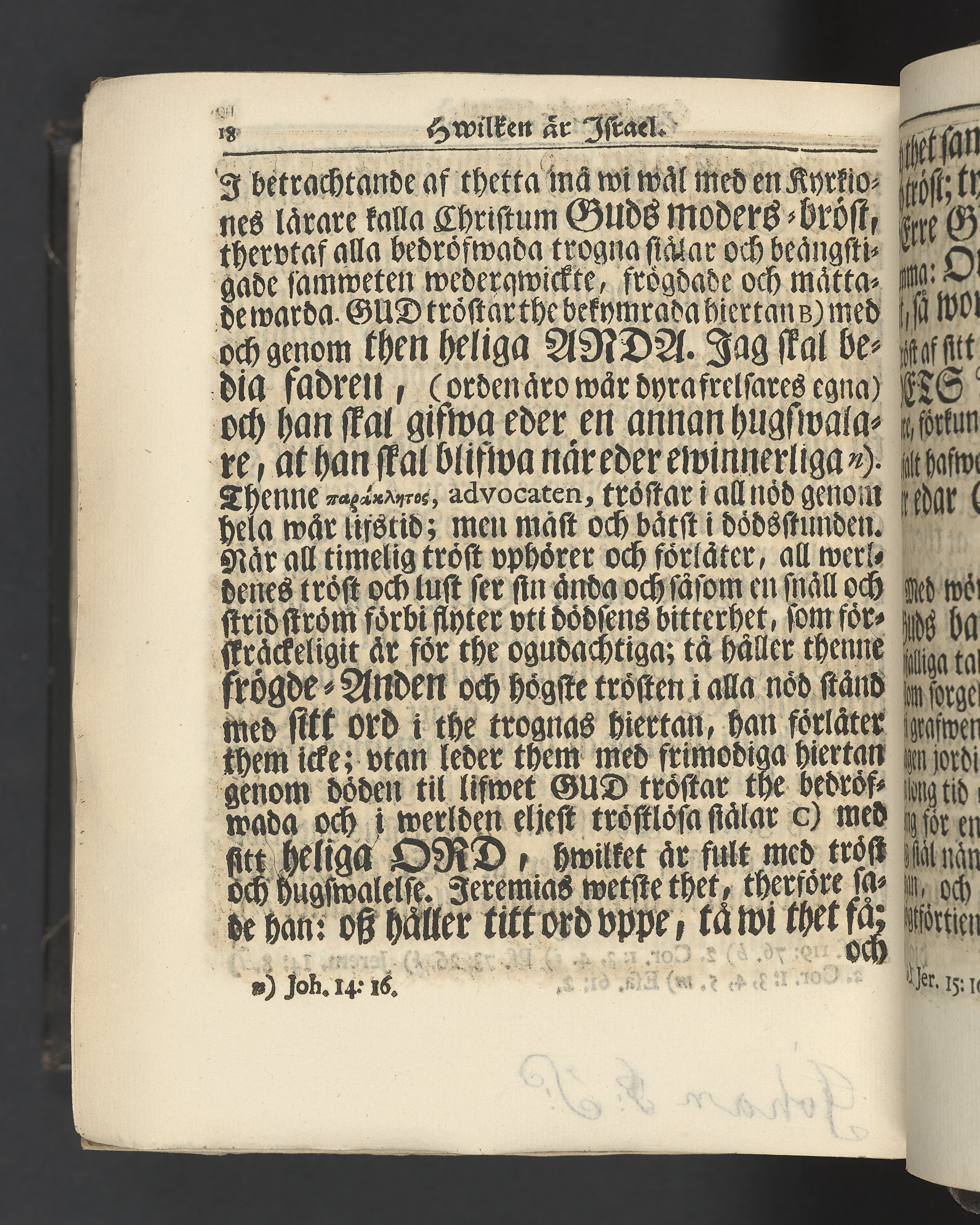 Graverat porträtt innan titelbladet, med bilden på verso. På recto ägaranteckning i svart bläck "Johan Petter Strandberg 1748", i överkant till vänster (delvis avskuret) "155", samt i högra hörnet "22". Nedanför ägaranteckningen en anteckning av Carl Gustaf Bielke med uppgift om inköp på auktion. Snitt stänkta i rött och blått.