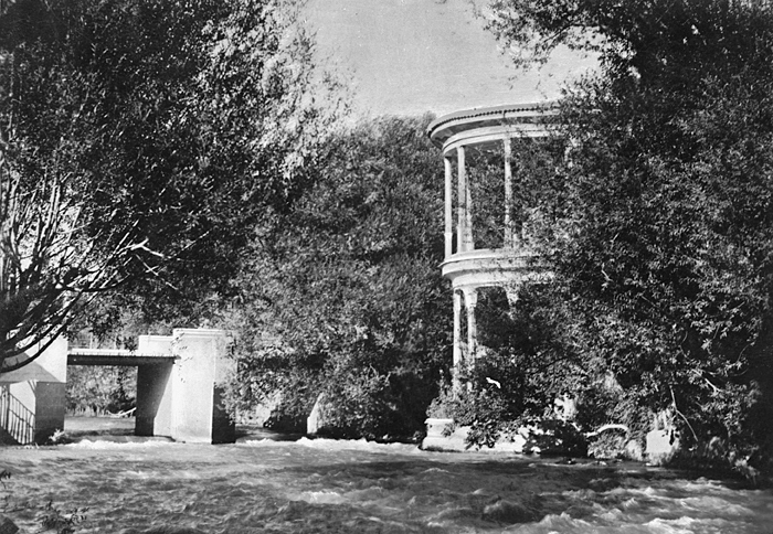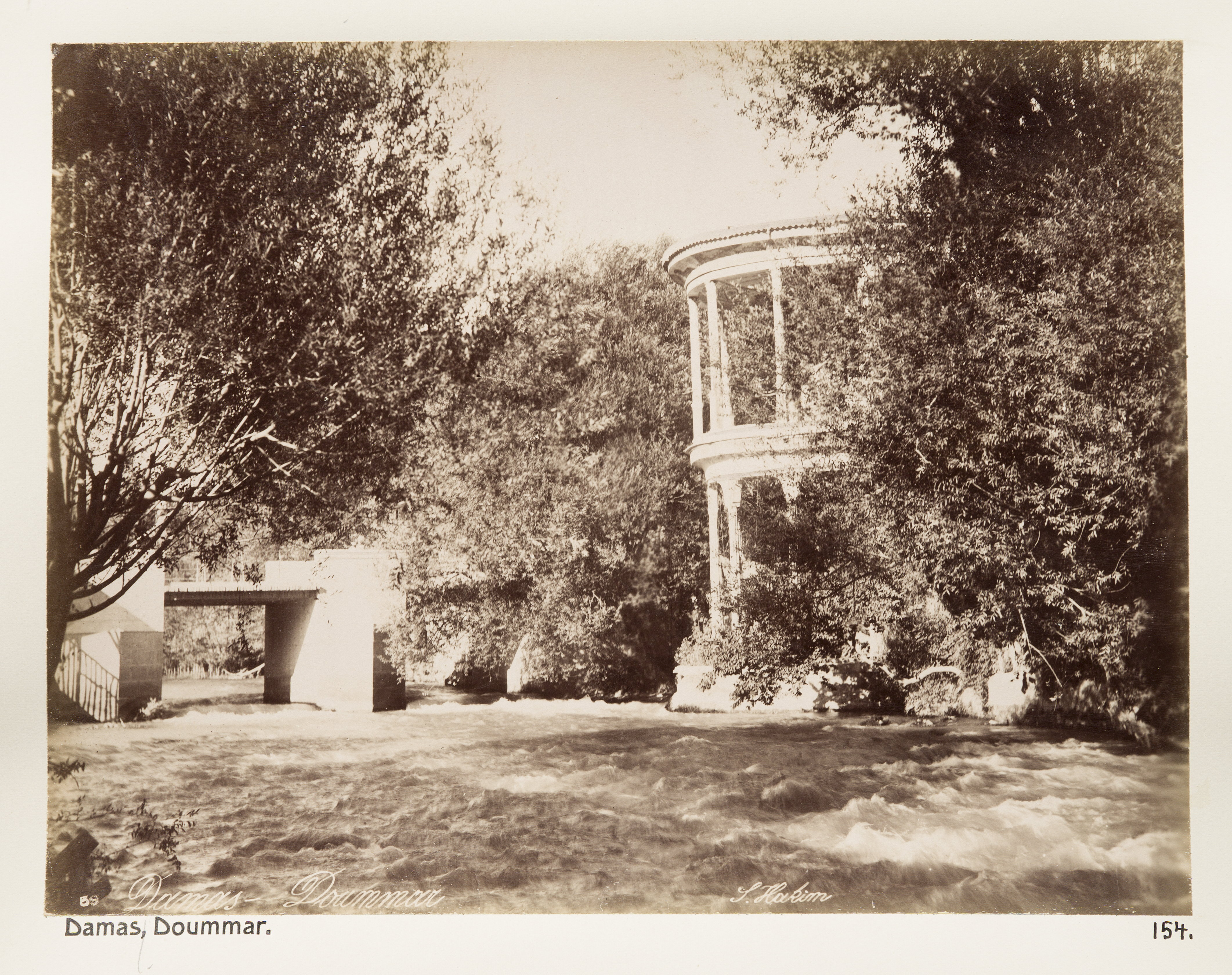 Dummar (stadsdel i Damaskus). Text på originalet: "Damas, Doummar." Fotografierna LXVI:N.01.-180. kommer från resan till Palestina och Syrien som Wilhelmina och Walther von Hallwyl gjorde den 30 mars-27 april 1901. De lämnade Sverige den 5 november 1900 för Egypten, där de stannade till den 28 mars 1901, då de fortsatte till Palestina. Med på resan var Wilhelminas sällskapsdam, fröken Ida Uhse. Den 27 april fortsatte de till Turkiet och Mindre Asien. De mindre fotografierna (utom de från Samos) LXVI:N.90.-100. är tagna av Wilhelmina själv, under en resa till häst från Jerusalem till Damaskus 8-20 april 1901. Övriga fotografier är inköpta av Wilhelmina i Jerusalem, Damaskus och Beirut. Alla uppgifter kommer från Ida Uhses reseanteckningar.