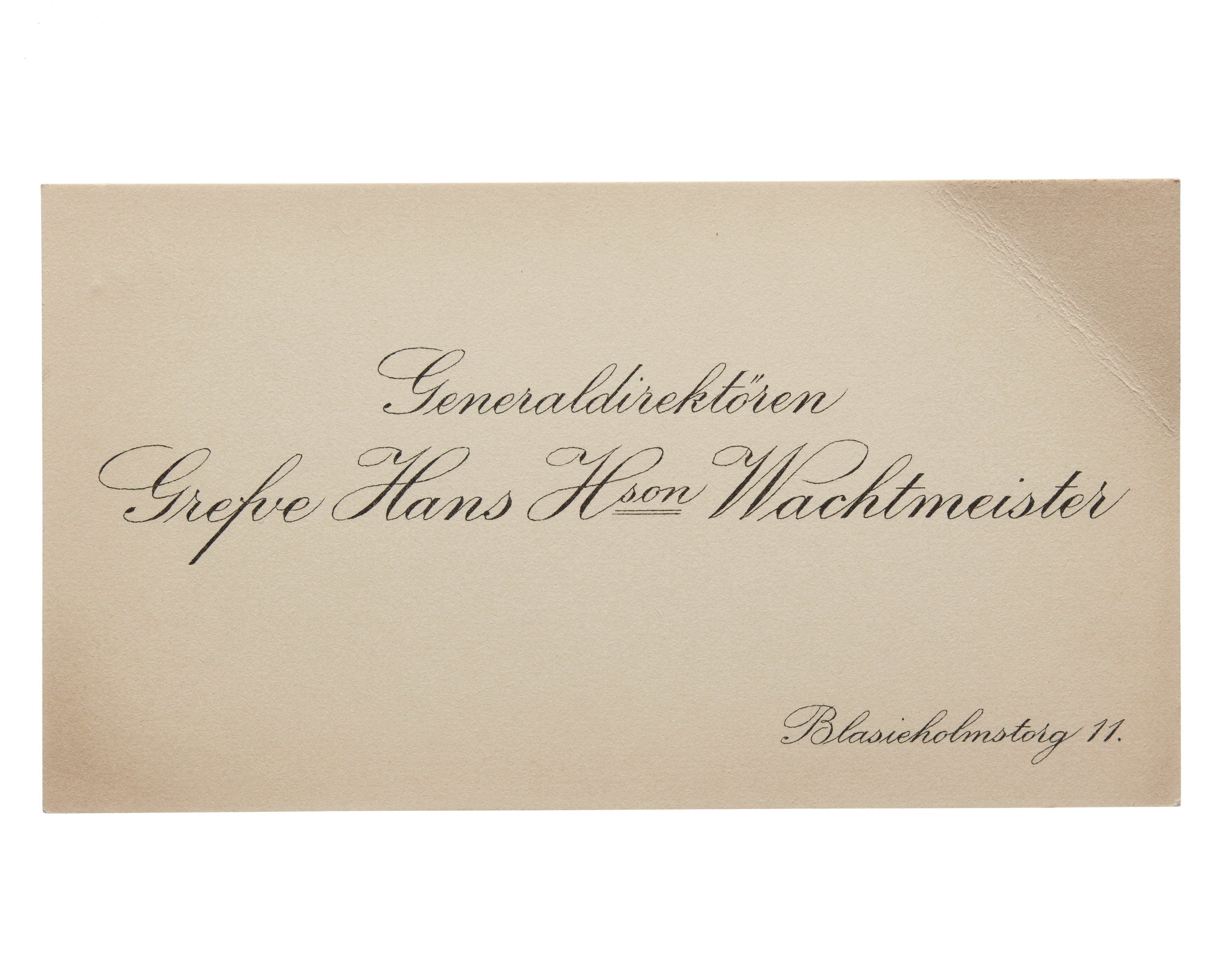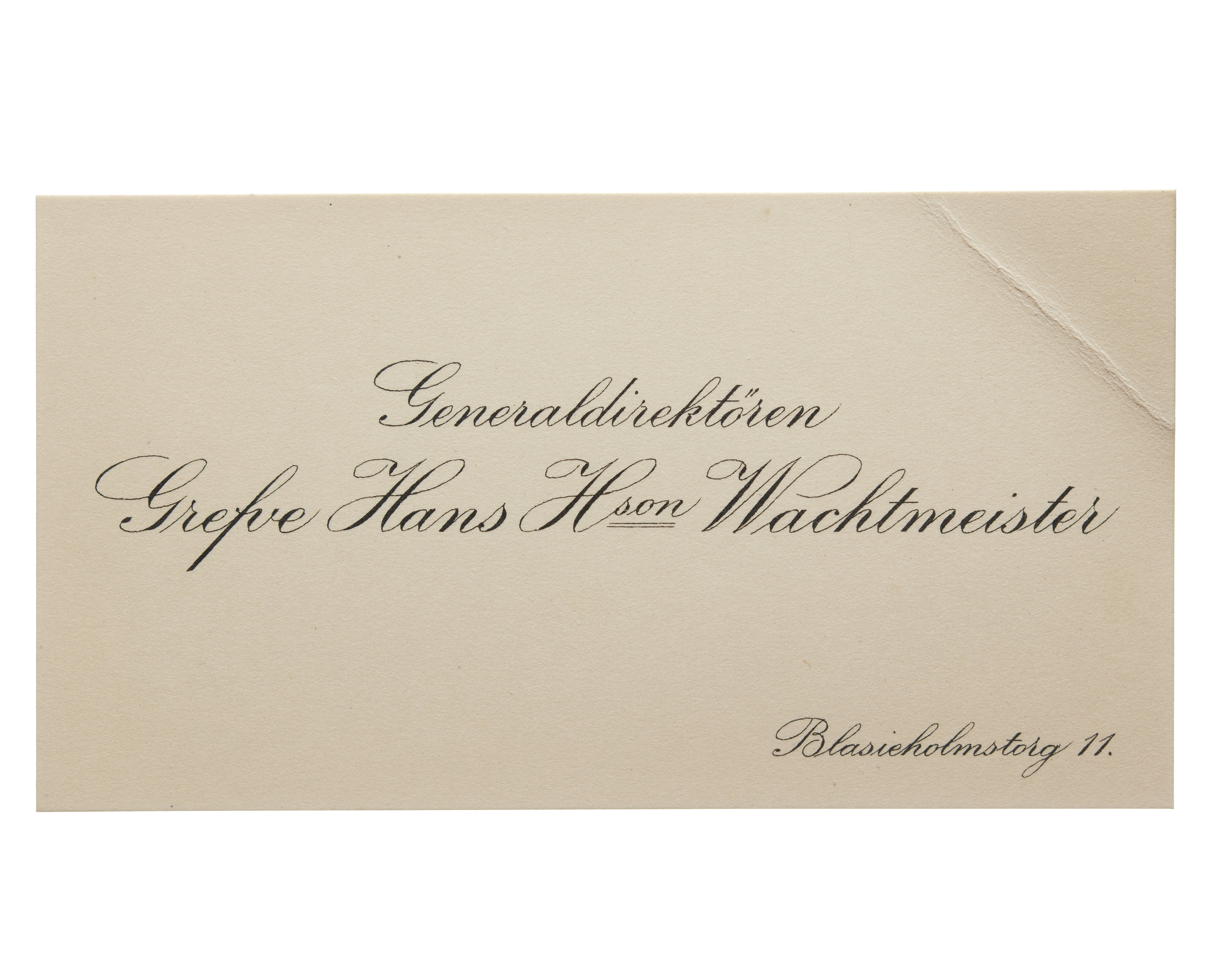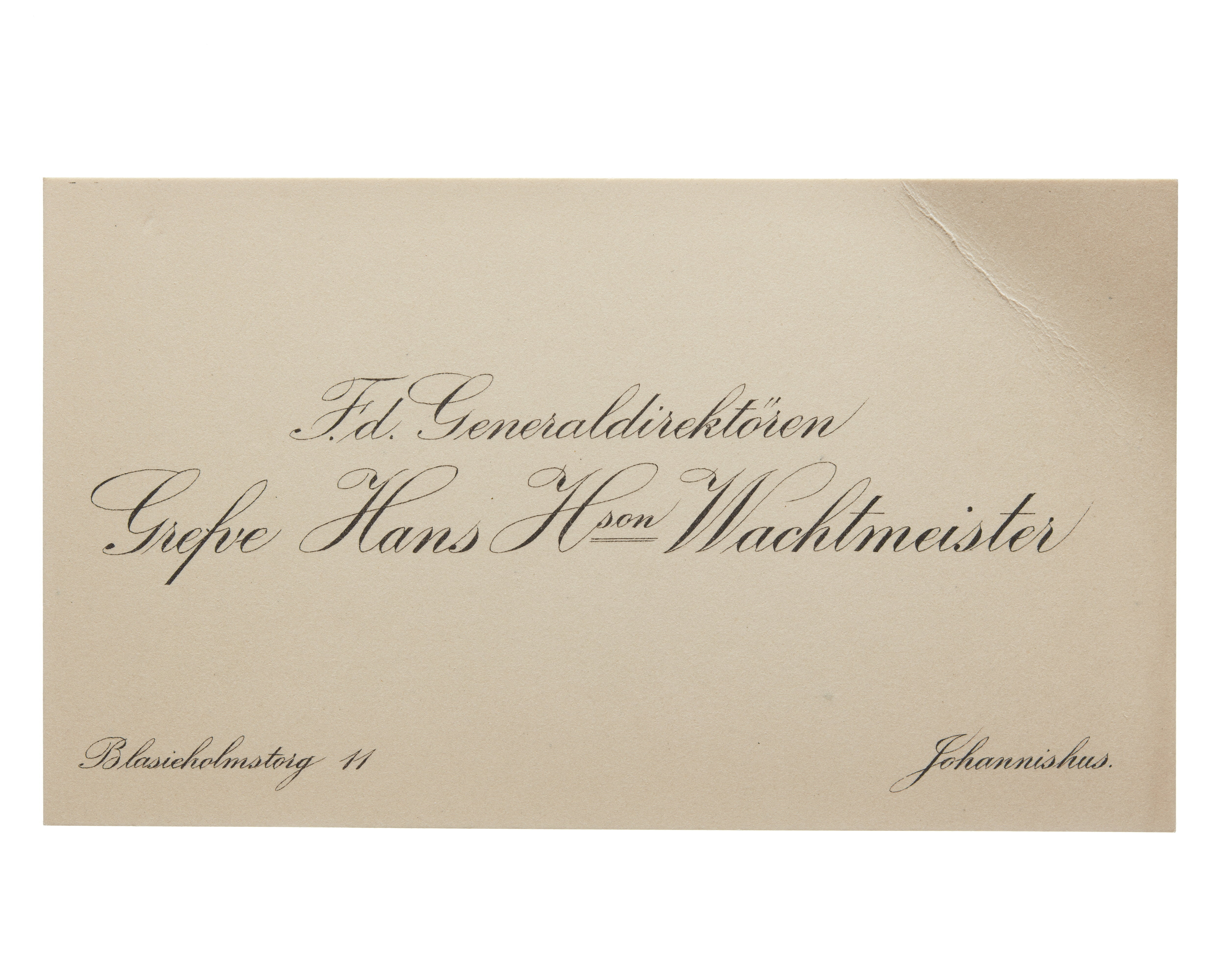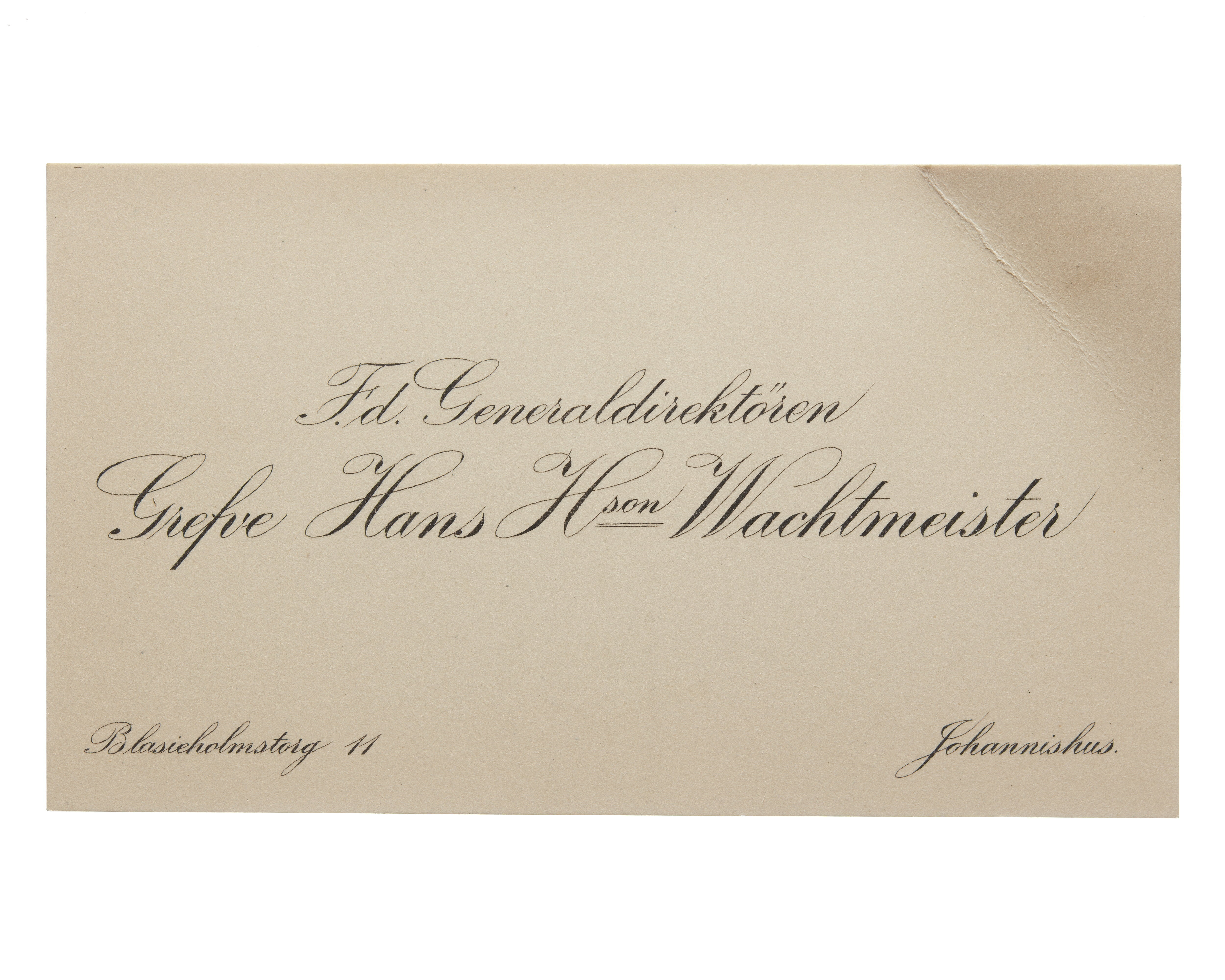 Visitkort från Generaldirektören Greve Hans H:son Wachtmeister.