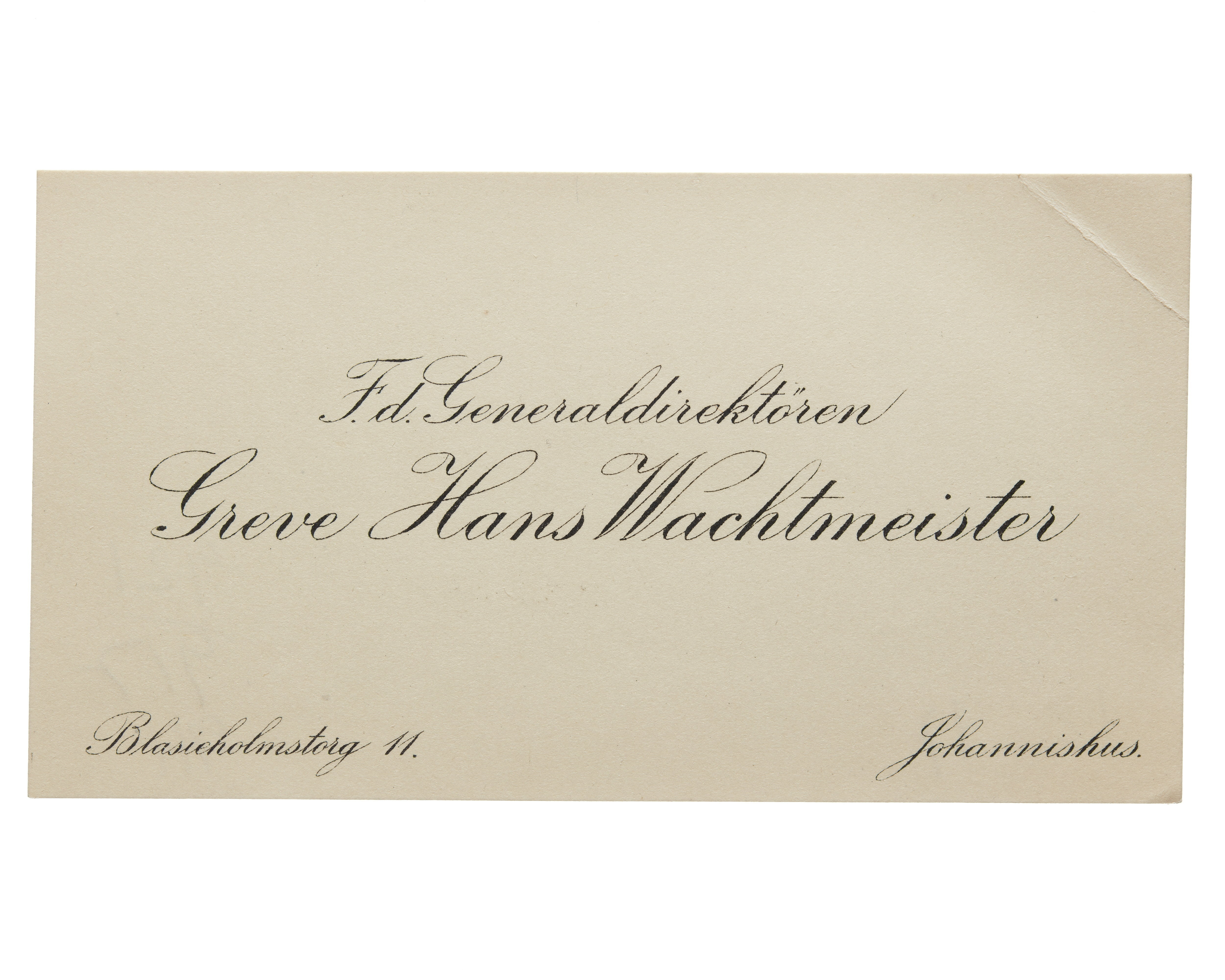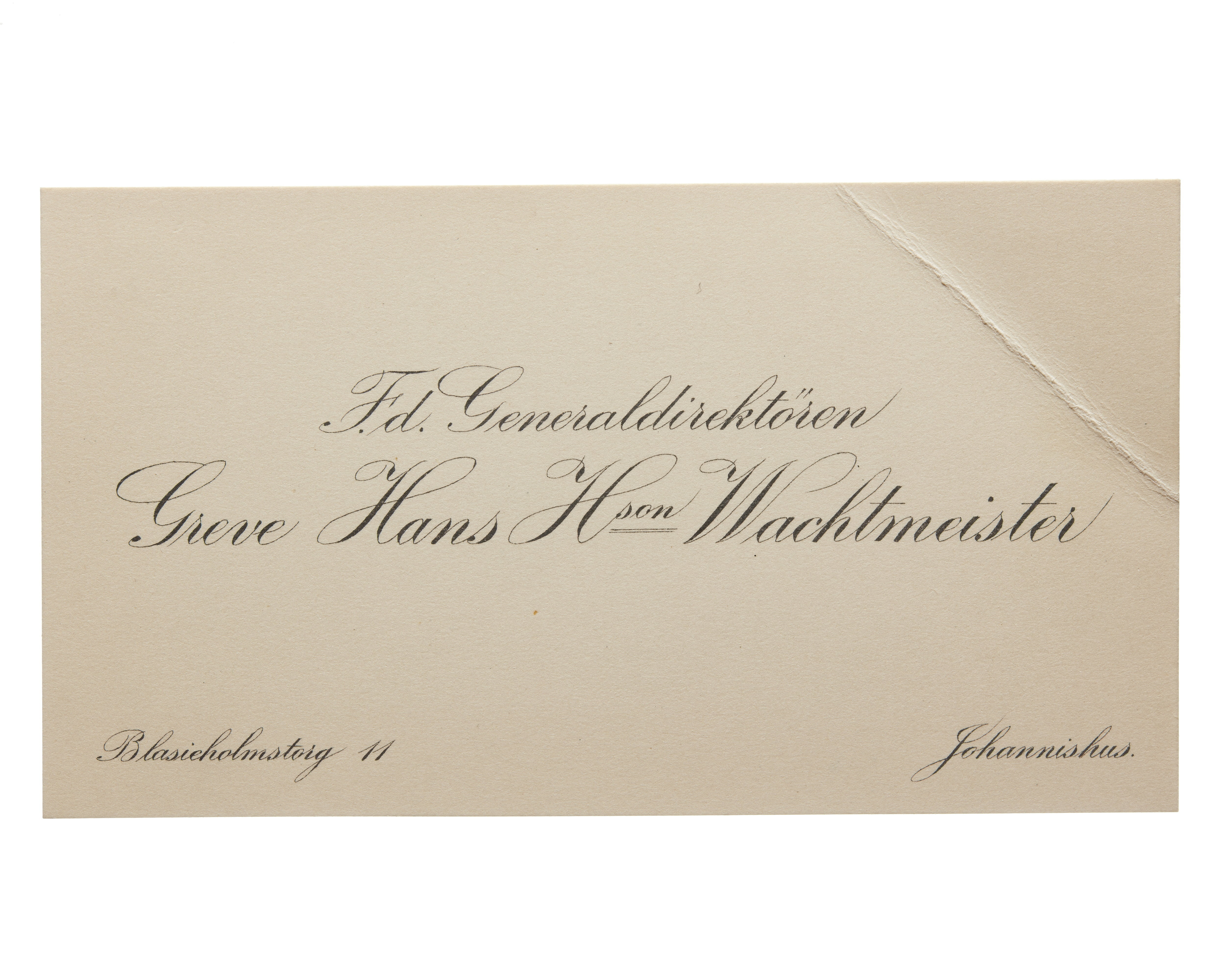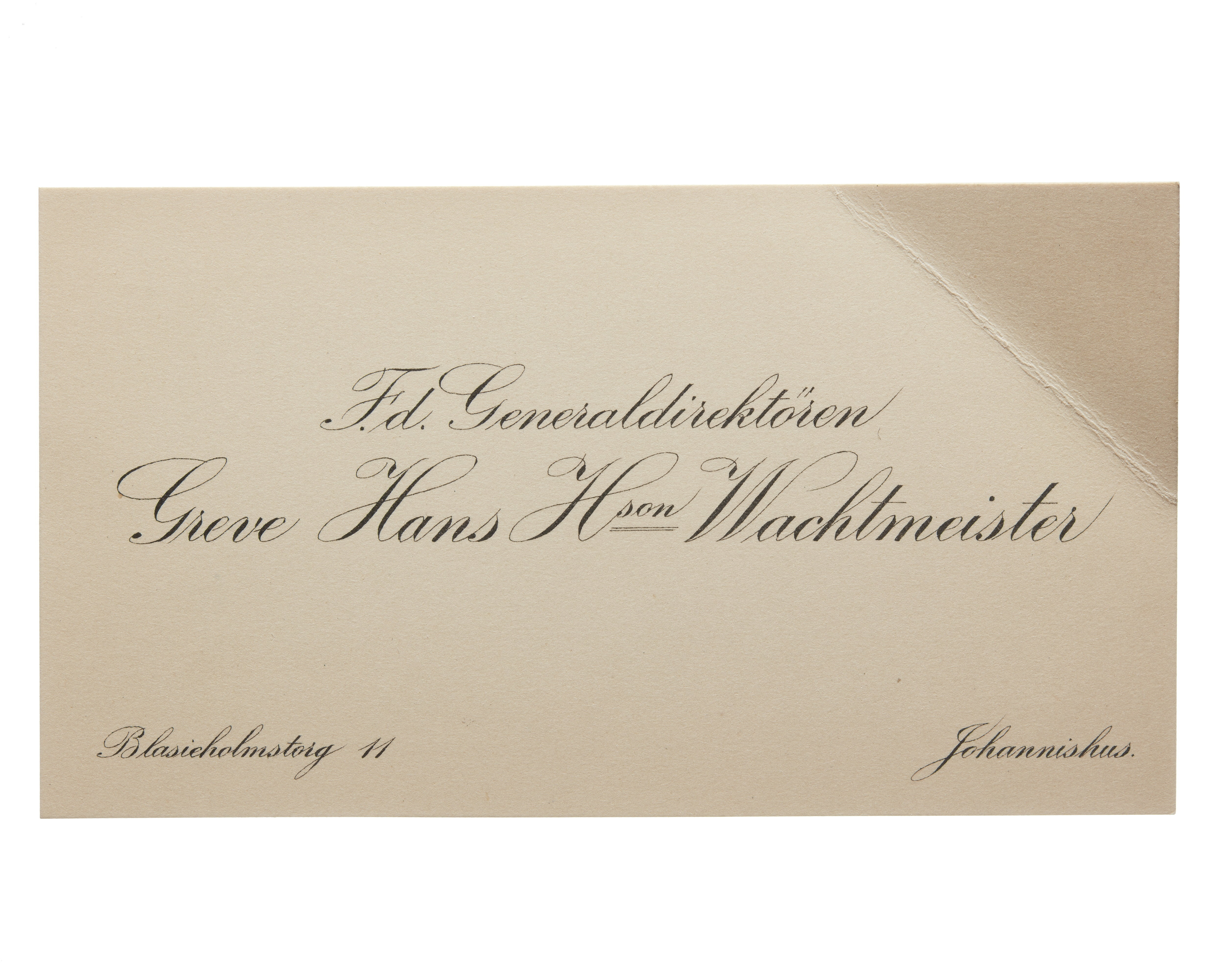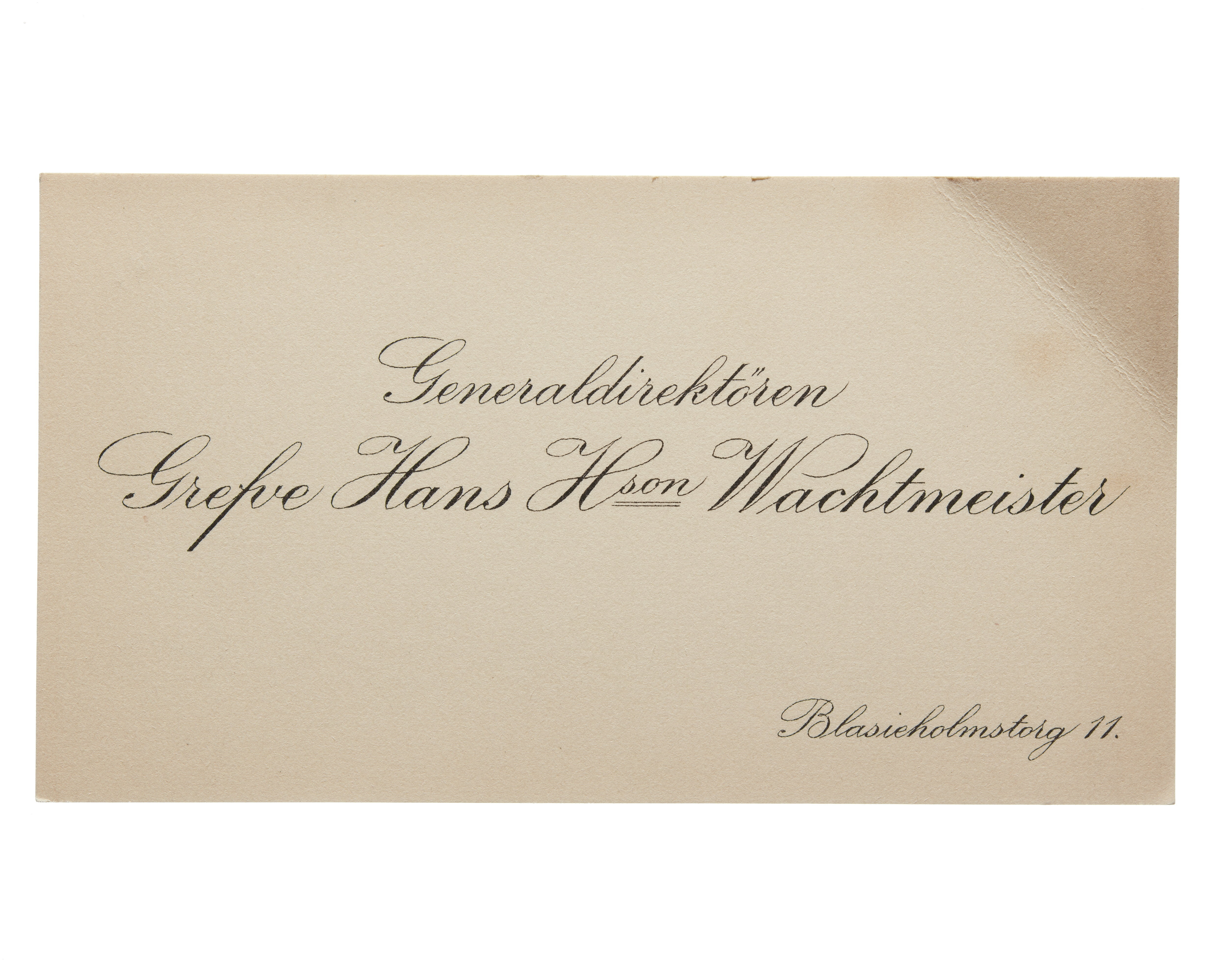 Visitkort från Generaldirektören Greve Hans H:son Wachtmeister.