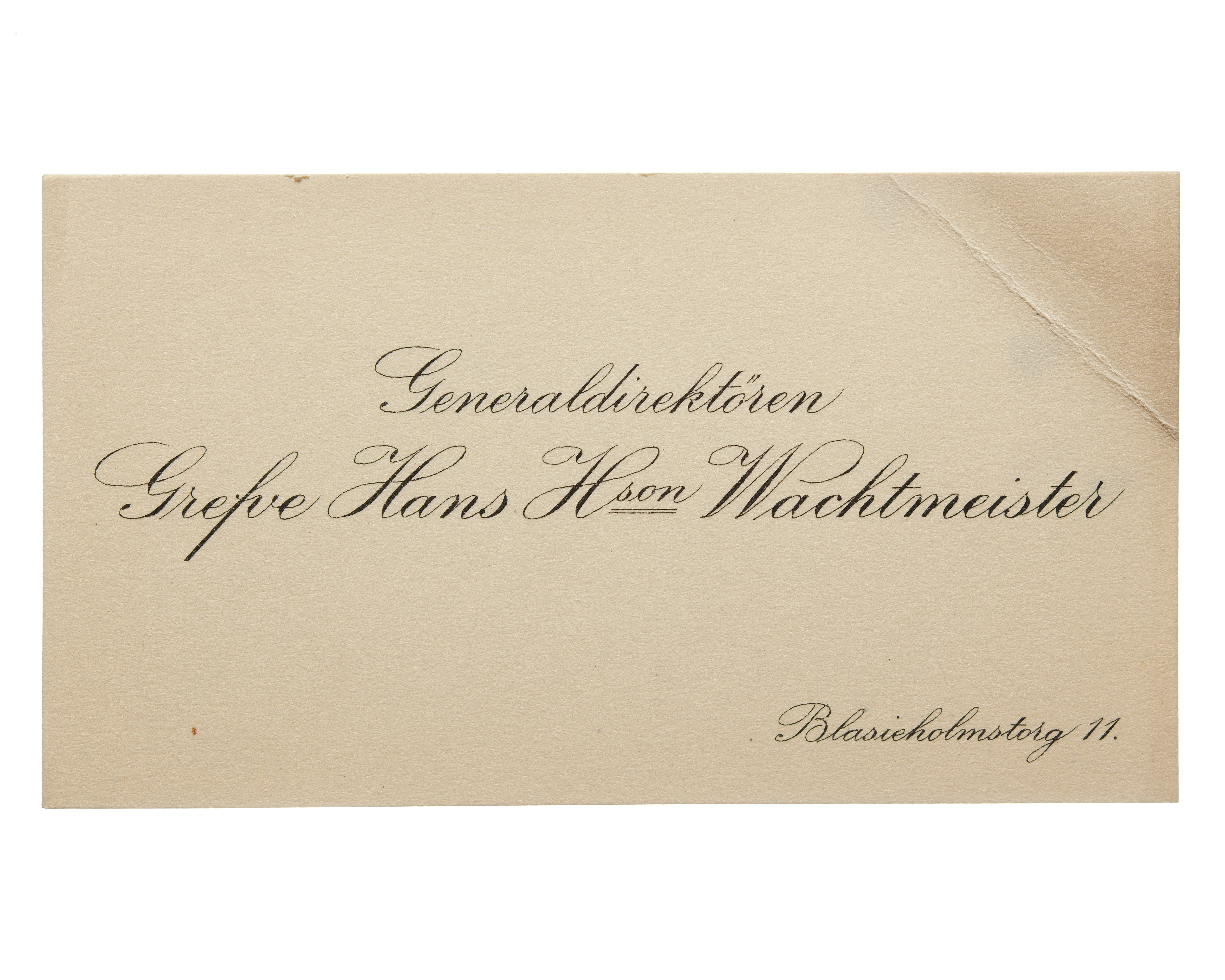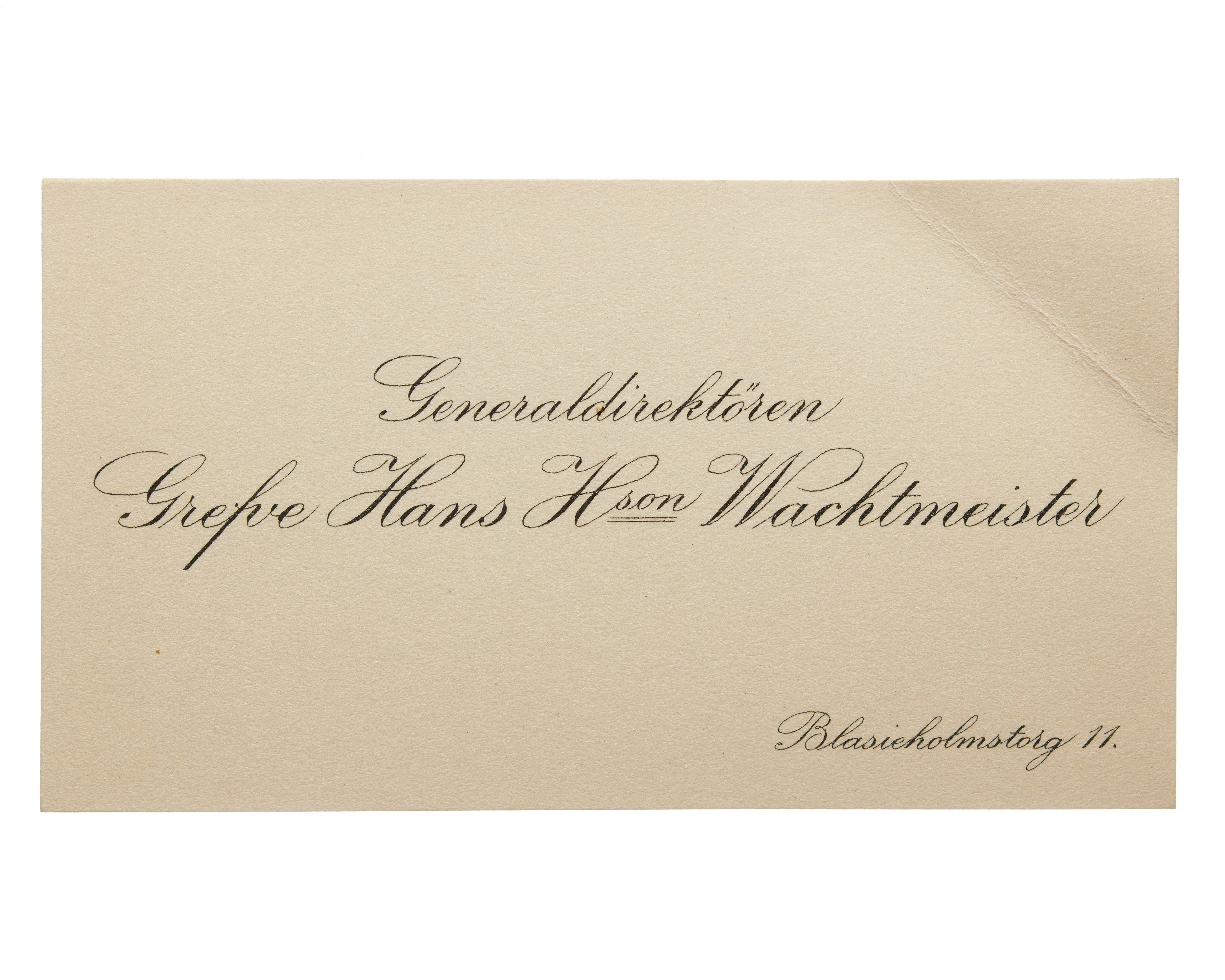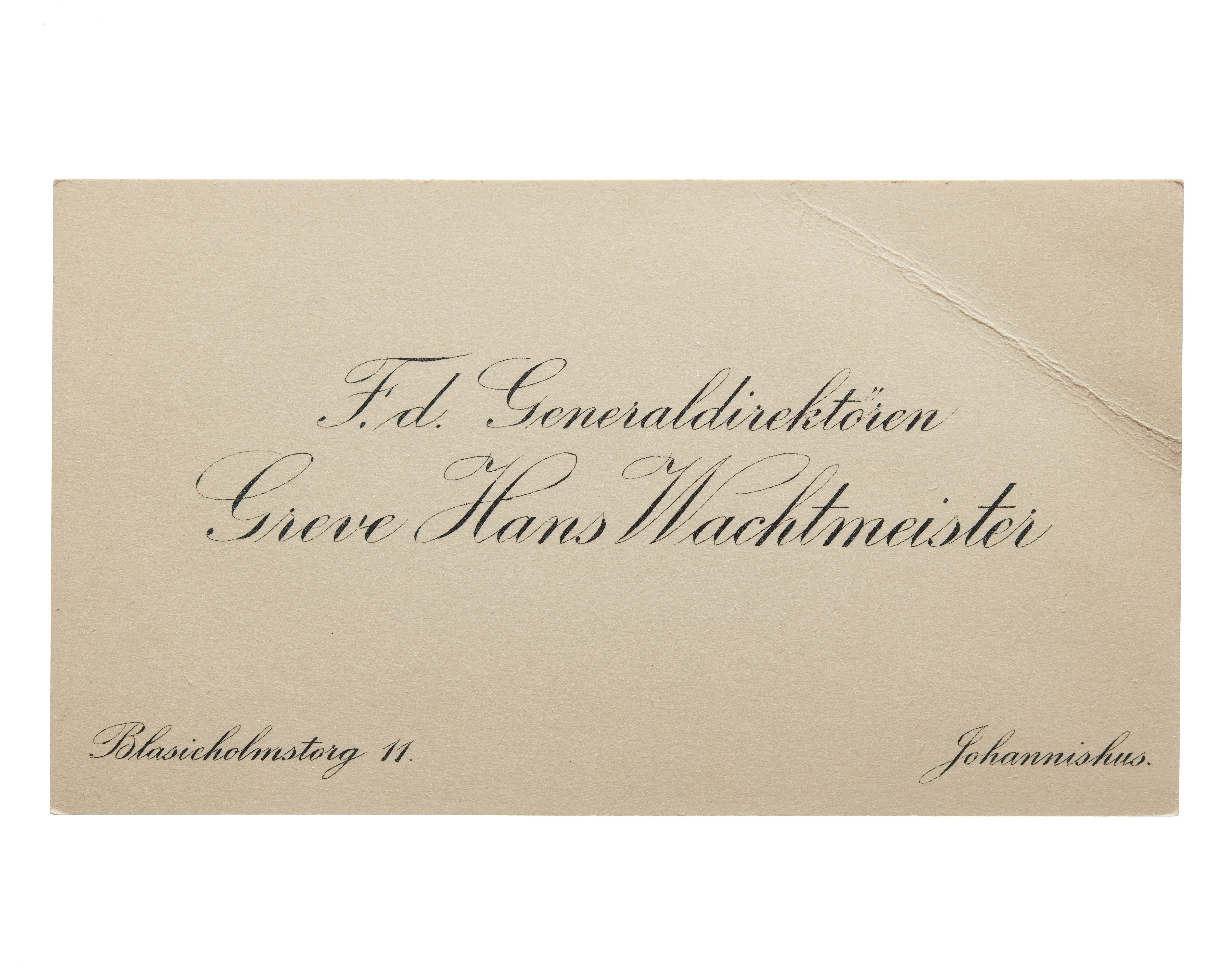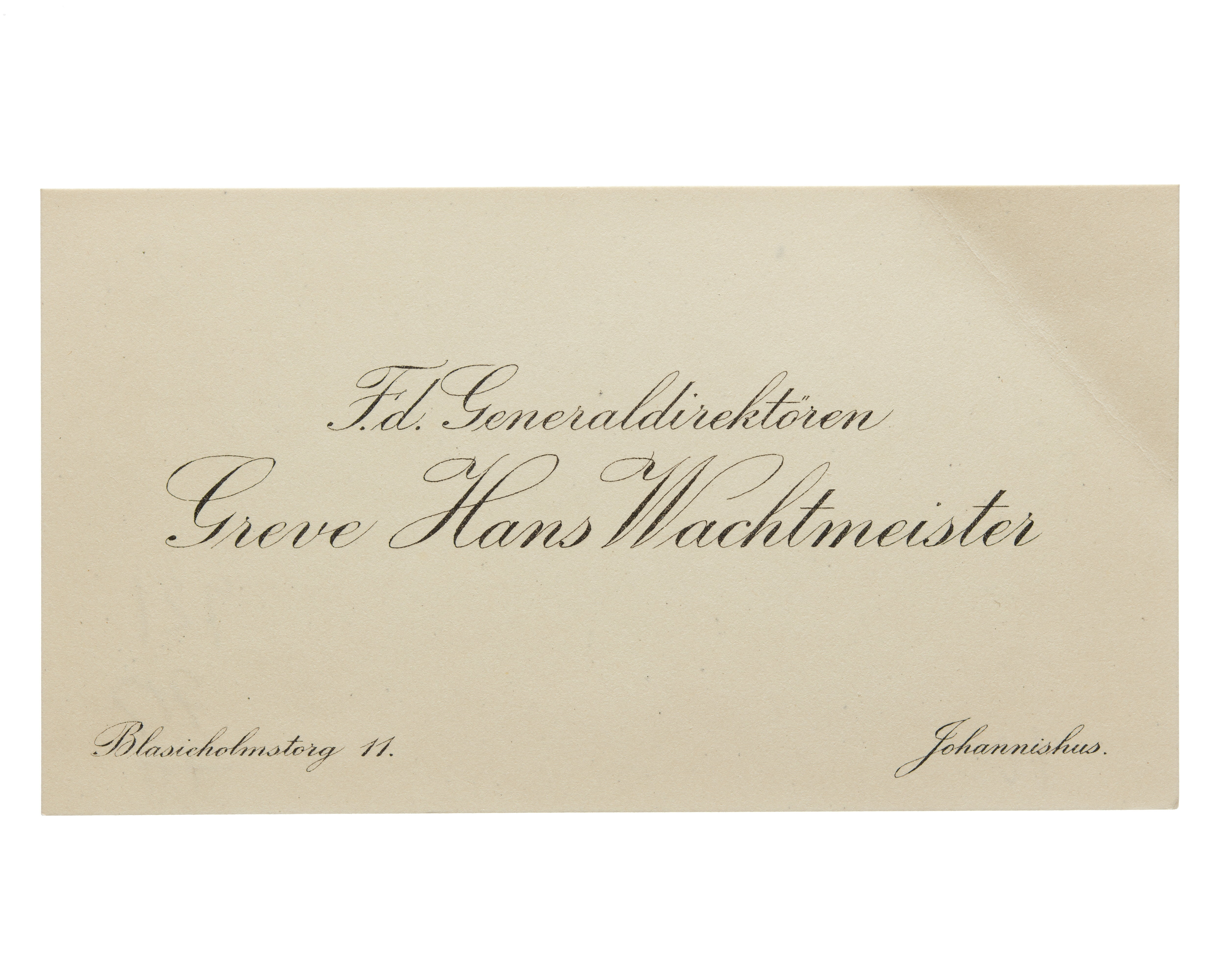 Visitkort från Generaldirektören Greve Hans H:son Wachtmeister.