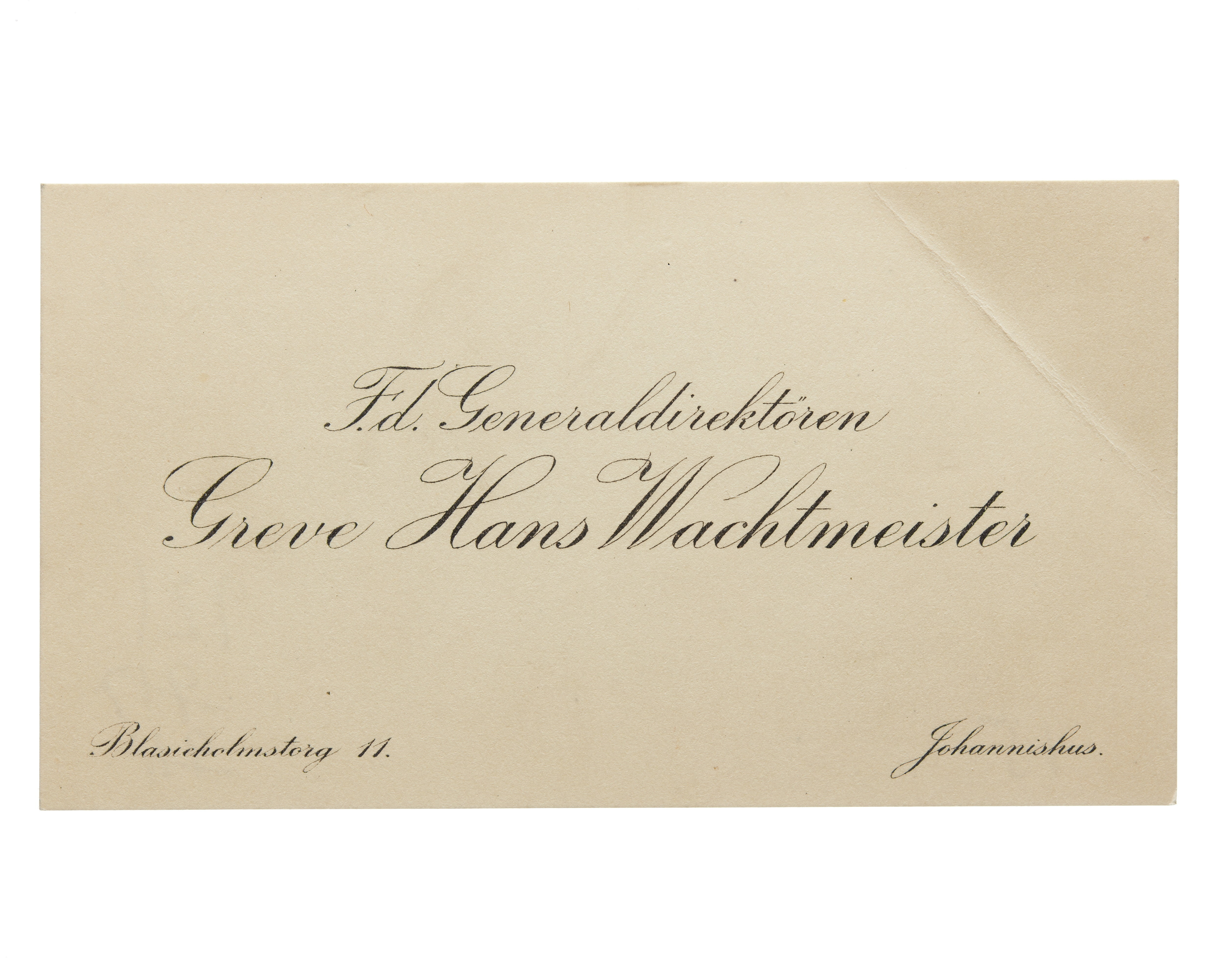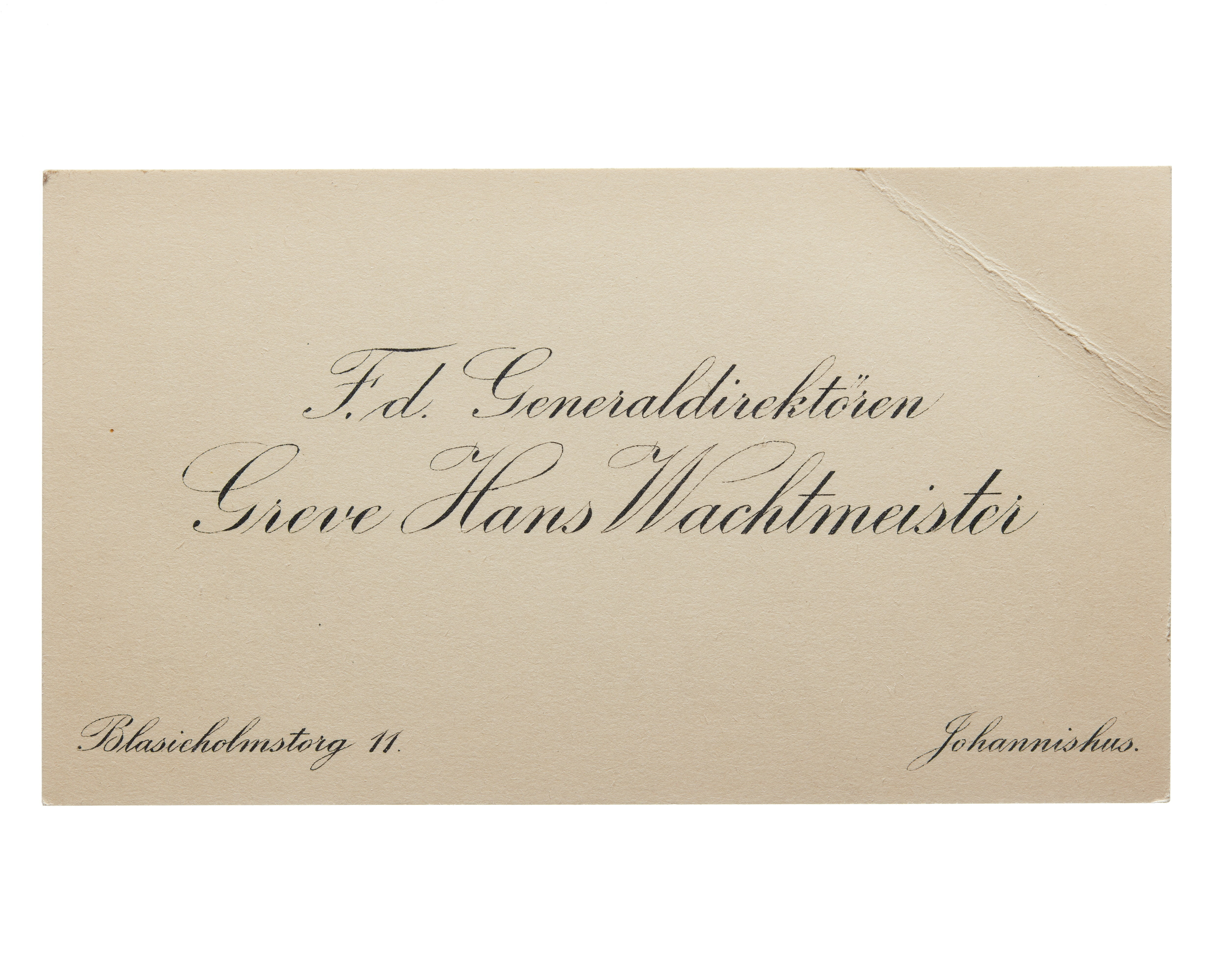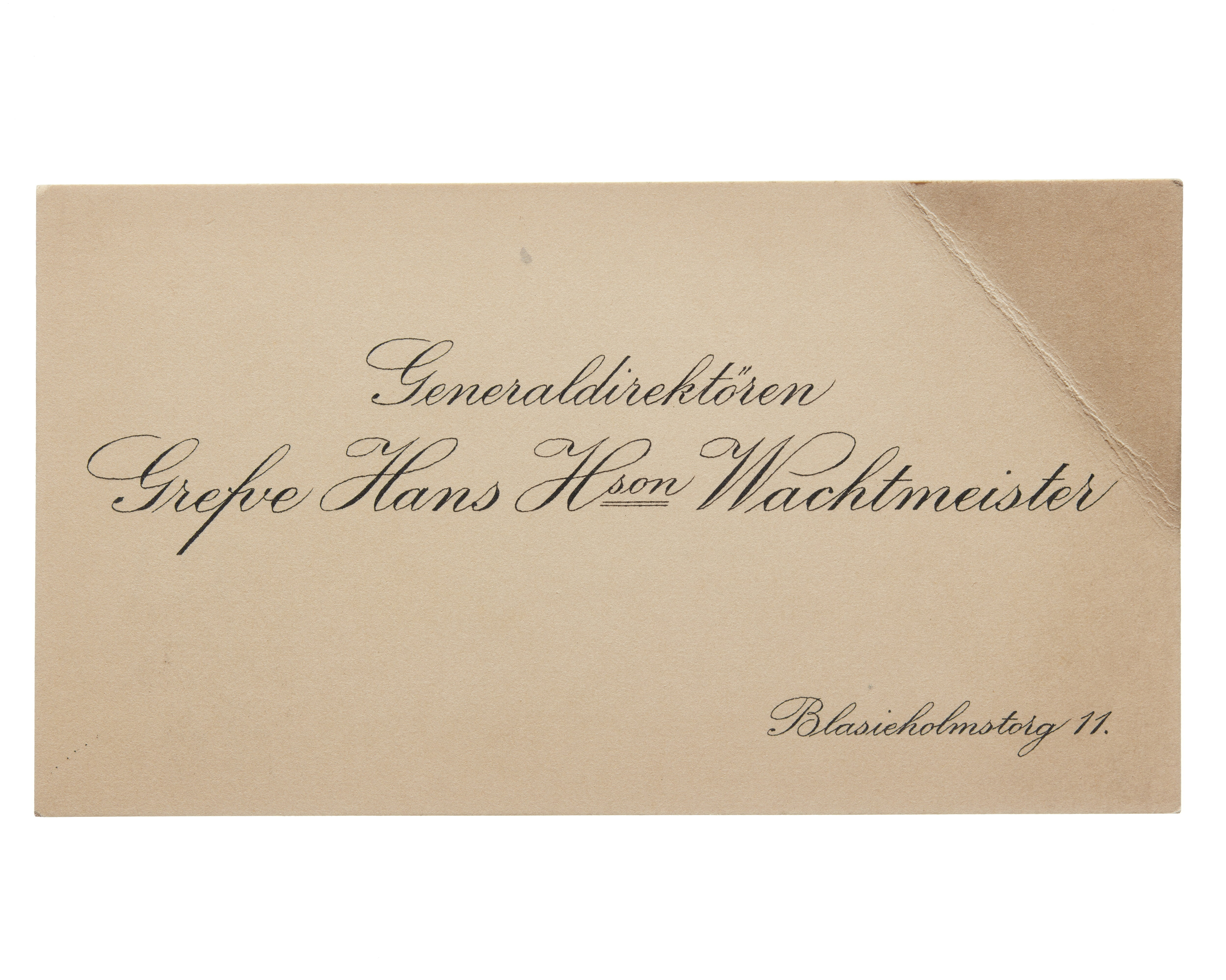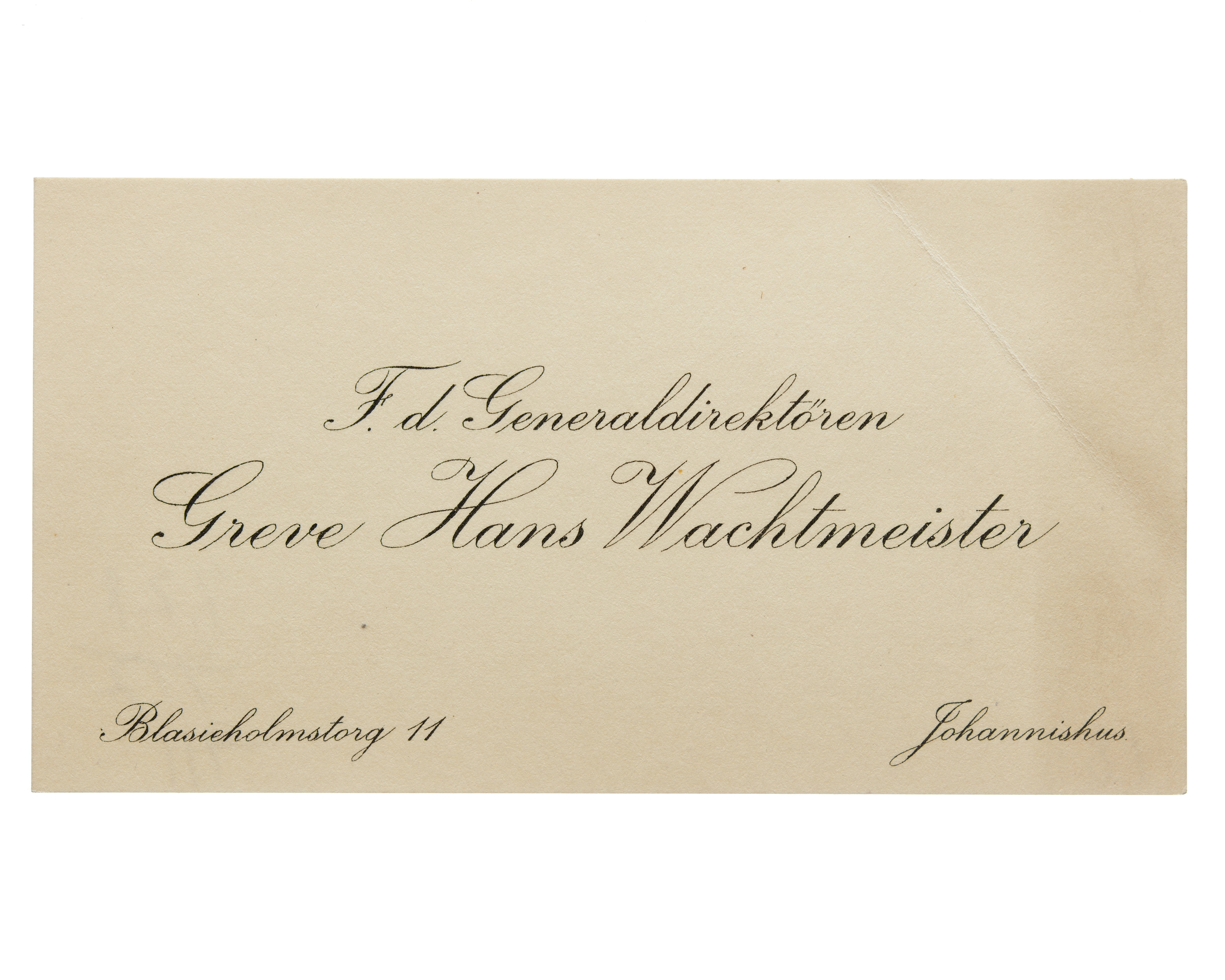 Visitkort från Generaldirektören Greve Hans H:son Wachtmeister.