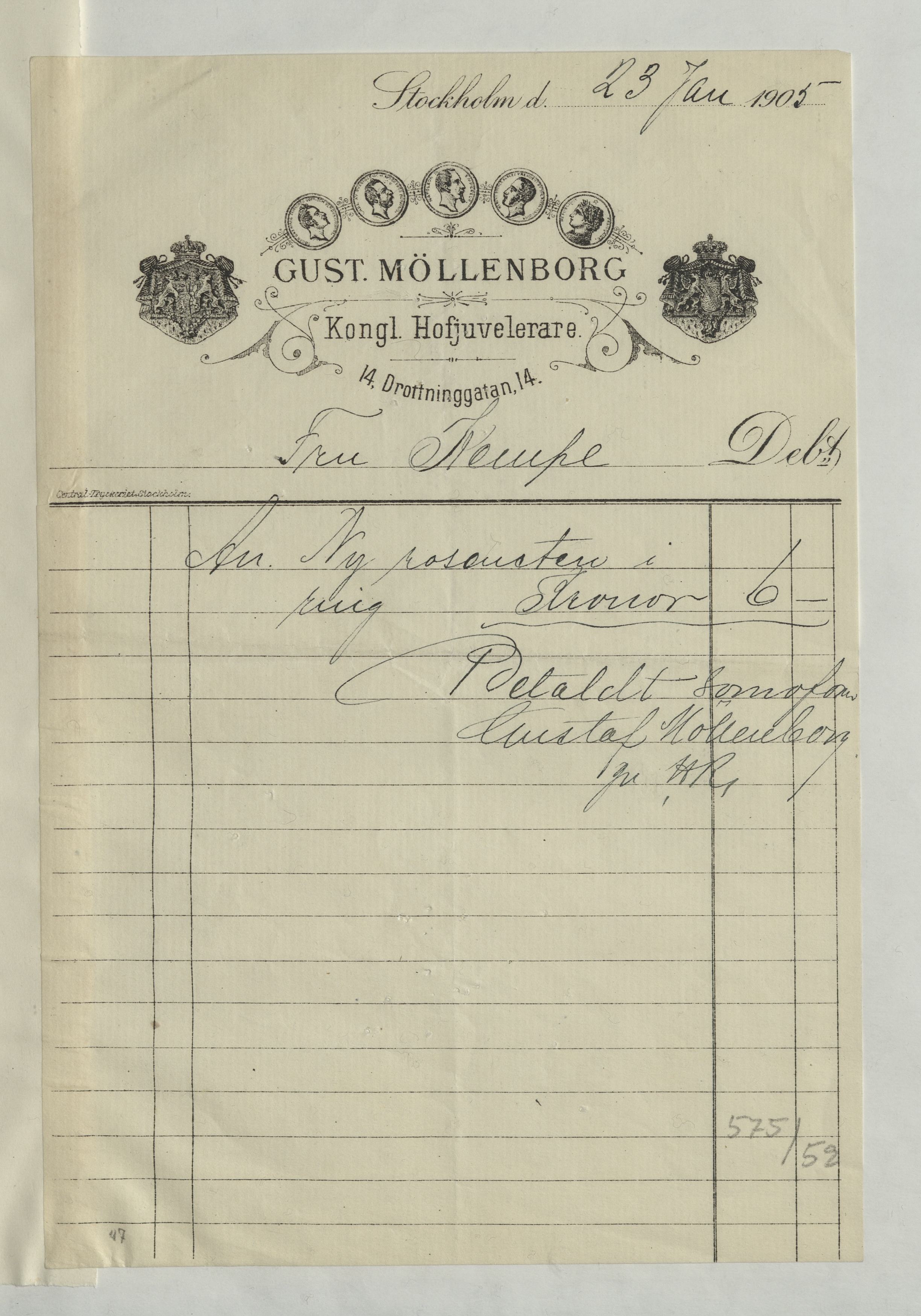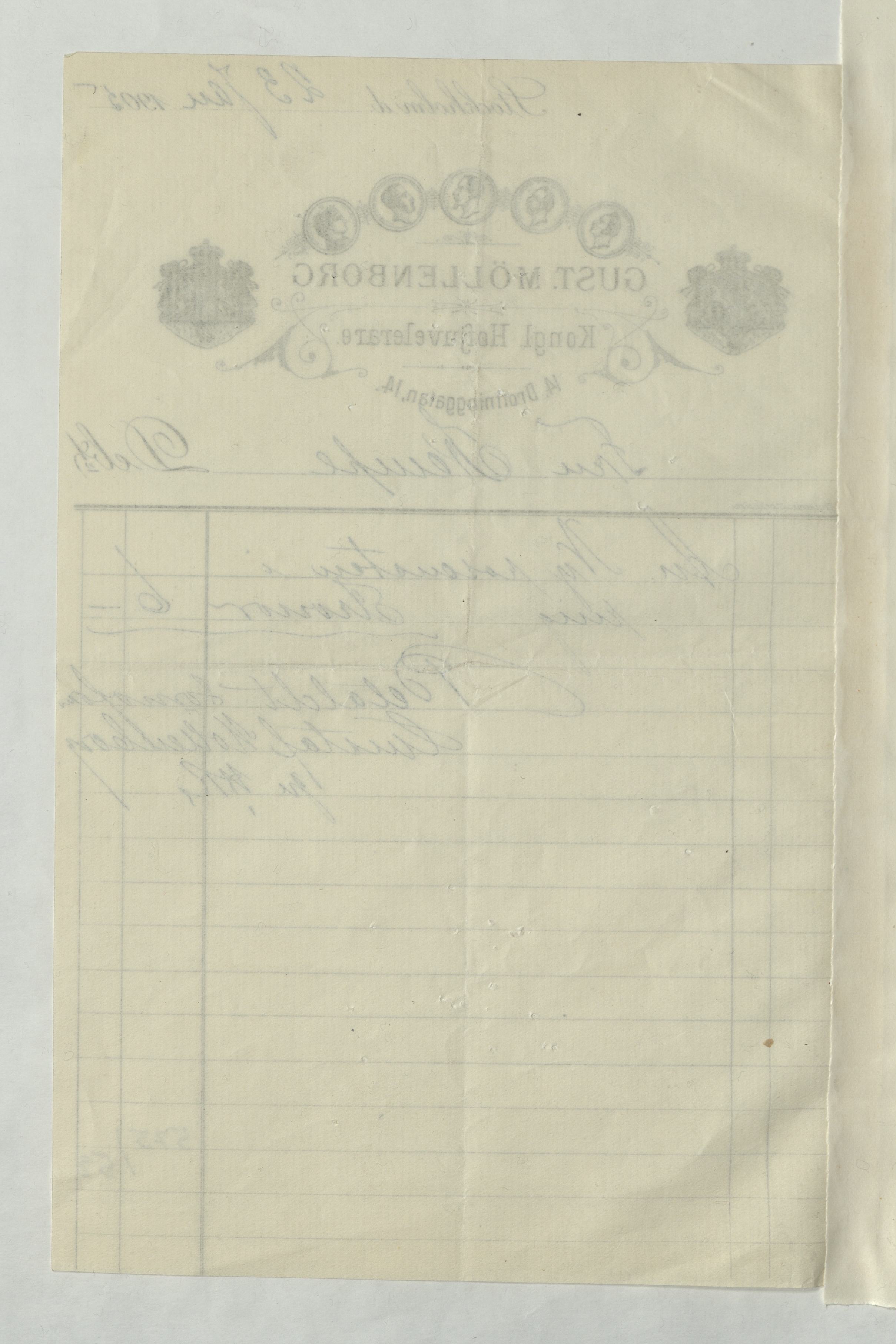 Kvitto från Gustaf Möllenborg, Juvelerare, 1905