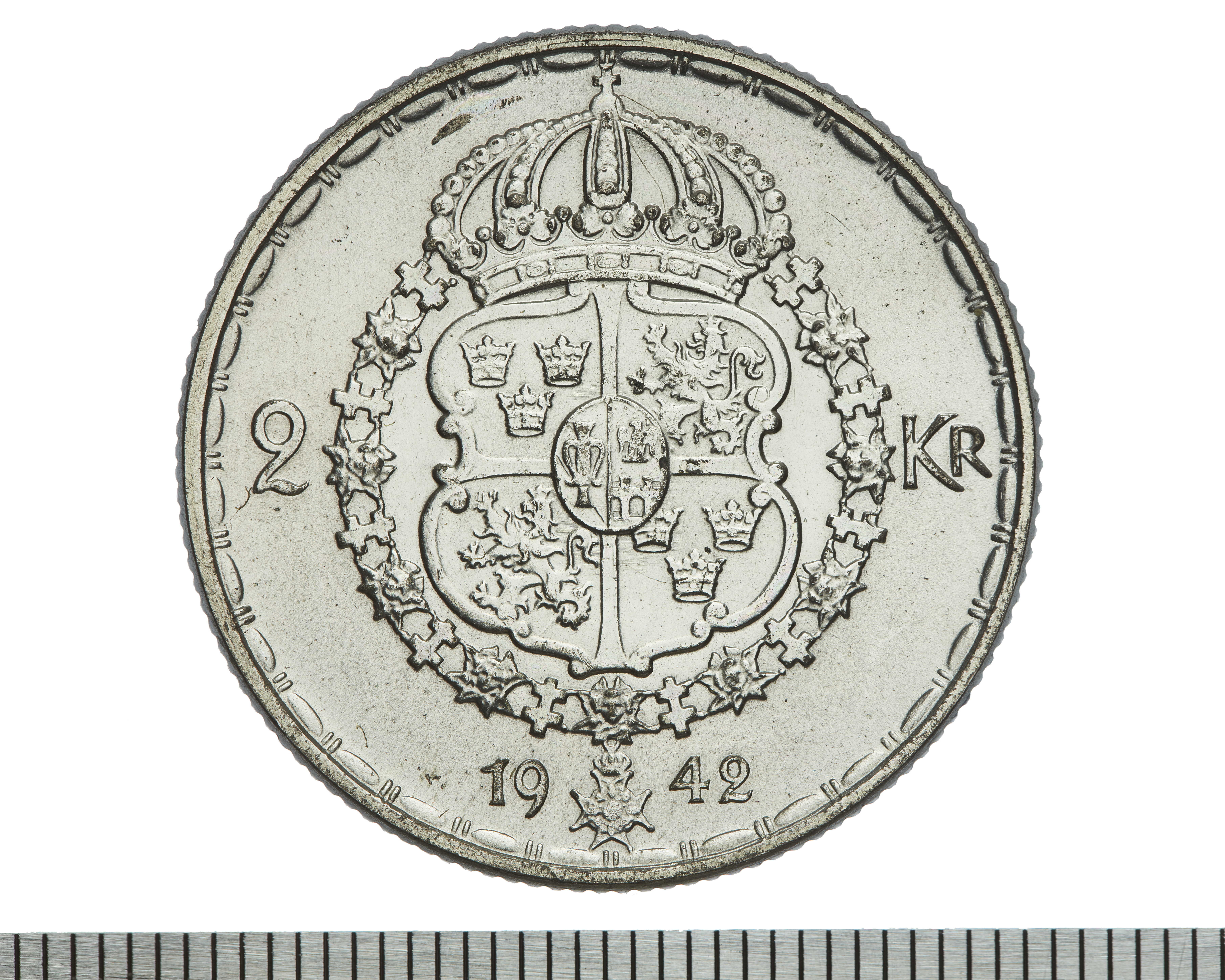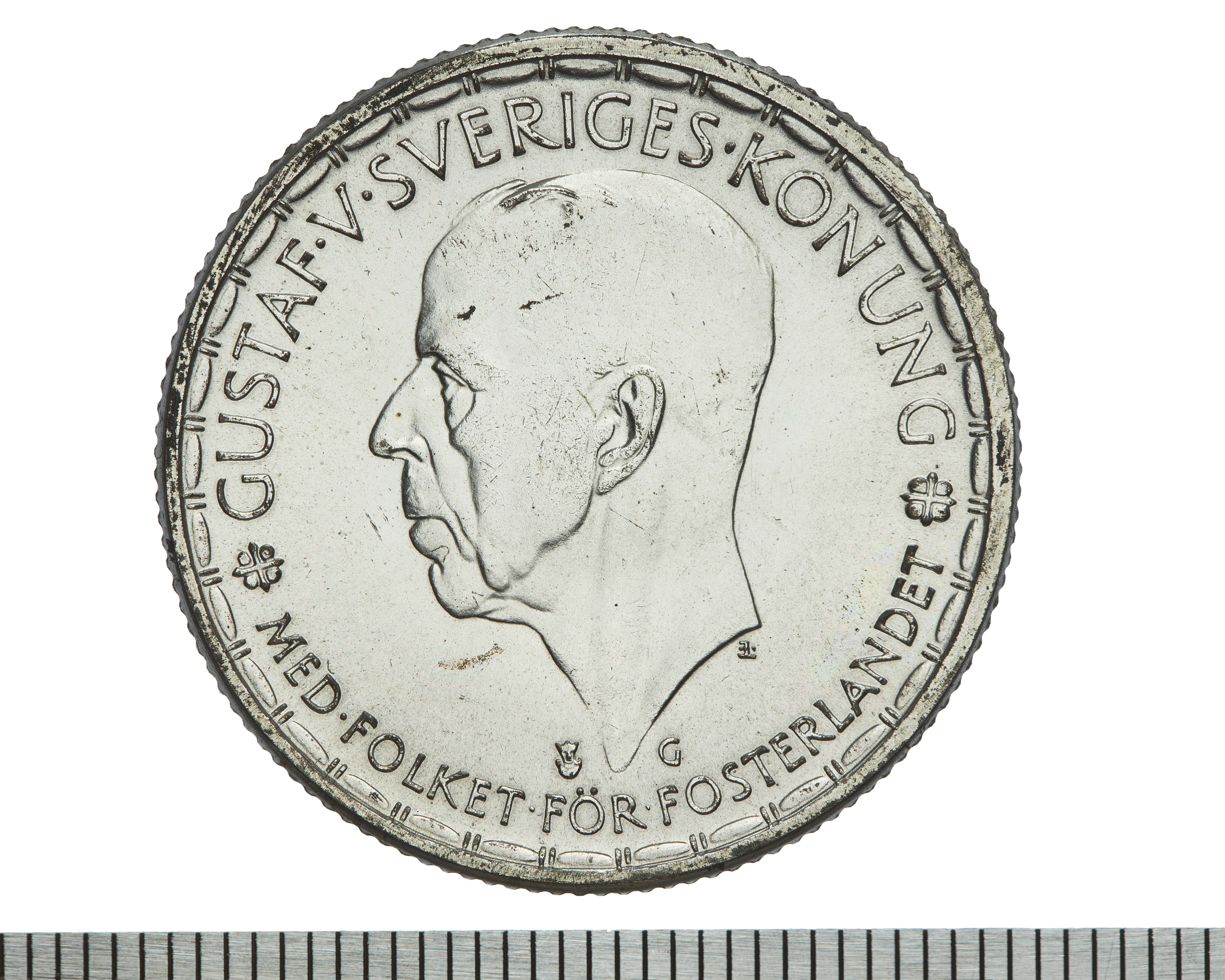 Upphov: Gustaf V av Sverige. Media: Bonnevier, Helena. Ekonomiska museet - Kungliga myntkabinettet/SHM, (CC BY 4.0) Du får bearbeta och dela verket för alla ändamål, även kommersiella, så länge du anger upphovsperson och licensgivare.