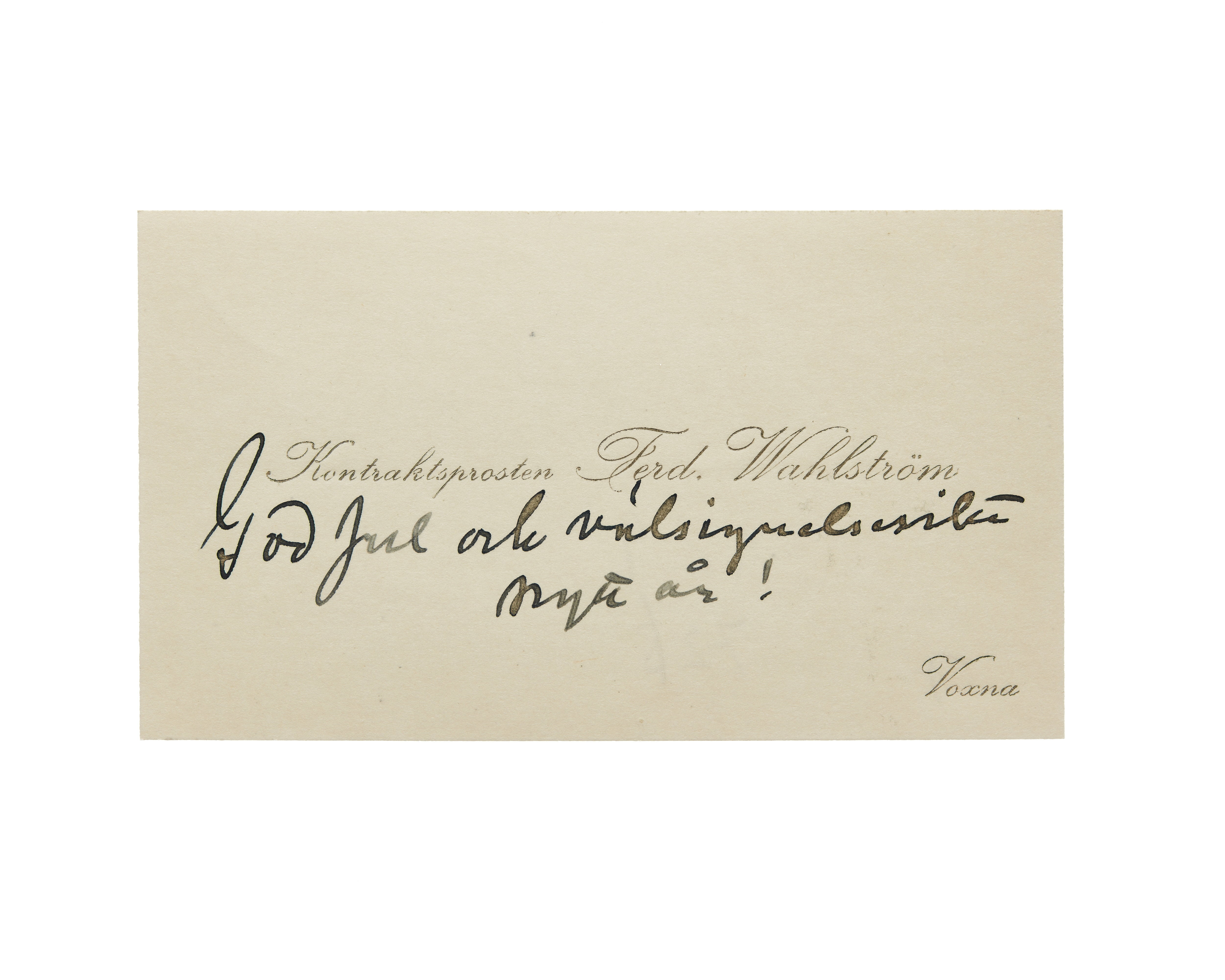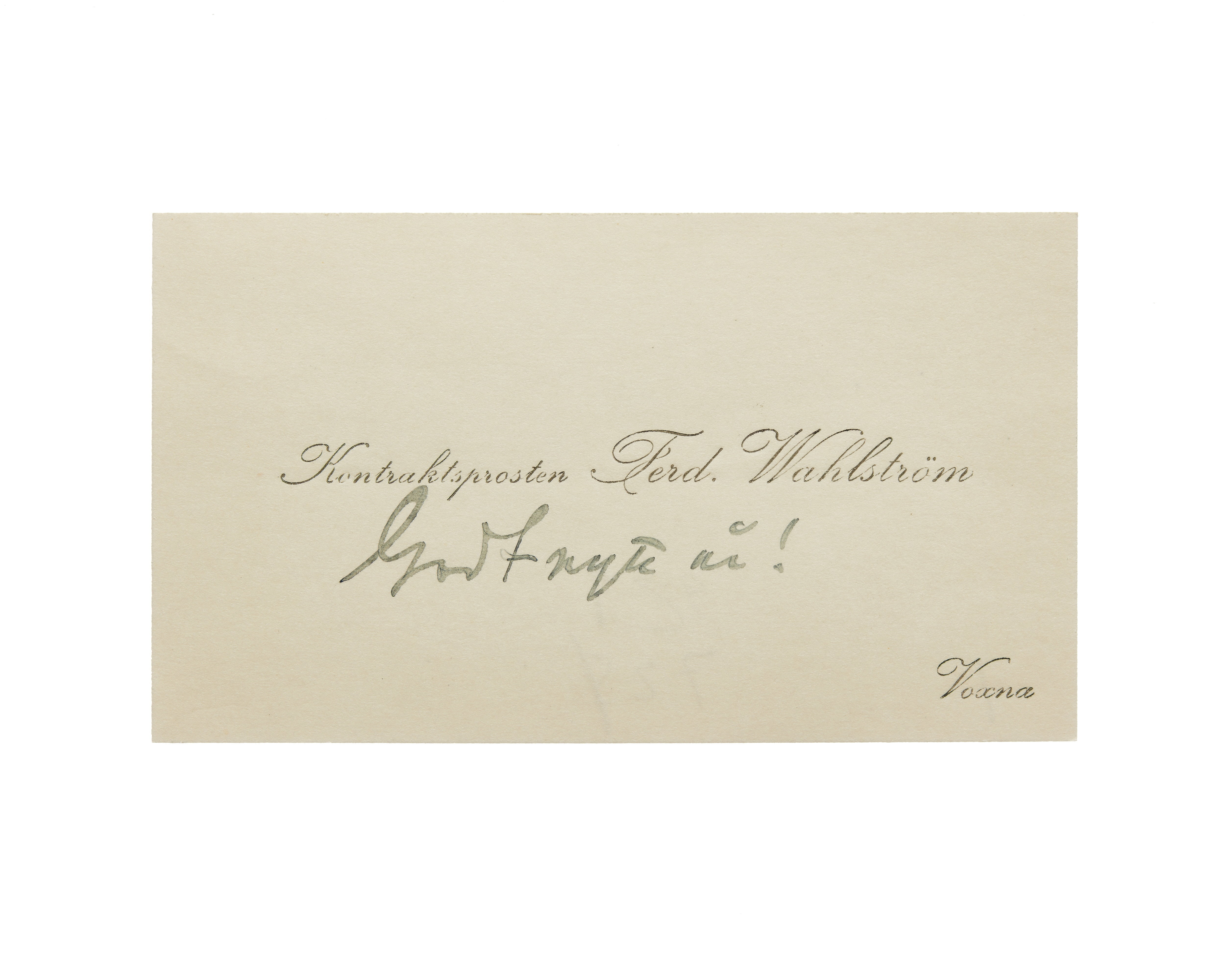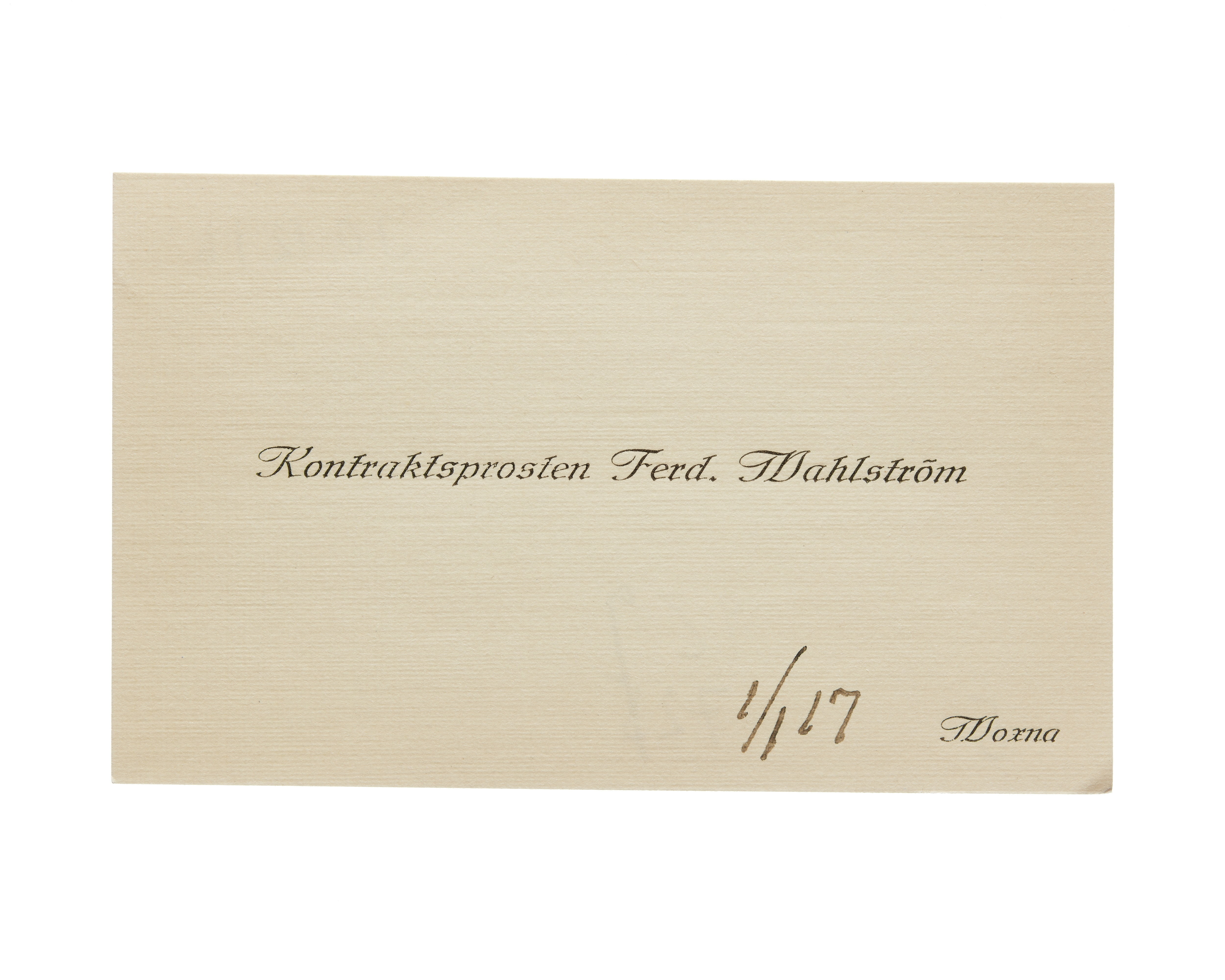 Visitkort från kontraktsprosten Ferd. Wahlström.