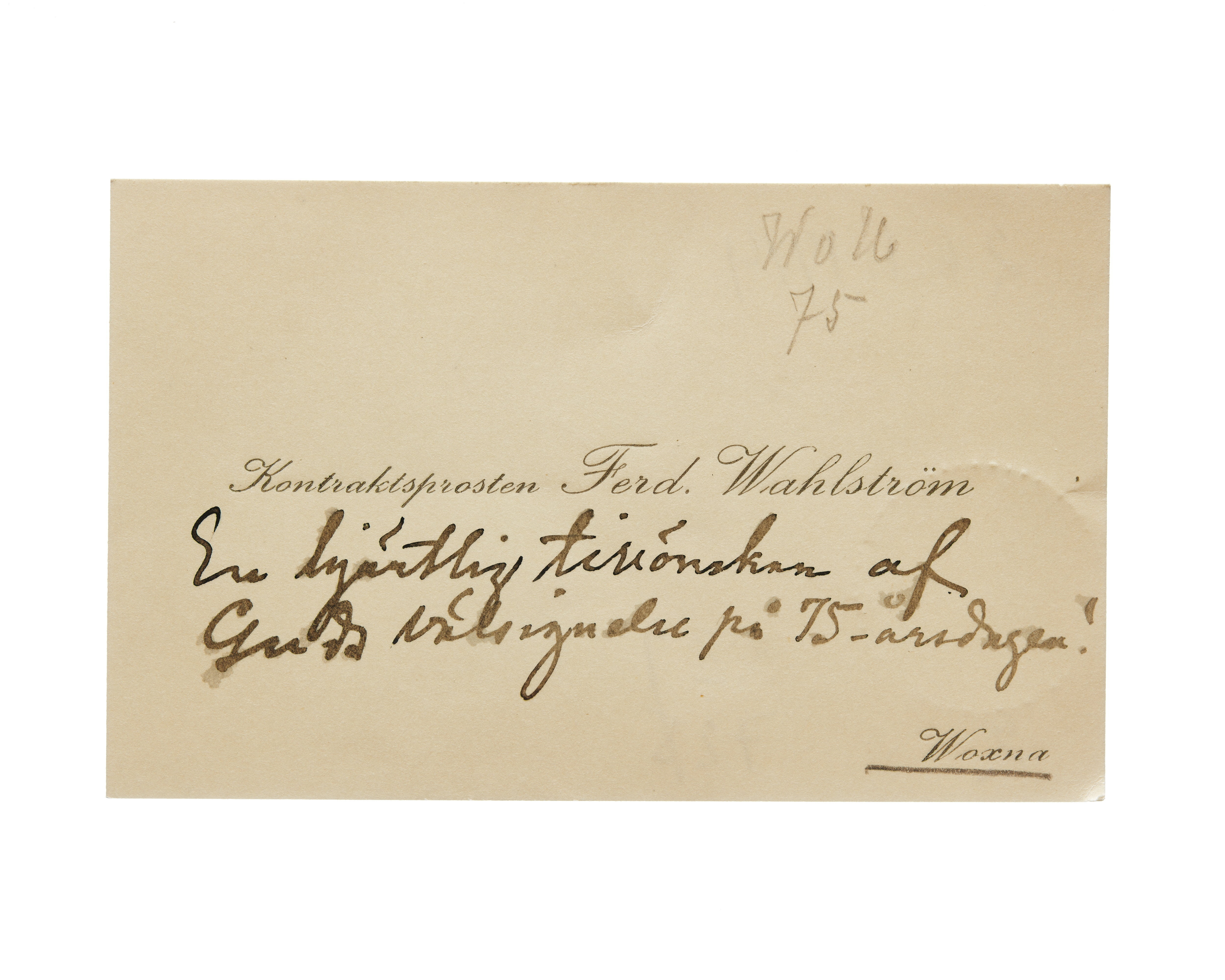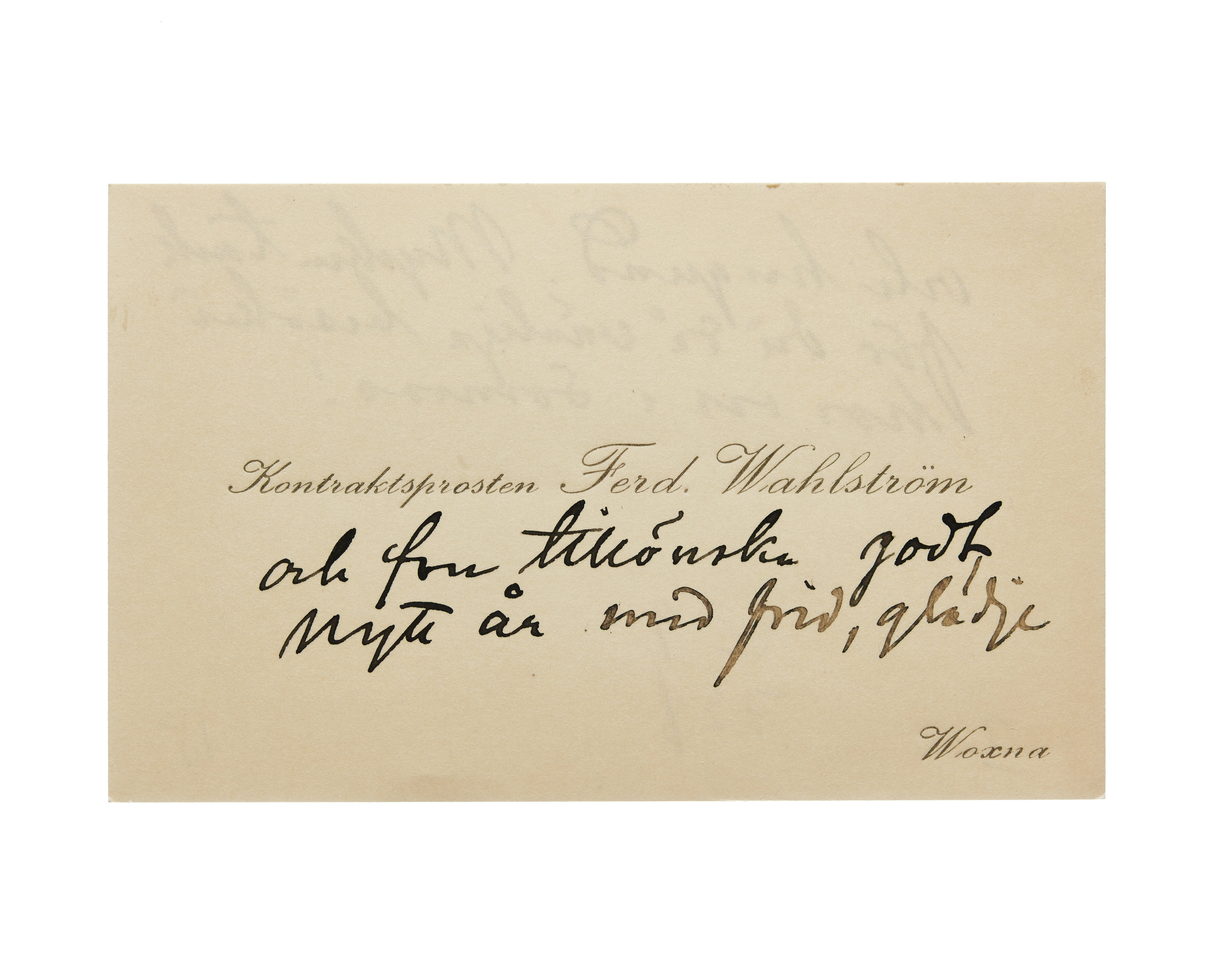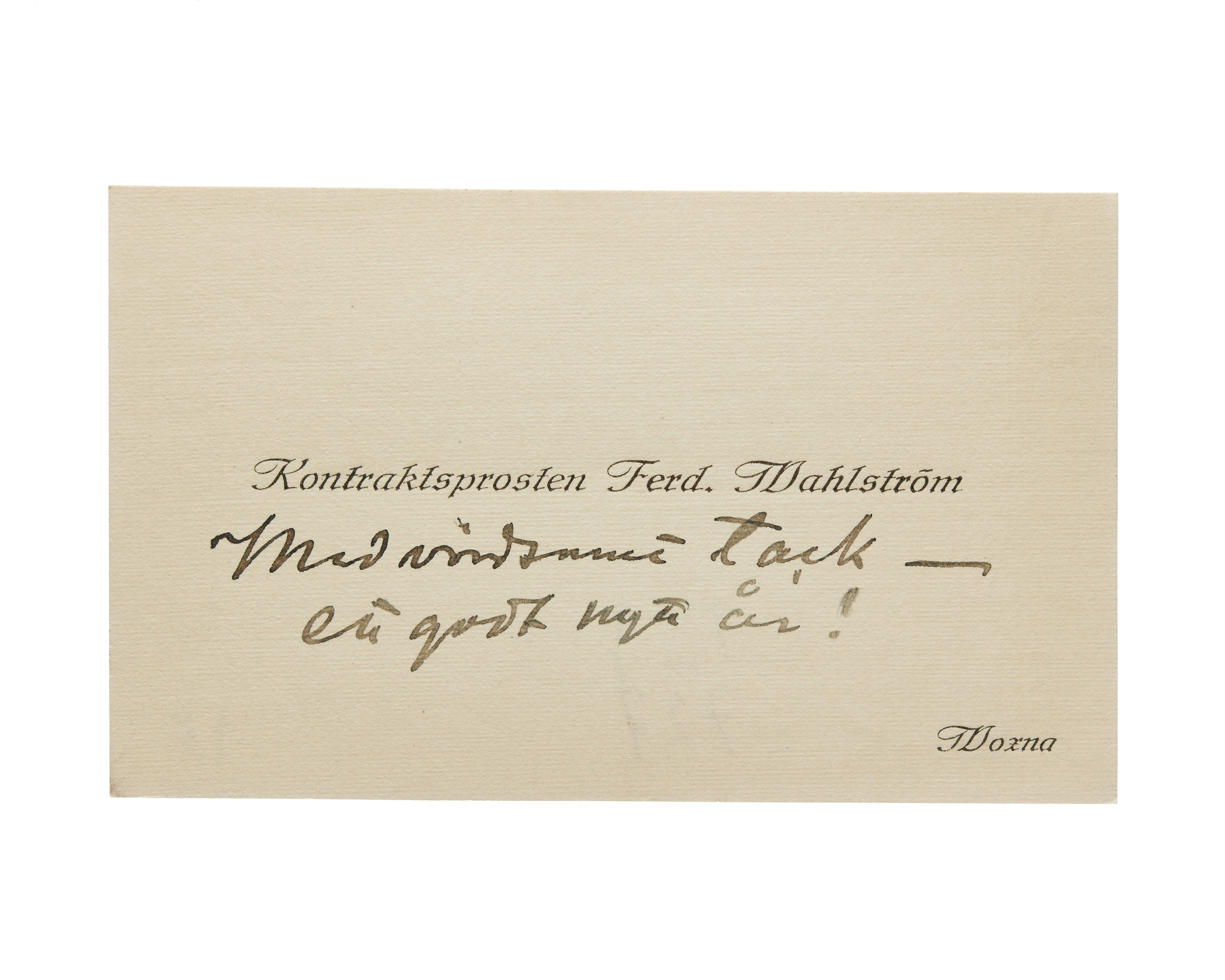 Visitkort från kontraktsprosten Ferd. Wahlström.