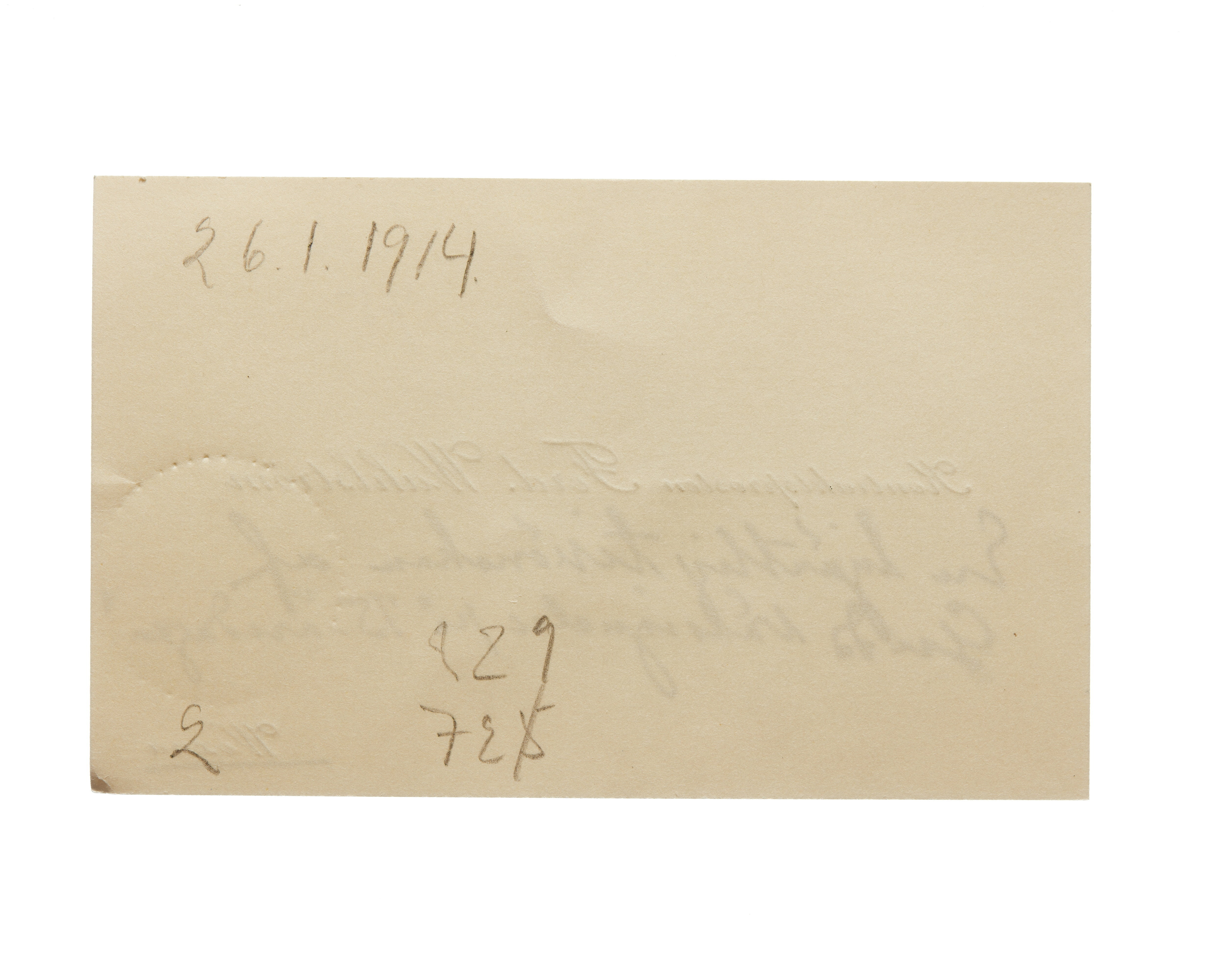 Sju visitkort från kontraktsprosten Ferd. Wahlström. Första kortet är utan datum. Handskrift "Gott nytt år!". Adress (nedre högra hörnet) Voxna. Andra kortet daterat 26.01.1914. Handskrift "En hjärtlig tillönskan af Guds välsingnelse på 75-årsdagen!". Överlämnat i samband med Walther von Hallwyls 75-årsdag, 26 januari 1914. Tredje kortet daterat 1915. Handskrift "och fru tillönska godt nytt år med frid, glädje (forts. baksida) och hugnad. Mycken tack för det så vänliga besöket hos oss i somras!". Fjärde kortet daterat 1915. Femte kortet daterat 30.12.1916. Sjätte kortet daterat 1918. Handskrift "Med vördsamt tack - ett gott nytt år!". Sjunde kortet är utan datum. Handskrift "God Jul och välsignelserikt nytt år!".