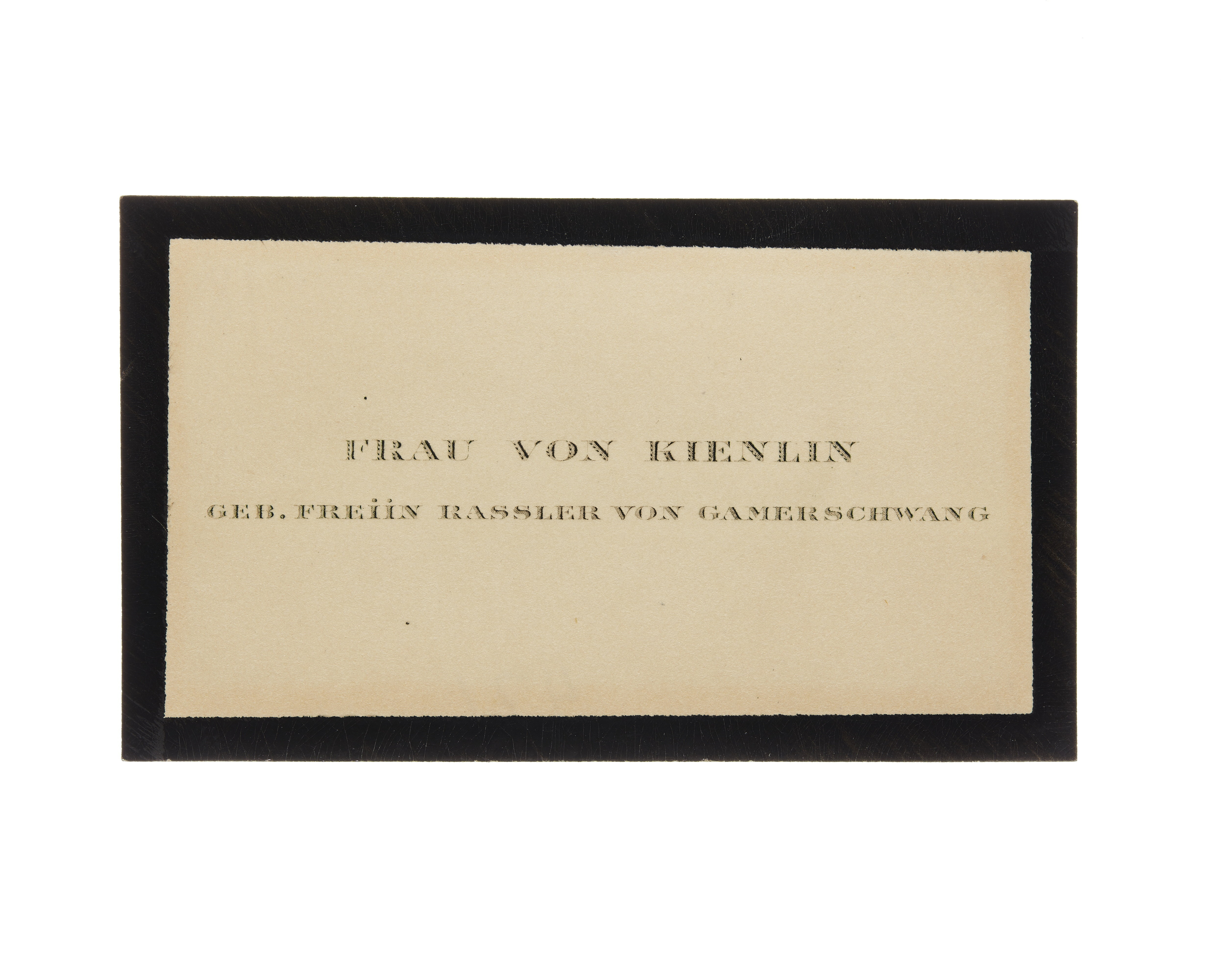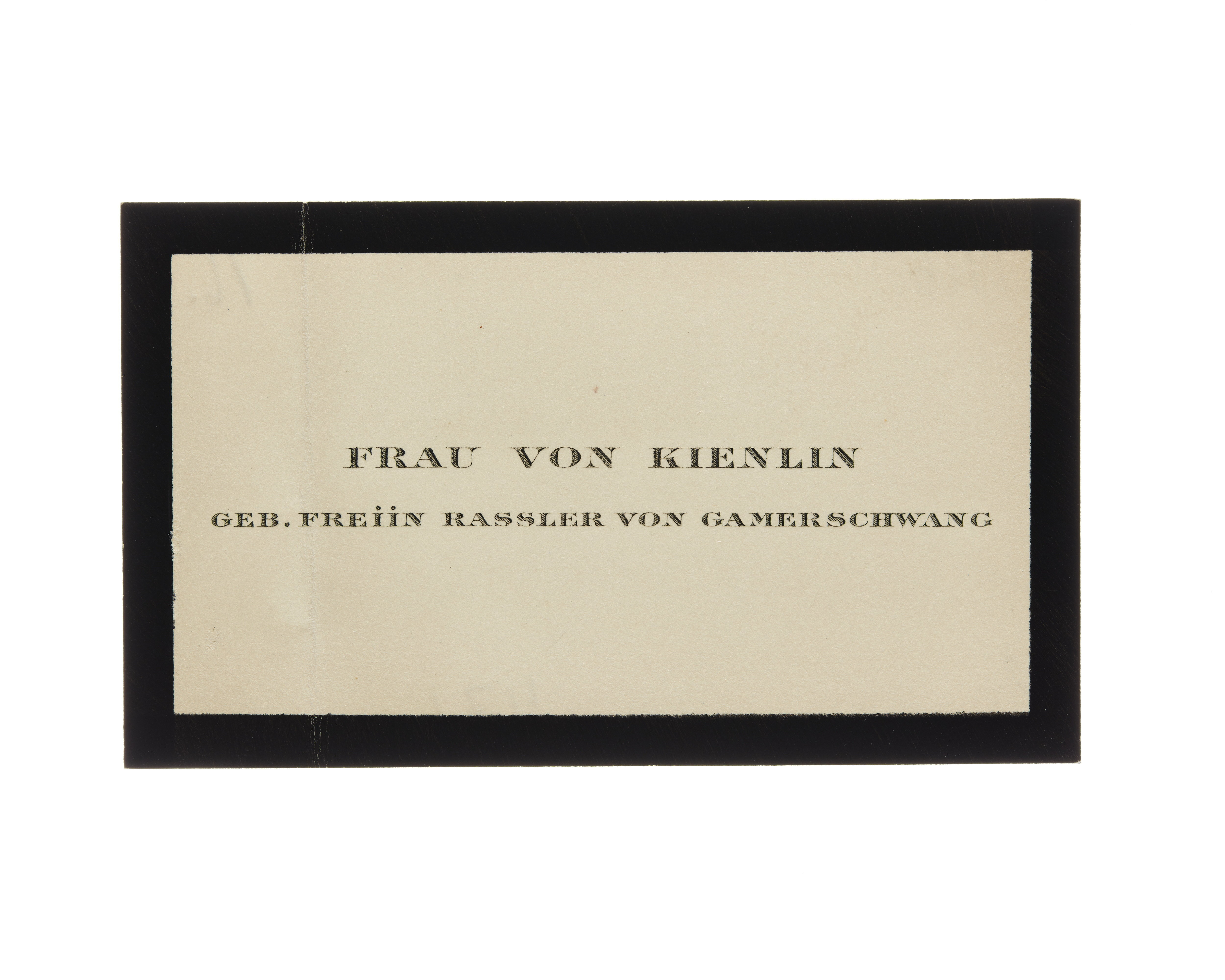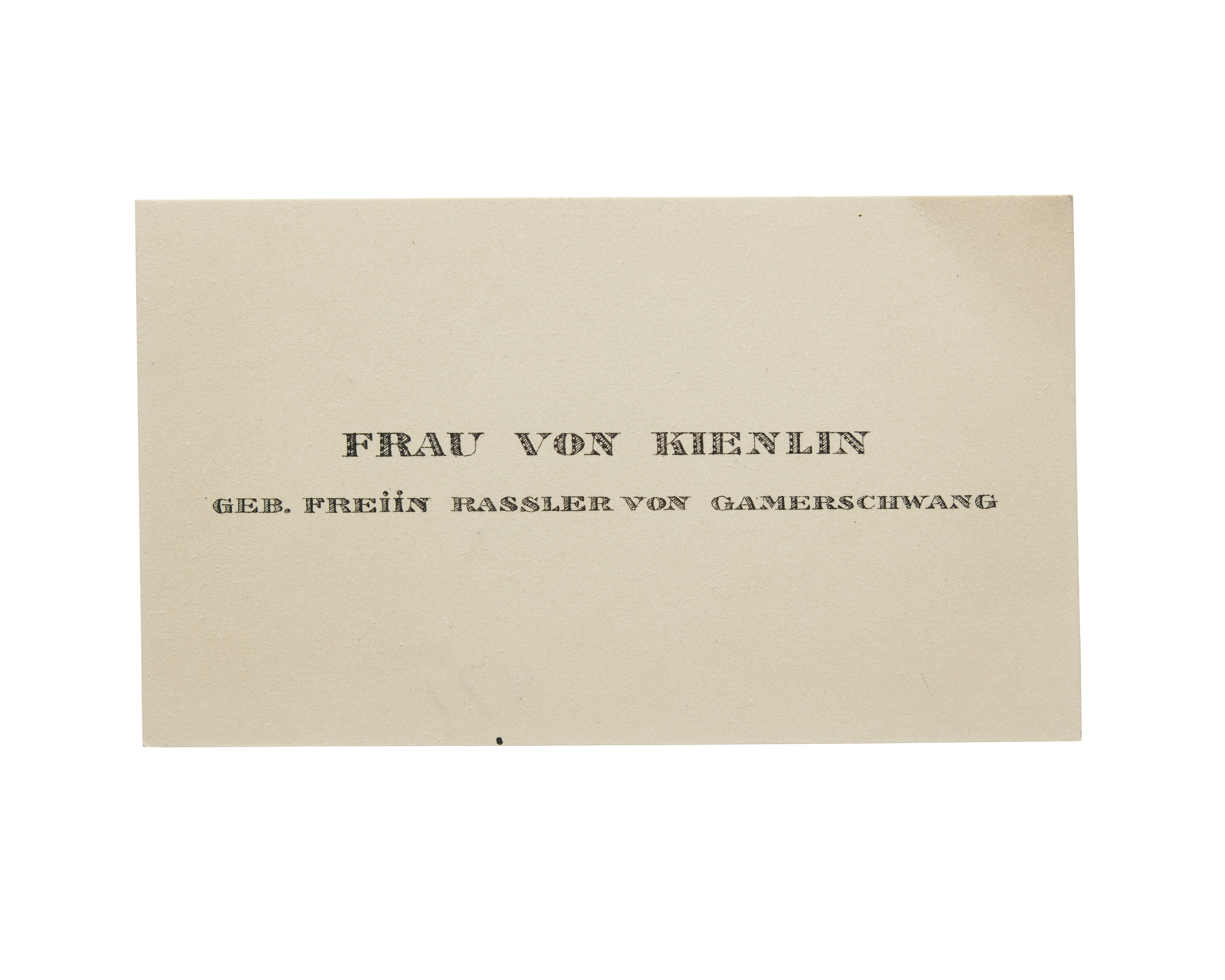 Visitkort från Fru Marie von Kienlin, f. Freiin Rassler von Gamerschwang.