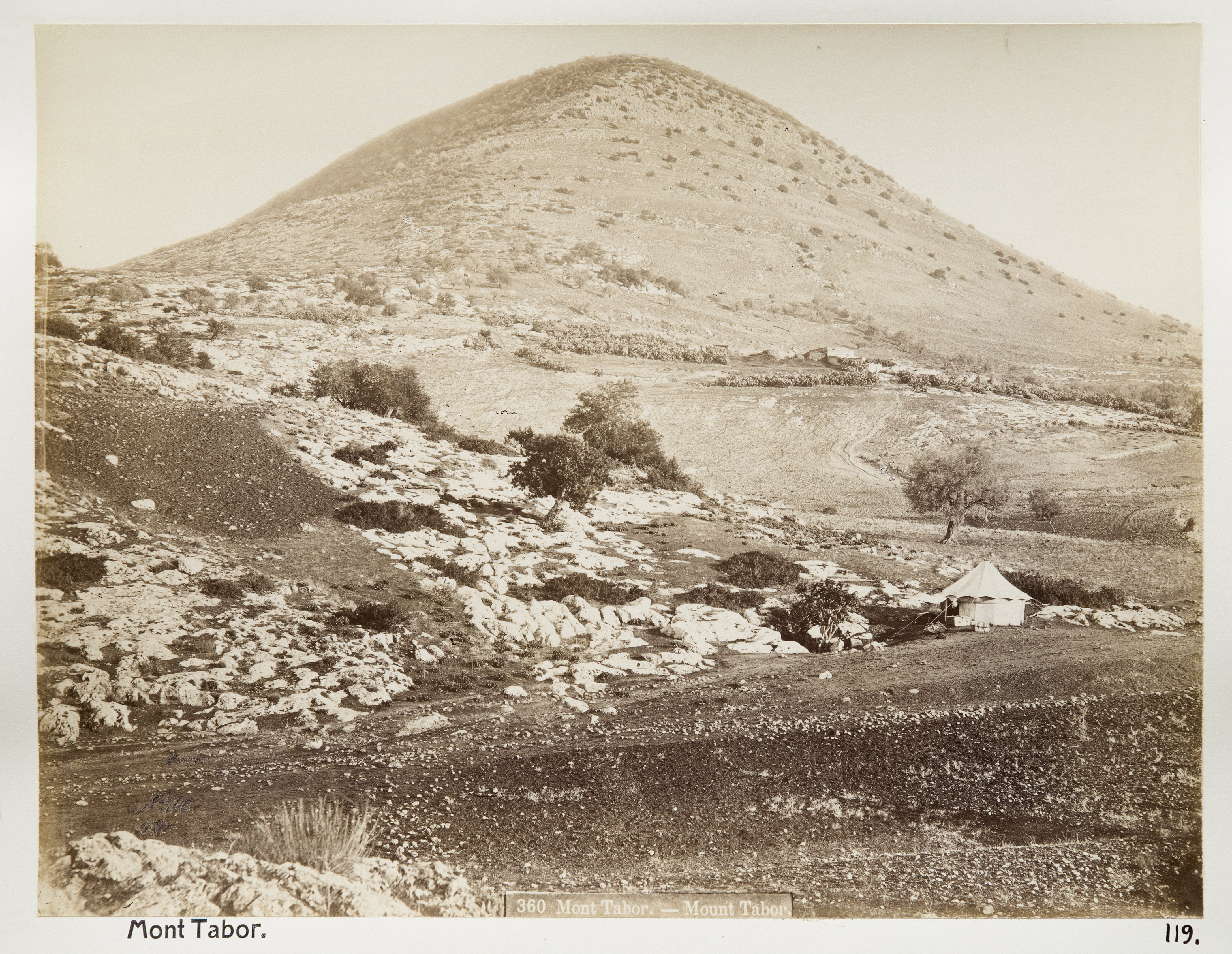 Berget Tabor. Text på originalet: "Mont Tabor/Mount Tabor". Fotografierna LXVI:N.01.-180. kommer från resan till Palestina och Syrien som Wilhelmina och Walther von Hallwyl gjorde den 30 mars-27 april 1901. De lämnade Sverige den 5 november 1900 för Egypten, där de stannade till den 28 mars 1901, då de fortsatte till Palestina. Med på resan var Wilhelminas sällskapsdam, fröken Ida Uhse. Den 27 april fortsatte de till Turkiet och Mindre Asien. De mindre fotografierna (utom de från Samos) LXVI:N.90.-100. är tagna av Wilhelmina själv, under en resa till häst från Jerusalem till Damaskus 8-20 april 1901. Övriga fotografier är inköpta av Wilhelmina i Jerusalem, Damaskus och Beirut. Alla uppgifter kommer från Ida Uhses reseanteckningar.