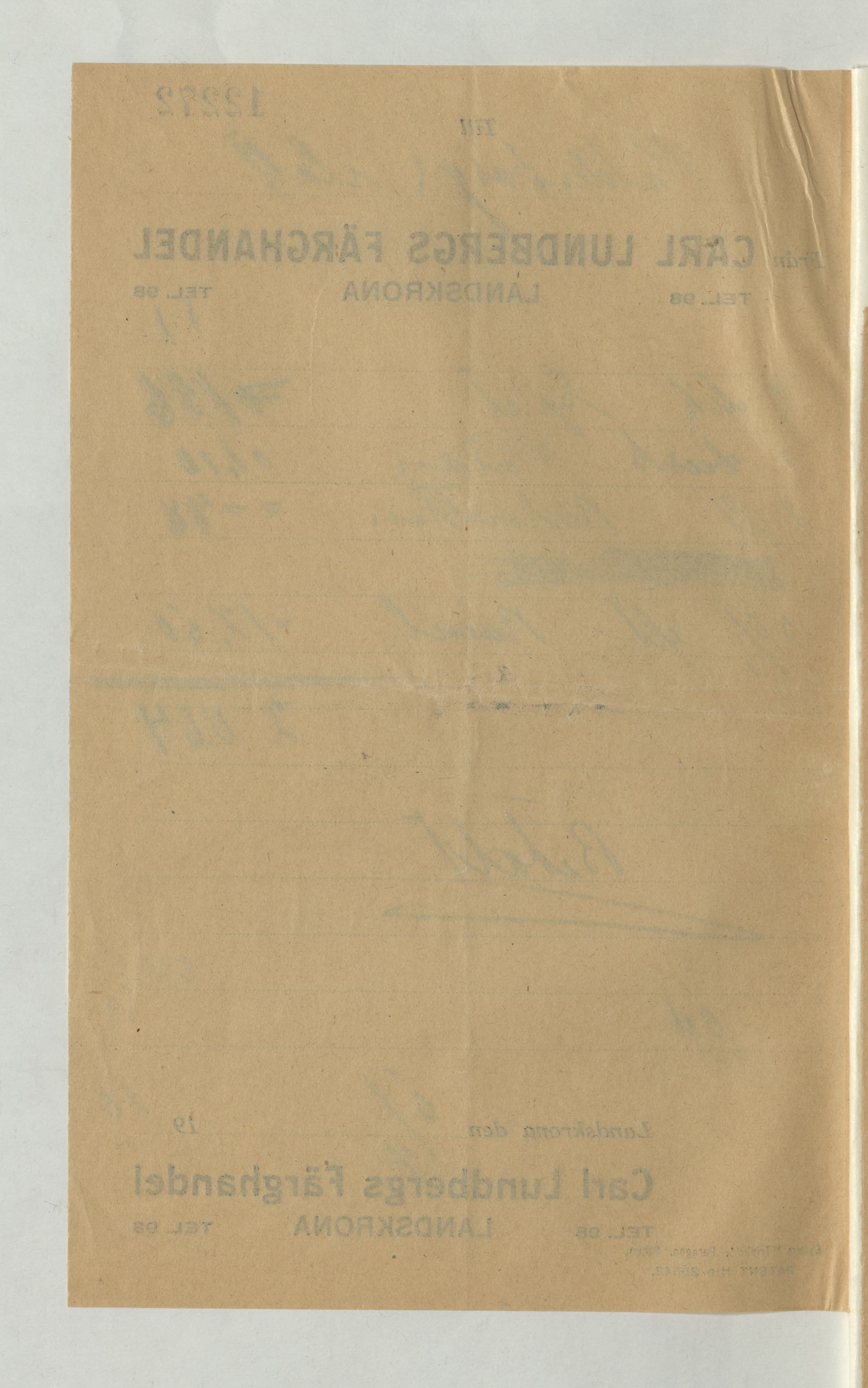 Kvitto från Carl Lundbergs Färghandel, 1926