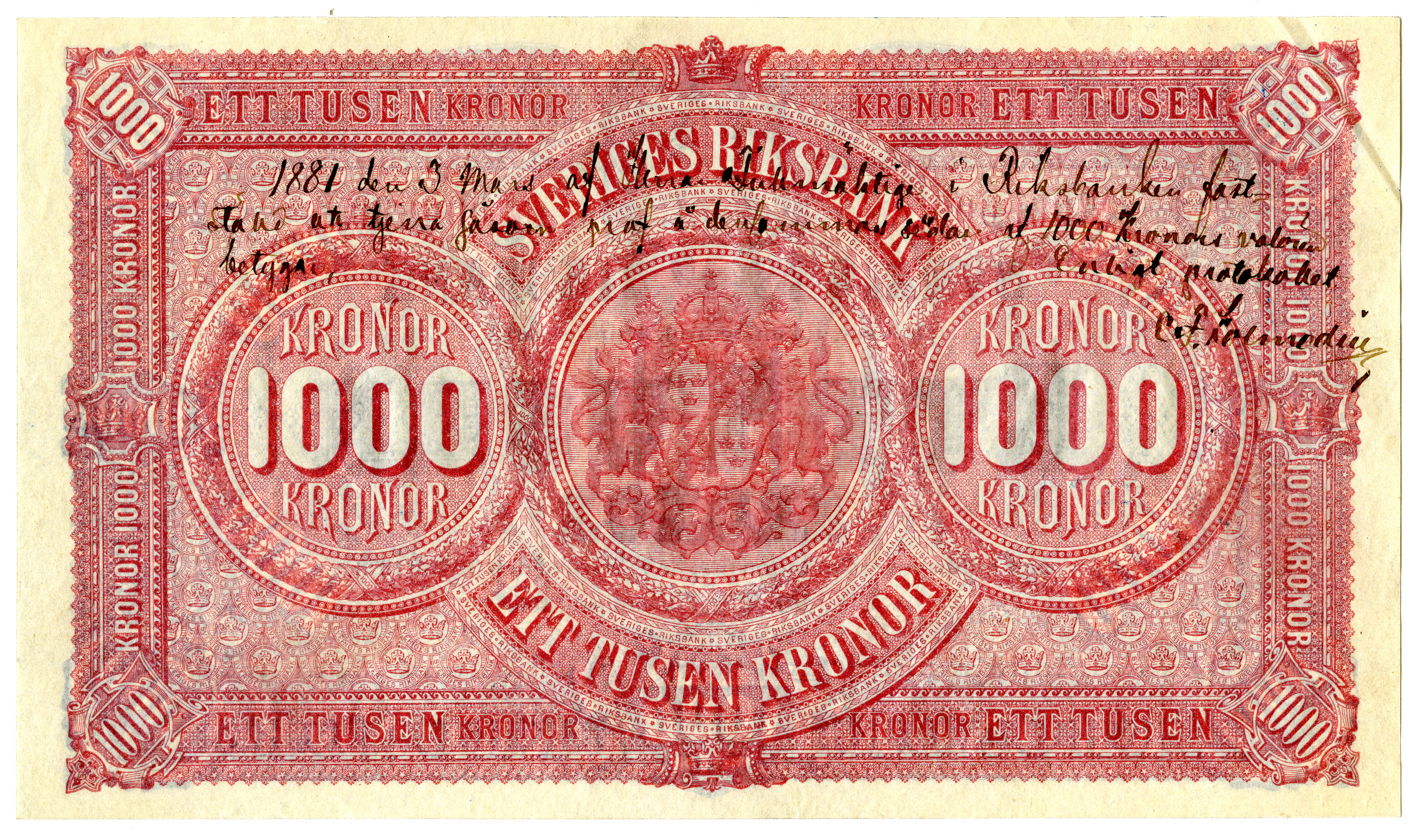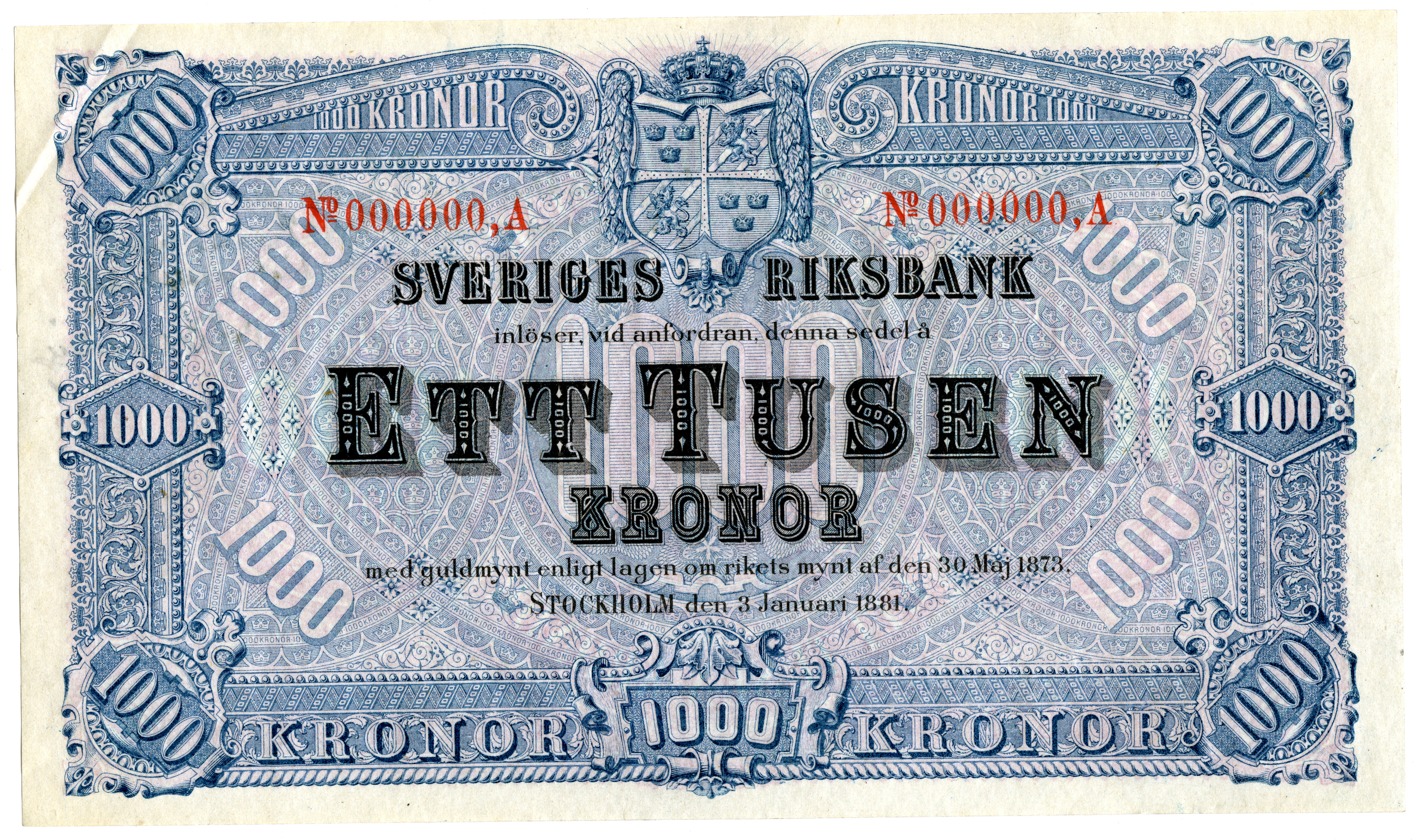Upphov: Sveriges riksbank. Media: Statens historiska museer. Ekonomiska museet - Kungliga myntkabinettet/SHM, (PDM) Upphovsrätten till detta verk har gått ut och är därmed fritt att använda på alla sätt. Ange gärna upphovsperson om denne är känd.