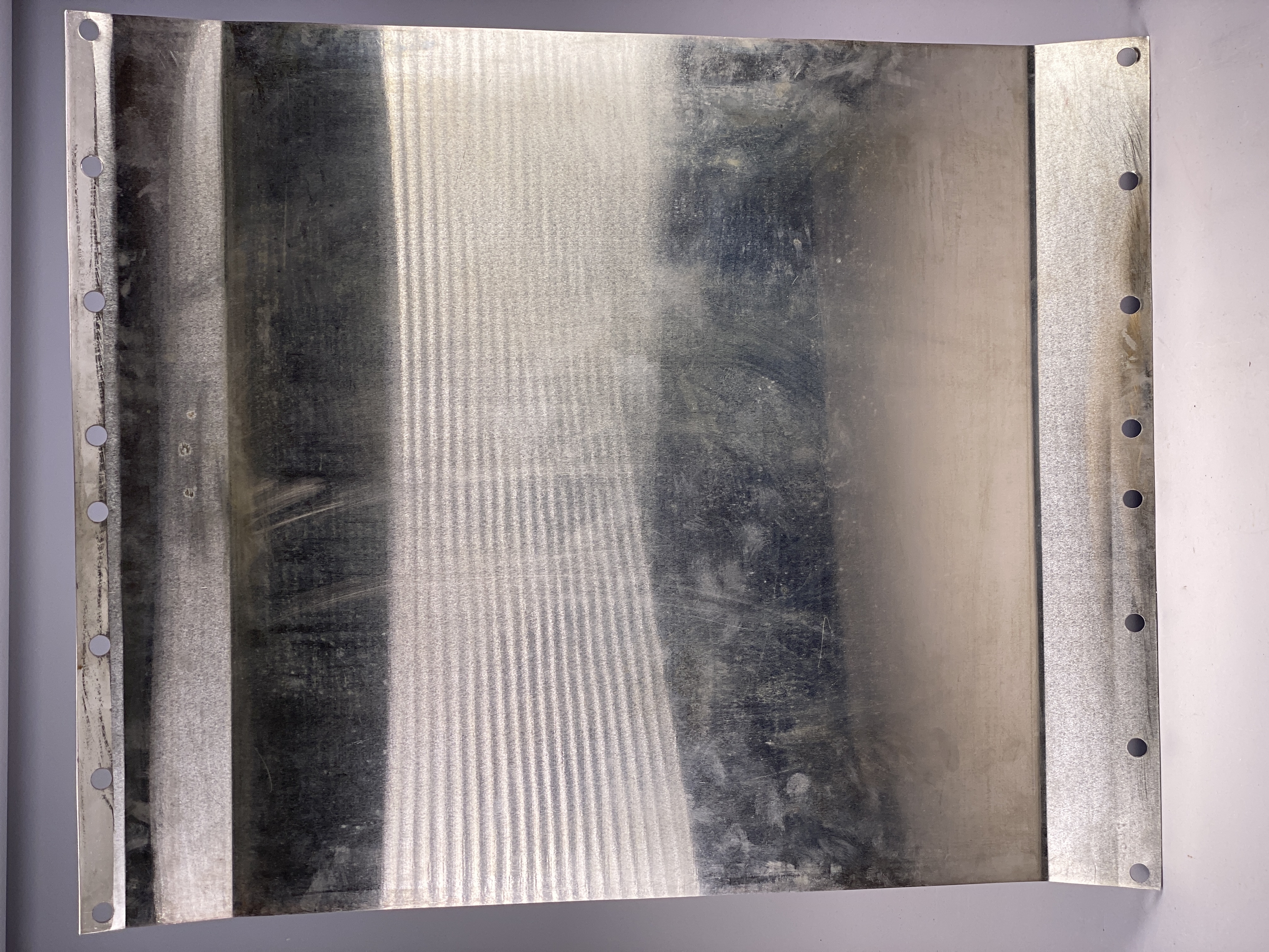 Tryckplåt med olika gravyrer, både geometriska mönster och porträtt (till provtryckning?). Stor rektangulär plåt med bl.a. porträtt av Dr. Albín Bráf och Peter Johannes Brandl. Tillverkad i förkromad koppar, tunn, med 18 hål. Plåten stämplad: "PP81" samt "660012".