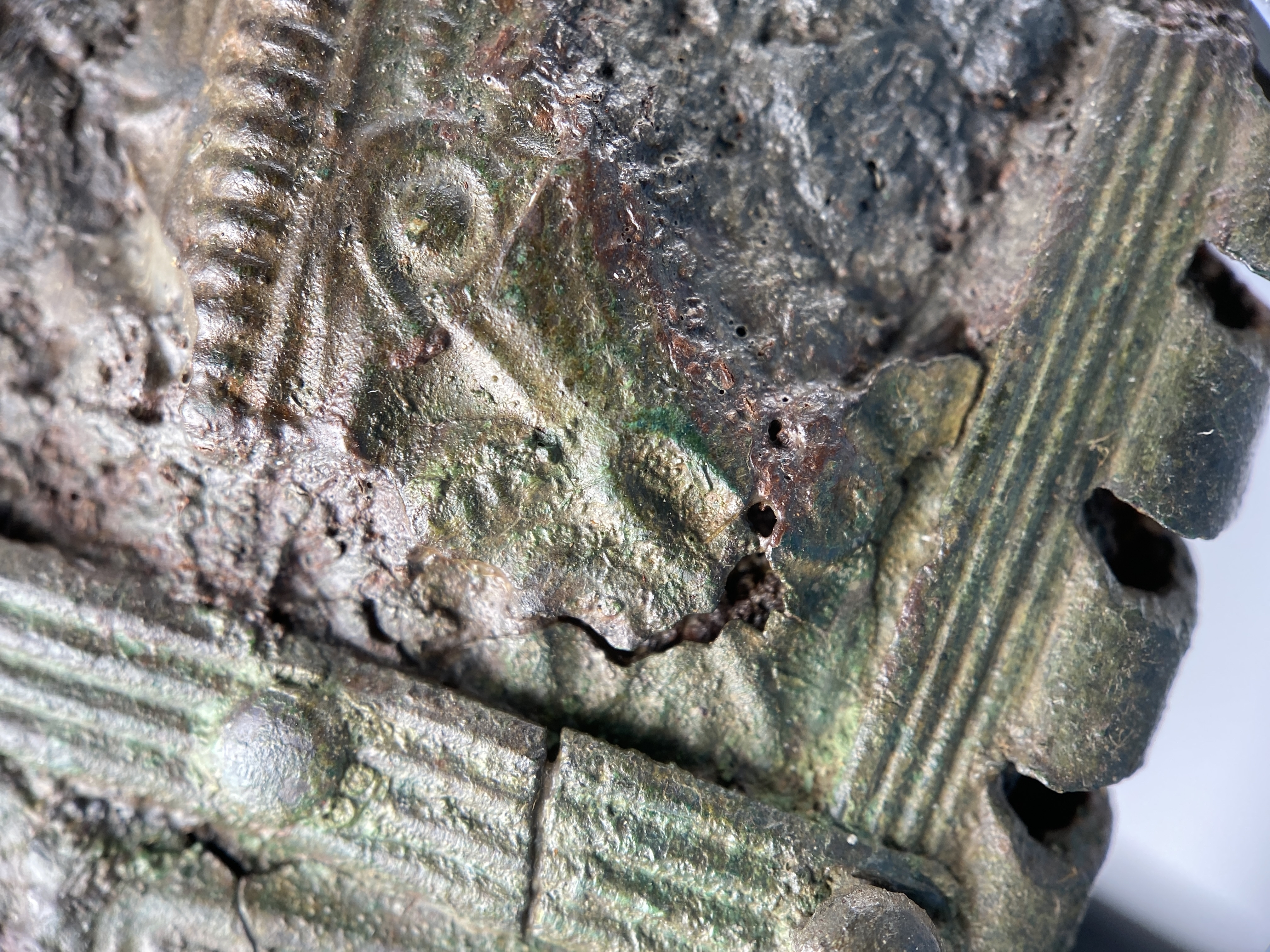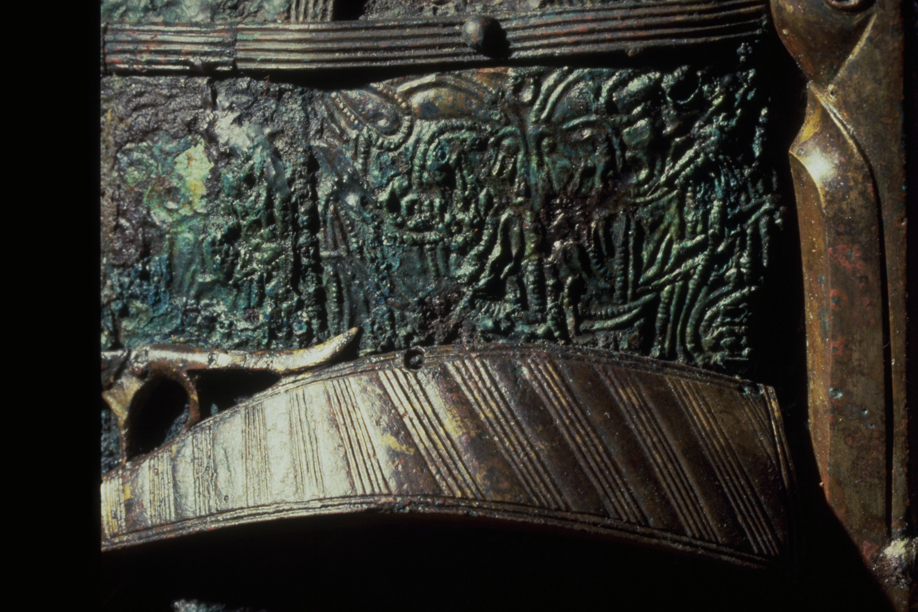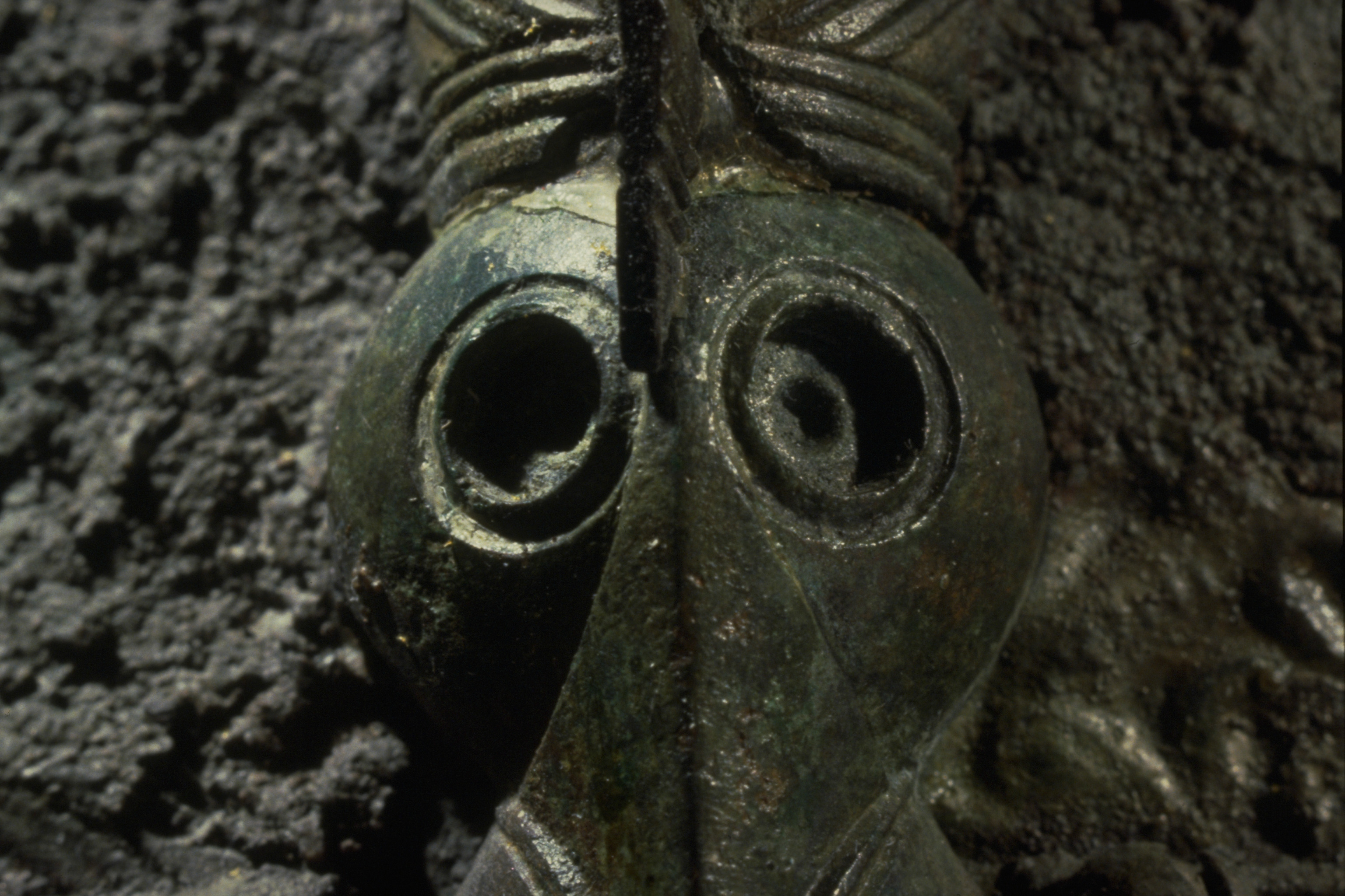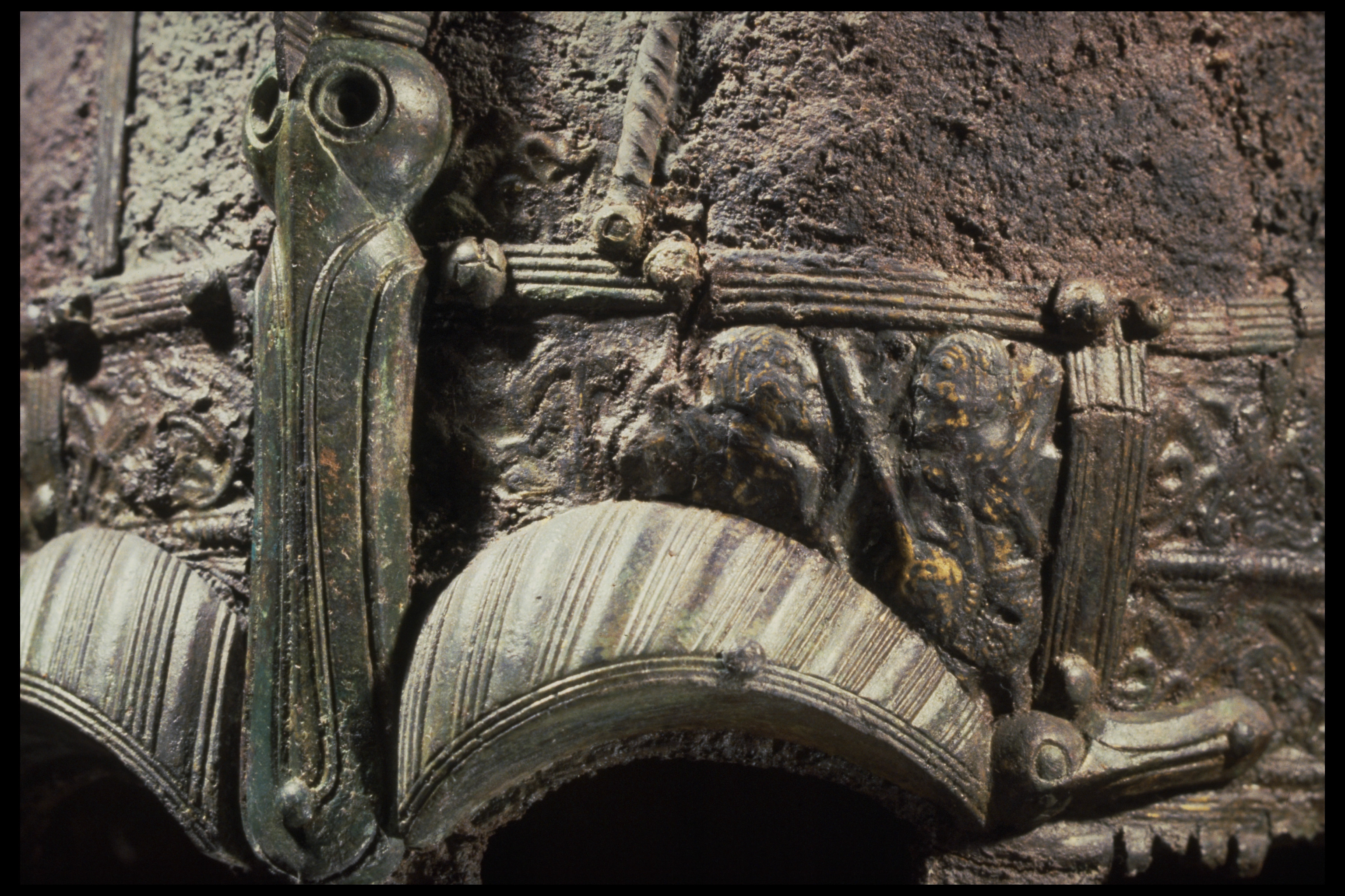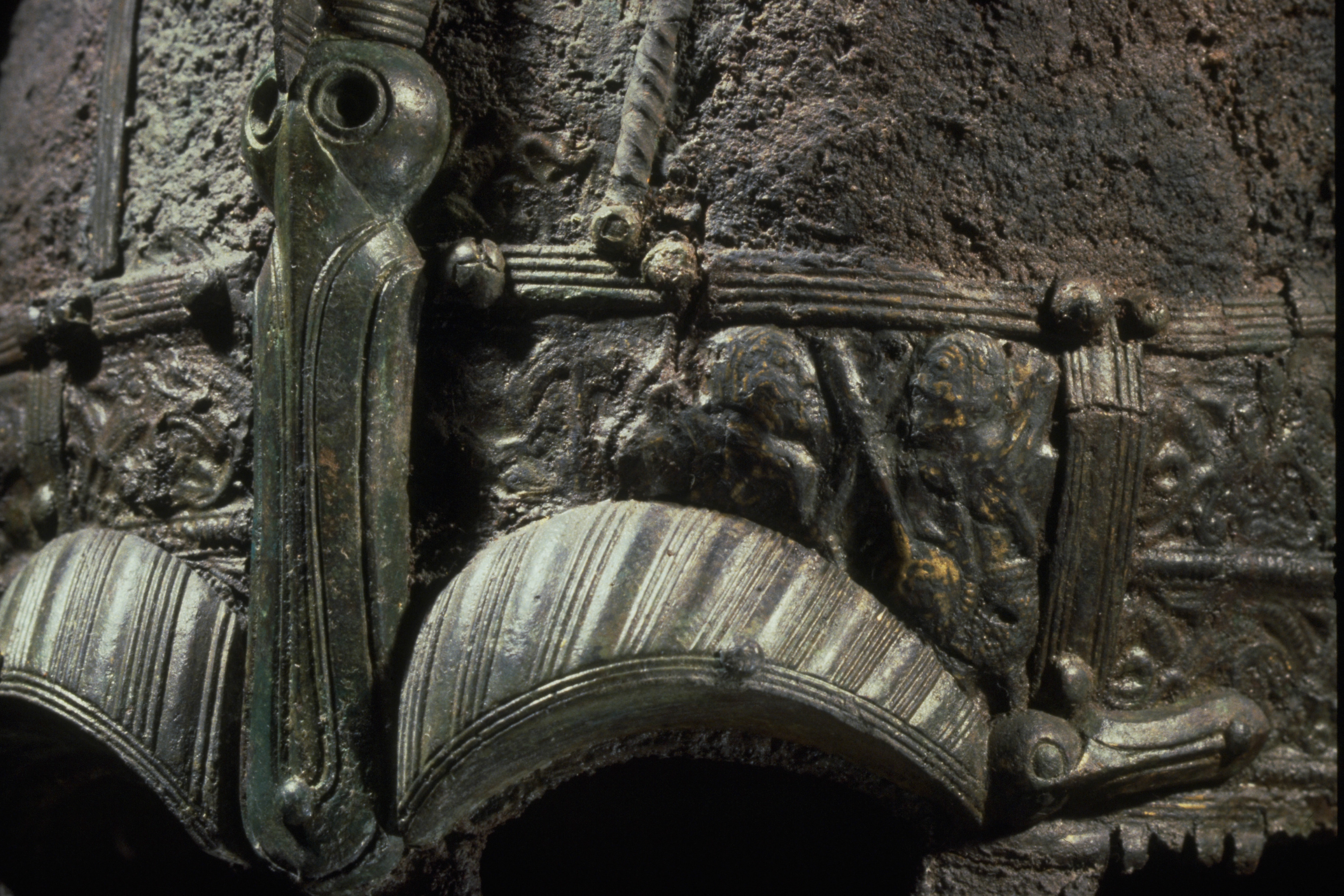 Prakthjälm av järn med bronsbeslag.