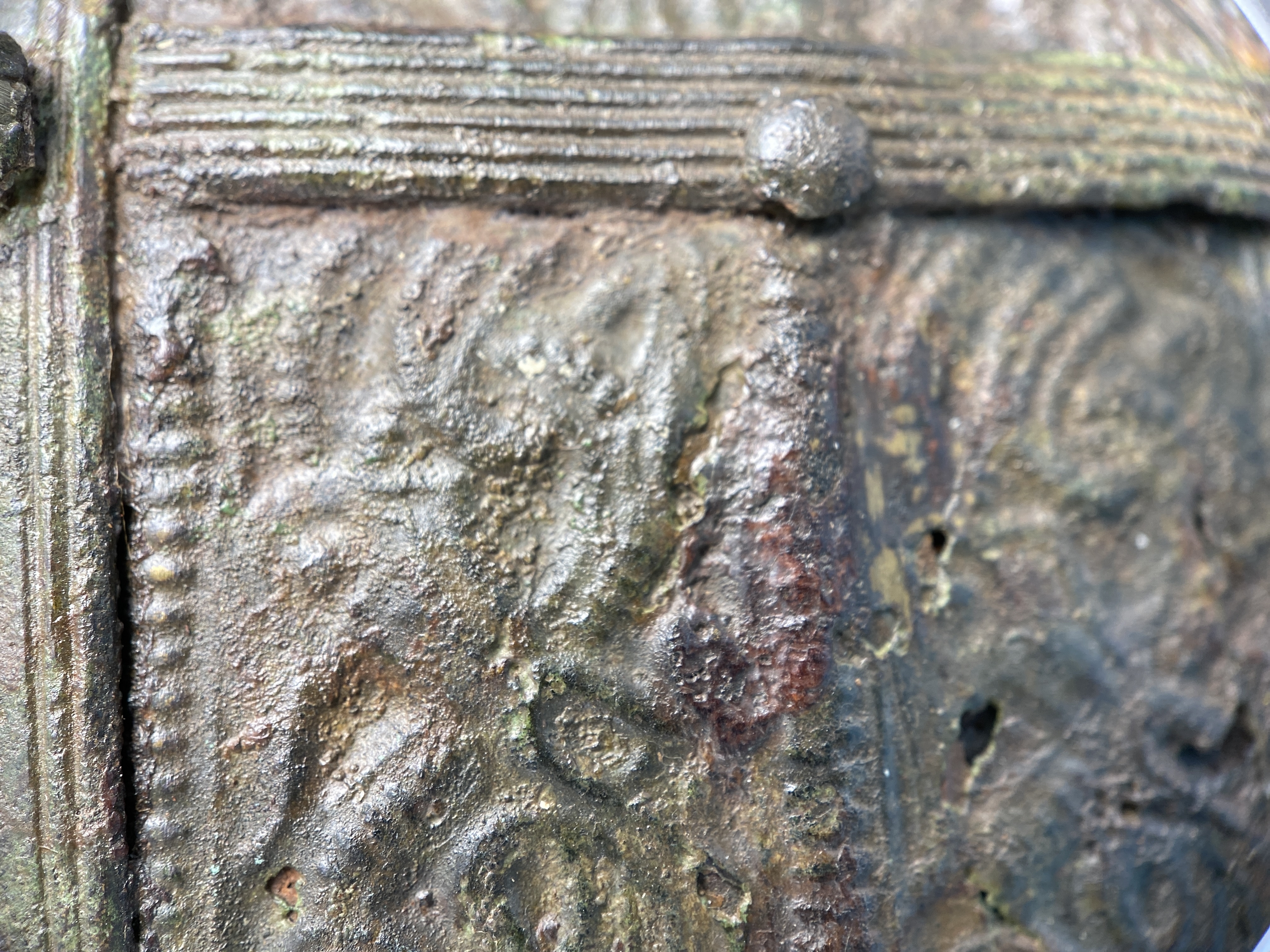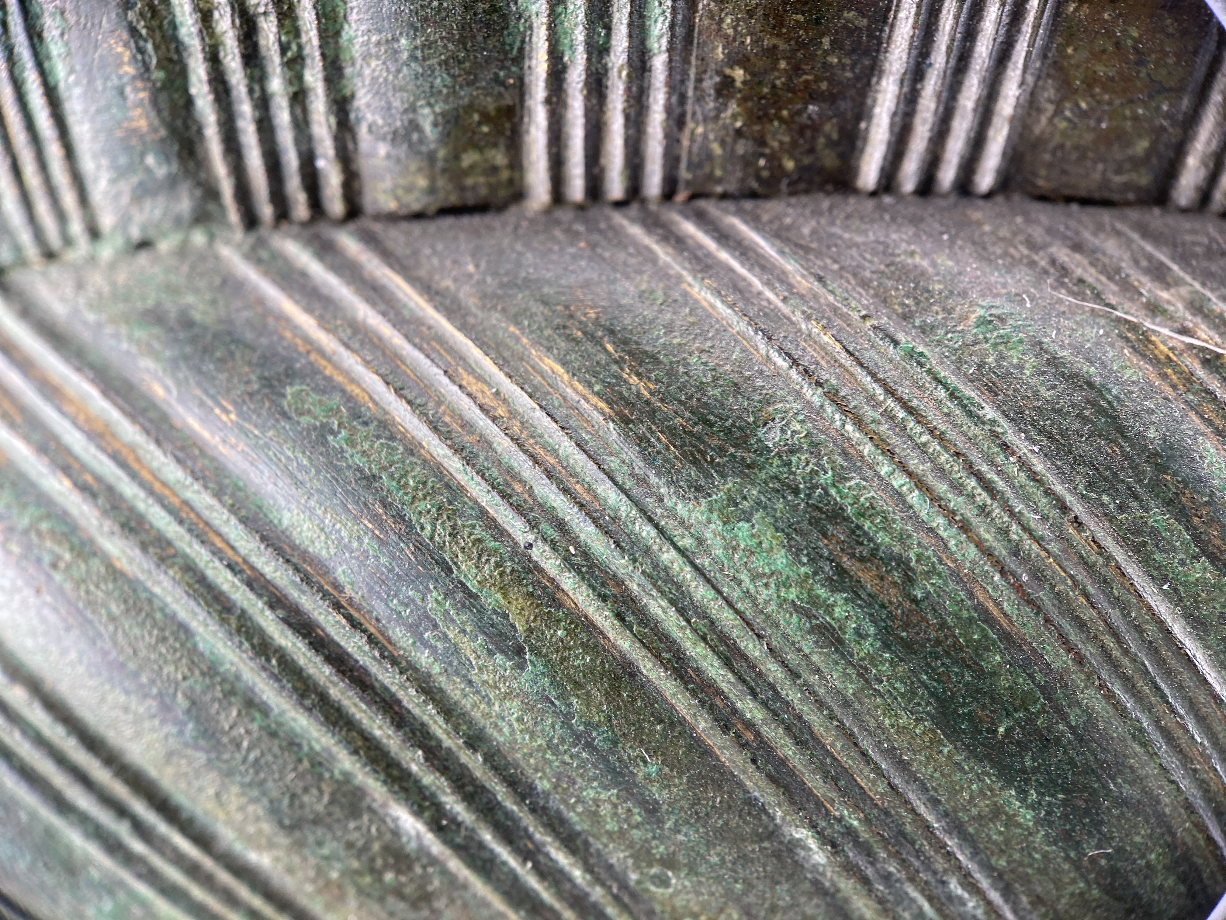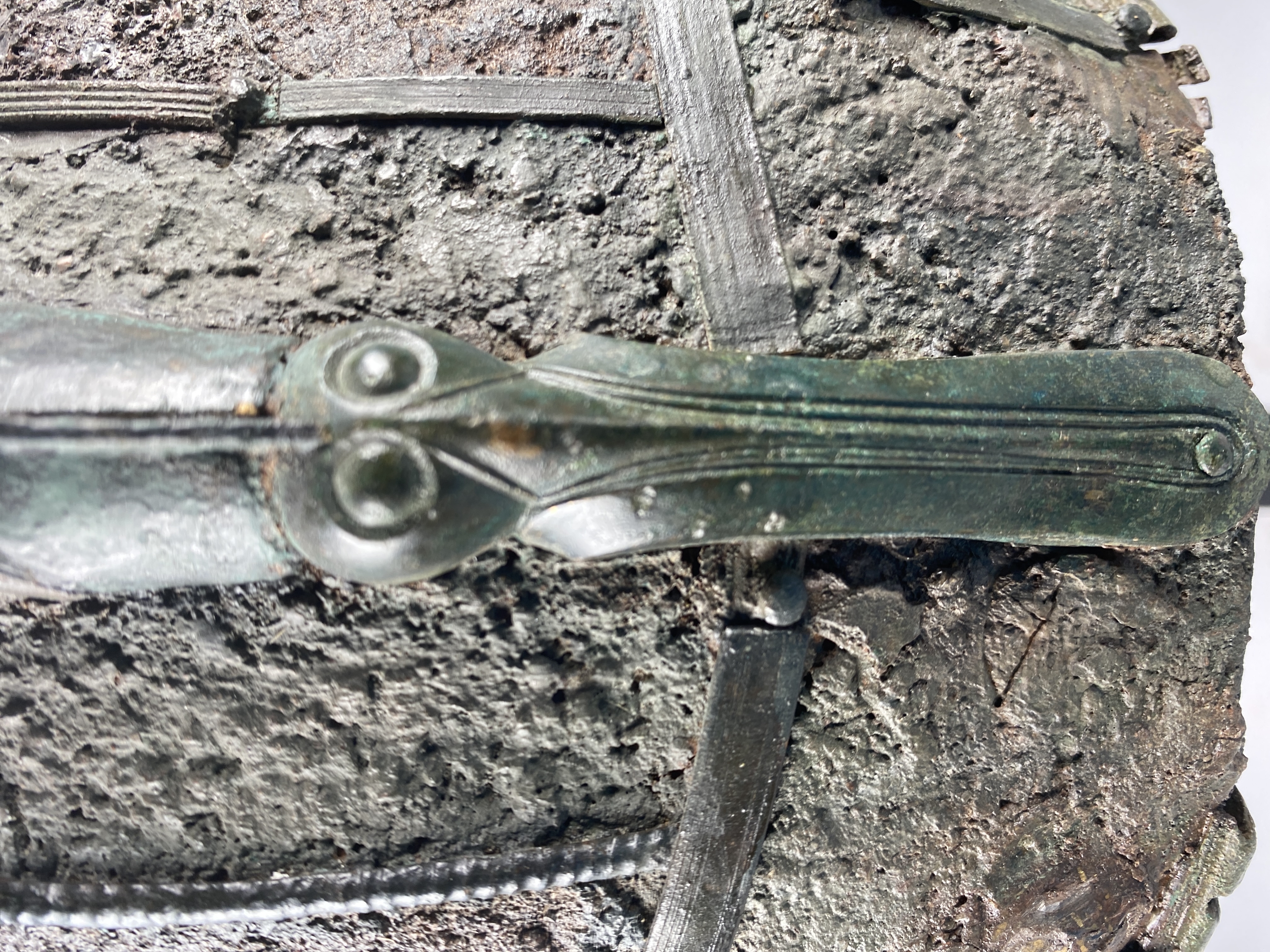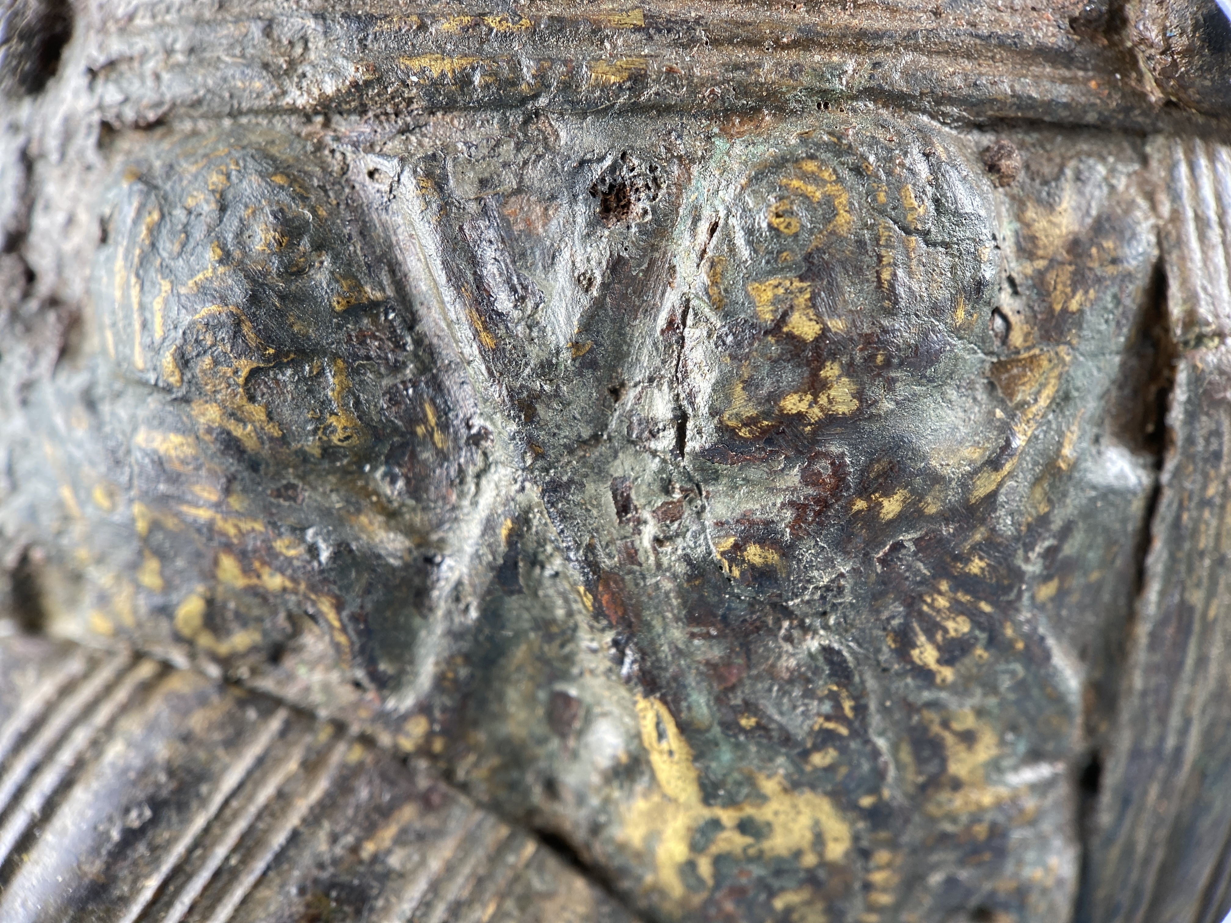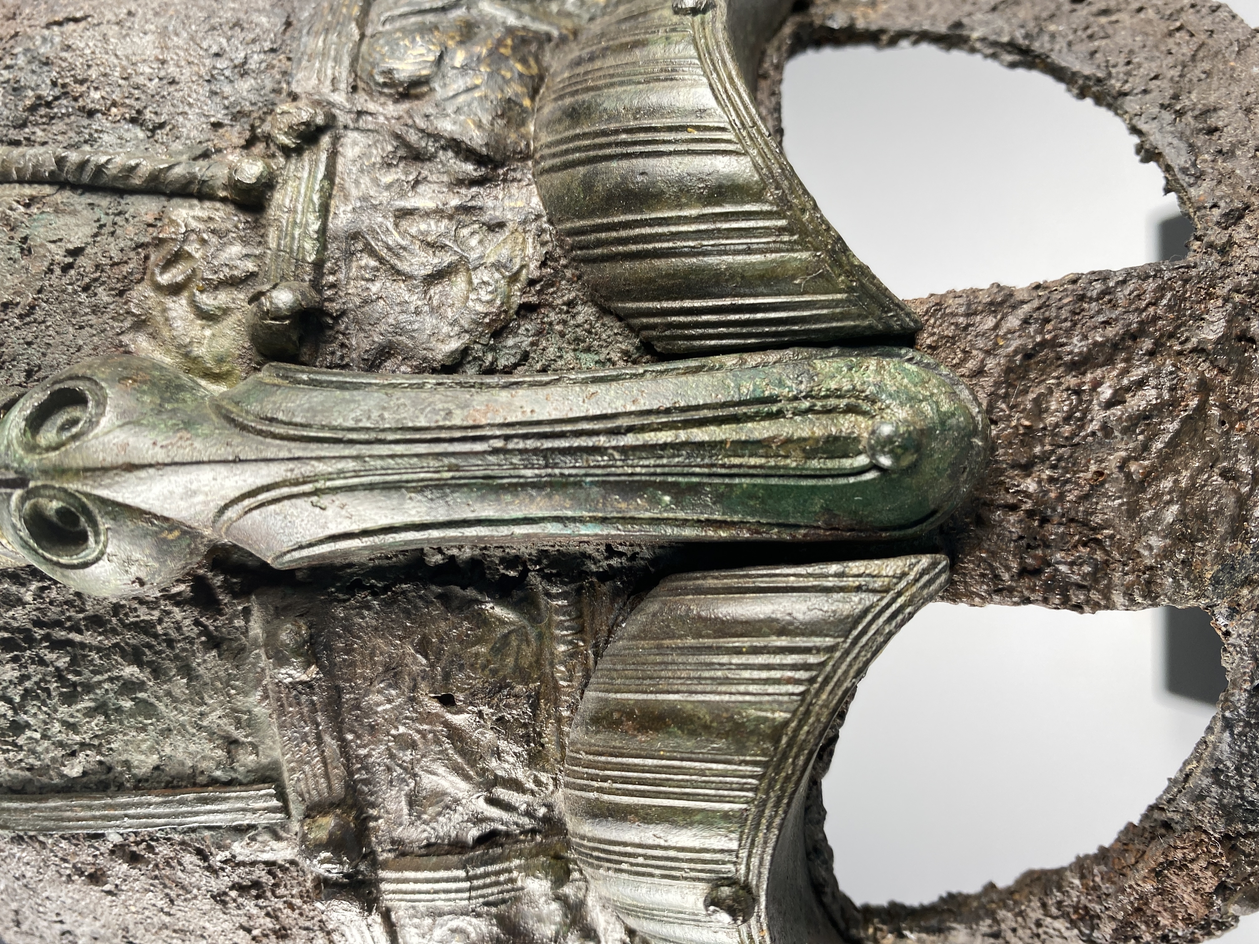 Prakthjälm av järn med bronsbeslag.