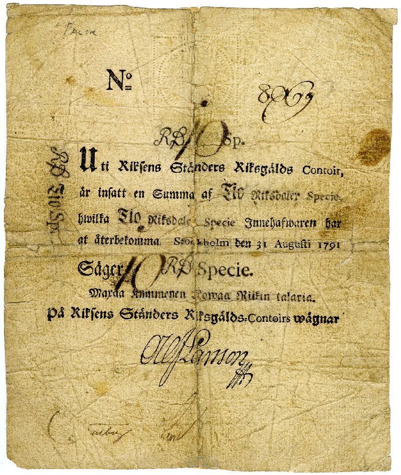 Upphov: Riksgäldskontoret. Media: Statens historiska museer. Ekonomiska museet - Kungliga myntkabinettet/SHM, (PDM) Upphovsrätten till detta verk har gått ut och är därmed fritt att använda på alla sätt. Ange gärna upphovsperson om denne är känd.