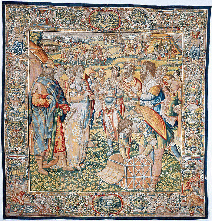 Tapet föreställande Calcas och Brigida hos Diomedes. Ingår i serie på sju med scener ur trojanska kriget.