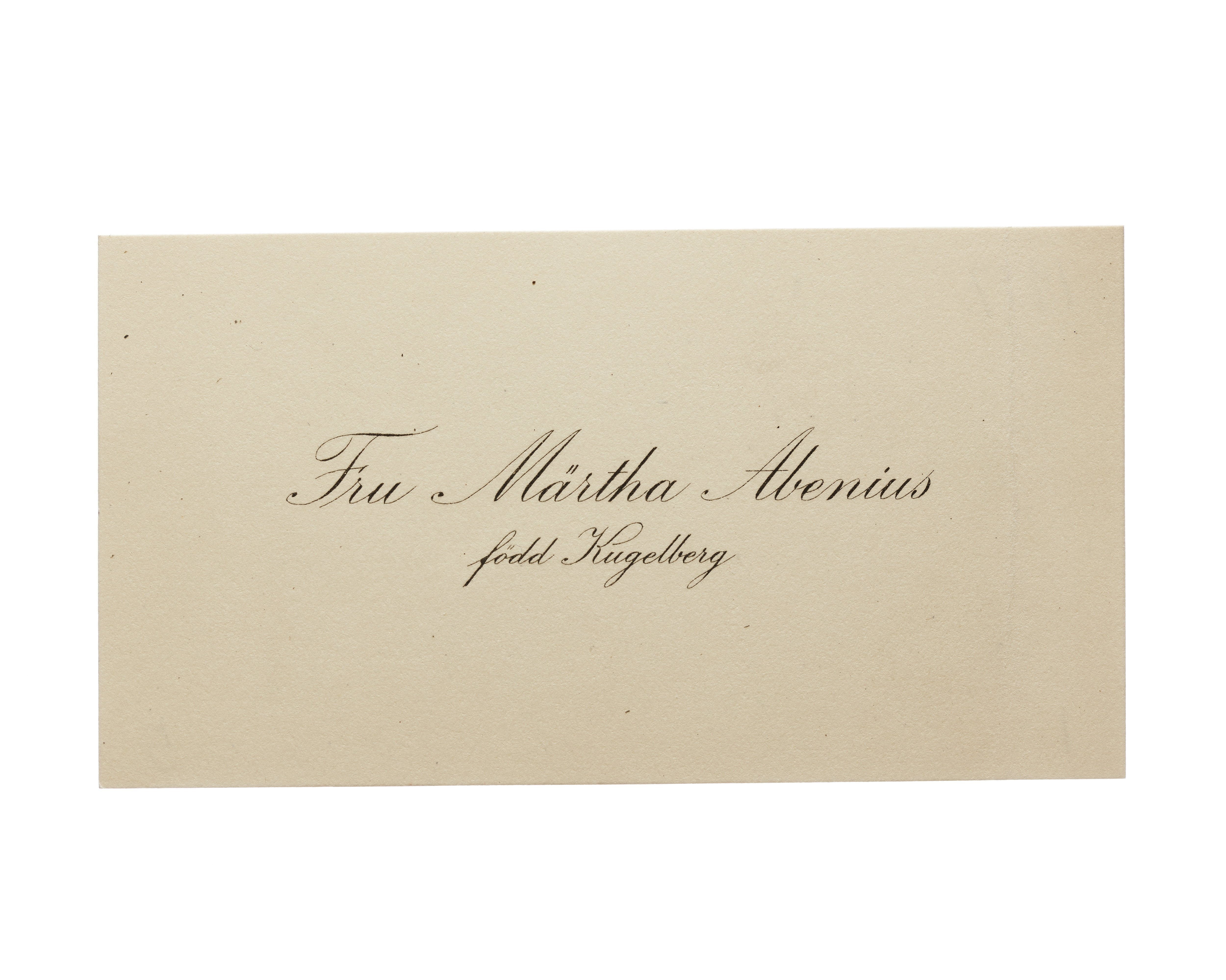 Visitkort från Fru Märtha Abenius Född Kugelberg.