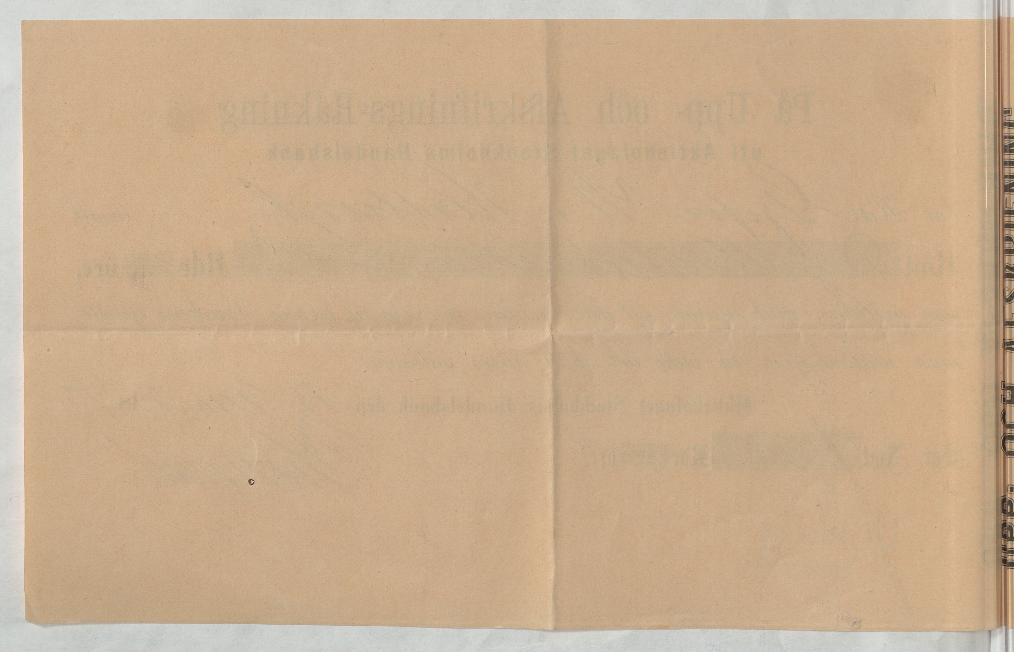 Kvitto från Aktiebolaget Stockholms Handelsbank rörande Upp- och Afskrifnings-Räkning