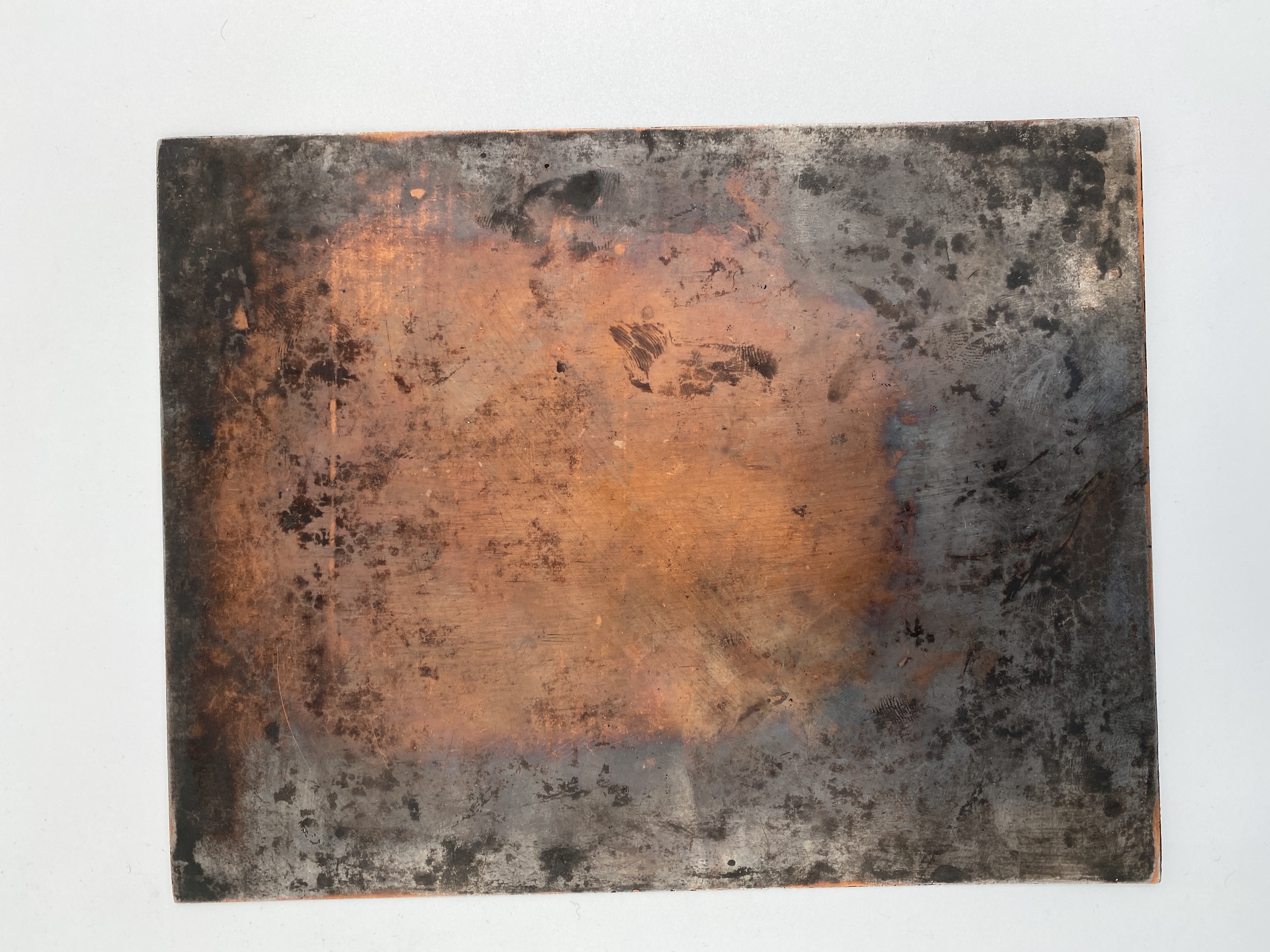Tryckplåt för kopparstick med pappersomslag. Motivet är en innergård (stadsbebyggelse).