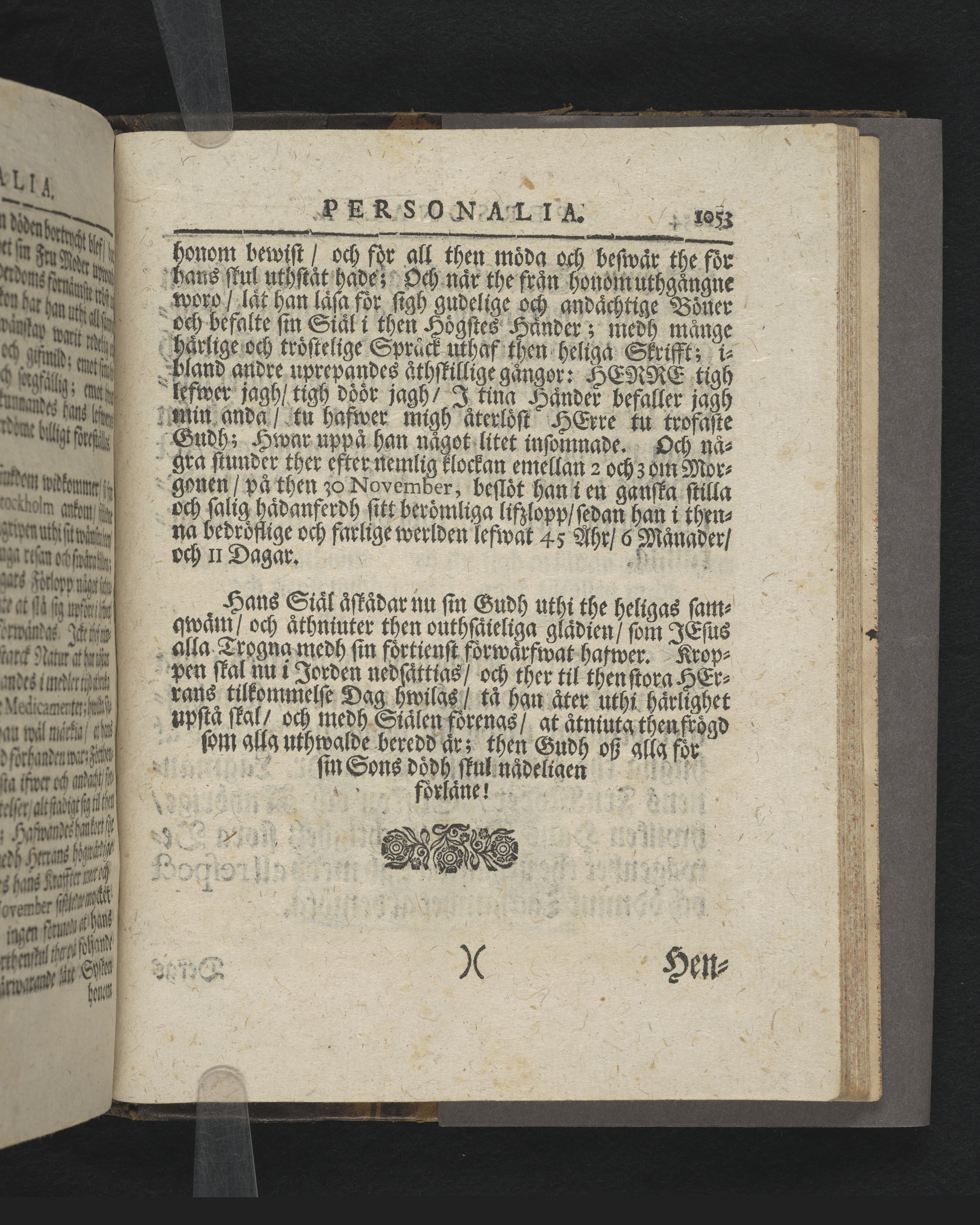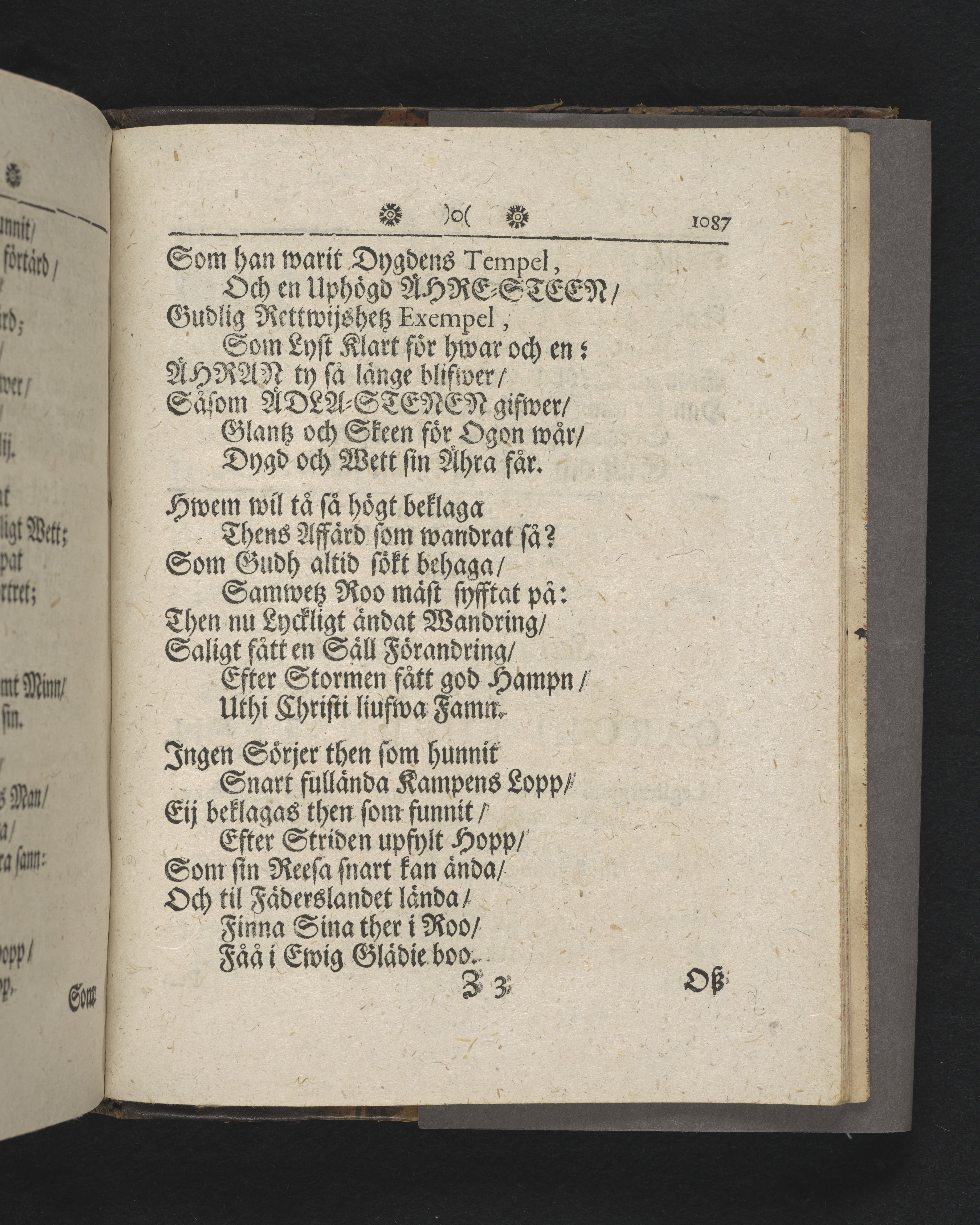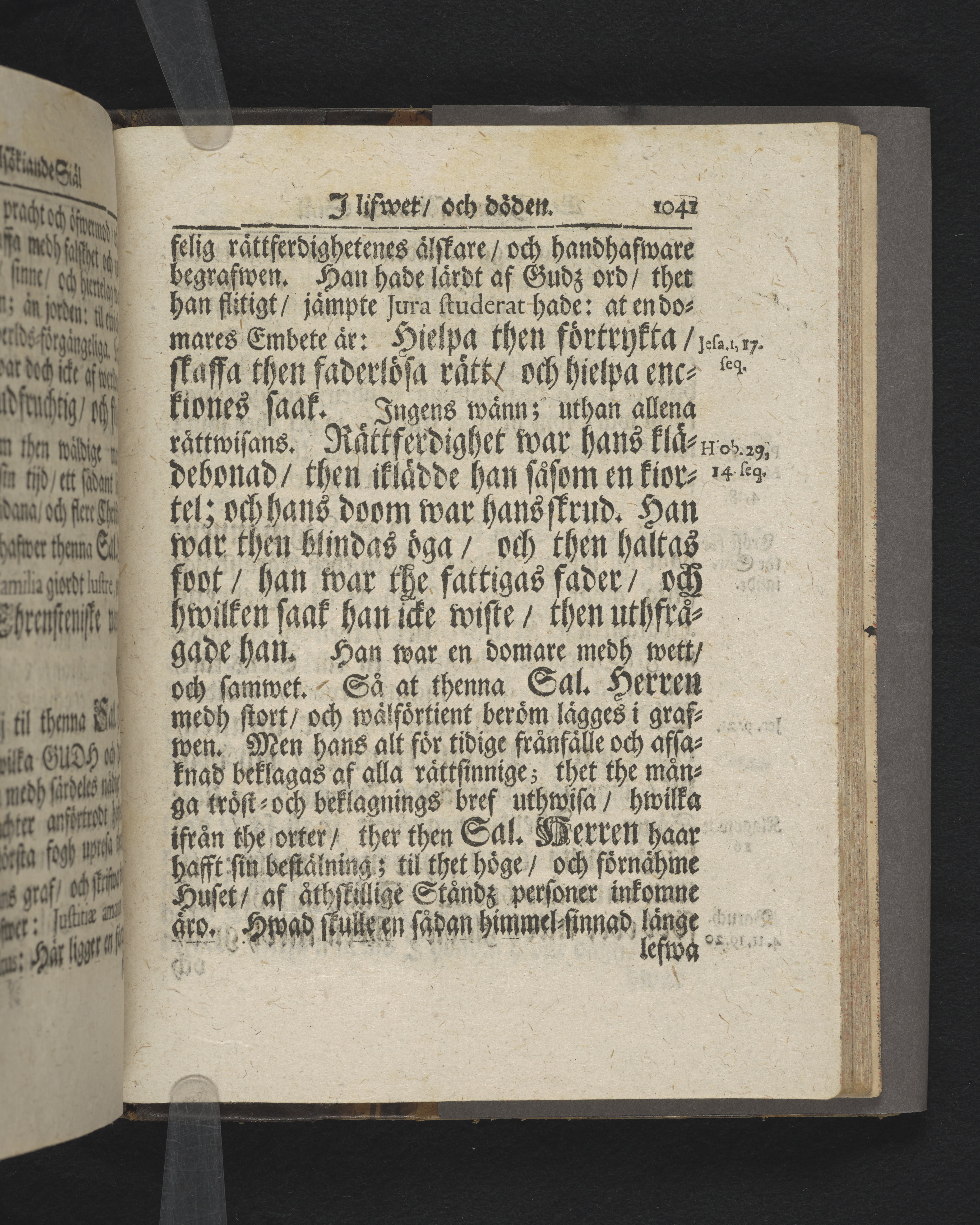 Innehåller förutom Isogaeus likpredikan med personali även gravtal och dikter undertecknade Thomas Ihre, I. Lund, Andreas Stobaeus, A. Riddermarck, J.G. Werwing.