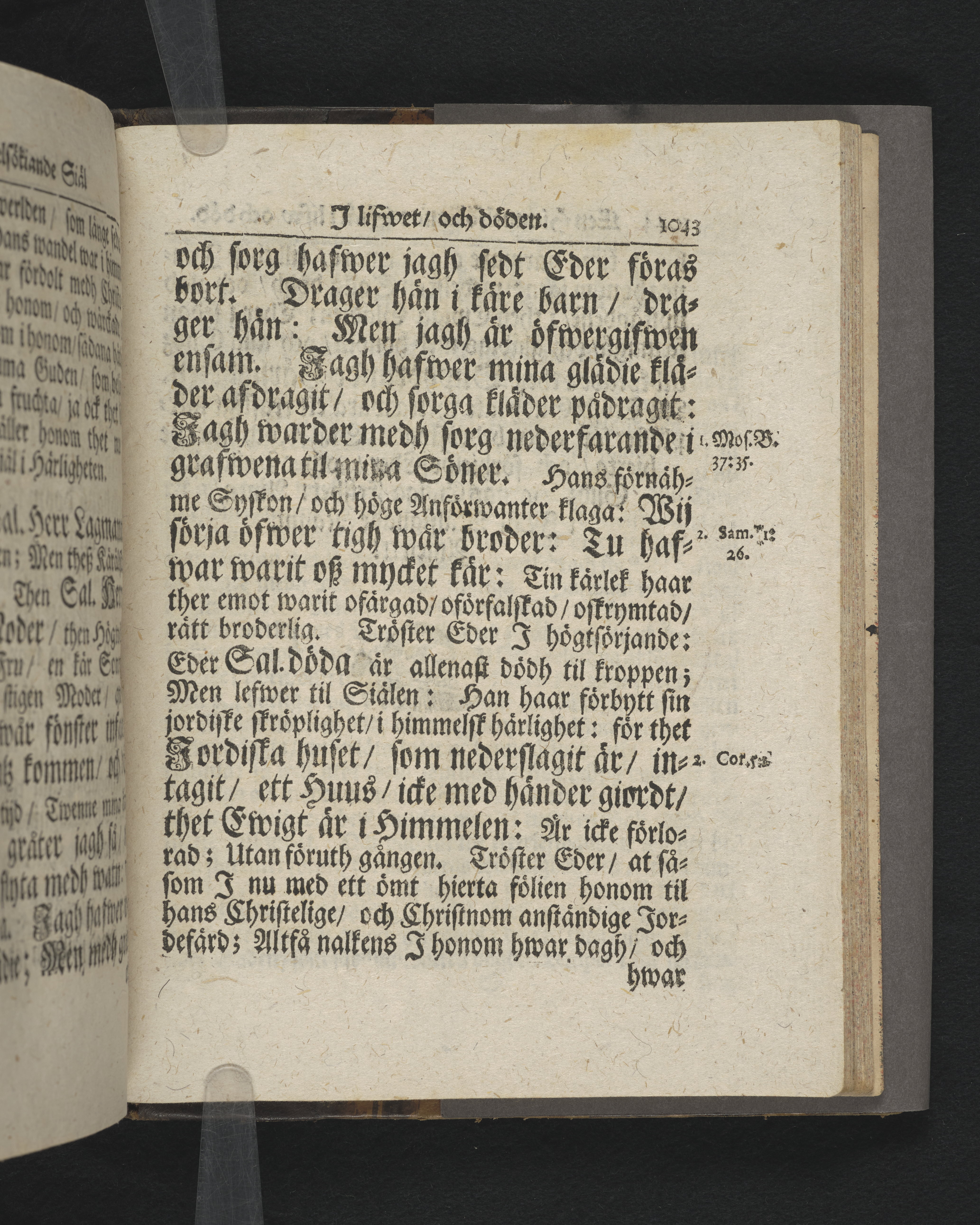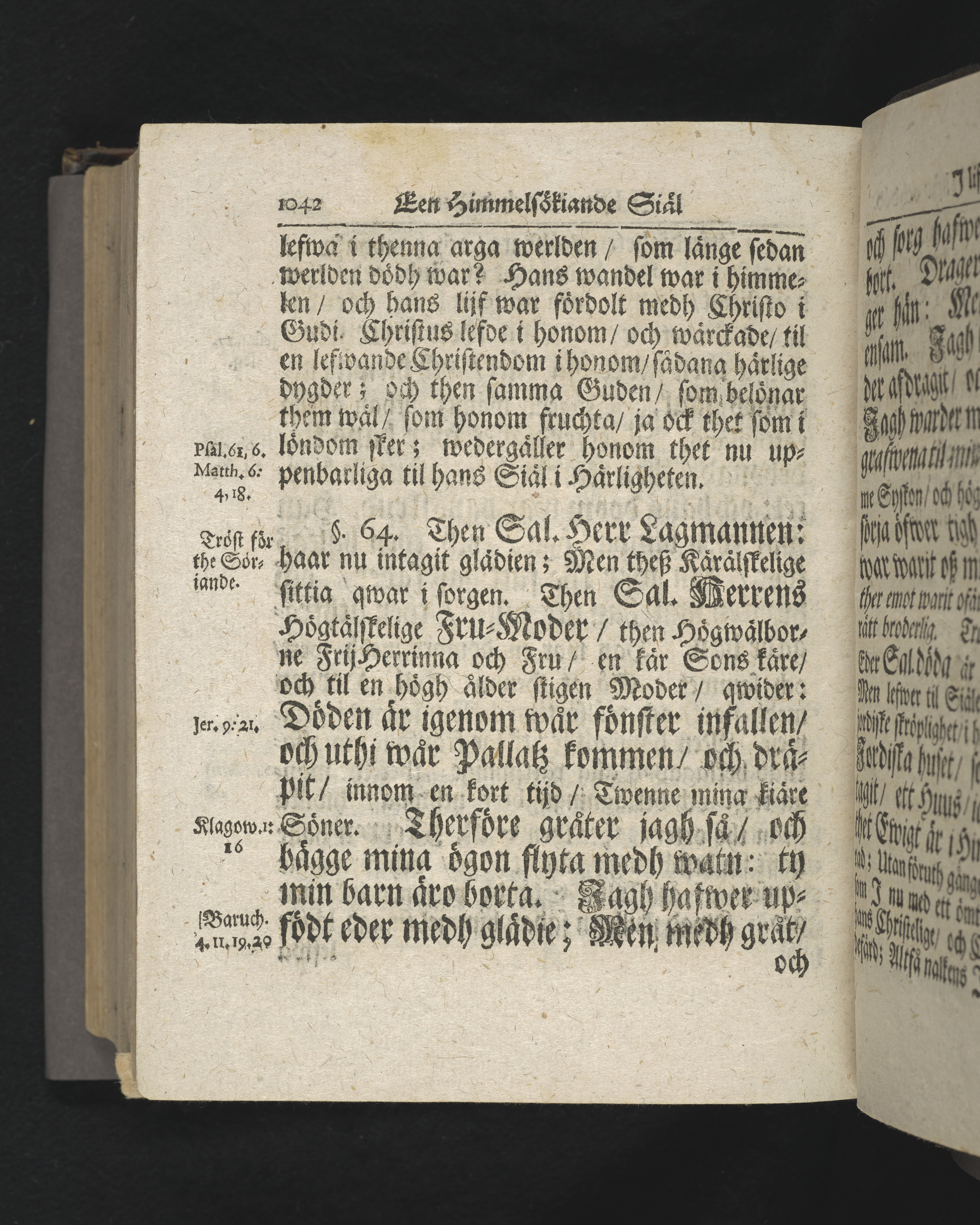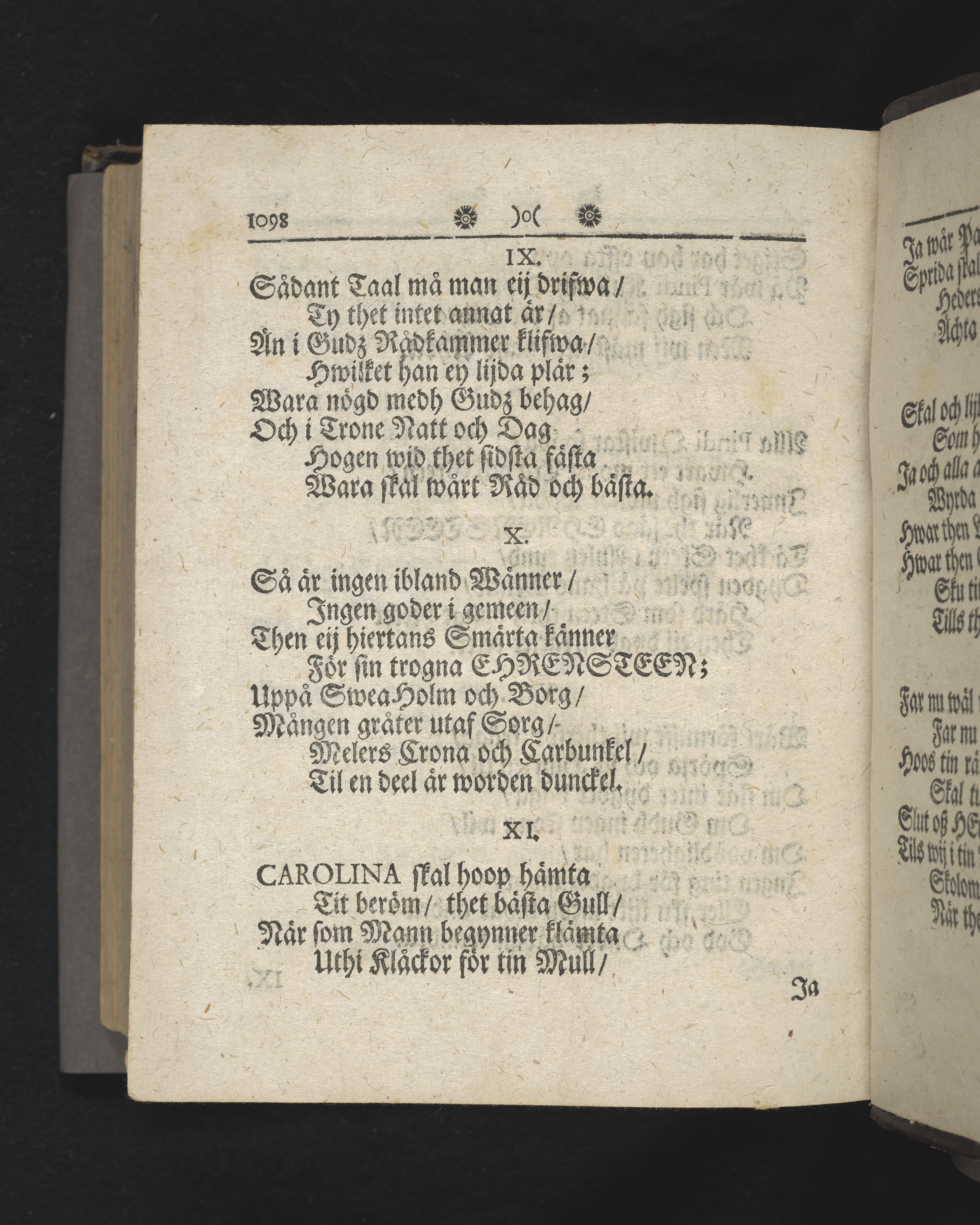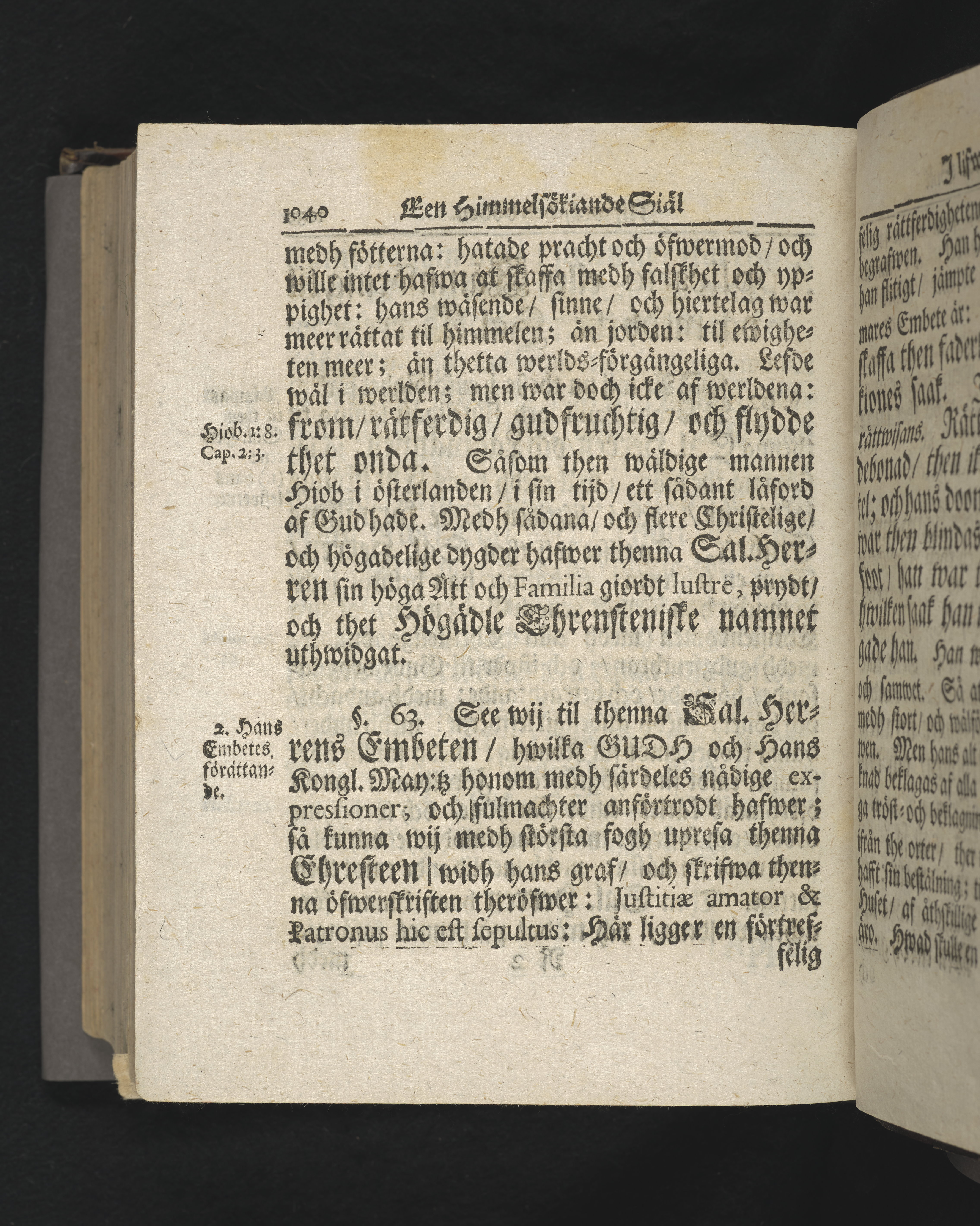 Innehåller förutom Isogaeus likpredikan med personali även gravtal och dikter undertecknade Thomas Ihre, I. Lund, Andreas Stobaeus, A. Riddermarck, J.G. Werwing.