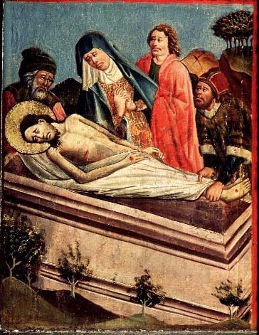 Kondition: av skåpet återstår endast en flygeldörr med målningar på båda sidor. Färg: välbevarad.